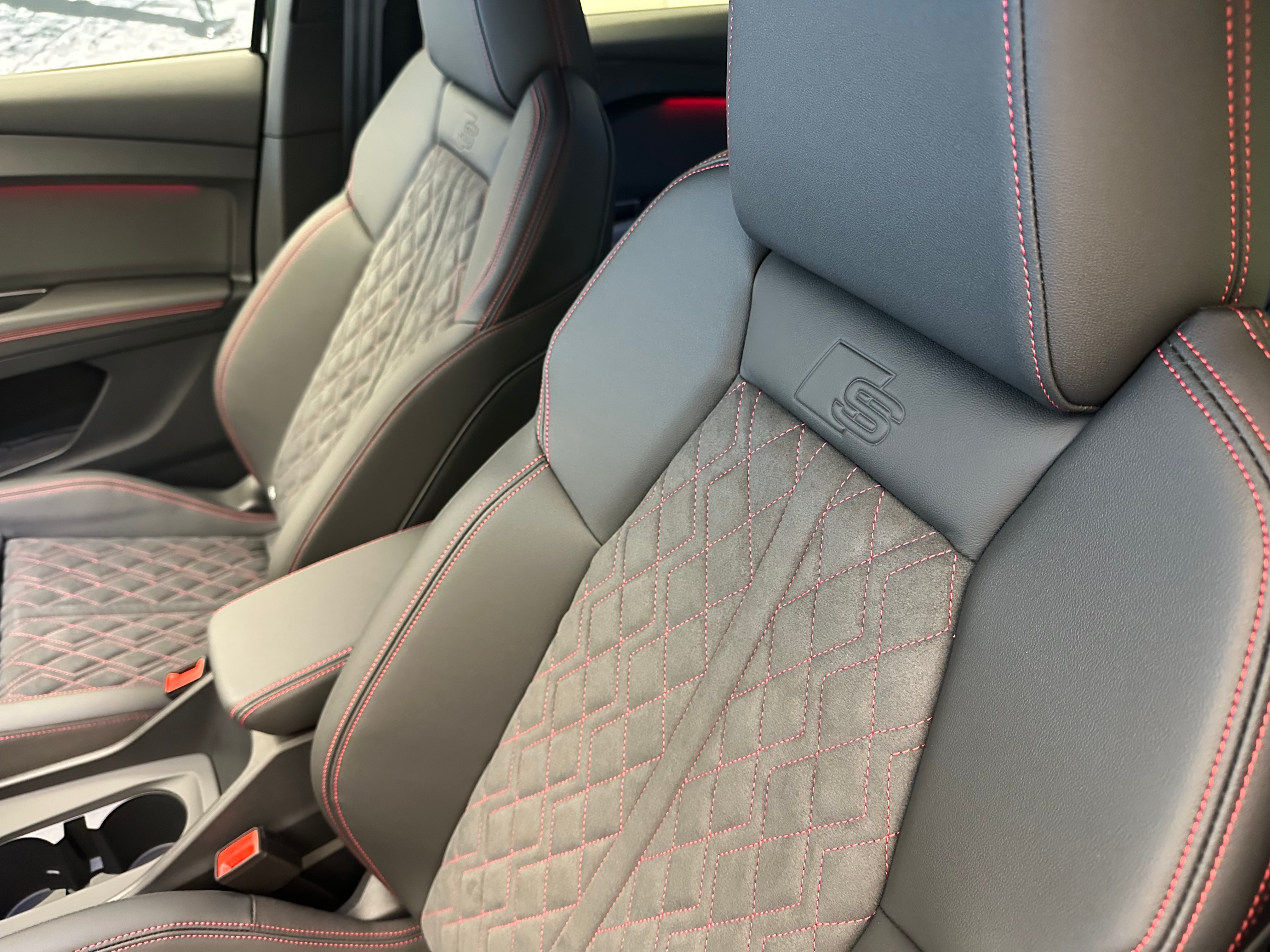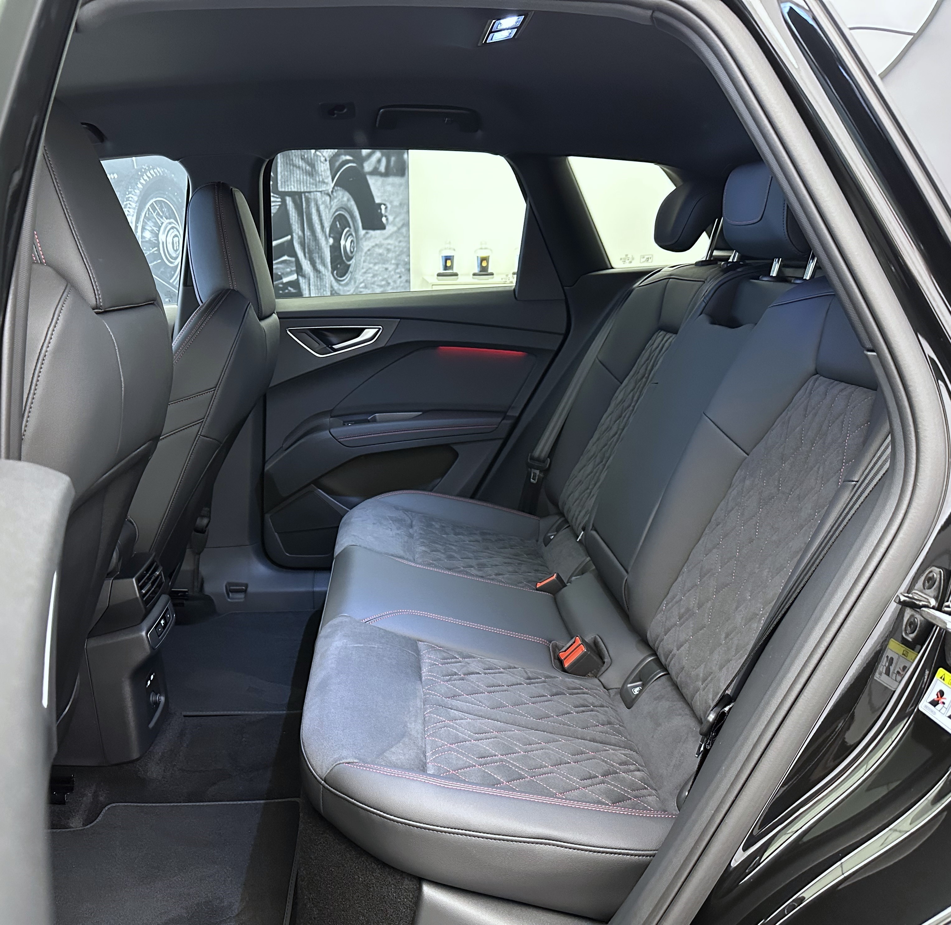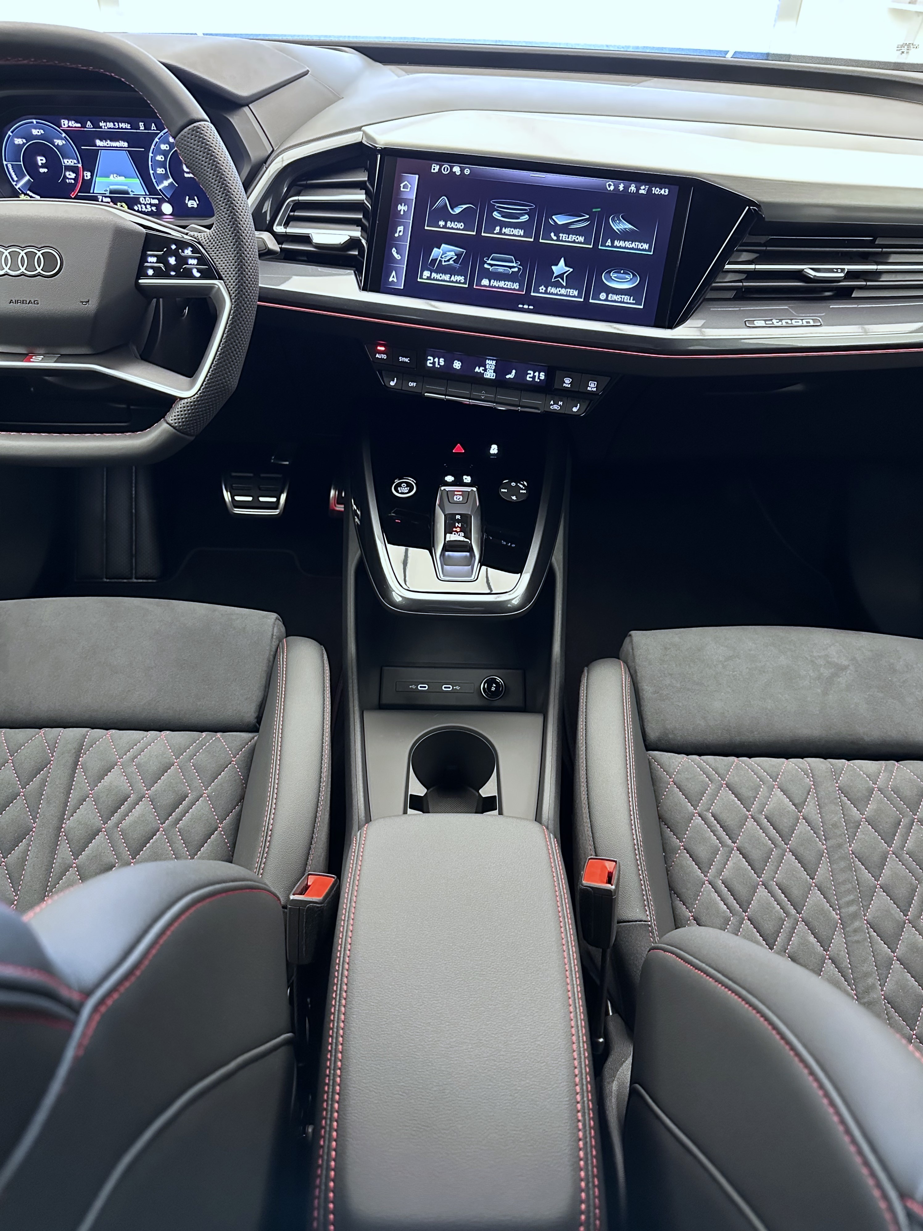 3-Punkt-Sicherheitsgurte auf allen Plätzen Airbag: Airbag für Fahrer und Beifahrer mit Beifahrer-Airbag-Deaktivierung Airbag: Seitenairbags vorn, mit Kopfairbag und Interaktionsairbag vorn Assist: Ablenkungs- und Müdigkeitserkennung Assist: Kamerabasierte Verkehrszeichenerkennung Assist: Régulateur de vitesse FOD: ACC possible Assist: Speedlimiter avec Intelligent Speed Assist Assist: Système de régulateur de vitesse avec limiteur de vitesse réglable Assist: Système proactif de protection des passagers à lavant, sur le côté et à larrière Bottom line tout autour avec un look grainé Clima: Climatisation à larrêt Coutures de couleur rouge Audi Sport Câble de charge mode 3 type 2 32A Désignation du modèle Inscription technologique Symbole du type de performance Elektronisches Stabilitäts-Programm (ESP) Funkschlüssel, ohne Safelock Garantie: 2 Jahre ohne Kilometerbegrenzung (ab 1. Inv.) Getriebe: Direktantrieb, kein Getriebe Komfortmittelarmlehne vorne Lackierung: Uni-Lackierung Licht: Drittes Bremslicht Licht: Nebelschlussleuchte Media: Digitaler Radioempfang (DAB) Pack: Intérieur S line avec sièges sport en combinaison microfibre Dinamica / cuir synthétique noir Pack: Pack Confort Suisse Pack: Pack Infodivertissement Suisse Pack: Pack de sécurité plus Pack: Pack extérieur avancé Pack: Pack optique noir plus Pack: Paquet brillant avec bandes de fenêtre décoratives horizontales en aluminium anodisé Räder: Reifendruck-Kontrollanzeige Räder: Reifenreparatur-Set (Tire Fit) Sans dispositif dattelage Sièges: Fixation pour siège enfant i-Size côté passager et i-Size et Top Tether sur les sièges Sièges: Intérieur avec sièges standard en tissu Index noir Suspension: Train de roulement confor Verbandmaterial,Warndreieck und Warnveste Verrouillage centralisé à télécommande Vitrage isolant thermique teinté vert Wegfahrsperre elektronisch sans câble de charge (prise industrielle) sans insert de toit (toit plein) sans système de nettoyage des phares