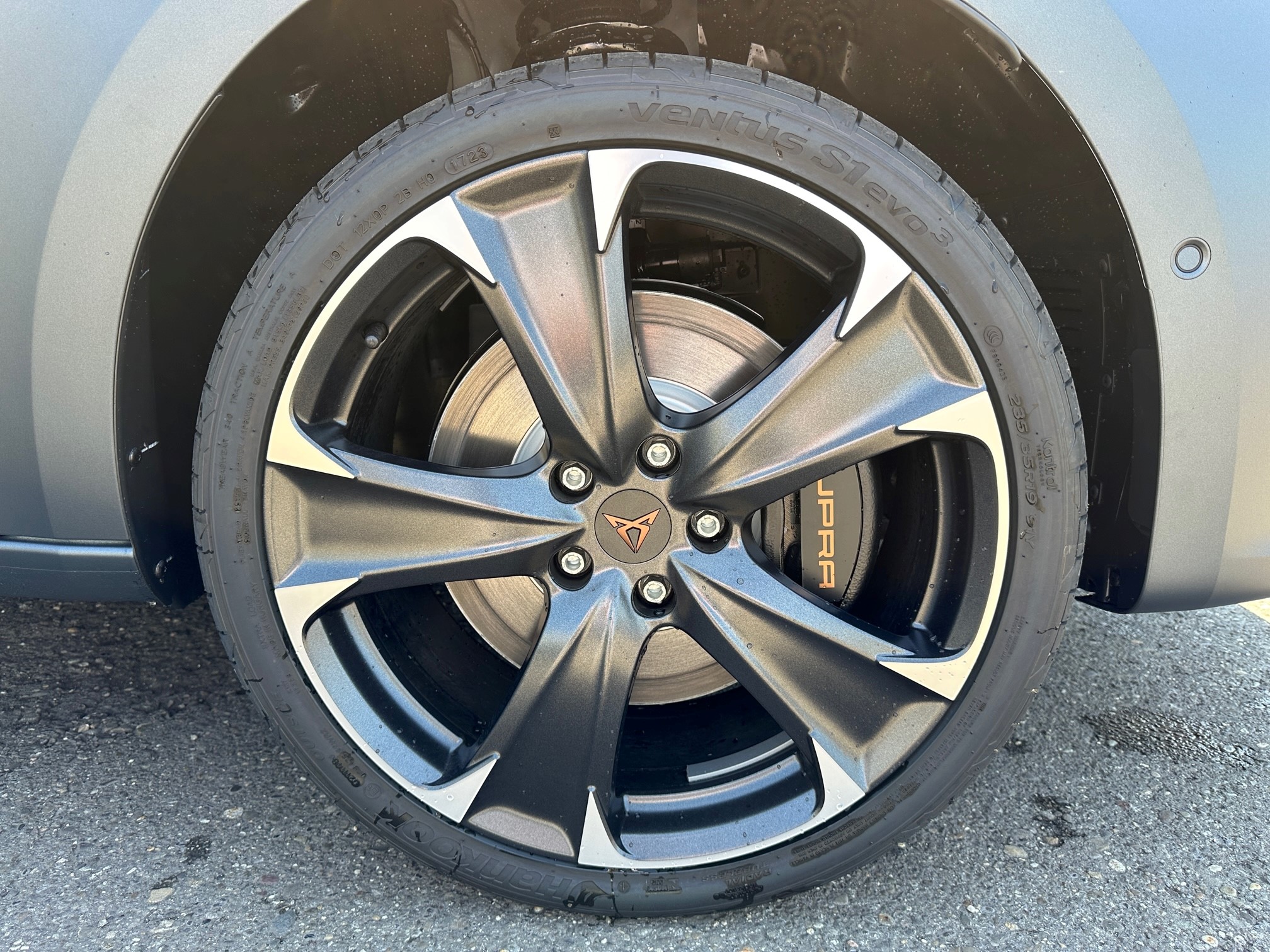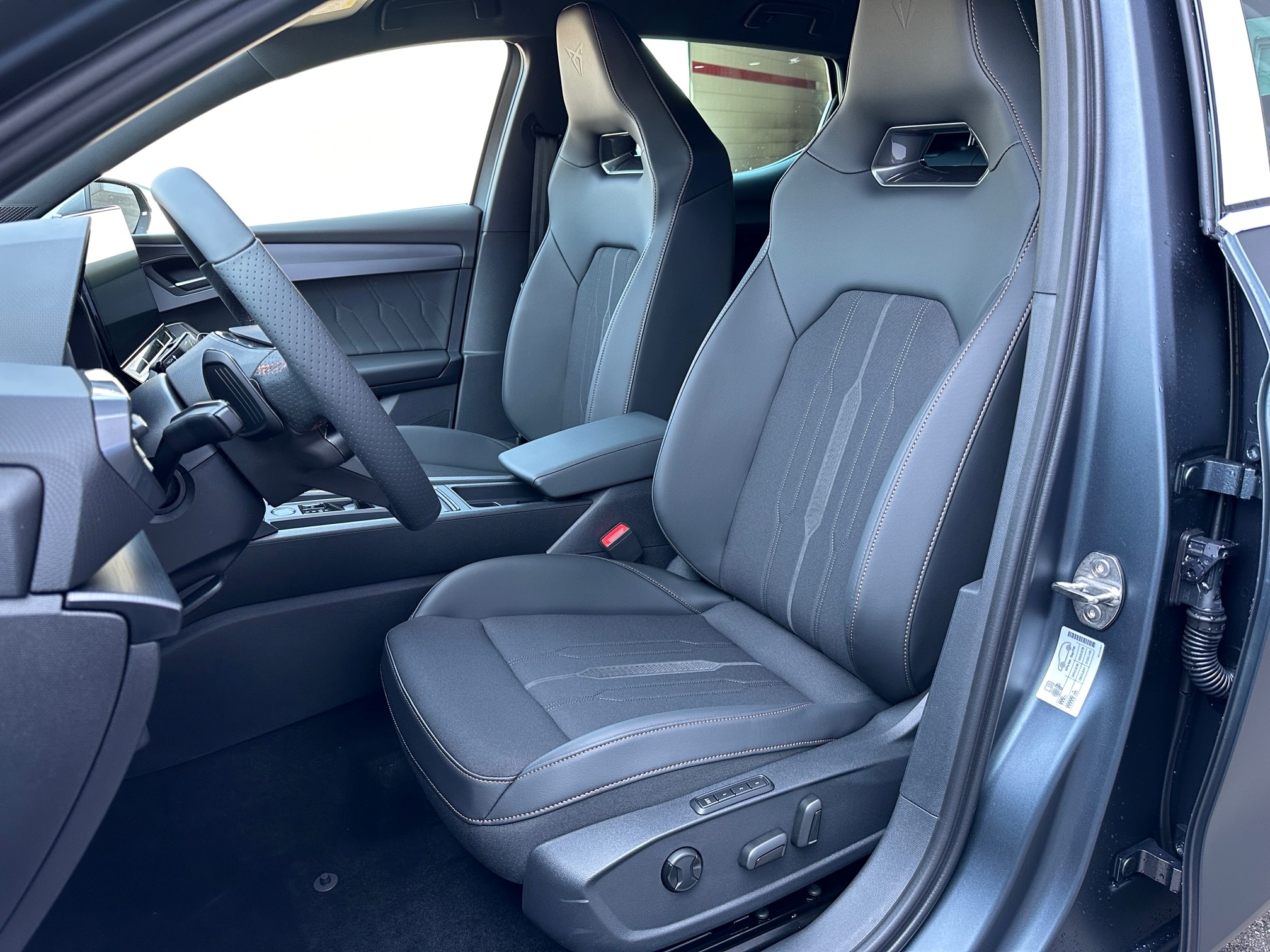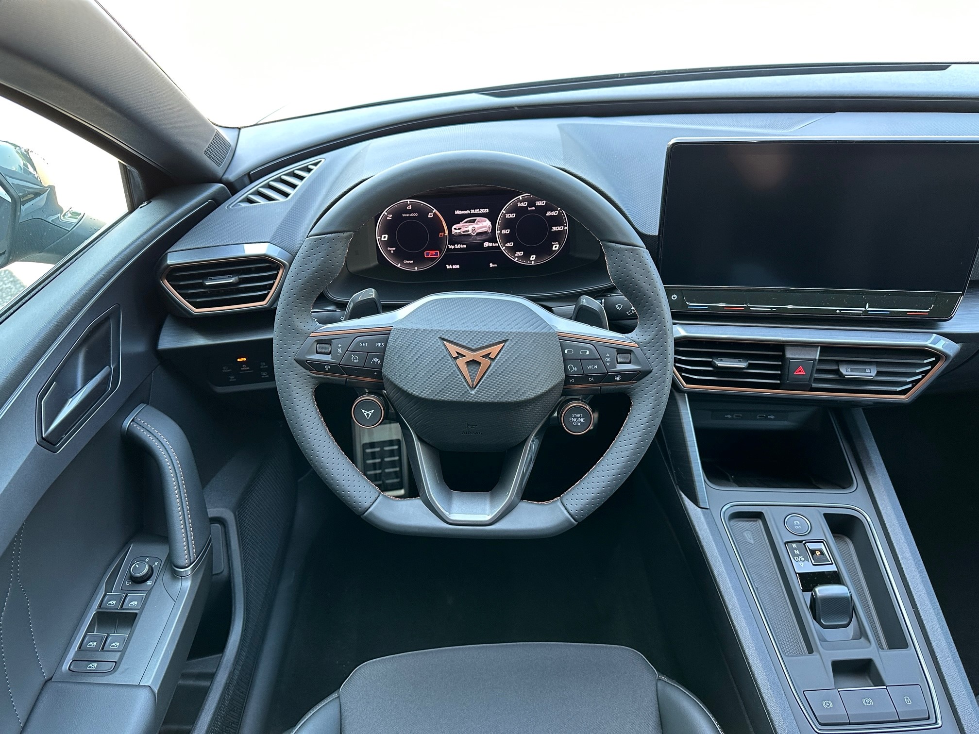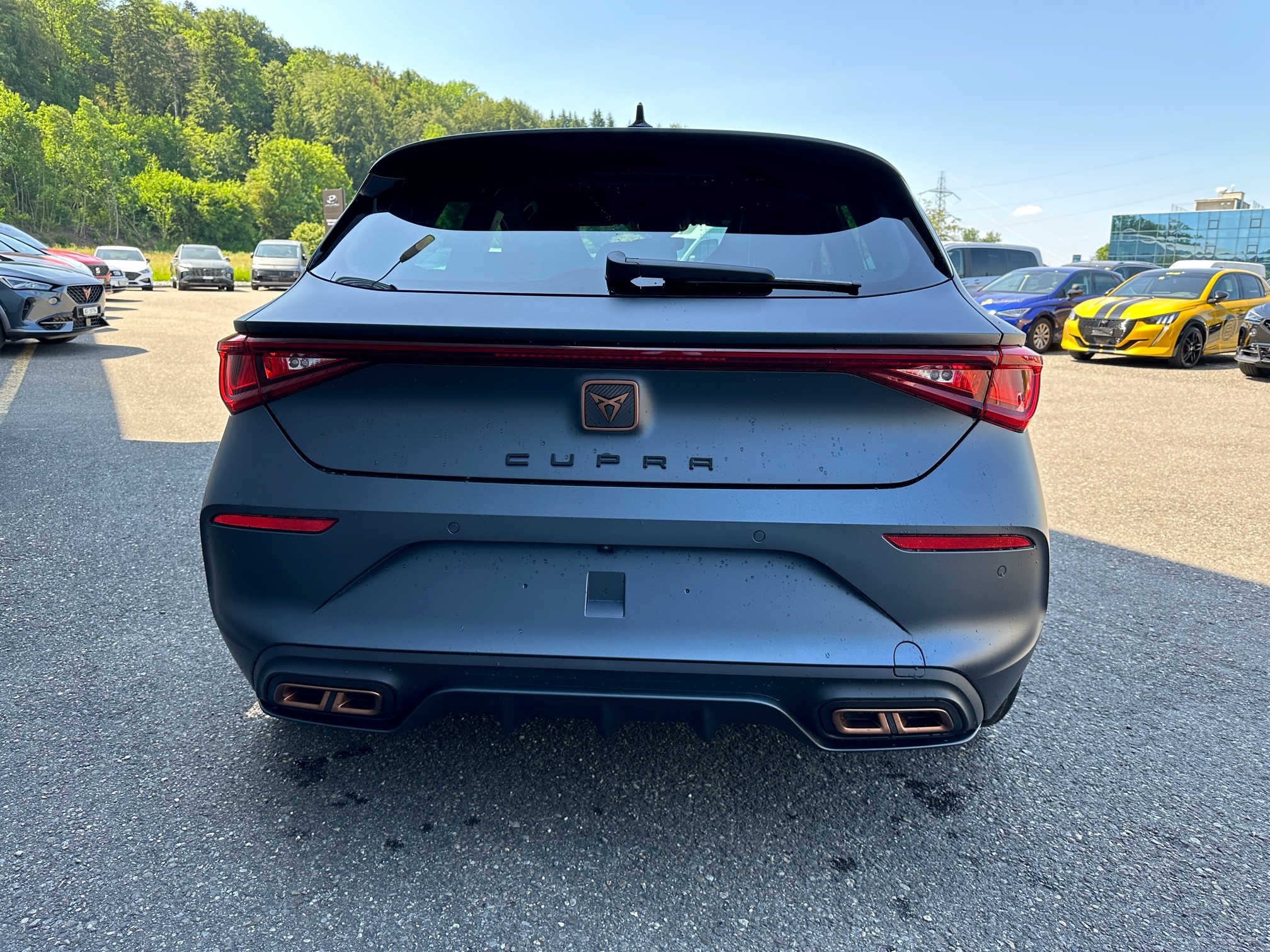 ABS, EBV elektronische Bremskraft-verteilung Abgedunkelte Scheiben ab B-Säule hinten Airbag: Airbag Beifahrer deaktivierbar Airbag: Airbag Fahrer und Beifahrer Airbag: Kopfairbags vorne und hinten Airbag: Seitenairbags für Fahrer und Beifahrer Assist: Einparkhilfe hinten Assist: Elektronische Parkbremse mit Auto Hold Funktion Assist: Lane assist (Spurhalteassistent) Assist: Multifunktionskamera Assist: Multikollisionsbremse Assist: PreCrash Sicherheitssystem Assist: Tiredness detection (Müdigkeitserkennung) Assist: Traction Control (TCS), deaktivierbar Aussenspiegel elektrisch einstell-, beheiz- und einklappbar mit Beifahrerabsenkfunktion Aussenspiegel in Cosmo Grey, Türgriffe in Wagenfarbe Aussenspiegel mit LED-Blinker Bremszangen vorne und hinten in Schwarz CUPRA Drive Profile mit "driving experience button" Comfort, Sport, CUPRA, Individual Dekor: Dekorblenden in Copper Dreipunkt-Automatiksicherheitsgurte auf allen Plätzen ESC mit EBA, DSR und Reifendruckkontrolle Elektrische Fensterheber vorne und hinten mit Komfortschaltung und Einklemmschutz Fahrwerk: Adaptive Fahrwerksregelung DCC Fahrwerk: Progressivlenkung Fahrwerk: Vorderachs-Differenzialsperre Fussmatten vorne und hinten Garantie: 2 Jahre ohne Kilometerbegrenzung (ab 1. Inv.) Getriebe: Sequentielles 6-Gang-Getriebe mit Automatikfunktion Heckscheiben-Wisch-/Waschanlage mit Intervall Innenspiegel automatisch abblendbar Kindersitzverankerung ISOFIX (äussere Plätze hinten) Klima: 3-Zonen Climatronic LED-Innenraumbeleuchtung mit Ambientebeleuchtung Smart Wraparound "Multicolor" Lackierung: Uni-Lackierung Ladekabel für Haushaltssteckdose (Mode 2) Lenkrad: Beheizbares Ledermultifunktionslenkrad mit Schaltwippen Licht: Coming Leaving Home Funktion Licht: Drittes Bremslicht Licht: Durchgehende Full LED-Heckleuchten Licht: LED-Heckleuchten mit dynamischem Blinklicht Licht: LED-Nebelscheinwerfer mit Cornering-Funktion Licht: LED-Scheinwerfer für Abblend- und Fernlicht Licht: Leuchtweitenregulierung Media: 12" Infotainment (MIB3) Media: 2 USB C Anschlüsse hinten und vorne Media: CUPRA Connect Safety & Services für Navigationssystem Media: CUPRA Navigationssystem Media: DAB+ (Digital Audio Broadcasting) Media: Mobiltelefon Freisprechanlage Bluetooth Mittelarmlehne vorne und hinten Parksensoren in Midnight Black Pollenfilter (Staubfilter) Pyrotechnische Gurtstraffer und Gurtkraftbegrenzer Räder: Alufelgen 8J x 19", "EXCLUSIVE" 30/1 (235/35 R19) Räder: Reifendruck-Kontrollanzeige Räder: Reifenreparatur-Set (Tire Fit) Schlüsselloses Schliess- und Startsystem (KESSY) Servolenkung mit geschwindigkeitsabhängiger Lenkkraftunterstützung Sicherheitsgurtkontrolle für alle Sitze Sitze: 2 verstellbare Kopfstützen vorne und 3 hinten Sitze: CUPRA Sport Schalensitze in "Sharp Textil schwarz" Sitze: Geteilt abklappbare Rücksitzlehne 1/3 - 2/3 Sitze: Kindersitzverankerung ISOFIX hinten Sitze: Vordersitze höhenverstellbar Sonnenblende Fahrer und Beifahrerseite Stopp - Start- und Rekuperationssystem Stossfänger in Sport-Optik mit Heckdiffusor in Wagenfarbe Wegfahrsperre elektronisch Zentralverriegelung mit Funkfernbedienung, 2 Funkschlüssel Zierleisten Seitenfenster in Schwarz Glanz Zwei Abgasblenden in Kupfer