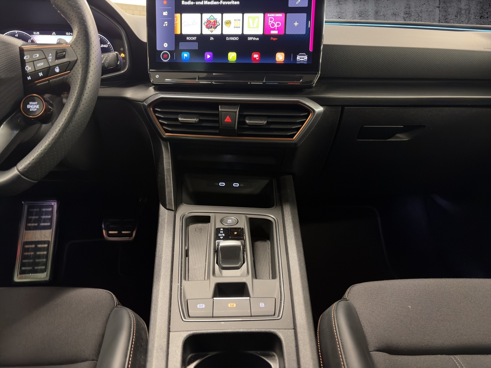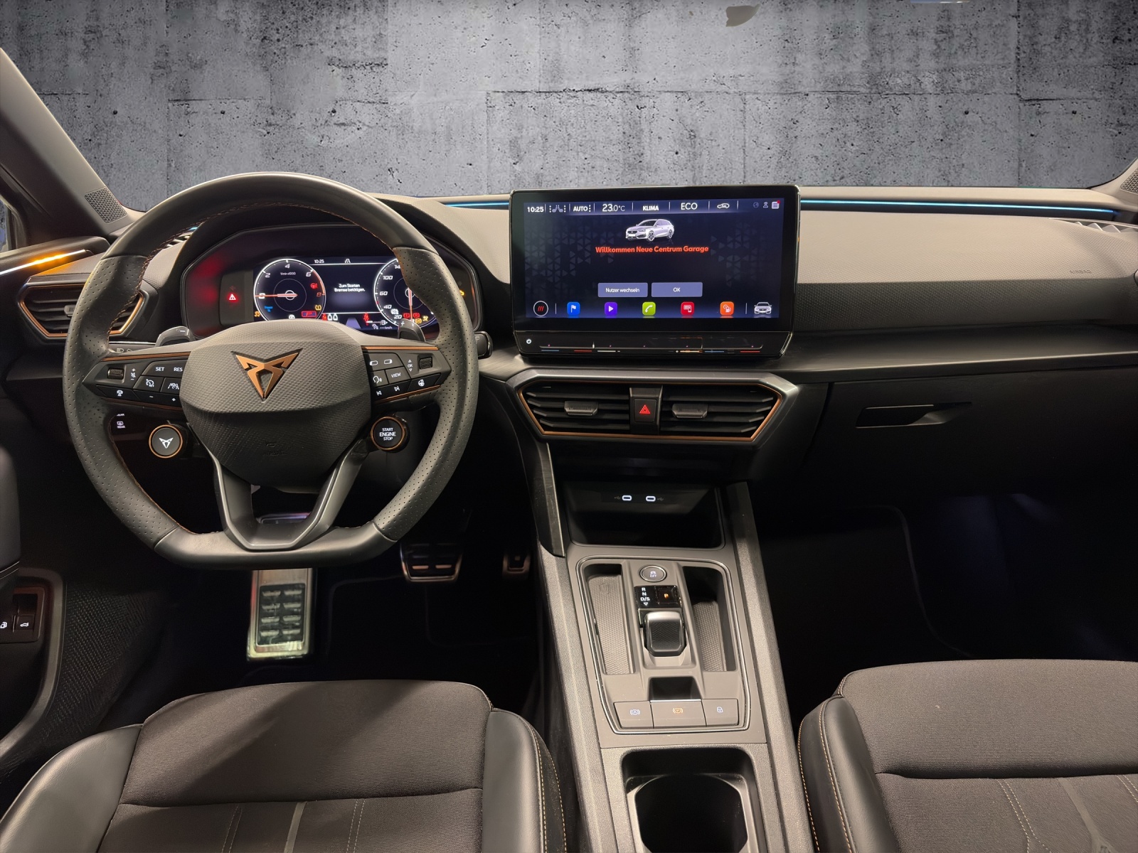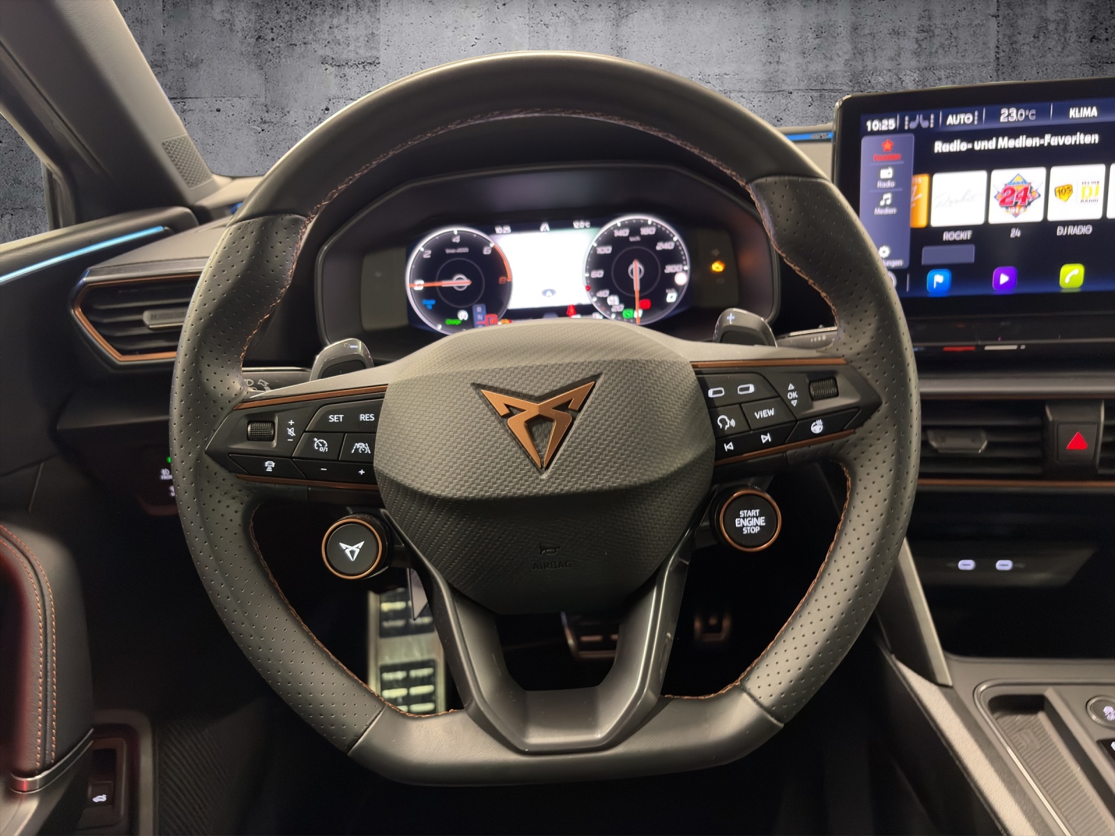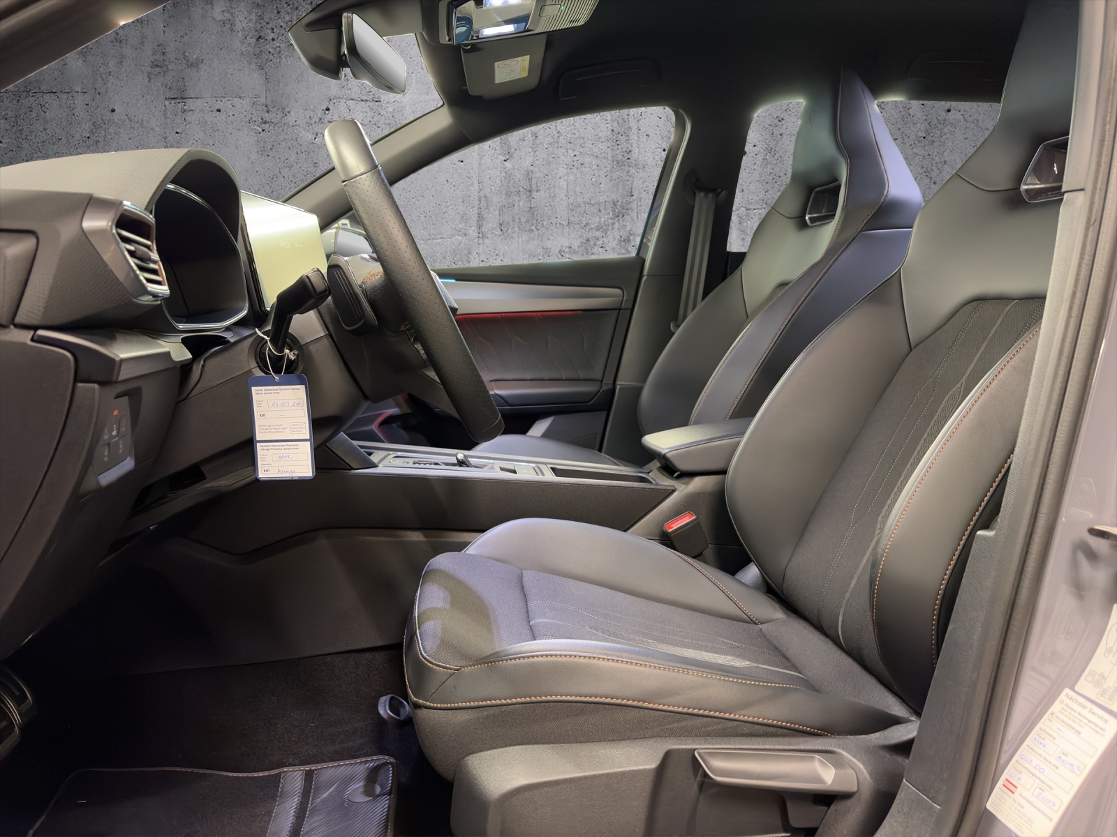ABS, EBV elektronische Bremskraft-verteilung Abgedunkelte Scheiben ab B-Säule hinten Airbag: Airbag conducteur et passager Airbag: Airbag passager désactivable Airbag: Airbags rideaux pour la tête AV et AR Airbag: Seitenairbags für Fahrer und Beifahrer Ancrage de siège enfant ISOFIX (sièges arrières ext.) Assist: Caméra multifonction Assist: Einparkhilfe hinten Assist: Elektronische Parkbremse mit Auto Hold Funktion Assist: Lane assist (Spurhalteassistent) Assist: Multikollisionsbremse Assist: PreCrash Sicherheitssystem Assist: Tiredness detection (Müdigkeitserkennung) Assist: Traction Control (TCS), désactivable Aussenspiegel elektrisch einstell-, beheiz- und einklappbar mit Beifahrerabsenkfunktion Aussenspiegel in Cosmo Grey, Türgriffe in Wagenfarbe Baguettes décoratives cerclant les fenêtres latérales en noir brillant Boîte: Boîte à 6 vitesses séquentielle avec CUPRA Drive Profile avec "driving experience button"Comfort, Sport, CUPRA, Individual Capteur de pluie et lumière Capteurs de stationnement Midnight Black Clima: Climatronic 3 zones Contrôle du port de ceinture de sécurité pour tous le sièges Deux orifices de gaz d'échappement en cuivre Dreipunkt-Automatiksicherheitsgurte auf allen Plätzen Décor: Éléments décoratifs en copper ESC avec EBA, DSR et système de contrôle de pression des pneus Elektrische Fensterheber vorne und hinten mit Komfortschaltung und Einklemmschutz Etriers de freins l'avant et à l'arrière en noir Garantie: 2 ans / kilométrage illimité Gasoline Particule Filter Heckscheiben-Wisch-/Waschanlage mit Intervall Ladekabel für Haushaltssteckdose (Mode 2) Licht: Durchgehende Full LED-Heckleuchten Licht: LED-Heckleuchten mit dynamischem Blinklicht Licht: LED-Nebelscheinwerfer mit Cornering-Funktion Licht: LED-Scheinwerfer für Abblend- und Fernlicht Licht: Leuchtweitenregulierung Lumière: 3ème feu de stop Lumière: Fonction coming leaving home Lumière: L'éclairage diurne à LED Media: 12" Infotainment (MIB3) Media: 2 USB C Anschlüsse hinten und vorne Media: CUPRA Connect Safety & Services für Navigationssystem Media: CUPRA Navigationssystem Media: Mobiltelefon Freisprechanlage Bluetooth Mittelarmlehne vorne und hinten Mèdias: DAB+ (Digital Audio Broadcasting) Pare-chocs sportif avec diffuseur arrière en couleur carrosserie Pollenfilter (Staubfilter) Pyrotechnische Gurtstraffer und Gurtkraftbegrenzer Roues: Affichage du contrôle de la pression des pneus Roues: Jantes en alu 8J x 19", "EXCLUSIVE" 30/1 (235/35 R19) Rétroviseur intérieur photochromatique automatique Rétroviseurs extérieurs avec clignotants à LED Schlüsselloses Schliess- und Startsystem (KESSY) Servolenkung mit geschwindigkeitsabhängiger Lenkkraftunterstützung Set de réparation pour les pneus Sitze: Geteilt abklappbare Rücksitzlehne 1/3 - 2/3 Sitze: Kindersitzverankerung ISOFIX hinten Sitze: Vordersitze höhenverstellbar Sièges: 2 appuie-têtes réglables à lavant et 3 à larrière Sièges: Sièges baquets CUPRA Sport en "Sharp textile black" Stopp - Start- und Rekuperationssystem Suspension: Blocage du différentiel de l'essieu avant Tapis de sol avant et arrière Volant: Volant multifonction chauffant en cuir avec palettes de changement de vitesse Zentralverriegelung mit Funkfernbedienung, 2 Funkschlüssel masquer soleil conducteur et passager Éclairage de l'habitacle LED avec Eclairage d'ambiance Smart Wraparound "Multicolor"
