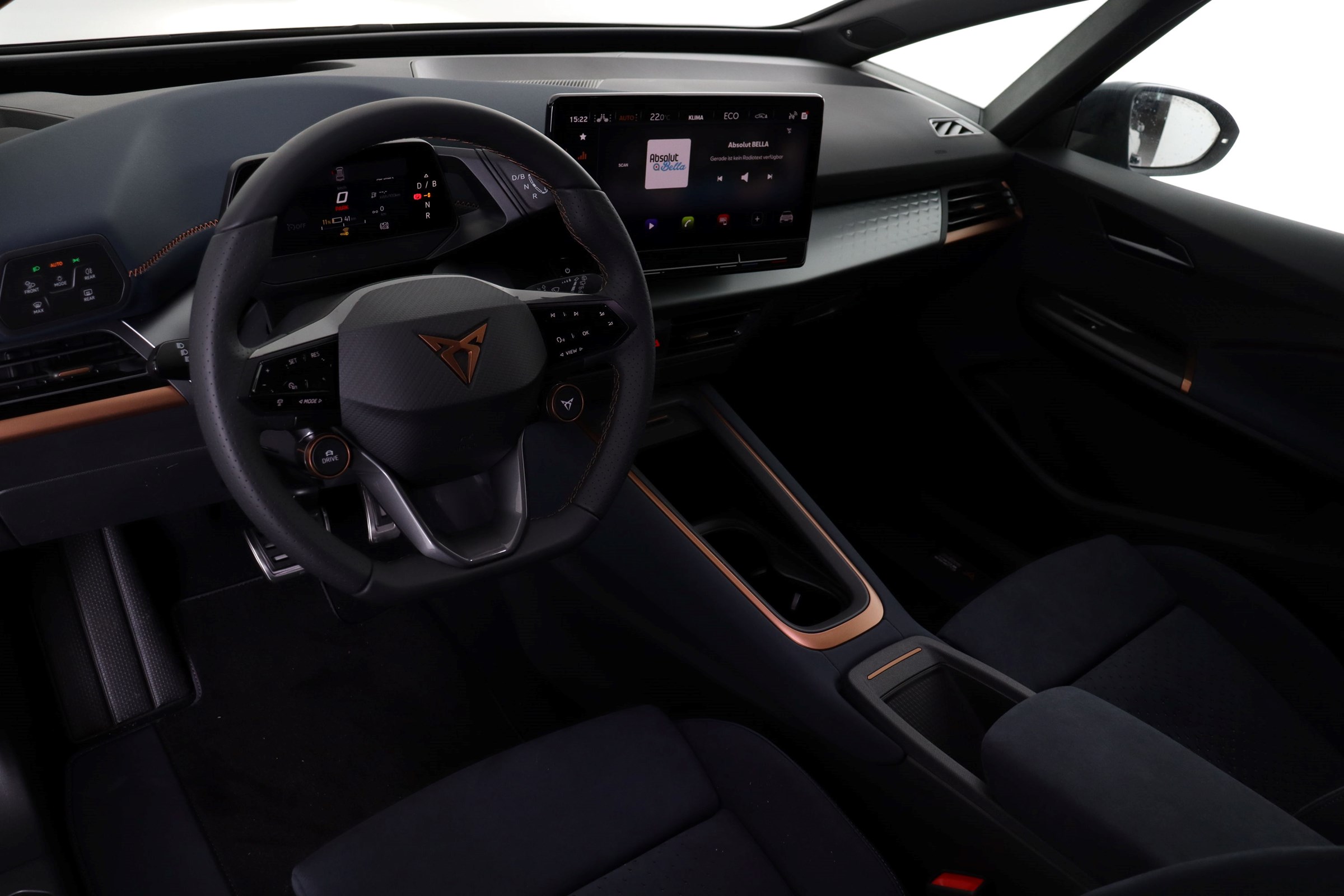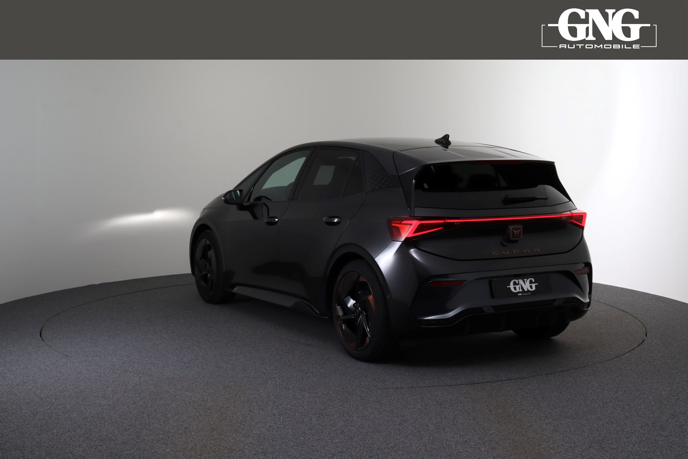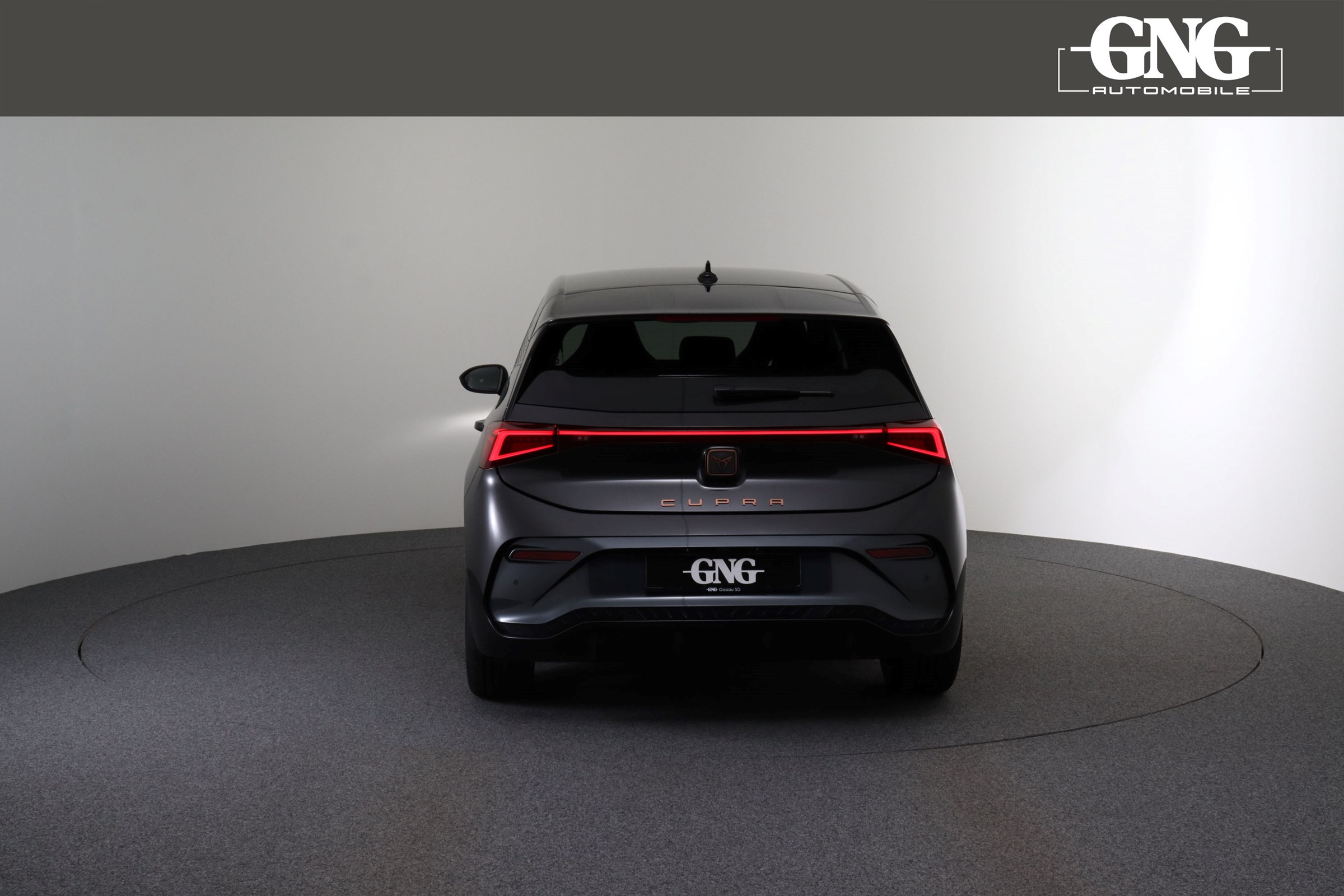 5.3" Full Digital Cockpit ABS, EBV elektronische Bremskraft-verteilung Airbag: Airbag Beifahrer deaktivierbar Airbag: Airbag Fahrer und Beifahrer Airbag: Kopfairbags vorne und hinten Airbag: Seitenairbags für Fahrer und Beifahrer Ambiente Innenraumbeleuchtung "Multicolor" mit 6 Farben Assist: Ausweichunterstützung / Abbiegeassistent Assist: Einparkhilfe vorne und hinten mit optischer Anzeige Assist: Lane assist (Spurhalteassistent) Assist: Regen-/Lichtsensor Assist: Tiredness detection (Müdigkeitserkennung) Aussenspiegel elektrisch einstell-, beheiz- und einklappbar mit Beifahrerabsenkfunktion Aussenspiegel in Cosmo Grey, Türgriffe in Wagenfarbe CUPRA Drive Profile mit "driving experience button" Range, Comfort, Performance, CUPRA, Individual Dreipunkt-Automatiksicherheitsgurte auf allen Plätzen Elektronisches Stabilitäts-Programm Garantie: Cupra 12 Jahre Gewährleistung gegen Karosserie-Durchrostung Garantie: Cupra 3 Jahre Lack-Gewährleistung Garantie: Cupra Garantie 2 Jahre ohne Kilometerbegrenzung Garantie: Cupra Garantie Batterie- Gewährleistung 8 Jahre oder 160’000 KM auf 70% Batterieleistung. Getriebe: 1-Gang Automatik Heckscheiben-Wisch-/Waschanlage mit Intervall Innenspiegel automatisch abblendbar Klima: 2-Zonen Climatronic Klima: Elektrische Luftzusatzheizung Lackierung: Uni-Lackierung Ladekabel für Haushaltssteckdose (Mode 2) Lenkrad: Beheizbares Ledermultifunktionslenkrad Lenkrad: Supersportlenkrad mit Start-/ Drive Profile-Knopfsystem,beheizbar Licht: Drittes Bremslicht Licht: Durchgehende Full LED-Heckleuchten Licht: Full LED-Scheinwerfer für Abblend-und Fernlicht und Coming Home Funktion Licht: LED-Nebelscheinwerfer Media: 12" Infotainment (MIB3) Media: 2 USB C Anschlüsse hinten und vorne Media: CUPRA Connect Online Infotainment für Navigationssystem Media: CUPRA Connect Safety & Services für Navigationssystem Media: DAB+ (Digital Audio Broadcasting) Media: Mobiltelefon Freisprechanlage Bluetooth Pollenfilter (Staubfilter) Räder: Alufelgen 7.5J x 19", "TYPHOON" 31/1 Machined in Sport Black Räder: Tool Kit 19'' und 20'' Servolenkung geschwindigkeitsabhängig Sitze: CUPRA Sport Schalensitze in Textil, schwarz "SEAQUAL" Sitze: Fahrersitz höhenverstellbar Sitze: Geteilt abklappbare Rücksitzlehne 1/3 - 2/3 Sitze: Kindersitzverankerung ISOFIX hinten Sitze: Mittelarmlehne vorne Sonnenblende Fahrer und Beifahrerseite Wegfahrsperre elektronisch Zentralverriegelung "Keyless-Go"