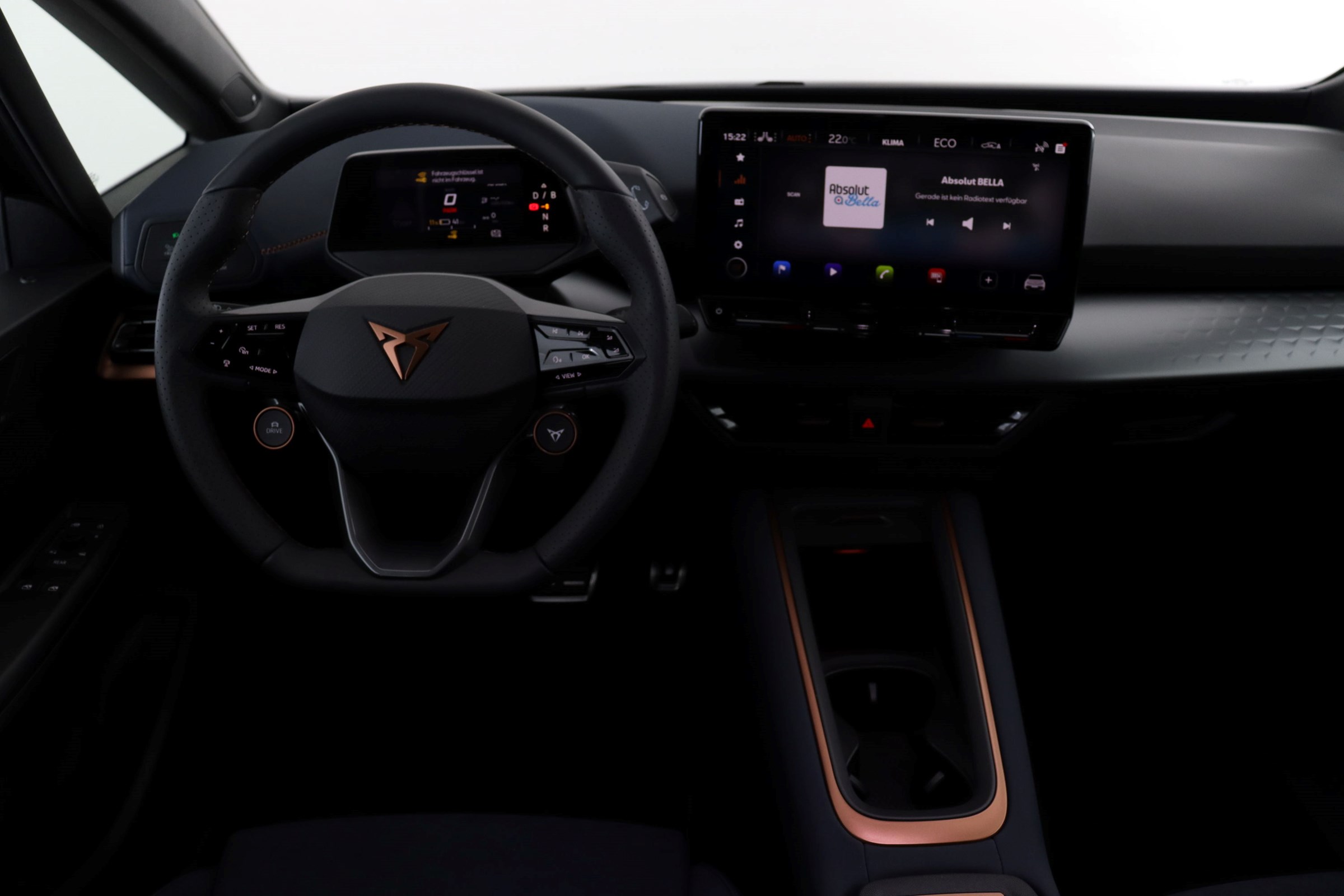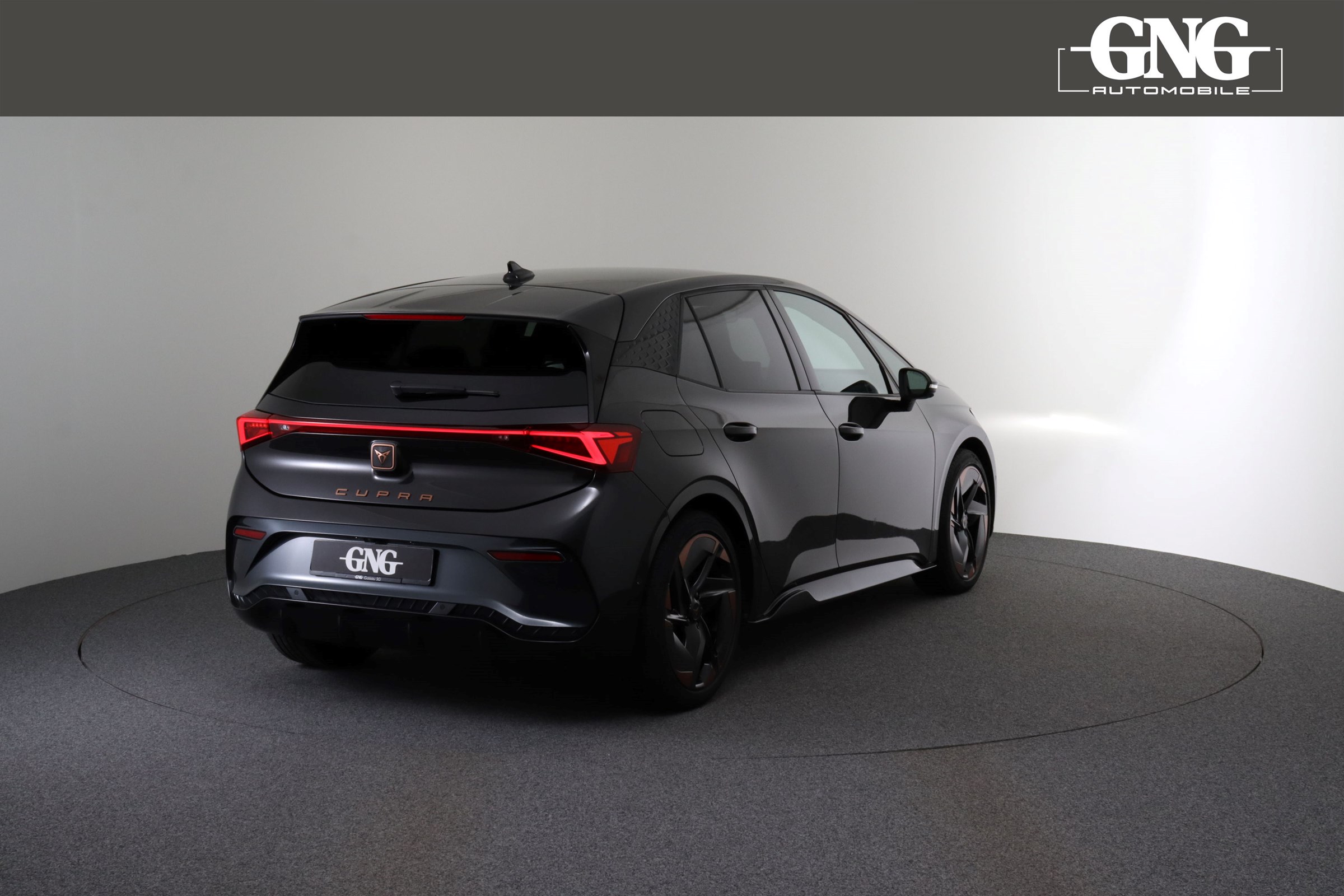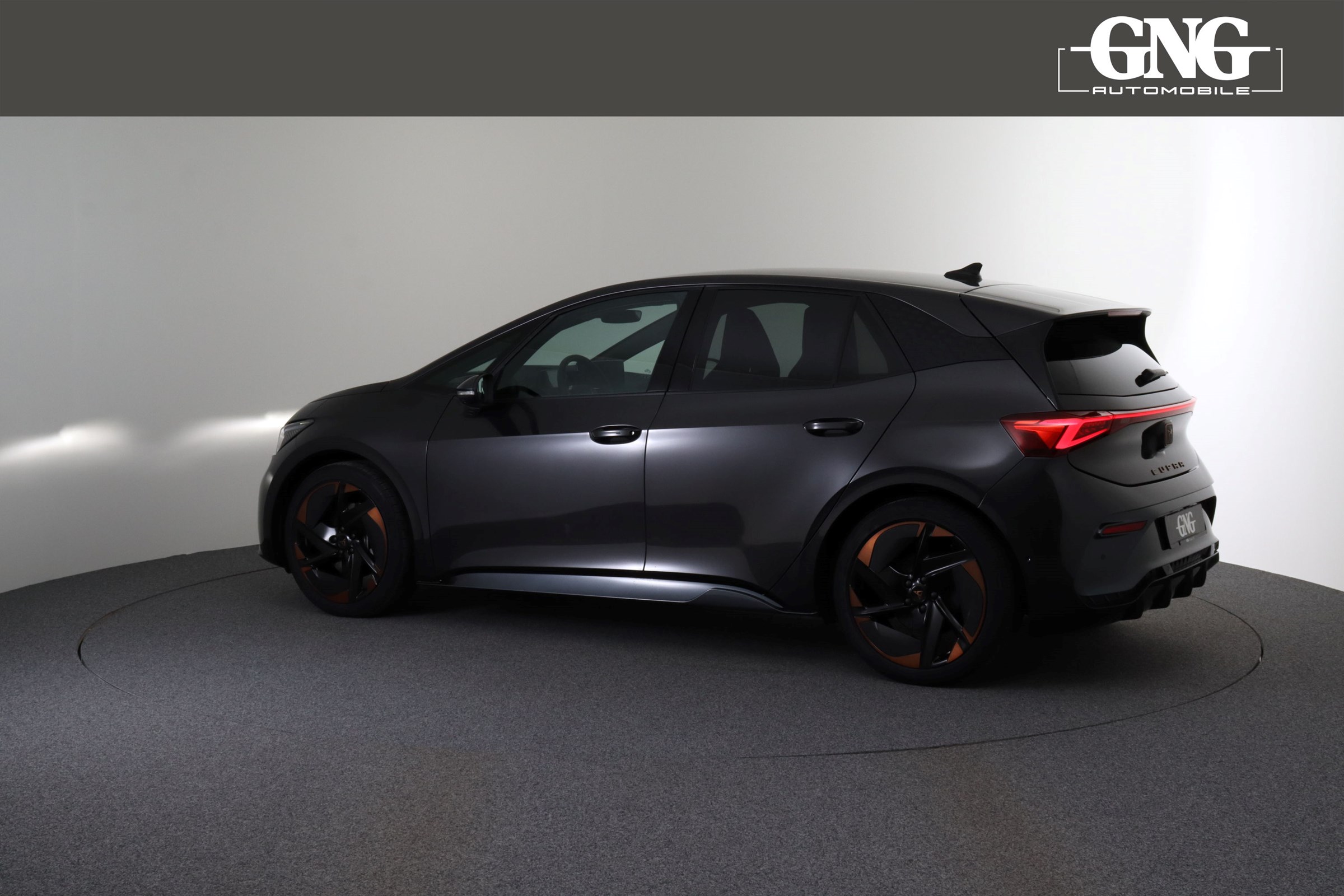 5.3" Full Digital Cockpit ABS, EBV elektronische Bremskraft-verteilung Airbag: Airbag Beifahrer deaktivierbar Airbag: Airbag Fahrer und Beifahrer Airbag: Kopfairbags vorne und hinten Airbag: Seitenairbags für Fahrer und Beifahrer Ambiente Innenraumbeleuchtung "Multicolor" mit 6 Farben Assist: Ausweichunterstützung / Abbiegeassistent Assist: Einparkhilfe vorne und hinten mit optischer Anzeige Assist: Lane assist (Spurhalteassistent) Assist: Regen-/Lichtsensor Assist: Tiredness detection (Müdigkeitserkennung) Aussenspiegel elektrisch einstell-, beheiz- und einklappbar mit Beifahrerabsenkfunktion Aussenspiegel in Cosmo Grey, Türgriffe in Wagenfarbe CUPRA Drive Profile mit "driving experience button" Range, Comfort, Performance, CUPRA, Individual Dreipunkt-Automatiksicherheitsgurte auf allen Plätzen Elektronisches Stabilitäts-Programm Garantie: Cupra 12 Jahre Gewährleistung gegen Karosserie-Durchrostung Garantie: Cupra 3 Jahre Lack-Gewährleistung Garantie: Cupra Garantie 2 Jahre ohne Kilometerbegrenzung Garantie: Cupra Garantie Batterie- Gewährleistung 8 Jahre oder 160’000 KM auf 70% Batterieleistung. Getriebe: 1-Gang Automatik Heckscheiben-Wisch-/Waschanlage mit Intervall Innenspiegel automatisch abblendbar Klima: 2-Zonen Climatronic Klima: Elektrische Luftzusatzheizung Lackierung: Uni-Lackierung Ladekabel für Haushaltssteckdose (Mode 2) Lenkrad: Beheizbares Ledermultifunktionslenkrad Lenkrad: Supersportlenkrad mit Start-/ Drive Profile-Knopfsystem,beheizbar Licht: Drittes Bremslicht Licht: Durchgehende Full LED-Heckleuchten Licht: Full LED-Scheinwerfer für Abblend-und Fernlicht und Coming Home Funktion Licht: LED-Nebelscheinwerfer Media: 12" Infotainment (MIB3) Media: 2 USB C Anschlüsse hinten und vorne Media: CUPRA Connect Online Infotainment für Navigationssystem Media: CUPRA Connect Safety & Services für Navigationssystem Media: DAB+ (Digital Audio Broadcasting) Media: Mobiltelefon Freisprechanlage Bluetooth Pollenfilter (Staubfilter) Räder: Alufelgen 7.5J x 19", "TYPHOON" 31/1 Machined in Sport Black Räder: Tool Kit 19'' und 20'' Servolenkung geschwindigkeitsabhängig Sitze: CUPRA Sport Schalensitze in Textil, schwarz "SEAQUAL" Sitze: Fahrersitz höhenverstellbar Sitze: Geteilt abklappbare Rücksitzlehne 1/3 - 2/3 Sitze: Kindersitzverankerung ISOFIX hinten Sitze: Mittelarmlehne vorne Sonnenblende Fahrer und Beifahrerseite Wegfahrsperre elektronisch Zentralverriegelung "Keyless-Go"