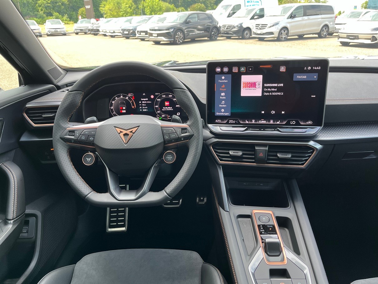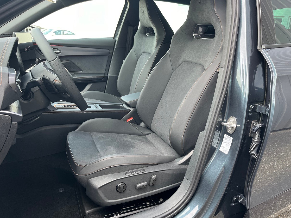 3-Punkt-Sicherheitsgurte auf allen Plätzen ABS, EBV elektronische Bremskraft-verteilung Abgedunkelte Scheiben ab B-Säule hinten Airbag: Airbag Beifahrer deaktivierbar Airbag: Airbag Fahrer und Beifahrer Airbag: Kopfairbags vorne und hinten Airbag: Seitenairbags für Fahrer und Beifahrer Alarmanlage mit Innenraumüberwachung Assist: Aufmerksamkeits- und Müdigkeitserkennung (ADA) Assist: Ausweichunterstützung / Abbiegeassistent Assist: Automatische Distanzregelung ACC Assist: City Notbremsfunktion Assist: Einparkhilfe vorne und hinten Assist: Elektronische Parkbremse mit Auto Hold Funktion Assist: Lane assist (Spurhalteassistent) Assist: Multifunktionskamera Assist: Multikollisionsbremse Assist: Prädiktive Speedlimiter Assist: Regen-/Lichtsensor Assist: Traffic sign recognition (Verkehrszeichenerkennung) Assist: Umfeldbeobachtung Front-Assist Aussenspiegel elektrisch einstell-, beheiz- und einklappbar Aussenspiegel mit Beifahrerspiegelabsenkung Aussenspiegel mit LED-Umfeldbeleuchtung Automatisch abblendender Innenrückspiegel Beleuchtete Sonnenblende links mit abdeckbarem Spiegel und Lasche, rechts mit abdeckbarem Spiegel ESC mit EBA, DSR, XDS und Reifendruckkontrolle Elektrische Fensterheber vorne und hinten mit Komfortschaltung und Einklemmschutz Fahrwerk: Progressivlenkung Fussmatten vorne und hinten Garantie: Cupra 12 Jahre Gewährleistung gegen Karosserie-Durchrostung Garantie: Cupra 3 Jahre Lack-Gewährleistung Garantie: Cupra Garantie 2 Jahre ohne Kilometerbegrenzung Heckscheiben-Wisch-/Waschanlage mit Intervall Kindersitzverankerung ISOFIX (äussere Plätze hinten) Klima: 3-Zonen Climatronic mit Fondraumbedienung LED-Innenraumbeleuchtung mit Ambientebeleuchtung"Monochrom" Lackierung: Uni-Lackierung Lenkrad: Supersportlenkrad mit Start-/ Drive Profile-Knopfsystem und Schaltwippen, beheizbar Licht: Coming-home-Funktion Licht: Drittes Bremslicht Licht: Durchgehende Full LED-Heckleuchten Licht: Fernlicht-Assistent Licht: LED Heckleuchten mit beleuchtetem 3D CUPRA Logo Licht: LED-Heckleuchten mit dynamischem Blinklicht Licht: LED-Nebelscheinwerfer mit Cornering-Funktion Licht: LED-Scheinwerfer für Abblend- und Fernlicht Licht: Leuchtweitenregulierung dynamisch Licht: Nebelschlussleuchte Media: 12,9" Infotainment (MIB3) Media: 2 USB C Anschlüsse hinten und vorne Media: CUPRA Connect Online Infotainment Media: CUPRA Connect Remote & Access Media: CUPRA Connect Safety & Services Media: CUPRA Connectivity Box Media: DAB+ (Digital Audio Broadcasting) Media: Mobiltelefon Freisprechanlage Bluetooth Pyrotechnische Gurtstraffer und Gurtkraftbegrenzer Räder: Alufelgen 8J x 18", "TEMPEST" Machined in Silver Räder: Reifendruckkontrollsystem Räder: Reifenreparatur-Set (Tire Fit) Servolenkung mit geschwindigkeitsabhängiger Lenkkraftunterstützung Sitze: 3 verstellbare Kopfstützen hinten Sitze: CUPRA Sportsitze in "Sharp Textil schwarz" Sitze: Geteilt abklappbare Rücksitzlehne 1/3 - 2/3 Sitze: Kopfstützen vorne (integrierte) Sitze: Mittelarmlehne hinten Sitze: Mittelarmlehne vorne Sitze: Sitzheizung für Vordersitze, getrennt regelbar Sitze: Vordersitze höhenverstellbar mit Lendenwirbelstütze Stopp - Start- und Rekuperationssystem Wegfahrsperre elektronisch Zentralverriegelung "Keyless-Go" Zentralverriegelung mit Funkfernbedienung, 2 Funkschlüssel