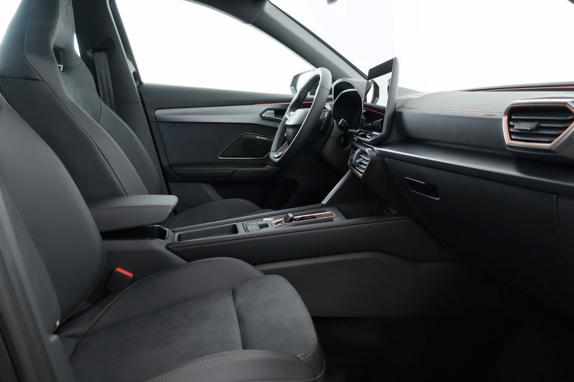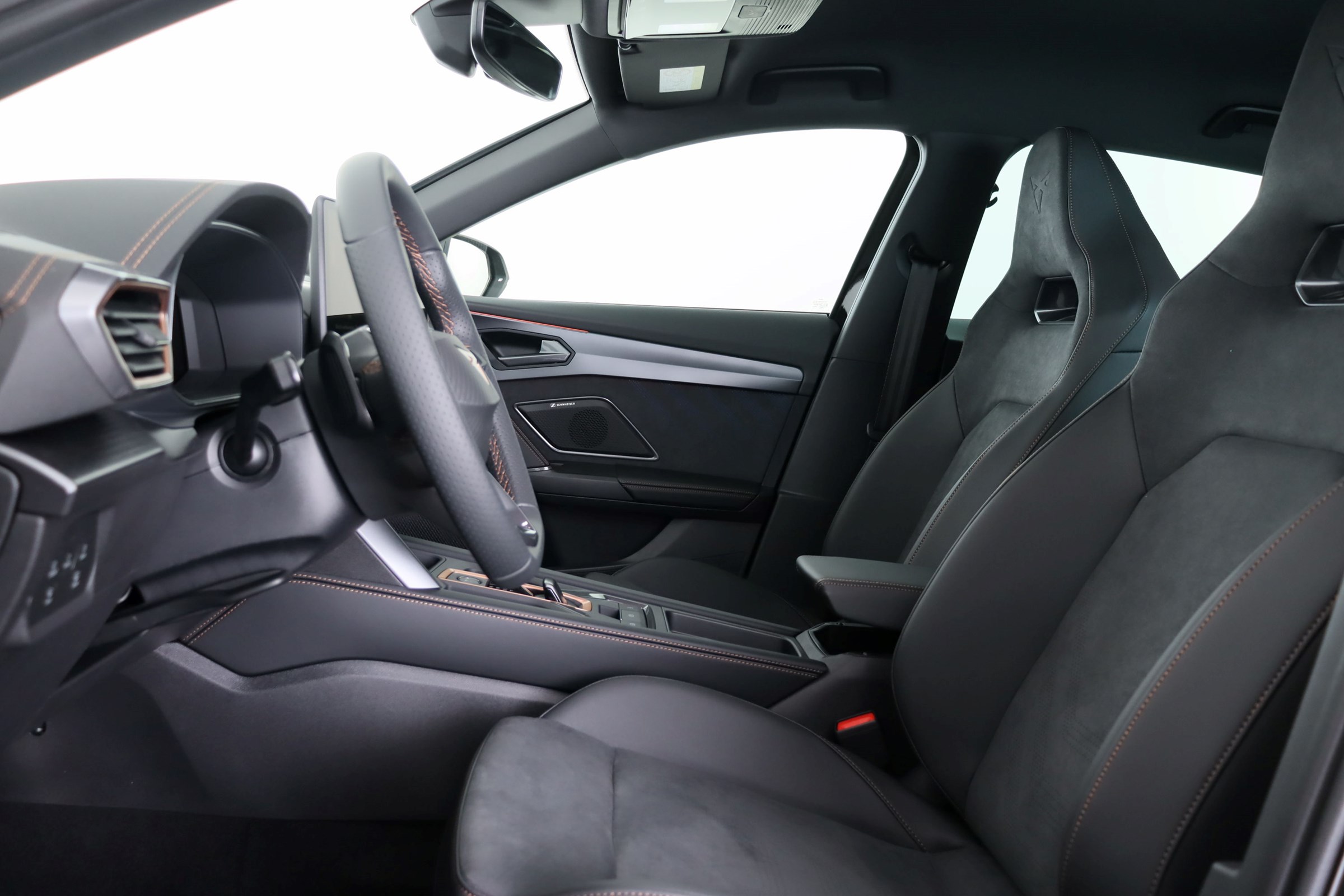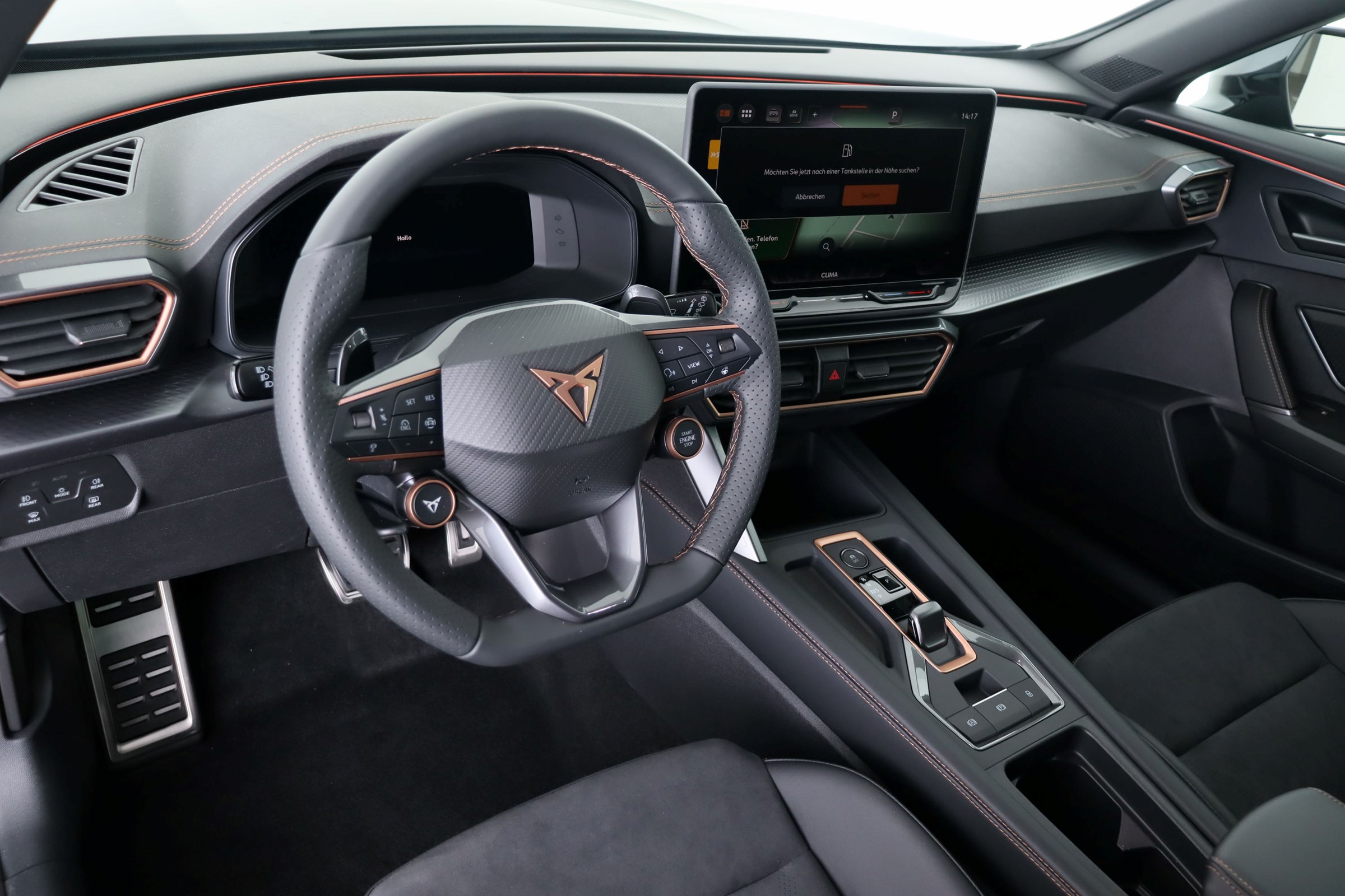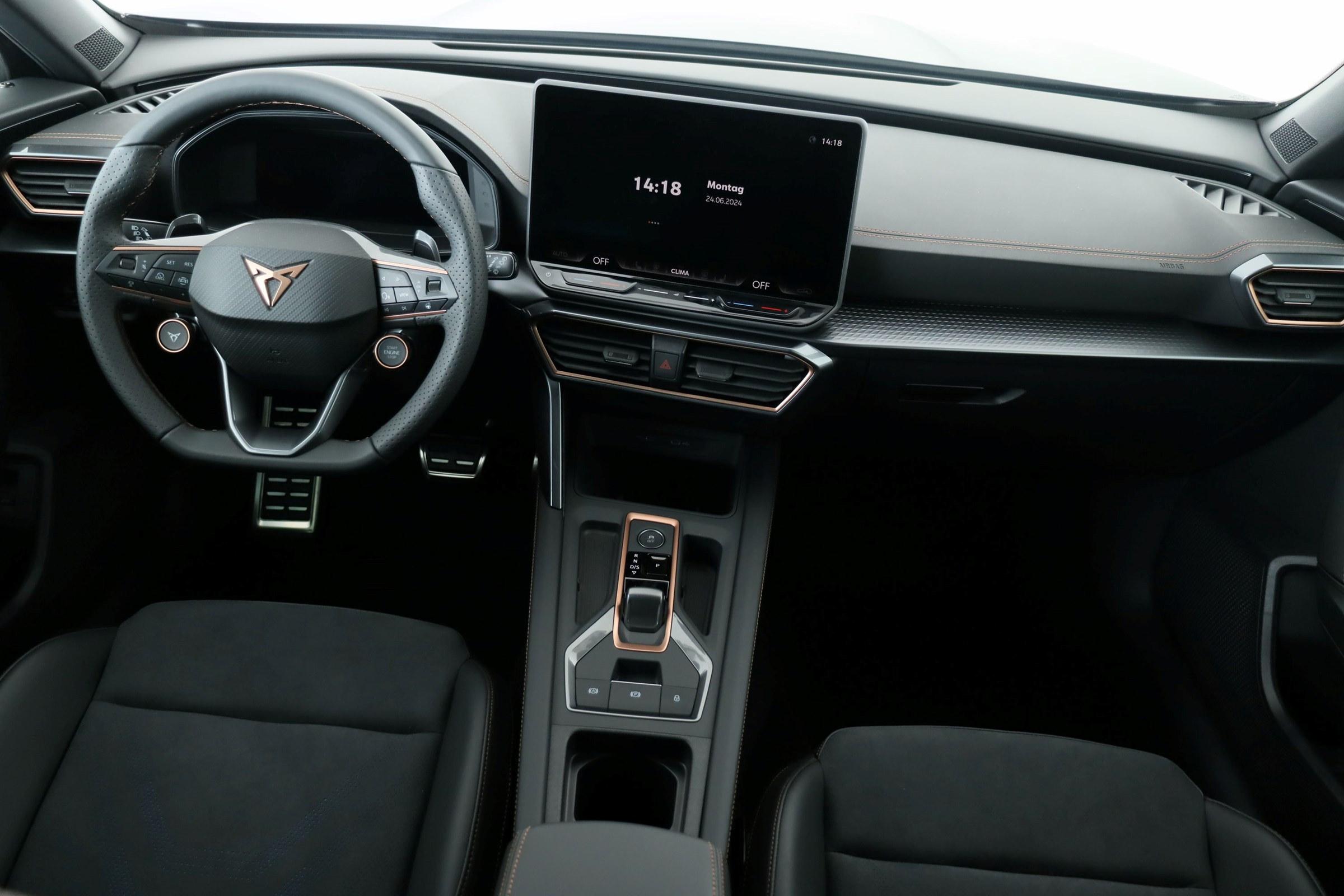 3-Punkt-Sicherheitsgurte auf allen Plätzen ABS, EBV elektronische Bremskraft-verteilung Abgedunkelte Scheiben ab B-Säule hinten Airbag: Airbag Beifahrer deaktivierbar Airbag: Airbag Fahrer und Beifahrer Airbag: Kopfairbags vorne und hinten Airbag: Seitenairbags für Fahrer und Beifahrer Alarmanlage mit Innenraumüberwachung Assist: Aufmerksamkeits- und Müdigkeitserkennung (ADA) Assist: Ausweichunterstützung / Abbiegeassistent Assist: Automatische Distanzregelung ACC Assist: City Notbremsfunktion Assist: Einparkhilfe vorne und hinten Assist: Elektronische Parkbremse mit Auto Hold Funktion Assist: Lane assist (Spurhalteassistent) Assist: Multifunktionskamera Assist: Multikollisionsbremse Assist: Prädiktive Speedlimiter Assist: Regen-/Lichtsensor Assist: Traffic sign recognition (Verkehrszeichenerkennung) Assist: Umfeldbeobachtung Front-Assist Aussenspiegel elektrisch einstell-, beheiz- und einklappbar Aussenspiegel mit Beifahrerspiegelabsenkung Aussenspiegel mit LED-Umfeldbeleuchtung Automatisch abblendender Innenrückspiegel Beleuchtete Sonnenblende links mit abdeckbarem Spiegel und Lasche, rechts mit abdeckbarem Spiegel ESC mit EBA, DSR, XDS und Reifendruckkontrolle Elektrische Fensterheber vorne und hinten mit Komfortschaltung und Einklemmschutz Fahrwerk: Progressivlenkung Fussmatten vorne und hinten Garantie: Cupra 12 Jahre Gewährleistung gegen Karosserie-Durchrostung Garantie: Cupra 3 Jahre Lack-Gewährleistung Garantie: Cupra Garantie 2 Jahre ohne Kilometerbegrenzung Heckscheiben-Wisch-/Waschanlage mit Intervall Kindersitzverankerung ISOFIX (äussere Plätze hinten) Klima: 3-Zonen Climatronic mit Fondraumbedienung LED-Innenraumbeleuchtung mit Ambientebeleuchtung"Monochrom" Lackierung: Uni-Lackierung Lenkrad: Supersportlenkrad mit Start-/ Drive Profile-Knopfsystem und Schaltwippen, beheizbar Licht: Coming-home-Funktion Licht: Drittes Bremslicht Licht: Durchgehende Full LED-Heckleuchten Licht: Fernlicht-Assistent Licht: LED Heckleuchten mit beleuchtetem 3D CUPRA Logo Licht: LED-Heckleuchten mit dynamischem Blinklicht Licht: LED-Nebelscheinwerfer mit Cornering-Funktion Licht: LED-Scheinwerfer für Abblend- und Fernlicht Licht: Leuchtweitenregulierung dynamisch Licht: Nebelschlussleuchte Media: 12,9" Infotainment (MIB3) Media: 2 USB C Anschlüsse hinten und vorne Media: CUPRA Connect Remote & Access Media: CUPRA Connect Safety & Services Media: CUPRA Connectivity Box Media: DAB+ (Digital Audio Broadcasting) Media: Mobiltelefon Freisprechanlage Bluetooth Pyrotechnische Gurtstraffer und Gurtkraftbegrenzer Räder: Alufelgen 8J x 18", "TEMPEST" Machined in Silver Räder: Reifendruckkontrollsystem Räder: Reifenreparatur-Set (Tire Fit) Servolenkung mit geschwindigkeitsabhängiger Lenkkraftunterstützung Sitze: 3 verstellbare Kopfstützen hinten Sitze: CUPRA Sportsitze in "Sharp Textil schwarz" Sitze: Geteilt abklappbare Rücksitzlehne 1/3 - 2/3 Sitze: Kopfstützen vorne (integrierte) Sitze: Mittelarmlehne hinten Sitze: Mittelarmlehne vorne Sitze: Sitzheizung für Vordersitze, getrennt regelbar Sitze: Vordersitze höhenverstellbar mit Lendenwirbelstütze Stopp - Start- und Rekuperationssystem Wegfahrsperre elektronisch Zentralverriegelung "Keyless-Go" Zentralverriegelung mit Funkfernbedienung, 2 Funkschlüssel