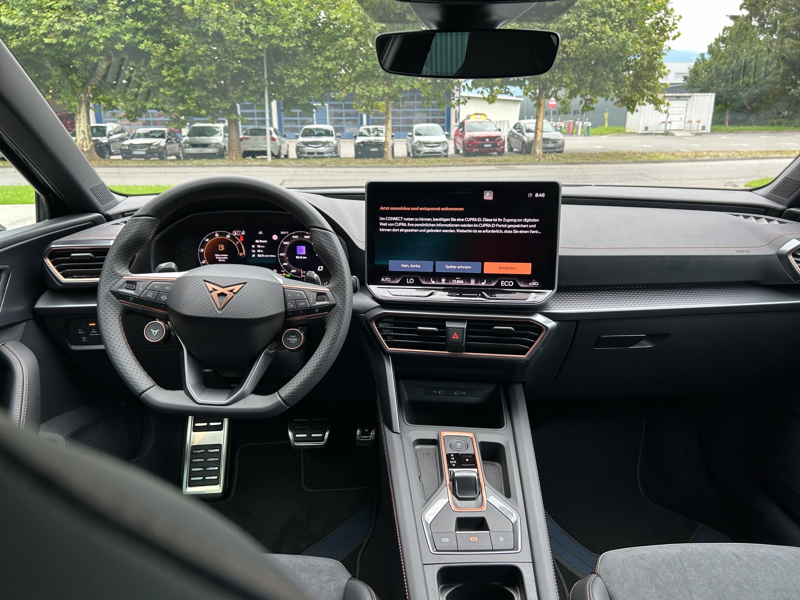 Serienausstattung ABS, EBV elektronische Bremskraft-verteilung Abgedunkelte Scheiben ab B-Säule hinten Airbag: Airbag Beifahrer deaktivierbar Airbag: Airbag Fahrer und Beifahrer Airbag: Seitenairbags vorne mit Kopfairbag und Interaktionsairbag vorne Assist: Aufmerksamkeits- und Müdigkeitserkennung (ADA) Assist: Ausweichunterstützung / Abbiegeassistent Assist: Automatische Distanzregelung ACC Assist: Einparkhilfe vorne und hinten Assist: Elektronische Parkbremse mit Auto Hold Funktion Assist: Lane assist (Spurhalteassistent) Assist: Multifunktionskamera Assist: Multikollisionsbremse Assist: Prädiktive Speedlimiter Assist: Regen-/Lichtsensor Assist: Traction Control (TCS) Assist: Traffic sign recognition (Verkehrszeichenerkennung) CUPRA Drive Profile mit "driving experience button" Comfort, Performance, Drift, Individual Dekor: Dekorblenden in Copper Dreipunkt-Automatiksicherheitsgurte auf allen Plätzen ESC mit EBA, DSR und Reifendruckkontrolle Elektrische Fensterheber vorne und hinten mit Komfortschaltung und Einklemmschutz Fahrwerk: Adaptive Fahrwerksregelung DCC Fussmatten vorne und hinten Garantie: Cupra 12 Jahre Gewährleistung gegen Karosserie-Durchrostung Garantie: Cupra 3 Jahre Lack-Gewährleistung Garantie: Cupra Hersteller-Garantieverlängerung für das 3., 4. und 5. Jahr / max.100000 km Heckscheiben-Wisch-/Waschanlage mit Intervall Innenspiegel automatisch abblendbar Klima: 3-Zonen Climatronic mit Fondraumbedienung Lackierung: Uni-Lackierung Ladekabel für Haushaltssteckdose (Mode 2) Lenkrad: Supersportlenkrad mit Start-/ Drive Profile-Knopfsystem und Schaltwippen, beheizbar Licht: Coming Leaving Home Funktion Licht: Drittes Bremslicht Licht: Durchgehende Full LED-Heckleuchten Licht: Dynamische LED-Blinker Licht: Fernlicht-Assistent Licht: LED Heckleuchten mit beleuchtetem 3D CUPRA Logo Licht: LED-Nebelscheinwerfer mit Cornering-Funktion Licht: LED-Scheinwerfer für Abblend- und Fernlicht Licht: Leuchtweitenregulierung Licht: Nebelschlussleuchte Media: 12,9" Infotainment (MIB3) Media: 2 USB C Anschlüsse hinten und vorne Media: CUPRA Connect Online Infotainment Media: CUPRA Connect Remote & Access Media: CUPRA Connect Safety & Services Media: CUPRA Connectivity Box Media: DAB+ (Digital Audio Broadcasting) Media: Mobiltelefon Freisprechanlage Bluetooth Pyrotechnische Gurtstraffer und Gurtkraftbegrenzer vorne Räder: Alufelgen 8J x 19", "POLAR" Machined in Sport Black Silver Räder: Reifenreparatur-Set (Tire Fit) Servolenkung mit geschwindigkeitsabhängiger Lenkkraftunterstützung Sicherheitsgurtkontrolle für alle Sitze Sitze: 2 verstellbare Kopfstützen vorne und 3 hinten Sitze: Fahrer- und Beifahrersitz mit Lendenwirbelstütze Sitze: Geteilt abklappbare Rücksitzlehne 1/3 - 2/3 Sitze: Kindersitzverankerung ISOFIX hinten Sitze: Kopfstützen vorne (integrierte) Sitze: Lendenwirbelstütze in den Vordersitzlehnen Sitze: Mittelarmlehne hinten Sitze: Mittelarmlehne vorne Sitze: Sitzheizung für Vordersitze, getrennt regelbar Sonnenblende Fahrer und Beifahrerseite Stopp - Start- und Rekuperationssystem Wegfahrsperre elektronisch Zentralverriegelung mit Funkfernbedienung, 2 Funkschlüssel