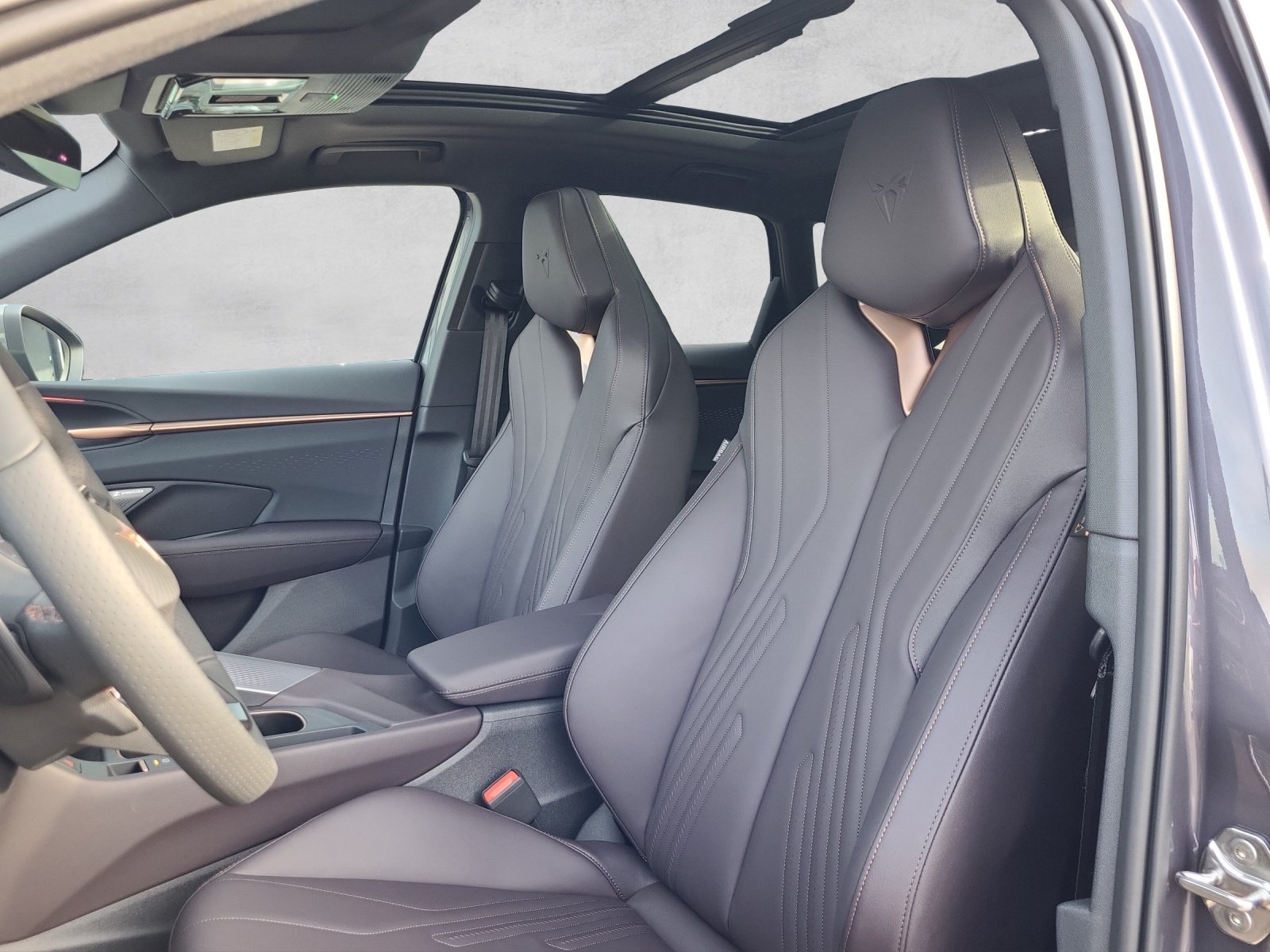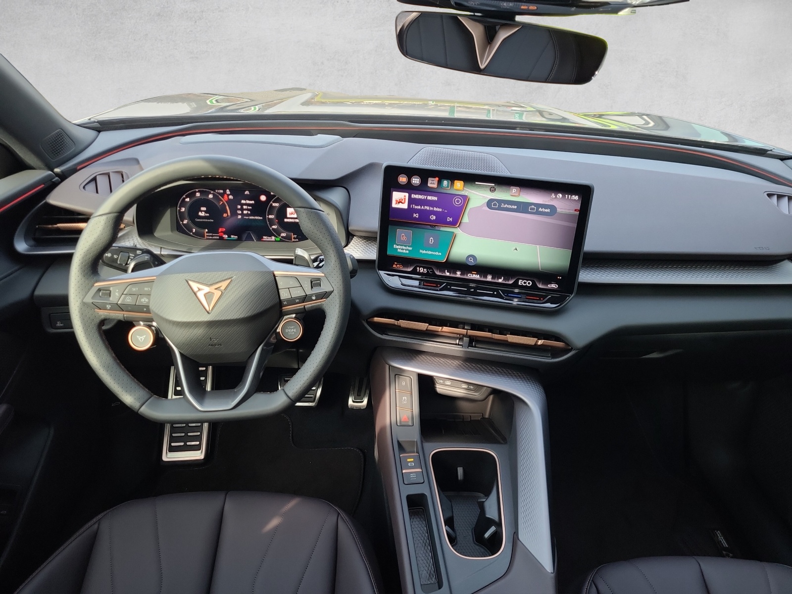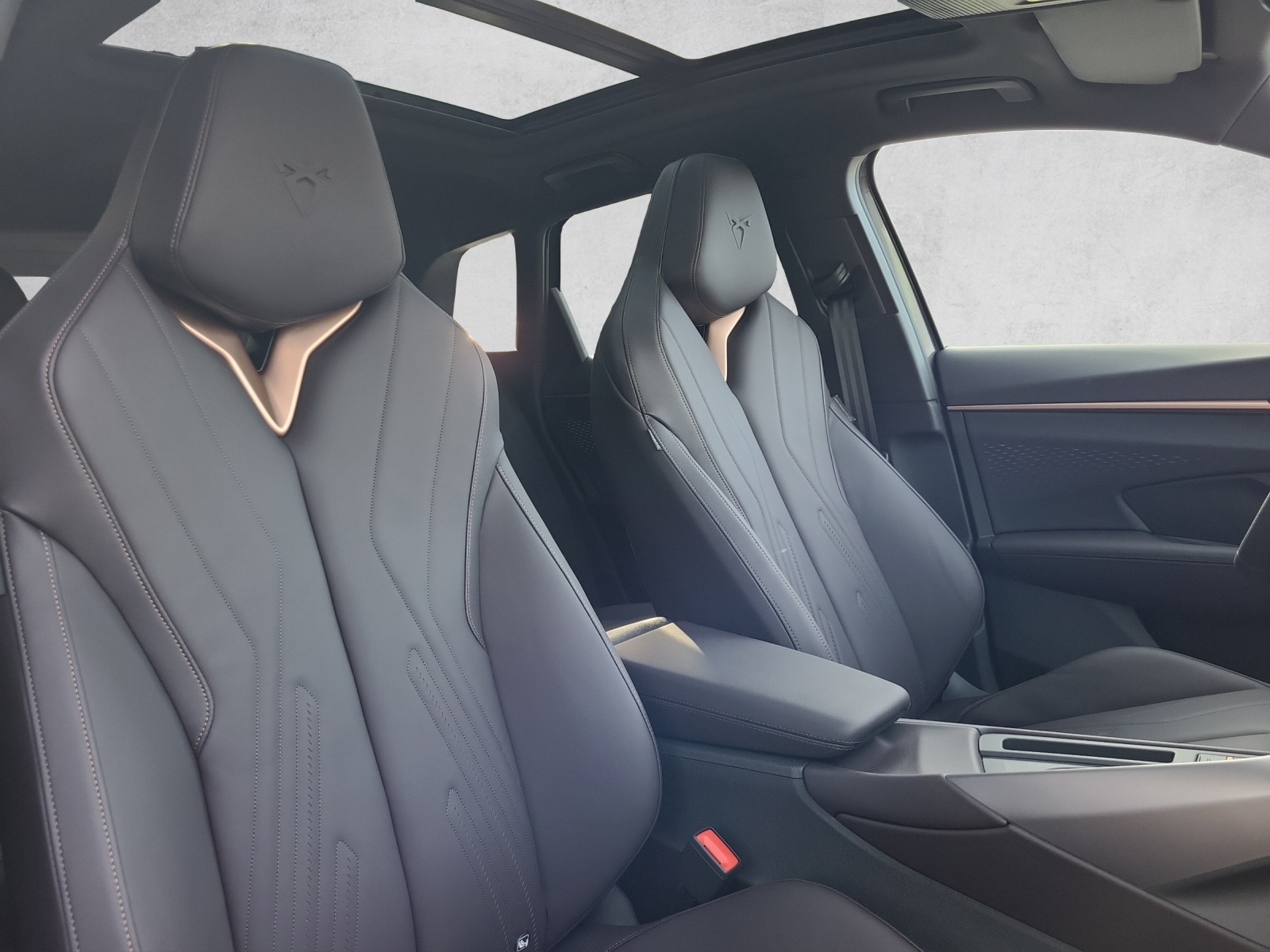 3-Punkt-Sicherheitsgurte auf allen Plätzen ABS, EBV elektronische Bremskraft-verteilung Abgedunkelte Scheiben ab B-Säule hinten Airbag: Airbag Beifahrer deaktivierbar Airbag: Airbag Fahrer und Beifahrer Airbag: Kopfairbags vorne und hinten Airbag: Seitenairbags für Fahrer und Beifahrer Alarmanlage mit Innenraumüberwachung Ambiente Innenraumbeleuchtung mit beleuchteten Türpanelen Assist: Aufmerksamkeits- und Müdigkeitserkennung (ADA) Assist: Ausweichunterstützung / Abbiegeassistent Assist: Automatische Distanzregelung ACC Assist: City Notbremsfunktion Assist: Einparkhilfe vorne und hinten mit Rückfahrkamera Assist: Elektronische Parkbremse mit Auto Hold Funktion Assist: Lane assist (Spurhalteassistent) Assist: Multifunktionskamera Assist: Multikollisionsbremse Assist: Prädiktive Speedlimiter Assist: Traffic sign recognition (Verkehrszeichenerkennung) Assist: Umfeldüberwachungssystem "Front-Assist" Aussenspiegel elektrisch einstell-, beheiz- und einklappbar Aussenspiegel mit LED-Umfeldbeleuchtung Beleuchtete Sonnenblende links mit abdeckbarem Spiegel und Lasche, rechts mit abdeckbarem Spiegel ESC mit EBA, DSR, XDS und Reifendruckkontrolle Einstiegsleisten beleuchtet Elektrische Fensterheber vorne und hinten mit Komfortschaltung und Einklemmschutz Fahrwerk: Adaptive Fahrwerksregelung DCC Fahrwerk: CUPRA Sportfahrwerk Fahrwerk: Progressivlenkung Fussmatten vorne und hinten Garantie: Cupra 12 Jahre Gewährleistung gegen Karosserie-Durchrostung Garantie: Cupra 3 Jahre Lack-Gewährleistung Garantie: Cupra Garantie 2 Jahre ohne Kilometerbegrenzung Garantie: Cupra Garantie Batterie- Gewährleistung 8 Jahre oder 160000 KM auf 70% Batterieleistung. Heckklappe elektrisch öffnend und schliessend "Virtual Pedal" Heckscheiben-Wisch-/Waschanlage mit Intervall Innenspiegel automatisch abblendbar Klima: 3-Zonen Climatronic mit Fondraumbedienung Lackierung: Uni-Lackierung Ladekabel für Haushaltssteckdose (Mode 2) Lenkrad: Leder Multifunktionslenkrad mit Schaltwippen, beheizbar Licht: Drittes Bremslicht Licht: Durchgehende Full LED-Heckleuchten Licht: LED Heckleuchten mit beleuchtetem 3D CUPRA Logo Licht: LED-Heckleuchten mit dynamischem Blinklicht Licht: LED-Nebelscheinwerfer mit Cornering-Funktion Licht: LED-Scheinwerfer für Abblend- und Fernlicht Licht: Leuchtweitenregulierung dynamisch Licht: Nebelschlussleuchte Media: 12,9" Infotainment (MIB3) Media: 2 USB C Anschlüsse hinten und vorne Media: CUPRA Connect Remote & Access / CUPRA Connect Safety & Services Media: CUPRA Connectivity Box Media: DAB+ (Digital Audio Broadcasting) Media: Mobiltelefon Freisprechanlage Bluetooth Mittelarmlehne vorne und hinten Pyrotechnische Gurtstraffer und Gurtkraftbegrenzer Räder: Alufelgen 8.5J x 19", "COSMIC" Machined in Sport Black Matt & Silver Räder: Reifendruckkontrollsystem Schlüsselloses Schliess- und Startsystem (KESSY Advance) Servolenkung mit geschwindigkeitsabhängiger Lenkkraftunterstützung Sitze: 3 verstellbare Kopfstützen hinten Sitze: CUPRA Sport Schalensitze in Textil, "DEEP OCEAN" "SEAQUAL" Sitze: Geteilt abklappbare Rücksitzlehne 1/3 - 2/3 Sitze: Geteilt abklappbare Rücksitzlehne mit Mittelarmlehne Sitze: Kindersitzverankerung ISOFIX hinten Sitze: Vordersitze höhenverstellbar mit Lendenwirbelstütze Stopp - Start- und Rekuperationssystem Wegfahrsperre elektronisch Zentralverriegelung mit Funkfernbedienung, 2 Funkschlüssel