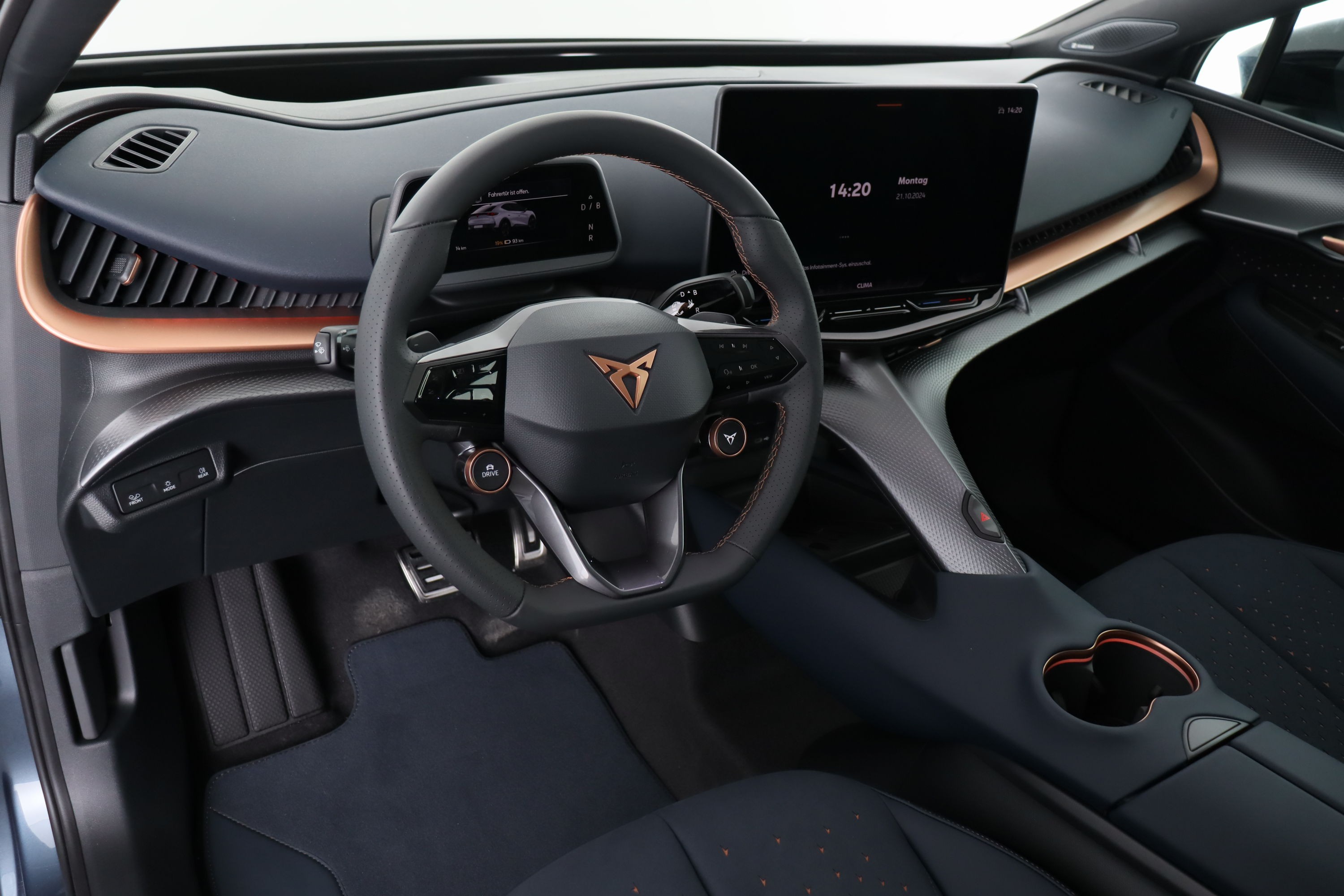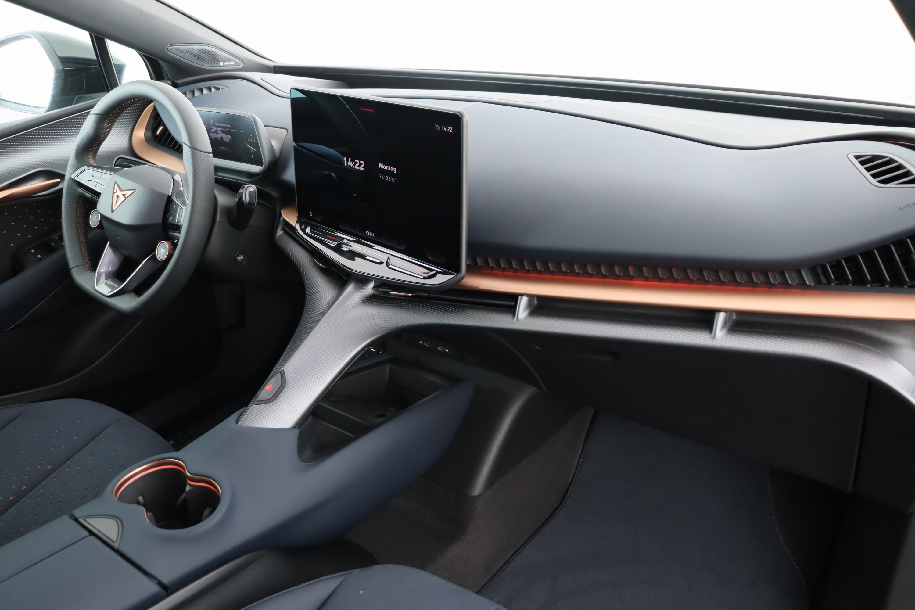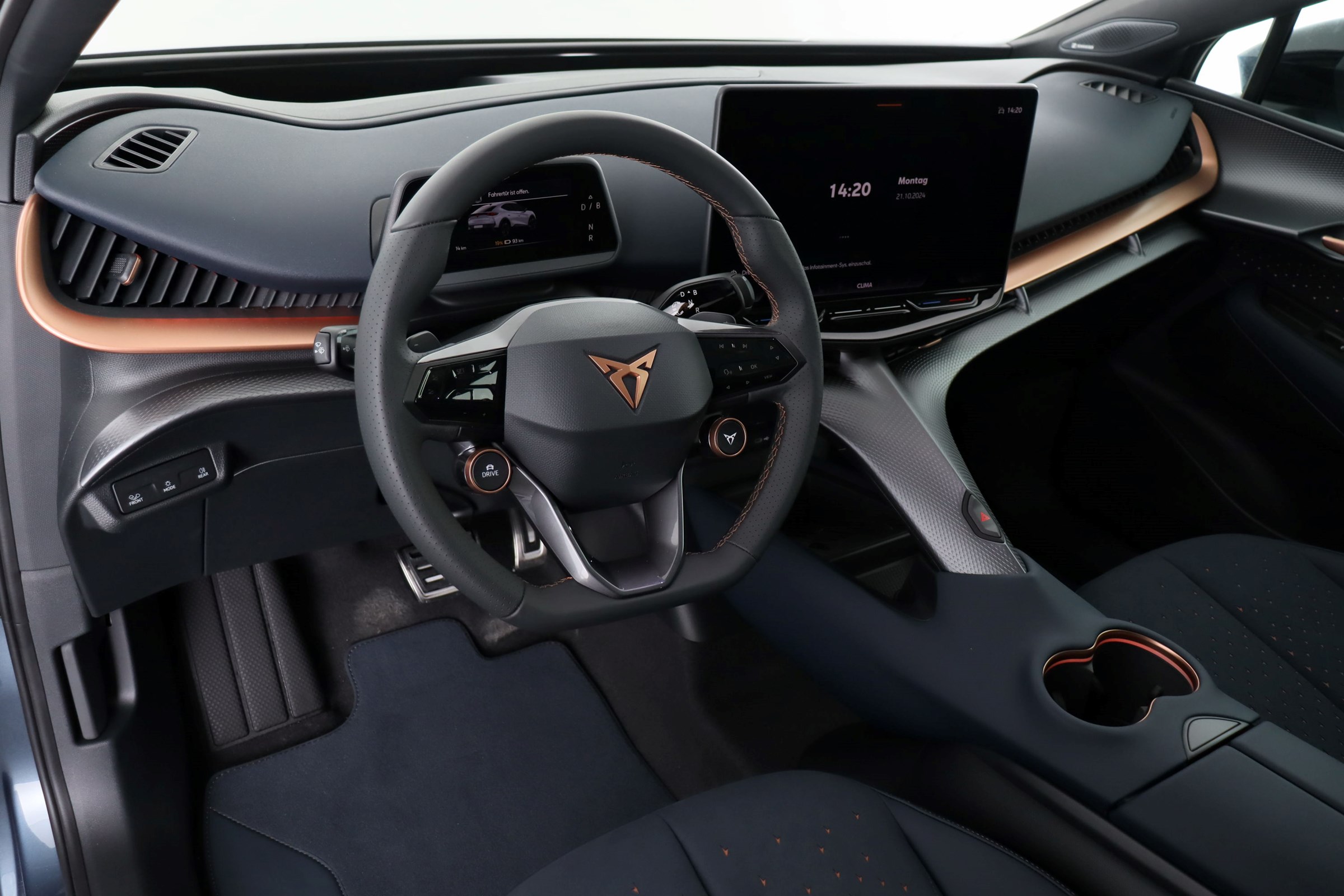 5.3" Full Digital Cockpit Abgedunkelte Scheiben ab B-Säule hinten Airbag: Airbag Beifahrer deaktivierbar Airbag: Airbag Fahrer und Beifahrer Airbag: Seitenairbags für Fahrer und Beifahrer Alarmanlage mit Innenraumüberwachung Assist: Aufmerksamkeits- und Müdigkeitserkennung (ADA) Assist: Ausweichunterstützung / Abbiegeassistent Assist: Exit Assist (Ausparkassistent) Assist: Exit Warning (Ausstiegswarner) Assist: Intelligenter Geschwindigkeitsassistent Assist: Parklenkassistent RPA (Remote Park Assist) Assist: PreCrash Sicherheitssystem Assist: Prädiktive automatische Distanzregelung ACC Assist: Regen-/Lichtsensor Assist: Side Assist (Spurwechselassistent) Assist: Top View Camera (Rundumblick) Assist: Traction Control (TCS) Assist: Traffic sign recognition (Verkehrszeichenerkennung) Assist: eCall Notruffunktion Augmented Reality Head-up-Display Aussenspiegel elektrisch einstell-, beheiz- und einklappbar mit Beifahrerabsenkfunktion- Automatisch abblendender Innenrückspiegel Dreipunkt-Automatiksicherheitsgurte auf allen Plätzen Einstiegsleisten beleuchtet Elektrische Fensterheber vorne und hinten mit Komfortschaltung und Einklemmschutz Elektronisches Stabilitäts-Programm (ESP) Fahrwerk: Adaptive Fahrwerksregelung DCC Garantie: Cupra 12 Jahre Gewährleistung gegen Karosserie-Durchrostung Garantie: Cupra 3 Jahre Lack-Gewährleistung Garantie: Cupra Garantie 2 Jahre ohne Kilometerbegrenzung Getriebe: 1-Gang Automatik Heckklappe elektrisch öffnend und schliessend "Virtual Pedal" Klima: 3-Zonen Climatronic mit Fondraumbedienung LED Ambientebeleuchtung "IMMERSIVE" Lackierung: Uni-Lackierung Lenkrad: Supersportlenkrad mit Drive Profile-Knopfsystem,beheizbar Licht: Drittes Bremslicht Licht: LED Heckleuchten mit beleuchtetem 3D CUPRA Logo Licht: Matrix LED Fernlicht Licht: Matrix LED Scheinwerfer Licht: Nebelschlussleuchte Media: 15" Infotainment (MIB3) Media: 2 USB C Anschlüsse hinten und vorne Media: Bluetooth-Freisprecheinrichtung Media: CUPRA Connect Online Infotainment Media: CUPRA Connect Remote & Access Media: CUPRA Connect Safety & Services Media: CUPRA Navigationssystem Media: DAB+ (Digital Audio Broadcasting) Media: SENNHEISER Sound System mit 12 High-End-Lautsprecher inkl. 300 Watt Subwoofer Media: Wireless Charger zur induktiven Smartphone Ladung Polster: Sitzbezüge in Dinamica "Dark Night" Räder: Alufelgen 9J x 21", "Katla" Machined Sport in Black/Copper Räder: Reifendruckkontrollsystem Schlüsselloses Schliess- und Startsystem (KESSY Advance) Servolenkung geschwindigkeitsabhängig Sitze: Elektrische Sitzverstellung mit Memory-Funktion für Fahrer- und Beifahrerseite Sitze: Geteilt abklappbare Rücksitzlehne mit Mittelarmlehne und Durchlademöglichkeit Sitze: Kindersitzbefestigungssystem ISOFIX Sitze: Kopfstützen hinten höhenverstellbar Sitze: Kopfstützen vorne (integrierte) Sitze: Lendenwirbelstütze Fahrer- und Beifahrerseite elektrisch einstellbar Sitze: Sitzheizung für Vorder- und Rücksitze, getrennt regelbar Sitze: Vordersitze höhenverstellbar Vorbereitung für Anhängevorrichtung Wegfahrsperre elektronisch Zentralverriegelung mit Fernbedienung