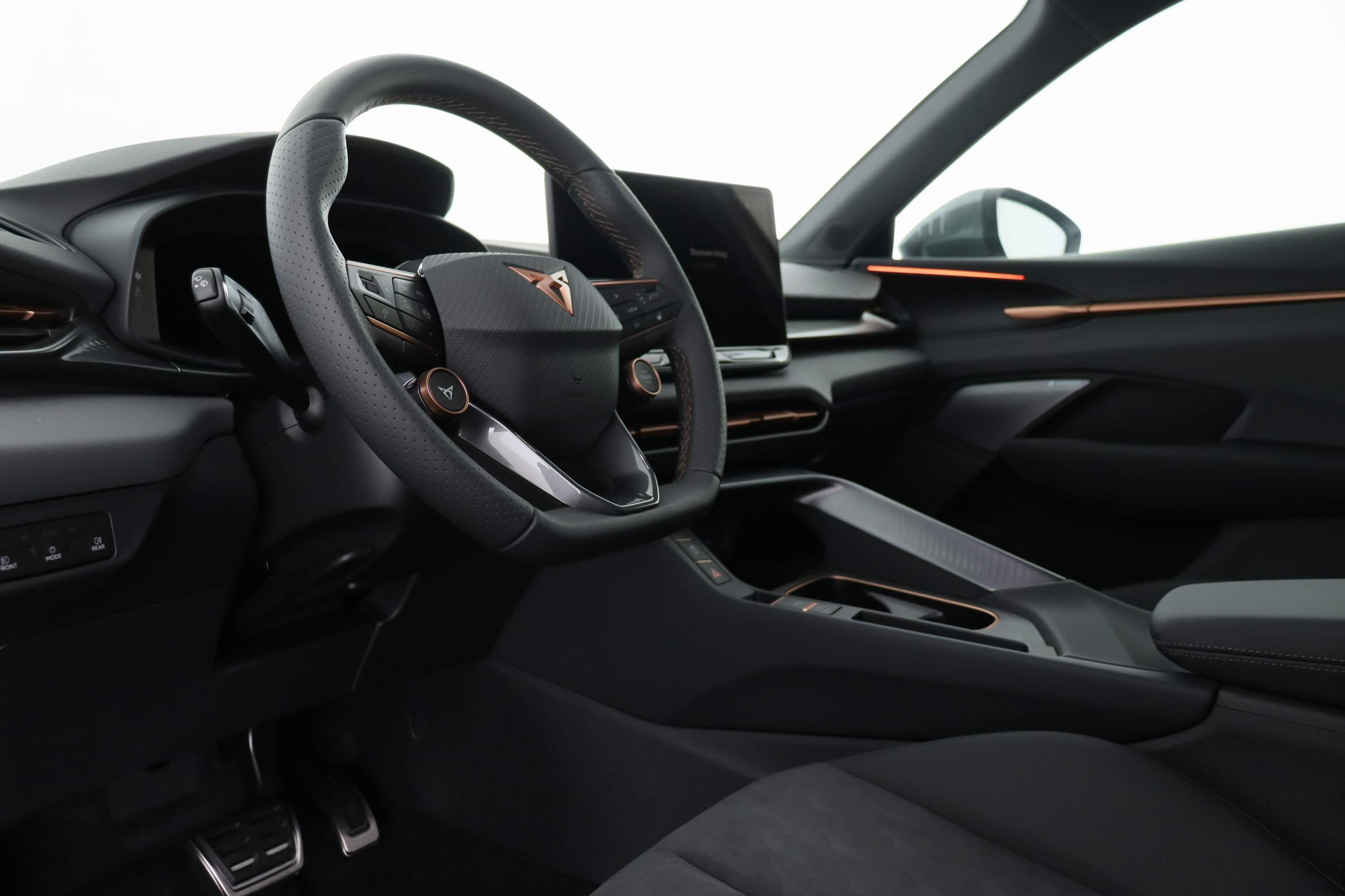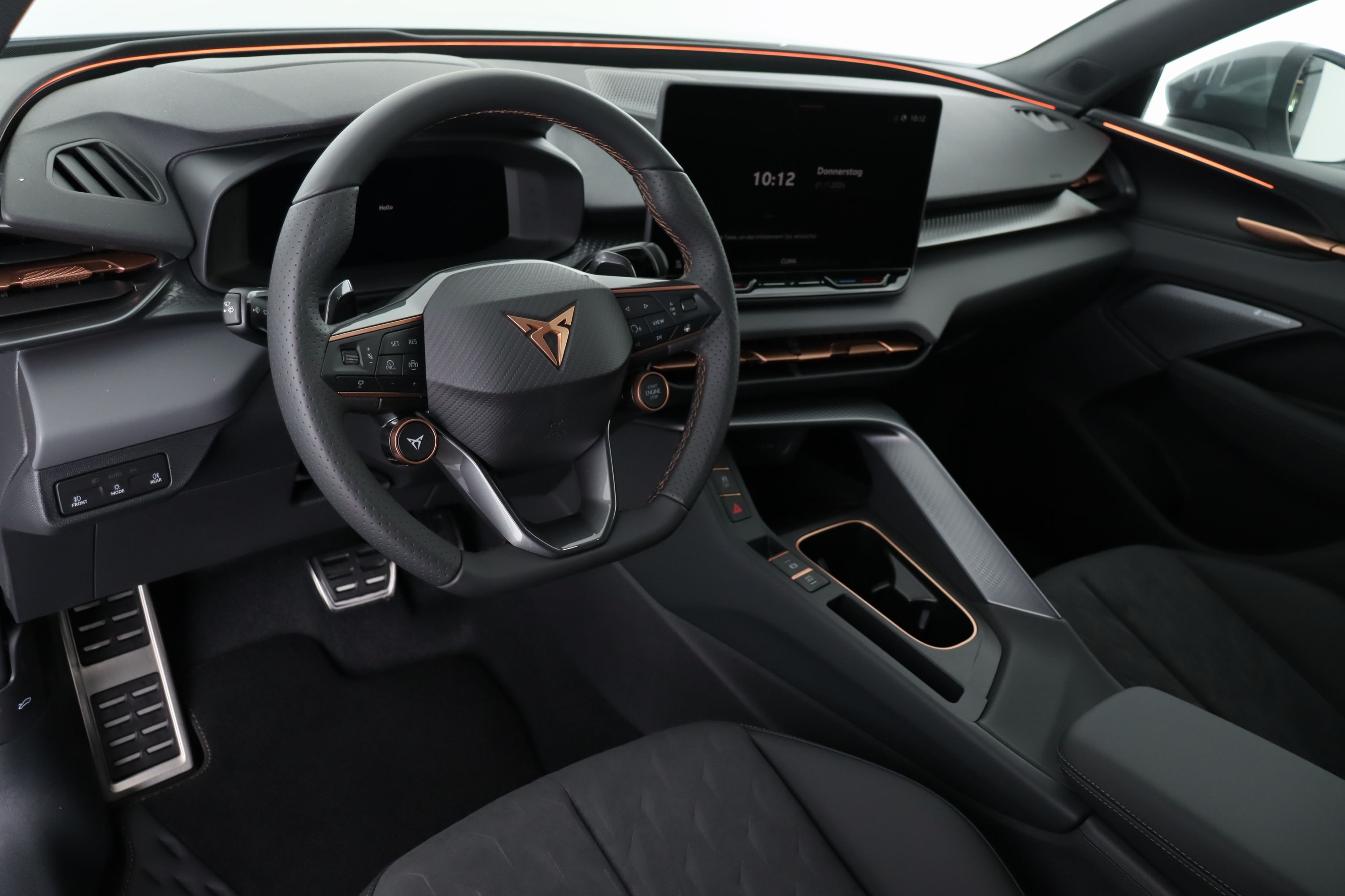 3-Punkt-Sicherheitsgurte auf allen Plätzen ABS, EBV elektronische Bremskraft-verteilung Abgedunkelte Scheiben ab B-Säule hinten Airbag: Airbag Beifahrer deaktivierbar Airbag: Airbag Fahrer und Beifahrer Airbag: Kopfairbags vorne und hinten Airbag: Seitenairbags für Fahrer und Beifahrer Alarmanlage mit Innenraumüberwachung Assist: Aufmerksamkeits- und Müdigkeitserkennung (ADA) Assist: Ausweichunterstützung / Abbiegeassistent Assist: Automatische Distanzregelung ACC Assist: City Notbremsfunktion Assist: Einparkhilfe vorne und hinten mit Rückfahrkamera Assist: Elektronische Parkbremse mit Auto Hold Funktion Assist: Lane assist (Spurhalteassistent) Assist: Multifunktionskamera Assist: Multikollisionsbremse Assist: Prädiktive Speedlimiter Assist: Traffic sign recognition (Verkehrszeichenerkennung) Assist: Umfeldüberwachungssystem "Front-Assist" Aussenspiegel elektrisch einstell-, beheiz- und einklappbar Aussenspiegel mit LED-Umfeldbeleuchtung Beleuchtete Sonnenblende links mit abdeckbarem Spiegel und Lasche, rechts mit abdeckbarem Spiegel ESC mit EBA, DSR, XDS und Reifendruckkontrolle Einstiegsleisten beleuchtet Elektrische Fensterheber vorne und hinten mit Komfortschaltung und Einklemmschutz Fahrwerk: Adaptive Fahrwerksregelung DCC pro Fahrwerk: CUPRA Sportfahrwerk Fahrwerk: Progressivlenkung Fussmatten vorne und hinten Garantie: Cupra 12 Jahre Gewährleistung gegen Karosserie-Durchrostung Garantie: Cupra 3 Jahre Lack-Gewährleistung Garantie: Cupra Garantie Batterie- Gewährleistung 8 Jahre oder 160000 KM auf 70% Batterieleistung. Garantie: Cupra Hersteller-Garantieverlängerung für das 3., 4. und 5. Jahr / max.100000 km Heckklappe elektrisch öffnend und schliessend "Virtual Pedal" Heckscheiben-Wisch-/Waschanlage mit Intervall Innenspiegel automatisch abblendbar Klima: 3-Zonen Climatronic mit Fondraumbedienung LED-Ambientebeleuchtung Smart Wraparound, inkl. Funktionsanzeige Lackierung: Uni-Lackierung Ladekabel für Haushaltssteckdose (Mode 2) Lenkrad: Leder Multifunktionslenkrad mit Schaltwippen, beheizbar Licht: Drittes Bremslicht Licht: Durchgehende Full LED-Heckleuchten Licht: LED Heckleuchten mit beleuchtetem 3D CUPRA Logo Licht: LED-Heckleuchten mit dynamischem Blinklicht Licht: LED-Nebelscheinwerfer mit Cornering-Funktion Licht: LED-Scheinwerfer für Abblend- und Fernlicht Licht: Leuchtweitenregulierung dynamisch Licht: Nebelschlussleuchte Media: 12,9" Infotainment (MIB3) Media: 2 USB C Anschlüsse hinten und vorne Media: CUPRA Connect Remote & Access / CUPRA Connect Safety & Services Media: CUPRA Connectivity Box Media: DAB+ (Digital Audio Broadcasting) Media: Mobiltelefon Freisprechanlage Bluetooth Mittelarmlehne vorne und hinten Pyrotechnische Gurtstraffer und Gurtkraftbegrenzer Räder: Alufelgen 8.5J x 19", "COSMIC" Machined in Sport Black Matt & Silver Räder: Reifendruckkontrollsystem Schlüsselloses Schliess- und Startsystem (KESSY Advance) Servolenkung mit geschwindigkeitsabhängiger Lenkkraftunterstützung Sitze: 3 verstellbare Kopfstützen hinten Sitze: CUPRA Sport Schalensitze in Textil, "DEEP OCEAN" "SEAQUAL" Sitze: Geteilt abklappbare Rücksitzlehne 1/3 - 2/3 Sitze: Geteilt abklappbare Rücksitzlehne mit Mittelarmlehne Sitze: Kindersitzverankerung ISOFIX hinten Sitze: Vordersitze höhenverstellbar mit Lendenwirbelstütze Stopp - Start- und Rekuperationssystem Wegfahrsperre elektronisch Zentralverriegelung mit Funkfernbedienung, 2 Funkschlüssel