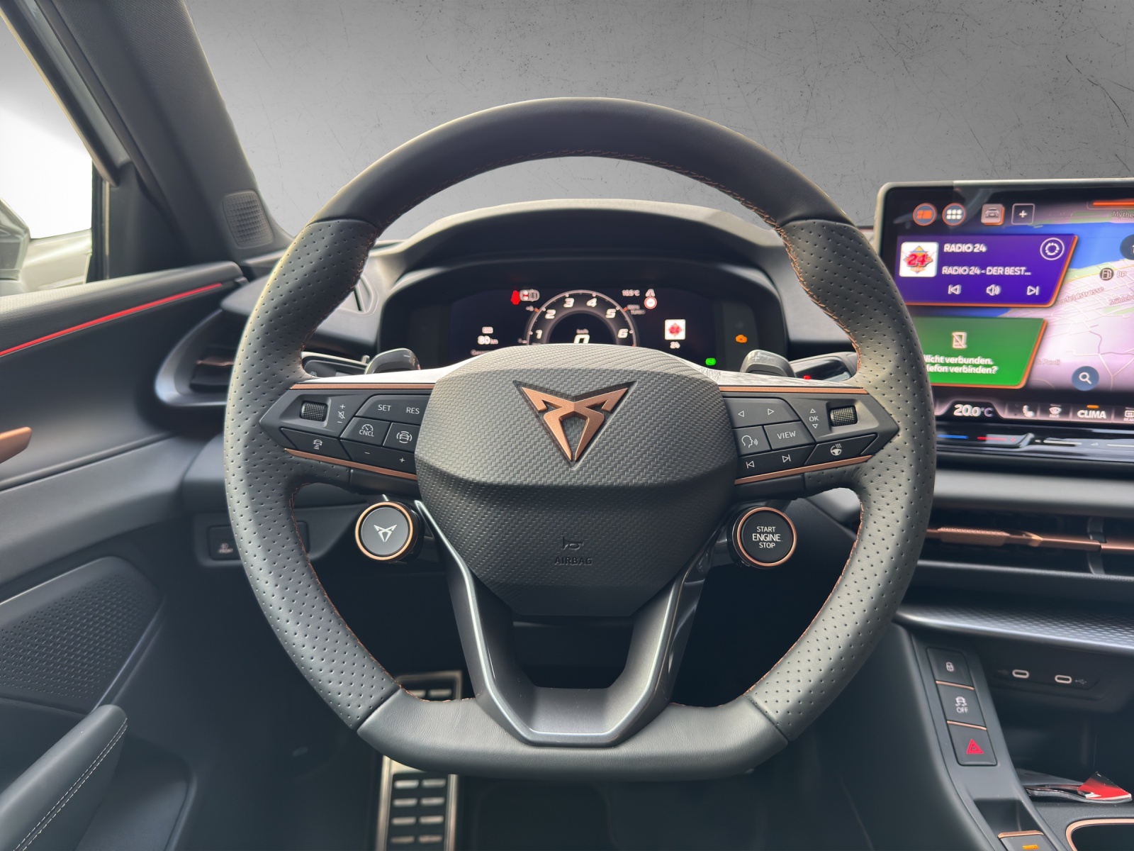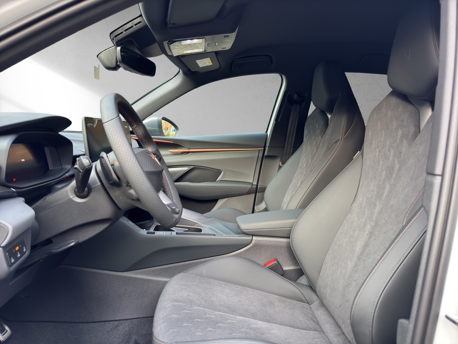3-Punkt-Sicherheitsgurte auf allen Plätzen ABS, EBV elektronische Bremskraft-verteilung Abgedunkelte Scheiben ab B-Säule hinten Airbag: Airbag Beifahrer deaktivierbar Airbag: Airbag Fahrer und Beifahrer Airbag: Kopfairbags vorne und hinten Airbag: Seitenairbags für Fahrer und Beifahrer Alarmanlage mit Innenraumüberwachung Ambiente Innenraumbeleuchtung mit beleuchteten Türpanelen Assist: Aufmerksamkeits- und Müdigkeitserkennung (ADA) Assist: Ausweichunterstützung / Abbiegeassistent Assist: Automatische Distanzregelung ACC Assist: City Notbremsfunktion Assist: Einparkhilfe vorne und hinten mit Rückfahrkamera Assist: Elektronische Parkbremse mit Auto Hold Funktion Assist: Lane assist (Spurhalteassistent) Assist: Multifunktionskamera Assist: Multikollisionsbremse Assist: Prädiktive Speedlimiter Assist: Traffic sign recognition (Verkehrszeichenerkennung) Assist: Umfeldüberwachungssystem "Front-Assist" Aussenspiegel elektrisch einstell-, beheiz- und einklappbar Aussenspiegel mit LED-Umfeldbeleuchtung Beleuchtete Sonnenblende links mit abdeckbarem Spiegel und Lasche, rechts mit abdeckbarem Spiegel ESC mit EBA, DSR, XDS und Reifendruckkontrolle Einstiegsleisten beleuchtet Elektrische Fensterheber vorne und hinten mit Komfortschaltung und Einklemmschutz Fahrwerk: Adaptive Fahrwerksregelung DCC Fahrwerk: CUPRA Sportfahrwerk Fahrwerk: Progressivlenkung Fussmatten vorne und hinten Garantie: Cupra 12 Jahre Gewährleistung gegen Karosserie-Durchrostung Garantie: Cupra 3 Jahre Lack-Gewährleistung Garantie: Cupra Garantie 2 Jahre ohne Kilometerbegrenzung Heckklappe elektrisch öffnend und schliessend "Virtual Pedal" Heckscheiben-Wisch-/Waschanlage mit Intervall Innenspiegel automatisch abblendbar Klima: 3-Zonen Climatronic mit Fondraumbedienung Lackierung: Uni-Lackierung Lenkrad: Leder Multifunktionslenkrad mit Schaltwippen, beheizbar Licht: Drittes Bremslicht Licht: Durchgehende Full LED-Heckleuchten Licht: LED Heckleuchten mit beleuchtetem 3D CUPRA Logo Licht: LED-Heckleuchten mit dynamischem Blinklicht Licht: LED-Nebelscheinwerfer mit Cornering-Funktion Licht: LED-Scheinwerfer für Abblend- und Fernlicht Licht: Leuchtweitenregulierung dynamisch Licht: Nebelschlussleuchte Media: 12,9" Infotainment (MIB3) Media: 2 USB C Anschlüsse hinten und vorne Media: CUPRA Connect Remote & Access / CUPRA Connect Safety & Services Media: CUPRA Connectivity Box Media: DAB+ (Digital Audio Broadcasting) Media: Mobiltelefon Freisprechanlage Bluetooth Mittelarmlehne vorne und hinten Pyrotechnische Gurtstraffer und Gurtkraftbegrenzer Räder: Alufelgen 8.5J x 19", "COSMIC" Machined in Sport Black Matt & Silver Räder: Performance Reifen Räder: Reifendruckkontrollsystem Schlüsselloses Schliess- und Startsystem (KESSY Advance) Servolenkung mit geschwindigkeitsabhängiger Lenkkraftunterstützung Sitze: 3 verstellbare Kopfstützen hinten Sitze: CUPRA Sport Schalensitze in Textil, "DEEP OCEAN" "SEAQUAL" Sitze: Geteilt abklappbare Rücksitzlehne 1/3 - 2/3 Sitze: Geteilt abklappbare Rücksitzlehne mit Mittelarmlehne Sitze: Kindersitzverankerung ISOFIX hinten Sitze: Vordersitze höhenverstellbar mit Lendenwirbelstütze Stopp - Start- und Rekuperationssystem Wegfahrsperre elektronisch Zentralverriegelung mit Funkfernbedienung, 2 Funkschlüssel