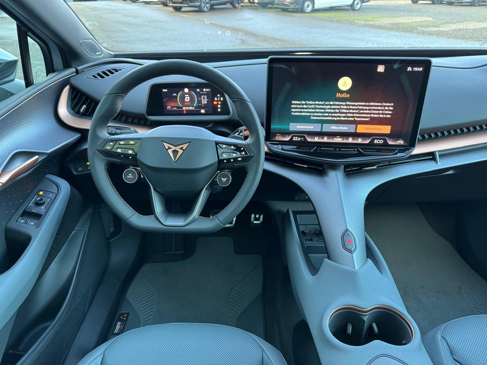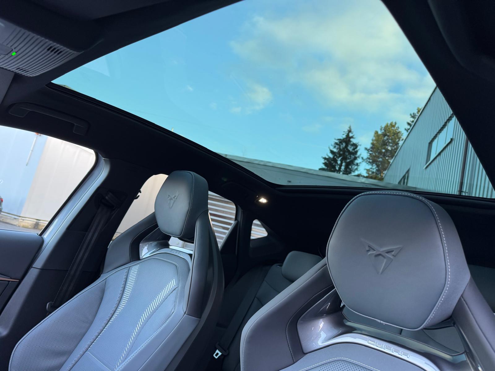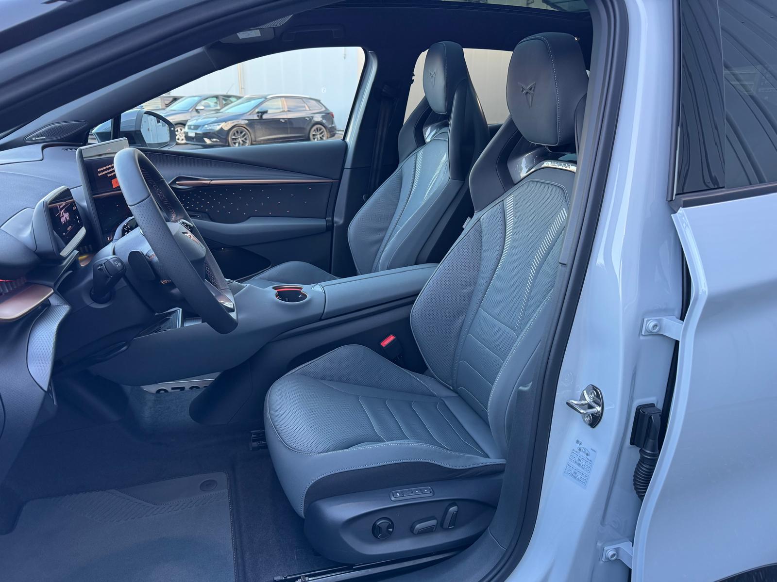5.3" Full Digital Cockpit Abgedunkelte Scheiben ab B-Säule hinten Airbag: Airbag Beifahrer deaktivierbar Airbag: Airbag Fahrer und Beifahrer Airbag: Seitenairbags für Fahrer und Beifahrer Alarmanlage mit Innenraumüberwachung Assist: Aufmerksamkeits- und Müdigkeitserkennung (ADA) Assist: Ausweichunterstützung / Abbiegeassistent Assist: Exit Assist (Ausparkassistent) Assist: Exit Warning (Ausstiegswarner) Assist: Intelligenter Geschwindigkeitsassistent Assist: Parklenkassistent RPA (Remote Park Assist) Assist: PreCrash Sicherheitssystem Assist: Prädiktive automatische Distanzregelung ACC Assist: Regen-/Lichtsensor Assist: Side Assist (Spurwechselassistent) Assist: Top View Camera (Rundumblick) Assist: Traction Control (TCS) Assist: Traffic sign recognition (Verkehrszeichenerkennung) Assist: eCall Notruffunktion Augmented Reality Head-up-Display Aussenspiegel elektrisch einstell-, beheiz- und einklappbar mit Beifahrerabsenkfunktion- Automatisch abblendender Innenrückspiegel Dreipunkt-Automatiksicherheitsgurte auf allen Plätzen Einstiegsleisten beleuchtet Elektrische Fensterheber vorne und hinten mit Komfortschaltung und Einklemmschutz Elektronisches Stabilitäts-Programm (ESP) Fahrwerk: Adaptive Fahrwerksregelung DCC Garantie: Cupra 12 Jahre Gewährleistung gegen Karosserie-Durchrostung Garantie: Cupra 3 Jahre Lack-Gewährleistung Garantie: Cupra Garantie 2 Jahre ohne Kilometerbegrenzung Getriebe: 1-Gang Automatik Heckklappe elektrisch öffnend und schliessend "Virtual Pedal" Klima: 3-Zonen Climatronic mit Fondraumbedienung LED Ambientebeleuchtung "IMMERSIVE" Lackierung: Uni-Lackierung Lenkrad: Supersportlenkrad mit Drive Profile-Knopfsystem,beheizbar Licht: Drittes Bremslicht Licht: LED Heckleuchten mit beleuchtetem 3D CUPRA Logo Licht: Matrix LED Fernlicht Licht: Matrix LED Scheinwerfer Licht: Nebelschlussleuchte Media: 15" Infotainment (MIB3) Media: 2 USB C Anschlüsse hinten und vorne Media: Bluetooth-Freisprecheinrichtung Media: CUPRA Connect Online Infotainment Media: CUPRA Connect Remote & Access Media: CUPRA Connect Safety & Services Media: CUPRA Navigationssystem Media: DAB+ (Digital Audio Broadcasting) Media: SENNHEISER Sound System mit 12 High-End-Lautsprecher inkl. 300 Watt Subwoofer Media: Wireless Charger zur induktiven Smartphone Ladung Räder: Alufelgen 9J x 21", "Etna" Machined Sport in Black/Copper Räder: Reifendruckkontrollsystem Schlüsselloses Schliess- und Startsystem (KESSY Advance) Servolenkung geschwindigkeitsabhängig Sitze: CUPRA CUPBucket Sportschalensitze in Leder "Enceladus Grey" Sitze: Elektrische Sitzverstellung mit Memory-Funktion für Fahrer- und Beifahrerseite Sitze: Geteilt abklappbare Rücksitzlehne mit Mittelarmlehne und Durchlademöglichkeit Sitze: Kindersitzbefestigungssystem ISOFIX Sitze: Kopfstützen hinten höhenverstellbar Sitze: Kopfstützen vorne (integrierte) Sitze: Lendenwirbelstütze Fahrer- und Beifahrerseite elektrisch einstellbar Sitze: Sitzbelüftung für Vordersitze Sitze: Sitzheizung für Vorder- und Rücksitze, getrennt regelbar Sitze: Vordersitze höhenverstellbar Vorbereitung für Anhängevorrichtung Wegfahrsperre elektronisch Zentralverriegelung mit Fernbedienung
