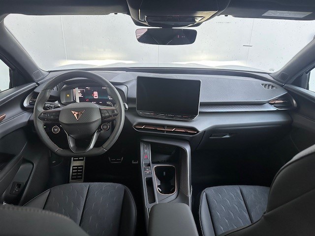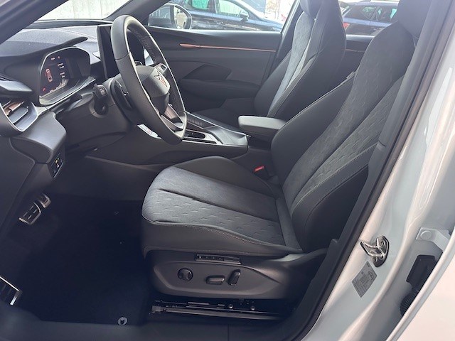 3-Punkt-Sicherheitsgurte auf allen Plätzen ABS, EBV elektronische Bremskraft-verteilung Abgedunkelte Scheiben ab B-Säule hinten Airbag: Airbag Beifahrer deaktivierbar Airbag: Airbag Fahrer und Beifahrer Airbag: Kopfairbags vorne und hinten Airbag: Seitenairbags für Fahrer und Beifahrer Alarmanlage mit Innenraumüberwachung Ambiente Innenraumbeleuchtung mit beleuchteten Türpanelen Assist: Aufmerksamkeits- und Müdigkeitserkennung (ADA) Assist: Ausweichunterstützung / Abbiegeassistent Assist: Automatische Distanzregelung ACC Assist: City Notbremsfunktion Assist: Einparkhilfe vorne und hinten mit Rückfahrkamera Assist: Elektronische Parkbremse mit Auto Hold Funktion Assist: Lane assist (Spurhalteassistent) Assist: Multifunktionskamera Assist: Multikollisionsbremse Assist: Prädiktive Speedlimiter Assist: Traffic sign recognition (Verkehrszeichenerkennung) Assist: Umfeldüberwachungssystem "Front-Assist" Aussenspiegel elektrisch einstell-, beheiz- und einklappbar Aussenspiegel mit LED-Umfeldbeleuchtung Beleuchtete Sonnenblende links mit abdeckbarem Spiegel und Lasche, rechts mit abdeckbarem Spiegel ESC mit EBA, DSR, XDS und Reifendruckkontrolle Einstiegsleisten beleuchtet Elektrische Fensterheber vorne und hinten mit Komfortschaltung und Einklemmschutz Fahrwerk: Adaptive Fahrwerksregelung DCC Fahrwerk: CUPRA Sportfahrwerk Fahrwerk: Progressivlenkung Fussmatten vorne und hinten Garantie: Cupra 12 Jahre Gewährleistung gegen Karosserie-Durchrostung Garantie: Cupra 3 Jahre Lack-Gewährleistung Garantie: Cupra Garantie 2 Jahre ohne Kilometerbegrenzung Heckklappe elektrisch öffnend und schliessend "Virtual Pedal" Heckscheiben-Wisch-/Waschanlage mit Intervall Innenspiegel automatisch abblendbar Klima: 3-Zonen Climatronic mit Fondraumbedienung Lackierung: Uni-Lackierung Lenkrad: Leder Multifunktionslenkrad mit Schaltwippen, beheizbar Licht: Drittes Bremslicht Licht: Durchgehende Full LED-Heckleuchten Licht: LED Heckleuchten mit beleuchtetem 3D CUPRA Logo Licht: LED-Heckleuchten mit dynamischem Blinklicht Licht: LED-Nebelscheinwerfer mit Cornering-Funktion Licht: LED-Scheinwerfer für Abblend- und Fernlicht Licht: Leuchtweitenregulierung dynamisch Licht: Nebelschlussleuchte Media: 12,9" Infotainment (MIB3) Media: 2 USB C Anschlüsse hinten und vorne Media: CUPRA Connect Remote & Access / CUPRA Connect Safety & Services Media: CUPRA Connectivity Box Media: DAB+ (Digital Audio Broadcasting) Media: Mobiltelefon Freisprechanlage Bluetooth Mittelarmlehne vorne und hinten Pyrotechnische Gurtstraffer und Gurtkraftbegrenzer Räder: Alufelgen 8.5J x 19", "COSMIC" Machined in Sport Black Matt & Silver Räder: Performance Reifen Räder: Reifendruckkontrollsystem Schlüsselloses Schliess- und Startsystem (KESSY Advance) Servolenkung mit geschwindigkeitsabhängiger Lenkkraftunterstützung Sitze: 3 verstellbare Kopfstützen hinten Sitze: CUPRA Sport Schalensitze in Textil, "DEEP OCEAN" "SEAQUAL" Sitze: Geteilt abklappbare Rücksitzlehne 1/3 - 2/3 Sitze: Geteilt abklappbare Rücksitzlehne mit Mittelarmlehne Sitze: Kindersitzverankerung ISOFIX hinten Sitze: Vordersitze höhenverstellbar mit Lendenwirbelstütze Stopp - Start- und Rekuperationssystem Wegfahrsperre elektronisch Zentralverriegelung mit Funkfernbedienung, 2 Funkschlüssel