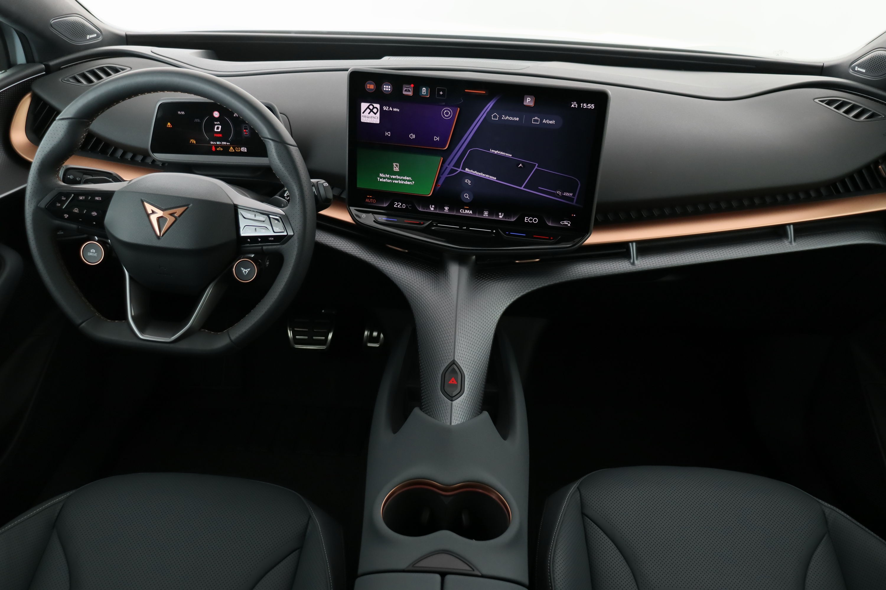 5.3" Full Digital Cockpit Abgedunkelte Scheiben ab B-Säule hinten Airbag: Airbag Beifahrer deaktivierbar Airbag: Airbag Fahrer und Beifahrer Airbag: Seitenairbags für Fahrer und Beifahrer Alarmanlage mit Innenraumüberwachung Assist: Aufmerksamkeits- und Müdigkeitserkennung (ADA) Assist: Ausweichunterstützung / Abbiegeassistent Assist: Exit Assist (Ausparkassistent) Assist: Exit Warning (Ausstiegswarner) Assist: Intelligenter Geschwindigkeitsassistent Assist: Parklenkassistent RPA (Remote Park Assist) Assist: PreCrash Sicherheitssystem Assist: Prädiktive automatische Distanzregelung ACC Assist: Regen-/Lichtsensor Assist: Side Assist (Spurwechselassistent) Assist: Top View Camera (Rundumblick) Assist: Traction Control (TCS) Assist: Traffic sign recognition (Verkehrszeichenerkennung) Assist: eCall Notruffunktion Augmented Reality Head-up-Display Aussenspiegel elektrisch einstell-, beheiz- und einklappbar mit Beifahrerabsenkfunktion- Automatisch abblendender Innenrückspiegel Dreipunkt-Automatiksicherheitsgurte auf allen Plätzen Einstiegsleisten beleuchtet Elektrische Fensterheber vorne und hinten mit Komfortschaltung und Einklemmschutz Elektronisches Stabilitäts-Programm (ESP) Fahrwerk: Adaptive Fahrwerksregelung DCC Garantie: Cupra 12 Jahre Gewährleistung gegen Karosserie-Durchrostung Garantie: Cupra 3 Jahre Lack-Gewährleistung Garantie: Cupra Garantie 2 Jahre ohne Kilometerbegrenzung Getriebe: 1-Gang Automatik Heckklappe elektrisch öffnend und schliessend "Virtual Pedal" Klima: 3-Zonen Climatronic mit Fondraumbedienung LED Ambientebeleuchtung "IMMERSIVE" Lackierung: Uni-Lackierung Lenkrad: Supersportlenkrad mit Drive Profile-Knopfsystem,beheizbar Licht: Drittes Bremslicht Licht: LED Heckleuchten mit beleuchtetem 3D CUPRA Logo Licht: Matrix LED Fernlicht Licht: Matrix LED Scheinwerfer Licht: Nebelschlussleuchte Media: 15" Infotainment (MIB3) Media: 2 USB C Anschlüsse hinten und vorne Media: Bluetooth-Freisprecheinrichtung Media: CUPRA Connect Online Infotainment Media: CUPRA Connect Remote & Access Media: CUPRA Connect Safety & Services Media: CUPRA Navigationssystem Media: DAB+ (Digital Audio Broadcasting) Media: SENNHEISER Sound System mit 12 High-End-Lautsprecher inkl. 300 Watt Subwoofer Media: Wireless Charger zur induktiven Smartphone Ladung Räder: Alufelgen 9J x 21", "Etna" Machined Sport in Black/Copper Räder: Reifendruckkontrollsystem Schlüsselloses Schliess- und Startsystem (KESSY Advance) Servolenkung geschwindigkeitsabhängig Sitze: CUPRA CUPBucket Sportschalensitze in Leder "Enceladus Grey" Sitze: Elektrische Sitzverstellung mit Memory-Funktion für Fahrer- und Beifahrerseite Sitze: Geteilt abklappbare Rücksitzlehne mit Mittelarmlehne und Durchlademöglichkeit Sitze: Kindersitzbefestigungssystem ISOFIX Sitze: Kopfstützen hinten höhenverstellbar Sitze: Kopfstützen vorne (integrierte) Sitze: Lendenwirbelstütze Fahrer- und Beifahrerseite elektrisch einstellbar Sitze: Sitzbelüftung für Vordersitze Sitze: Sitzheizung für Vorder- und Rücksitze, getrennt regelbar Sitze: Vordersitze höhenverstellbar Vorbereitung für Anhängevorrichtung Wegfahrsperre elektronisch Zentralverriegelung mit Fernbedienung