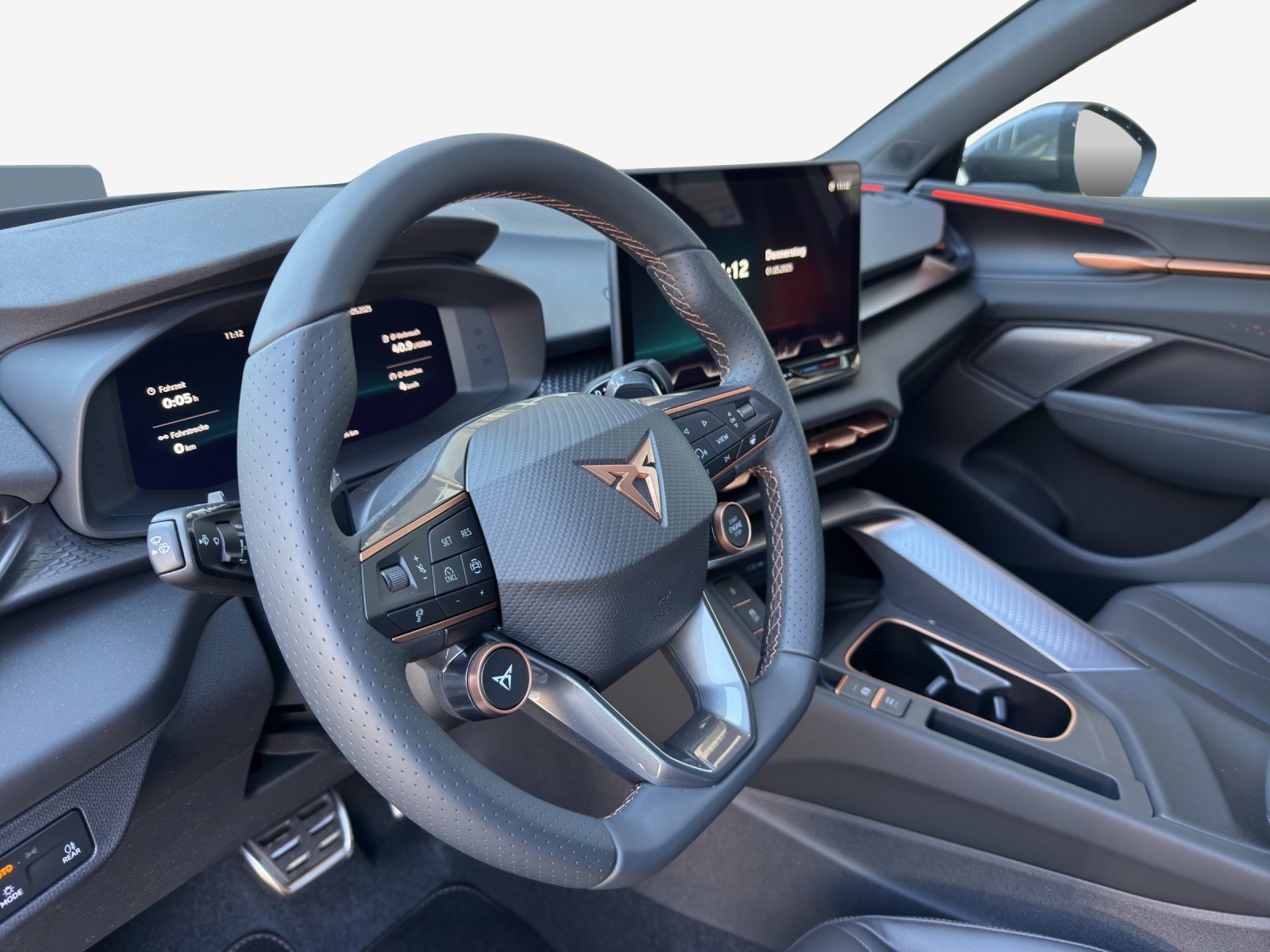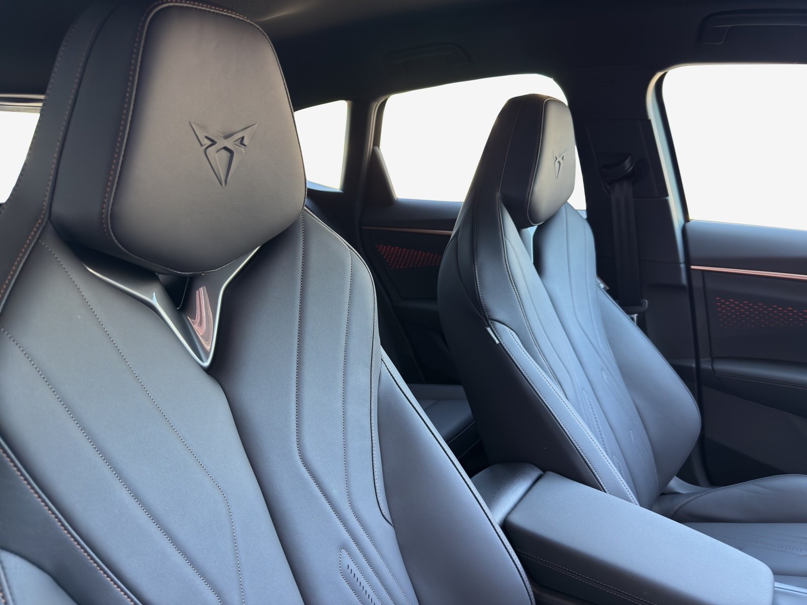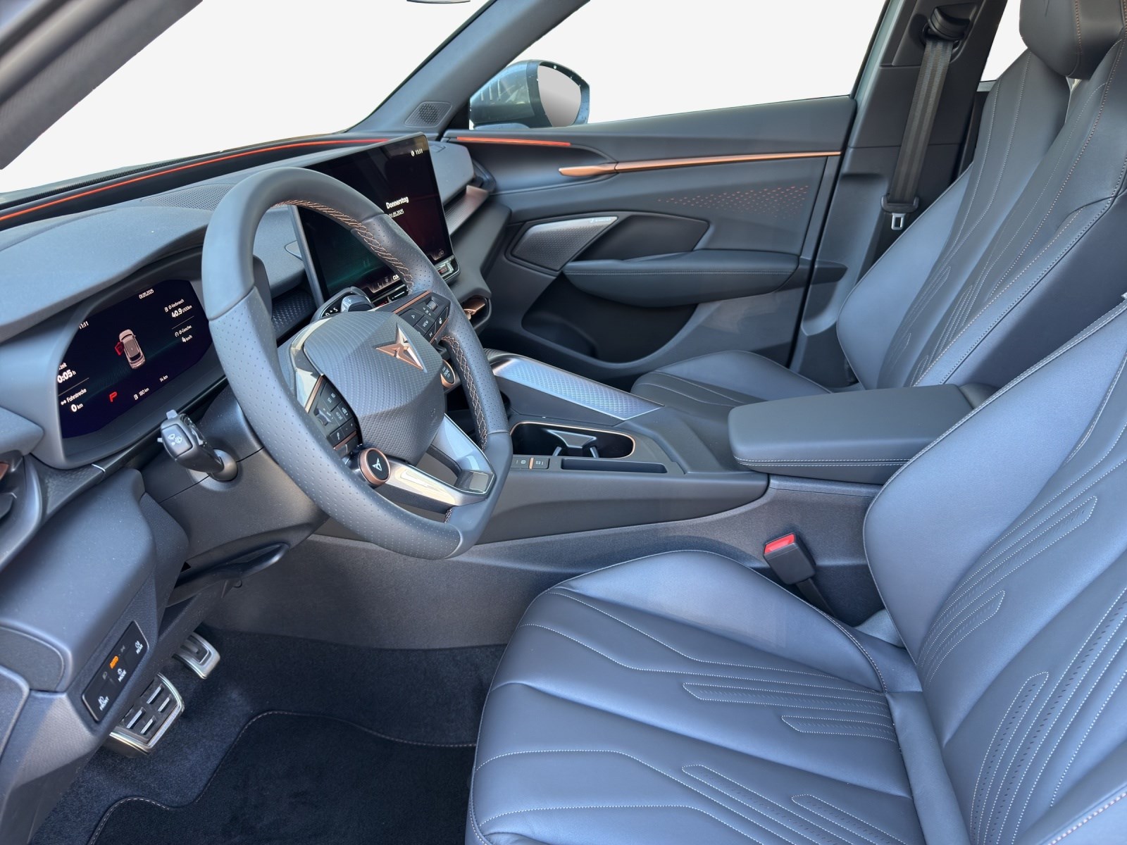 3-Punkt-Sicherheitsgurte auf allen Plätzen ABS, EBV elektronische Bremskraft-verteilung Abgedunkelte Scheiben ab B-Säule hinten Airbag: Airbag Beifahrer deaktivierbar Airbag: Airbag Fahrer und Beifahrer Airbag: Kopfairbags vorne und hinten Airbag: Seitenairbags für Fahrer und Beifahrer Alarmanlage mit Innenraumüberwachung Ambiente Innenraumbeleuchtung mit beleuchteten Türpanelen Assist: Aufmerksamkeits- und Müdigkeitserkennung (ADA) Assist: Ausweichunterstützung / Abbiegeassistent Assist: Automatische Distanzregelung ACC Assist: City Notbremsfunktion Assist: Einparkhilfe vorne und hinten mit Rückfahrkamera Assist: Elektronische Parkbremse mit Auto Hold Funktion Assist: Lane assist (Spurhalteassistent) Assist: Multifunktionskamera Assist: Multikollisionsbremse Assist: Prädiktive Speedlimiter Assist: Traffic sign recognition (Verkehrszeichenerkennung) Assist: Umfeldüberwachungssystem "Front-Assist" Aussenspiegel elektrisch einstell-, beheiz- und einklappbar Aussenspiegel mit LED-Umfeldbeleuchtung Beleuchtete Sonnenblende links mit abdeckbarem Spiegel und Lasche, rechts mit abdeckbarem Spiegel ESC mit EBA, DSR, XDS und Reifendruckkontrolle Einstiegsleisten beleuchtet Elektrische Fensterheber vorne und hinten mit Komfortschaltung und Einklemmschutz Fahrwerk: Adaptive Fahrwerksregelung DCC pro Fahrwerk: CUPRA Sportfahrwerk Fahrwerk: Progressivlenkung Fussmatten vorne und hinten Garantie: Cupra 12 Jahre Gewährleistung gegen Karosserie-Durchrostung Garantie: Cupra 3 Jahre Lack-Gewährleistung Garantie: Cupra Garantie 2 Jahre ohne Kilometerbegrenzung Heckklappe elektrisch öffnend und schliessend "Virtual Pedal" Heckscheiben-Wisch-/Waschanlage mit Intervall Innenspiegel automatisch abblendbar Klima: 3-Zonen Climatronic mit Fondraumbedienung LED-Ambientebeleuchtung Smart Wraparound, inkl. Funktionsanzeige Lackierung: Uni-Lackierung Lenkrad: Leder Multifunktionslenkrad mit Schaltwippen, beheizbar Licht: Drittes Bremslicht Licht: Durchgehende Full LED-Heckleuchten Licht: LED Heckleuchten mit beleuchtetem 3D CUPRA Logo Licht: LED-Heckleuchten mit dynamischem Blinklicht Licht: LED-Nebelscheinwerfer mit Cornering-Funktion Licht: LED-Scheinwerfer für Abblend- und Fernlicht Licht: Leuchtweitenregulierung dynamisch Licht: Nebelschlussleuchte Media: 12,9" Infotainment (MIB3) Media: 2 USB C Anschlüsse hinten und vorne Media: CUPRA Connect Remote & Access / CUPRA Connect Safety & Services Media: CUPRA Connectivity Box Media: DAB+ (Digital Audio Broadcasting) Media: Mobiltelefon Freisprechanlage Bluetooth Mittelarmlehne vorne und hinten Pyrotechnische Gurtstraffer und Gurtkraftbegrenzer Räder: Alufelgen 8.5J x 19", "COSMIC" Machined in Sport Black Matt & Silver Räder: Performance Reifen Räder: Reifendruckkontrollsystem Schlüsselloses Schliess- und Startsystem (KESSY Advance) Servolenkung mit geschwindigkeitsabhängiger Lenkkraftunterstützung Sitze: 3 verstellbare Kopfstützen hinten Sitze: CUPRA Sport Schalensitze in Textil, "DEEP OCEAN" "SEAQUAL" Sitze: Geteilt abklappbare Rücksitzlehne 1/3 - 2/3 Sitze: Geteilt abklappbare Rücksitzlehne mit Mittelarmlehne Sitze: Kindersitzverankerung ISOFIX hinten Sitze: Vordersitze höhenverstellbar mit Lendenwirbelstütze Stopp - Start- und Rekuperationssystem Wegfahrsperre elektronisch Zentralverriegelung mit Funkfernbedienung, 2 Funkschlüssel