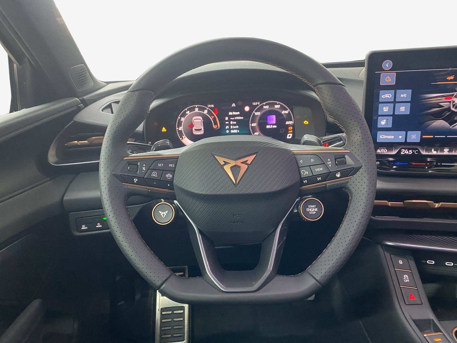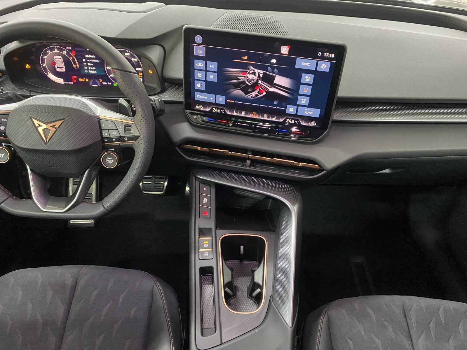 3-Punkt-Sicherheitsgurte auf allen Plätzen ABS, EBV elektronische Bremskraft-verteilung Airbag: Airbag Beifahrer deaktivierbar Airbag: Airbag Fahrer und Beifahrer Airbag: Kopfairbags vorne und hinten Airbag: Seitenairbags für Fahrer und Beifahrer Ambiente Innenraumbeleuchtung mit beleuchteten Türpanelen Assist: Aufmerksamkeits- und Müdigkeitserkennung (ADA) Assist: Ausweichunterstützung / Abbiegeassistent Assist: Automatische Distanzregelung ACC Assist: City Notbremsfunktion Assist: Elektronische Parkbremse mit Auto Hold Funktion Assist: Lane assist (Spurhalteassistent) Assist: Multifunktionskamera Assist: Multikollisionsbremse Assist: Prädiktive Speedlimiter Assist: Traffic sign recognition (Verkehrszeichenerkennung) Assist: Umfeldüberwachungssystem "Front-Assist" Aussenspiegel elektrisch einstell-, beheizbar Aussenspiegel mit LED-Umfeldbeleuchtung Beleuchtete Sonnenblende links mit abdeckbarem Spiegel und Lasche, rechts mit abdeckbarem Spiegel ESC mit EBA, DSR, XDS und Reifendruckkontrolle Elektrische Fensterheber vorne und hinten mit Komfortschaltung und Einklemmschutz Fahrwerk: CUPRA Sportfahrwerk Fahrwerk: Progressivlenkung Fussmatten vorne und hinten Garantie: Cupra 12 Jahre Gewährleistung gegen Karosserie-Durchrostung Garantie: Cupra 3 Jahre Lack-Gewährleistung Garantie: Cupra Garantie 2 Jahre ohne Kilometerbegrenzung Heckscheiben-Wisch-/Waschanlage mit Intervall Innenspiegel automatisch abblendbar Lackierung: Uni-Lackierung Lenkrad: Leder Multifunktionslenkrad mit Schaltwippen Licht: Drittes Bremslicht Licht: Durchgehende Full LED-Heckleuchten Licht: LED Heckleuchten mit beleuchtetem 3D CUPRA Logo Licht: LED-Heckleuchten mit dynamischem Blinklicht Licht: LED-Nebelscheinwerfer mit Cornering-Funktion Licht: LED-Scheinwerfer für Abblend- und Fernlicht Licht: Leuchtweitenregulierung dynamisch Licht: Nebelschlussleuchte Media: 12,9" Infotainment (MIB3) Media: 2 USB C Anschlüsse hinten und vorne Media: CUPRA Connect Remote & Access / CUPRA Connect Safety & Services Media: CUPRA Connectivity Box Media: DAB+ (Digital Audio Broadcasting) Media: Mobiltelefon Freisprechanlage Bluetooth Mittelarmlehne vorne und hinten Pyrotechnische Gurtstraffer und Gurtkraftbegrenzer Räder: Alufelgen 8J x 18", "ATOMIC" Machined in Sport Black Matt Räder: Reifendruckkontrollsystem Servolenkung mit geschwindigkeitsabhängiger Lenkkraftunterstützung Sitze: 3 verstellbare Kopfstützen hinten Sitze: CUPRA Sport Schalensitze in Textil, "DEEP OCEAN" "SEAQUAL" Sitze: Geteilt abklappbare Rücksitzlehne 1/3 - 2/3 Sitze: Kindersitzverankerung ISOFIX hinten Sitze: Vordersitze höhenverstellbar mit Lendenwirbelstütze Stopp - Start- und Rekuperationssystem Wegfahrsperre elektronisch Zentralverriegelung "Keyless-Go" Zentralverriegelung mit Funkfernbedienung, 2 Funkschlüssel