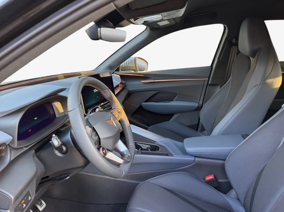 3-Punkt-Sicherheitsgurte auf allen Plätzen ABS, EBV elektronische Bremskraft-verteilung Airbag: Airbag Beifahrer deaktivierbar Airbag: Airbag Fahrer und Beifahrer Airbag: Kopfairbags vorne und hinten Airbag: Seitenairbags für Fahrer und Beifahrer Ambiente Innenraumbeleuchtung mit beleuchteten Türpanelen Assist: Aufmerksamkeits- und Müdigkeitserkennung (ADA) Assist: Ausweichunterstützung / Abbiegeassistent Assist: Automatische Distanzregelung ACC Assist: City Notbremsfunktion Assist: Elektronische Parkbremse mit Auto Hold Funktion Assist: Lane assist (Spurhalteassistent) Assist: Multifunktionskamera Assist: Multikollisionsbremse Assist: Prädiktive Speedlimiter Assist: Traffic sign recognition (Verkehrszeichenerkennung) Assist: Umfeldüberwachungssystem "Front-Assist" Aussenspiegel elektrisch einstell-, beheizbar Aussenspiegel mit LED-Umfeldbeleuchtung Beleuchtete Sonnenblende links mit abdeckbarem Spiegel und Lasche, rechts mit abdeckbarem Spiegel ESC mit EBA, DSR, XDS und Reifendruckkontrolle Elektrische Fensterheber vorne und hinten mit Komfortschaltung und Einklemmschutz Fahrwerk: CUPRA Sportfahrwerk Fahrwerk: Progressivlenkung Fussmatten vorne und hinten Garantie: Cupra 12 Jahre Gewährleistung gegen Karosserie-Durchrostung Garantie: Cupra 3 Jahre Lack-Gewährleistung Garantie: Cupra Garantie 2 Jahre ohne Kilometerbegrenzung Heckscheiben-Wisch-/Waschanlage mit Intervall Innenspiegel automatisch abblendbar Lackierung: Uni-Lackierung Lenkrad: Leder Multifunktionslenkrad mit Schaltwippen Licht: Drittes Bremslicht Licht: Durchgehende Full LED-Heckleuchten Licht: LED Heckleuchten mit beleuchtetem 3D CUPRA Logo Licht: LED-Heckleuchten mit dynamischem Blinklicht Licht: LED-Nebelscheinwerfer mit Cornering-Funktion Licht: LED-Scheinwerfer für Abblend- und Fernlicht Licht: Leuchtweitenregulierung dynamisch Licht: Nebelschlussleuchte Media: 12,9" Infotainment (MIB3) Media: 2 USB C Anschlüsse hinten und vorne Media: CUPRA Connect Remote & Access / CUPRA Connect Safety & Services Media: CUPRA Connectivity Box Media: DAB+ (Digital Audio Broadcasting) Media: Mobiltelefon Freisprechanlage Bluetooth Mittelarmlehne vorne und hinten Pyrotechnische Gurtstraffer und Gurtkraftbegrenzer Räder: Alufelgen 8J x 18", "ATOMIC" Machined in Sport Black Matt Räder: Reifendruckkontrollsystem Servolenkung mit geschwindigkeitsabhängiger Lenkkraftunterstützung Sitze: 3 verstellbare Kopfstützen hinten Sitze: CUPRA Sport Schalensitze in Textil, "DEEP OCEAN" "SEAQUAL" Sitze: Geteilt abklappbare Rücksitzlehne 1/3 - 2/3 Sitze: Kindersitzverankerung ISOFIX hinten Sitze: Vordersitze höhenverstellbar mit Lendenwirbelstütze Stopp - Start- und Rekuperationssystem Wegfahrsperre elektronisch Zentralverriegelung "Keyless-Go" Zentralverriegelung mit Funkfernbedienung, 2 Funkschlüssel