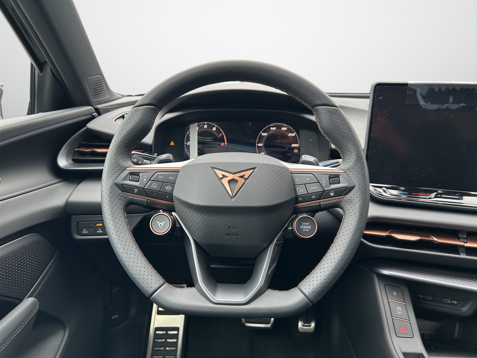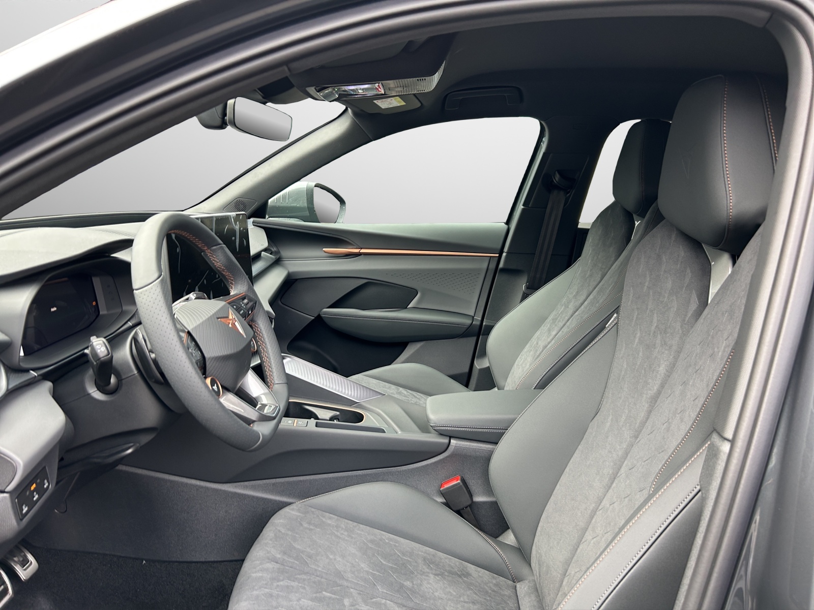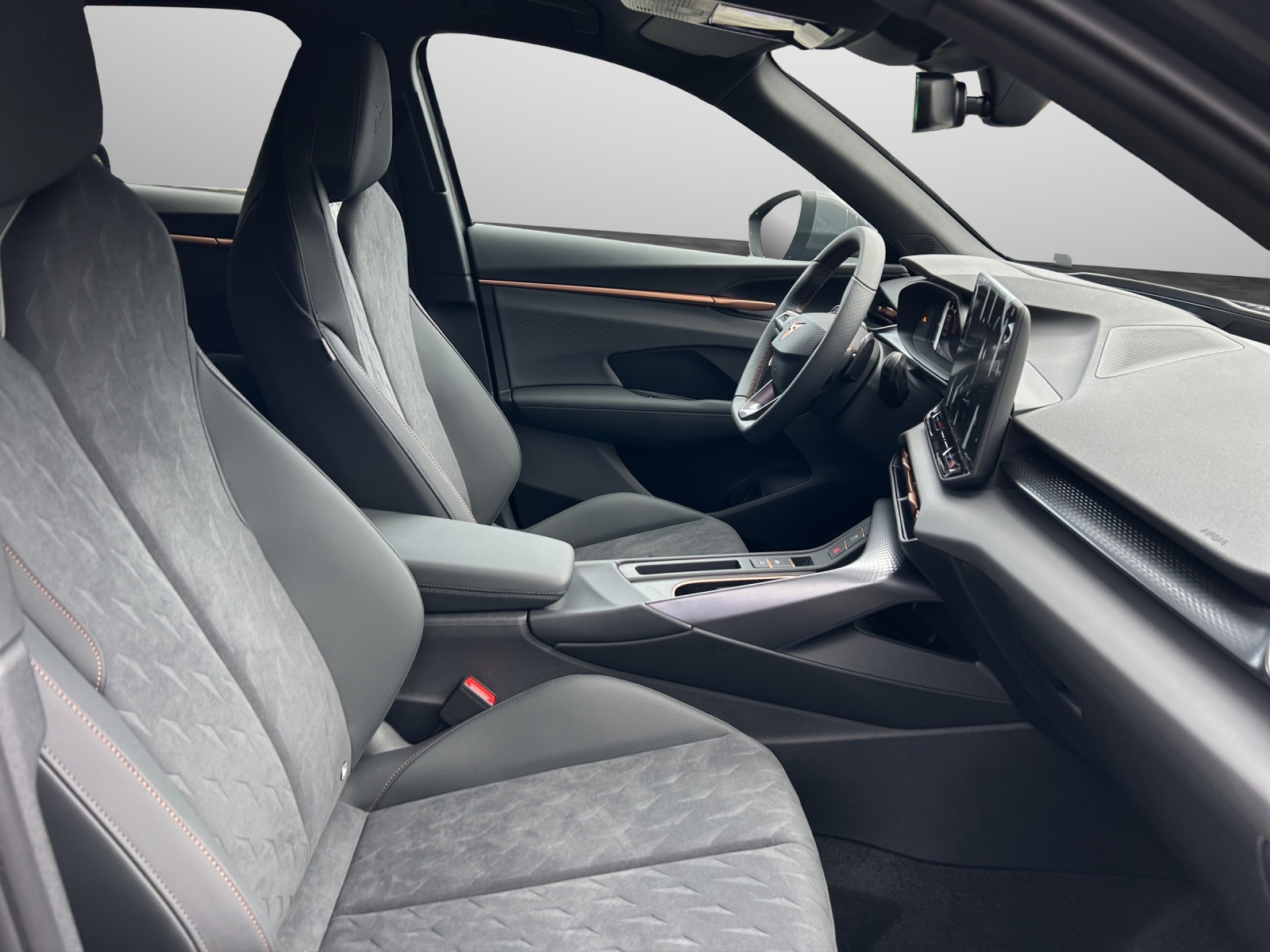 3-Punkt-Sicherheitsgurte auf allen Plätzen ABS, EBV elektronische Bremskraft-verteilung Airbag: Airbag Beifahrer deaktivierbar Airbag: Airbag Fahrer und Beifahrer Airbag: Kopfairbags vorne und hinten Airbag: Seitenairbags für Fahrer und Beifahrer Assist: Aufmerksamkeits- und Müdigkeitserkennung (ADA) Assist: Ausweichunterstützung / Abbiegeassistent Assist: Automatische Distanzregelung ACC Assist: City Notbremsfunktion Assist: Einparkhilfe vorne und hinten Assist: Elektronische Parkbremse mit Auto Hold Funktion Assist: Lane assist (Spurhalteassistent) Assist: Multifunktionskamera Assist: Multikollisionsbremse Assist: Prädiktive Speedlimiter Assist: Traffic sign recognition (Verkehrszeichenerkennung) Assist: Umfeldüberwachungssystem "Front-Assist" Aussenspiegel elektrisch einstell-, beheizbar Aussenspiegel mit LED-Umfeldbeleuchtung Beleuchtete Sonnenblende links mit abdeckbarem Spiegel und Lasche, rechts mit abdeckbarem Spiegel ESC mit EBA, DSR, XDS und Reifendruckkontrolle Elektrische Fensterheber vorne und hinten mit Komfortschaltung und Einklemmschutz Fahrwerk: CUPRA Sportfahrwerk Fahrwerk: Progressivlenkung Full Digital Cockpit 10.25" Fussmatten vorne und hinten Garantie: Cupra 12 Jahre Gewährleistung gegen Karosserie-Durchrostung Garantie: Cupra 3 Jahre Lack-Gewährleistung Garantie: Cupra Hersteller-Garantieverlängerung für das 3., 4. und 5. Jahr / max.100000 km Heckscheiben-Wisch-/Waschanlage mit Intervall Innenspiegel automatisch abblendbar Lackierung: Uni-Lackierung Lenkrad: Leder Multifunktionslenkrad mit Schaltwippen Licht: Drittes Bremslicht Licht: Durchgehende Full LED-Heckleuchten Licht: LED Heckleuchten mit beleuchtetem 3D CUPRA Logo Licht: LED-Heckleuchten mit dynamischem Blinklicht Licht: LED-Nebelscheinwerfer mit Cornering-Funktion Licht: LED-Scheinwerfer für Abblend- und Fernlicht Licht: Leuchtweitenregulierung dynamisch Licht: Nebelschlussleuchte Media: 12,9" Infotainment (MIB3) Media: 2 USB C Anschlüsse hinten und vorne Media: CUPRA Connect Remote & Access / CUPRA Connect Safety & Services Media: CUPRA Connectivity Box Media: DAB+ (Digital Audio Broadcasting) Media: Mobiltelefon Freisprechanlage Bluetooth Mittelarmlehne vorne und hinten Pyrotechnische Gurtstraffer und Gurtkraftbegrenzer Räder: Alufelgen 8J x 18", "ATOMIC DARK" Machined in Dark Shadow Räder: Reifendruckkontrollsystem Servolenkung mit geschwindigkeitsabhängiger Lenkkraftunterstützung Sitze: 3 verstellbare Kopfstützen hinten Sitze: CUPRA Sport Schalensitze in Textil, "DEEP OCEAN" "SEAQUAL" Sitze: Geteilt abklappbare Rücksitzlehne 1/3 - 2/3 Sitze: Kindersitzverankerung ISOFIX hinten Sitze: Vordersitze höhenverstellbar mit Lendenwirbelstütze Stopp - Start- und Rekuperationssystem Wegfahrsperre elektronisch Zentralverriegelung "Keyless-Go" Zentralverriegelung mit Funkfernbedienung, 2 Funkschlüssel