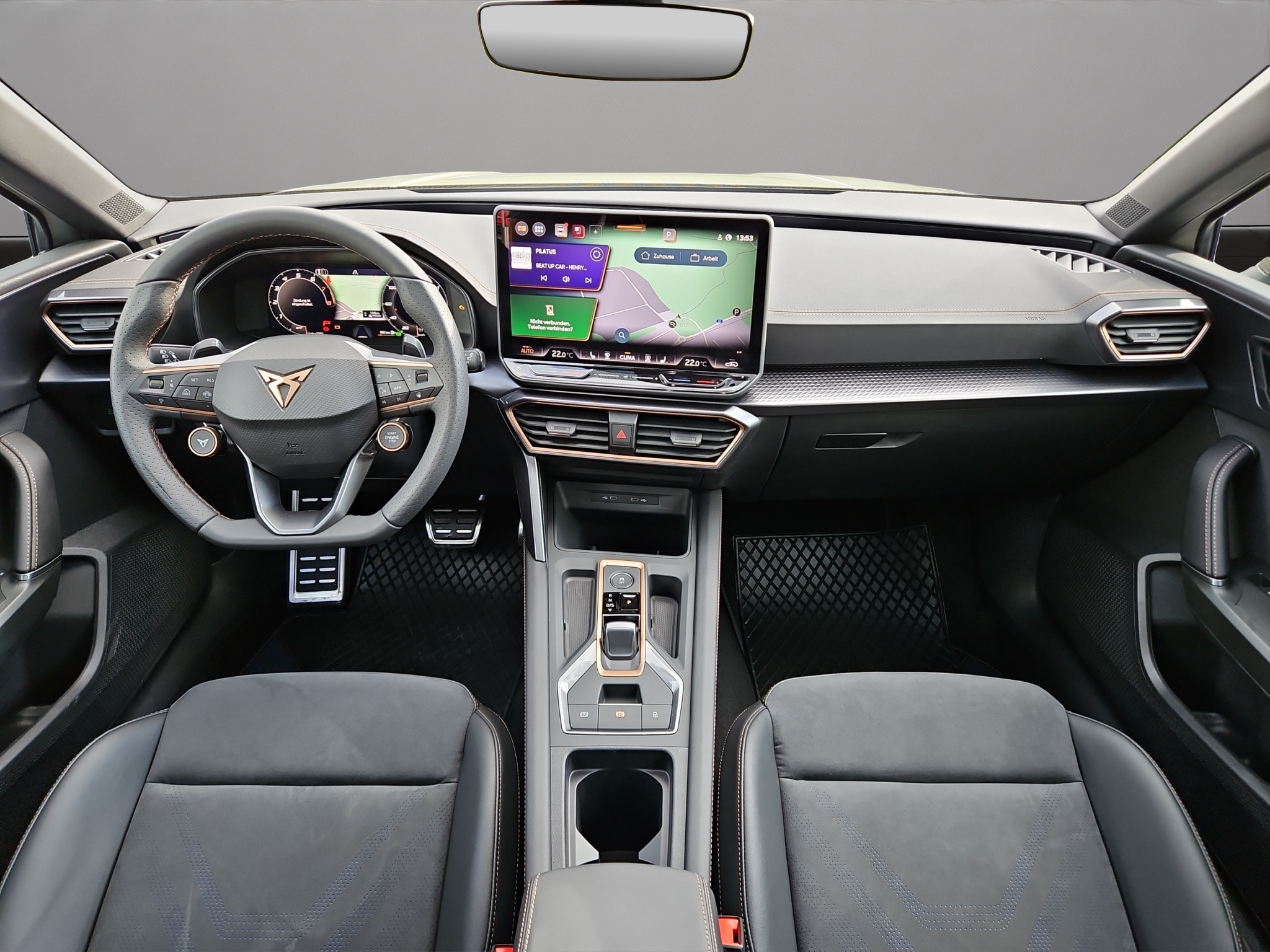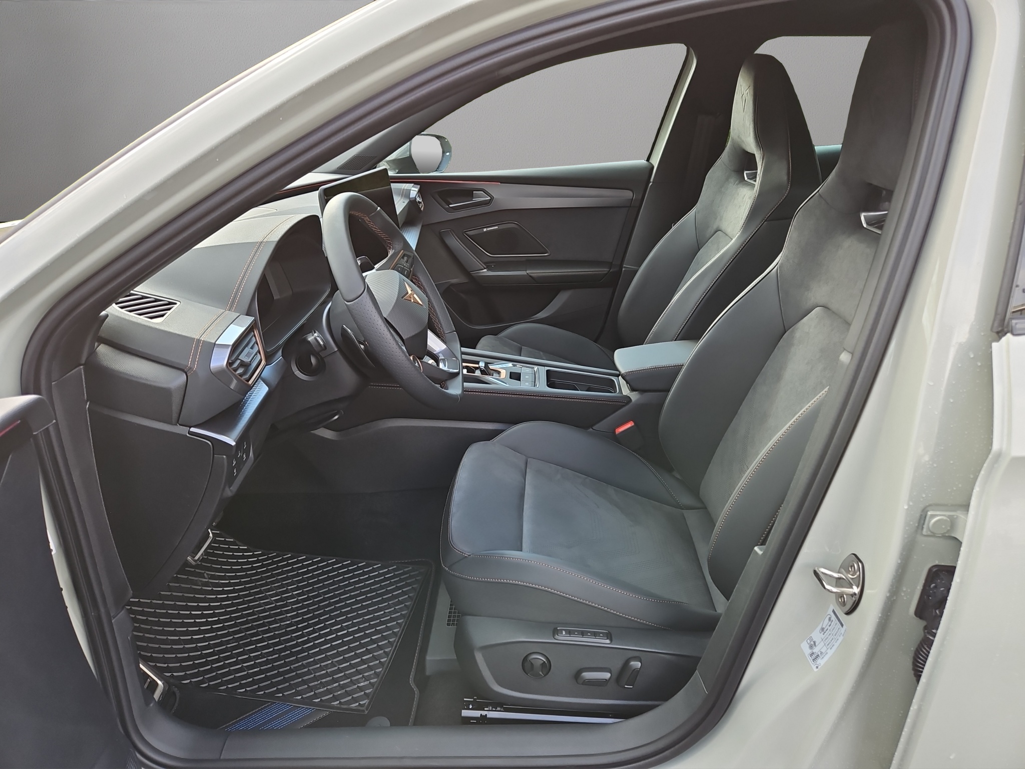 ABS, EBV elektronische Bremskraft-verteilung Abgedunkelte Scheiben ab B-Säule hinten Airbag: Airbag Beifahrer deaktivierbar Airbag: Airbag Fahrer und Beifahrer Airbag: Seitenairbags vorne mit Kopfairbag und Interaktionsairbag vorne Assist: Aufmerksamkeits- und Müdigkeitserkennung (ADA) Assist: Ausweichunterstützung / Abbiegeassistent Assist: Automatische Distanzregelung ACC Assist: Einparkhilfe vorne und hinten Assist: Elektronische Parkbremse mit Auto Hold Funktion Assist: Lane assist (Spurhalteassistent) Assist: Multifunktionskamera Assist: Multikollisionsbremse Assist: Prädiktive Speedlimiter Assist: Regen-/Lichtsensor Assist: Traction Control (TCS) Assist: Traffic sign recognition (Verkehrszeichenerkennung) CUPRA Drive Profile mit "driving experience button" Comfort, Performance, Drift, Individual Dekor: Dekorblenden in Copper Dreipunkt-Automatiksicherheitsgurte auf allen Plätzen ESC mit EBA, DSR und Reifendruckkontrolle Elektrische Fensterheber vorne und hinten mit Komfortschaltung und Einklemmschutz Fahrwerk: Adaptive Fahrwerksregelung DCC Fussmatten vorne und hinten Garantie: Cupra 12 Jahre Gewährleistung gegen Karosserie-Durchrostung Garantie: Cupra 3 Jahre Lack-Gewährleistung Garantie: Cupra Garantie 2 Jahre ohne Kilometerbegrenzung Heckscheiben-Wisch-/Waschanlage mit Intervall Innenspiegel automatisch abblendbar Klima: 3-Zonen Climatronic mit Fondraumbedienung Lackierung: Uni-Lackierung Lenkrad: Supersportlenkrad mit Start-/ Drive Profile-Knopfsystem und Schaltwippen, beheizbar Licht: Coming Leaving Home Funktion Licht: Drittes Bremslicht Licht: Durchgehende Full LED-Heckleuchten Licht: Dynamische LED-Blinker Licht: Fernlicht-Assistent Licht: LED Heckleuchten mit beleuchtetem 3D CUPRA Logo Licht: LED-Nebelscheinwerfer mit Cornering-Funktion Licht: LED-Scheinwerfer für Abblend- und Fernlicht Licht: Leuchtweitenregulierung Licht: Nebelschlussleuchte Media: 12,9" Infotainment (MIB3) Media: 2 USB C Anschlüsse hinten und vorne Media: CUPRA Connect Online Infotainment Media: CUPRA Connect Remote & Access Media: CUPRA Connect Safety & Services Media: CUPRA Connectivity Box Media: DAB+ (Digital Audio Broadcasting) Media: Mobiltelefon Freisprechanlage Bluetooth Pyrotechnische Gurtstraffer und Gurtkraftbegrenzer vorne Räder: Alufelgen 8J x 19", "POLAR" Machined in Sport Black Silver Räder: Reifenreparatur-Set (Tire Fit) Servolenkung mit geschwindigkeitsabhängiger Lenkkraftunterstützung Sicherheitsgurtkontrolle für alle Sitze Sitze: 2 verstellbare Kopfstützen vorne und 3 hinten Sitze: Fahrer- und Beifahrersitz mit Lendenwirbelstütze Sitze: Geteilt abklappbare Rücksitzlehne 1/3 - 2/3 Sitze: Kindersitzverankerung ISOFIX hinten Sitze: Kopfstützen vorne (integrierte) Sitze: Lendenwirbelstütze in den Vordersitzlehnen Sitze: Mittelarmlehne hinten Sitze: Mittelarmlehne vorne Sitze: Sitzheizung für Vordersitze, getrennt regelbar Sonnenblende Fahrer und Beifahrerseite Stopp - Start- und Rekuperationssystem Wegfahrsperre elektronisch Zentralverriegelung mit Funkfernbedienung, 2 Funkschlüssel