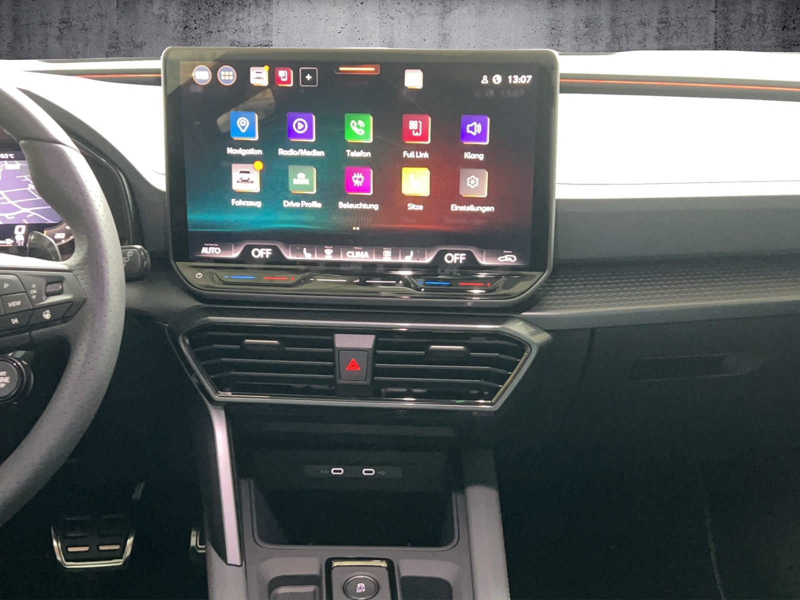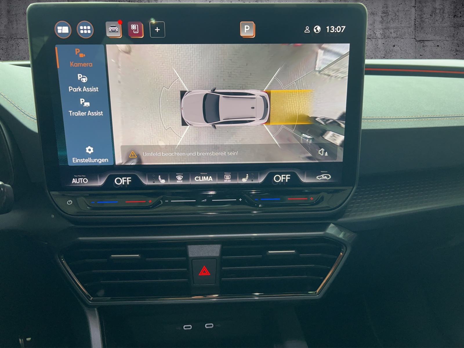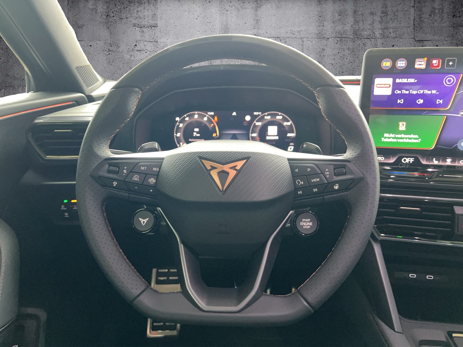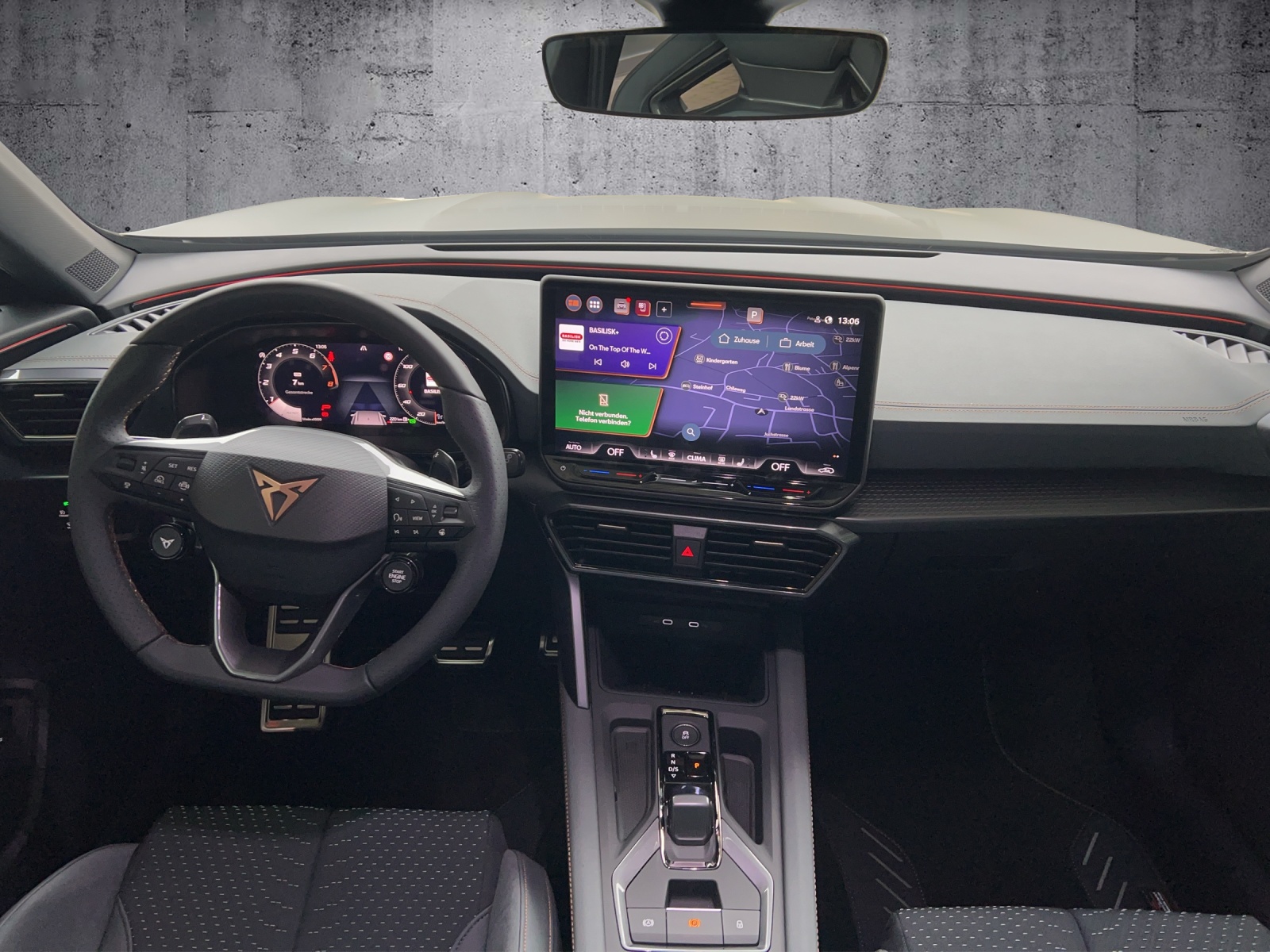 3-Punkt-Sicherheitsgurte auf allen Plätzen ABS, EBV elektronische Bremskraft-verteilung Abgedunkelte Scheiben ab B-Säule hinten Airbag: Airbag Beifahrer deaktivierbar Airbag: Airbag Fahrer und Beifahrer Airbag: Kopfairbags vorne und hinten Airbag: Seitenairbags vorne und hinten, vorne mit Knieairbag Assist: Aufmerksamkeits- und Müdigkeitserkennung (ADA) Assist: Ausweichunterstützung / Abbiegeassistent Assist: Automatische Distanzregelung ACC Assist: City Notbremsfunktion Assist: Einparkhilfe vorne und hinten mit Rückfahrkamera Assist: Elektronische Parkbremse mit Auto Hold Funktion Assist: Lane assist (Spurhalteassistent) Assist: Multifunktionskamera Assist: Multikollisionsbremse Assist: Prädiktive Speedlimiter Assist: Regen-/Lichtsensor Assist: Traction Control (TCS) Assist: Traffic sign recognition (Verkehrszeichenerkennung) Assist: Umfeldbeobachtung Front-Assist Aussenspiegel mit Beifahrerspiegelabsenkung Aussenspiegel mit LED-Umfeldbeleuchtung Automatisch abblendender Innenrückspiegel Beleuchtete Sonnenblende links mit abdeckbarem Spiegel und Lasche, rechts mit abdeckbarem Spiegel Dekor: Luftausströmer, Lenkrad- und Mittelkonsolendetails in "Dark Chrome" ESC mit EBA, DSR, XDS und Reifendruckkontrolle Elektrische Fensterheber vorne und hinten mit Komfortschaltung und Einklemmschutz Fahrwerk: Adaptive Fahrwerksregelung DCC Fahrwerk: Performance BREMBO Bremssättel vorne Fahrwerk: Progressivlenkung Fussmatten vorne und hinten Garantie: Cupra 12 Jahre Gewährleistung gegen Karosserie-Durchrostung Garantie: Cupra 3 Jahre Lack-Gewährleistung Garantie: Cupra Garantie 2 Jahre ohne Kilometerbegrenzung Heckscheiben-Wisch-/Waschanlage mit Intervall Kindersitzverankerung ISOFIX (äussere Plätze hinten) Klima: 3-Zonen Climatronic mit Fondraumbedienung Lackierung: Uni-Lackierung Lenkrad: Supersportlenkrad mit Start-/ Drive Profile-Knopfsystem und Schaltwippen, beheizbar Licht: Coming-home-Funktion Licht: Drittes Bremslicht Licht: Durchgehende Full LED-Heckleuchten Licht: Fernlicht-Assistent Licht: LED Heckleuchten mit beleuchtetem 3D CUPRA Logo Licht: LED-Heckleuchten mit dynamischem Blinklicht Licht: LED-Nebelscheinwerfer mit Cornering-Funktion Licht: Leuchtweitenregulierung dynamisch Licht: Nebelschlussleuchte Media: 12,9" Infotainment (MIB3) Media: 2 USB C Anschlüsse hinten und vorne Media: CUPRA Connect Online Infotainment Media: CUPRA Connect Remote & Access Media: CUPRA Connect Safety & Services Media: CUPRA Connectivity Box Media: DAB+ (Digital Audio Broadcasting) Media: IMMERSIVE by SENNHEISER Media: Mobiltelefon Freisprechanlage Bluetooth Pyrotechnische Gurtstraffer und Gurtkraftbegrenzer Räder: Alufelgen 8J x 19", "SANDSTORM COPPER" Machined in Copper Räder: Reifendruckkontrollsystem Räder: Reifenreparatur-Set (Tire Fit) Servolenkung mit geschwindigkeitsabhängiger Lenkkraftunterstützung Sitze: 3 verstellbare Kopfstützen hinten Sitze: CUPRA CUPBucket Sportschalensitze in Textil "Enceladus Grey" Sitze: Elektrische Sitzverstellung mit Memory-Funktion für Fahrer- und Beifahrerseite Sitze: Geteilt abklappbare Rücksitzlehne 1/3 - 2/3 Sitze: Kopfstützen vorne (integrierte) Sitze: Lendenwirbelstütze Fahrer- und Beifahrerseite elektrisch einstellbar Sitze: Mittelarmlehne hinten Sitze: Mittelarmlehne vorne Sitze: Sitzheizung für Vordersitze, getrennt regelbar Sitze: Vordersitze höhenverstellbar mit Lendenwirbelstütze Stopp - Start- und Rekuperationssystem Wegfahrsperre elektronisch Zentralverriegelung "Keyless-Go" Zentralverriegelung mit Funkfernbedienung, 2 Funkschlüssel