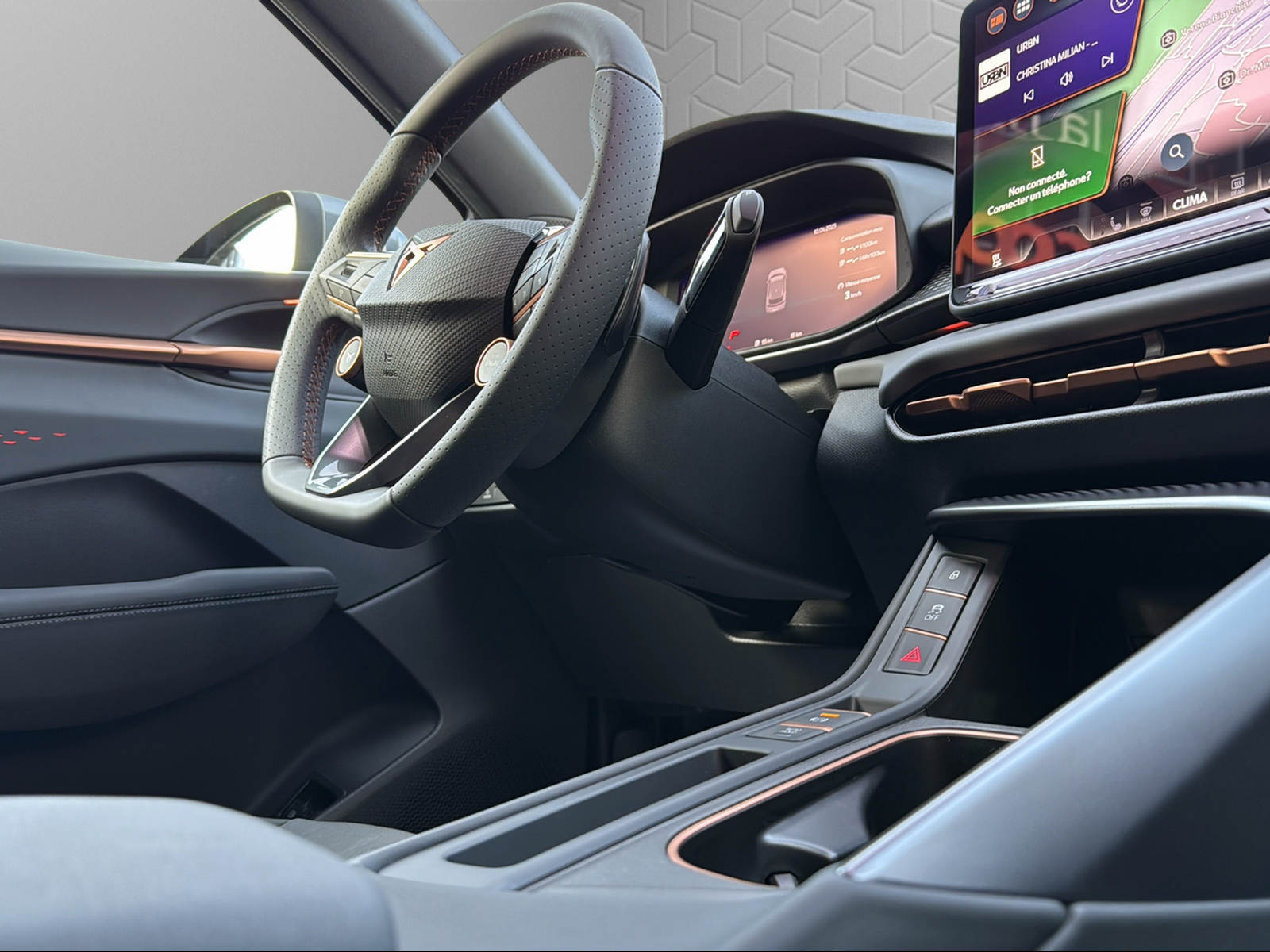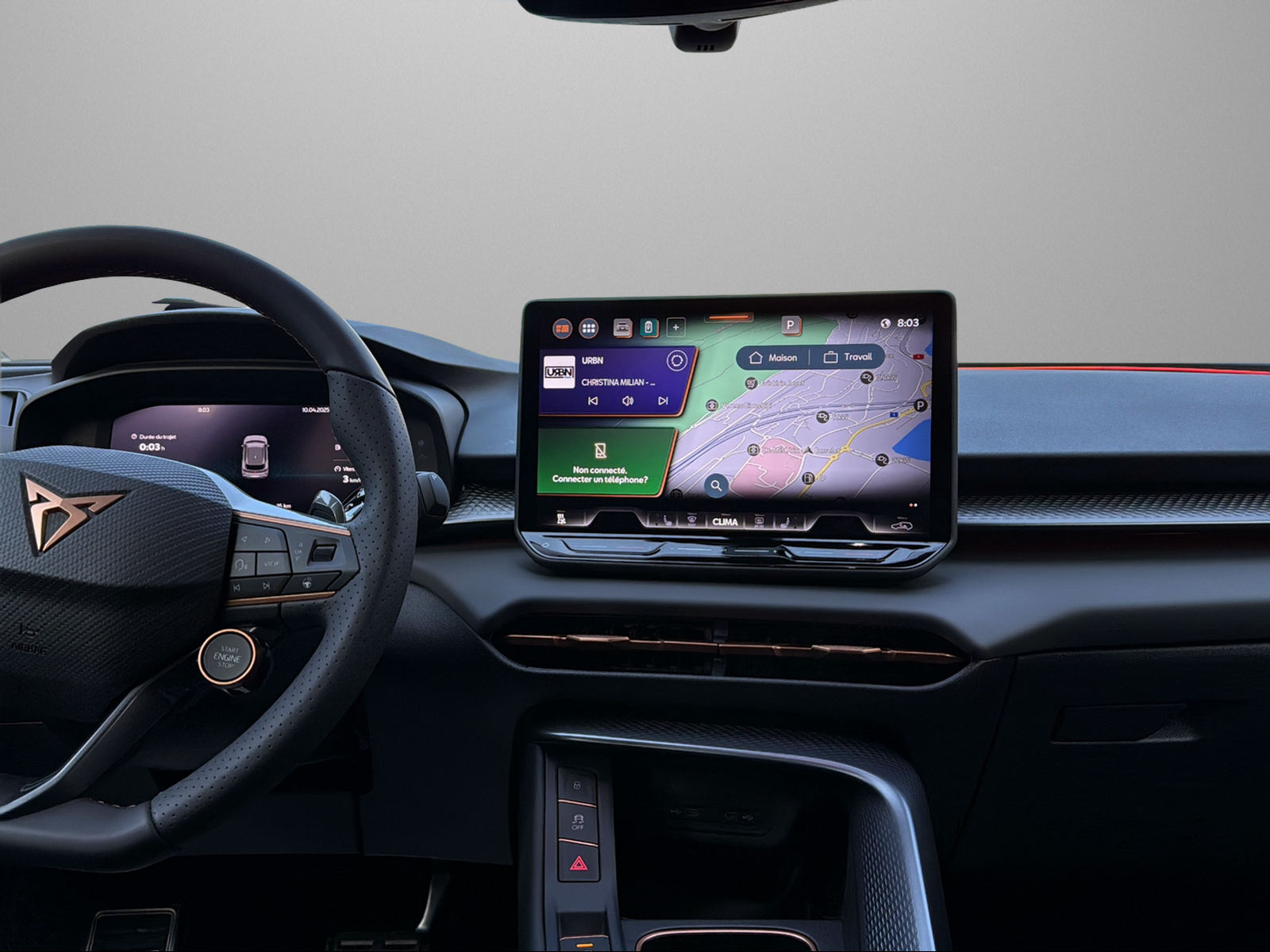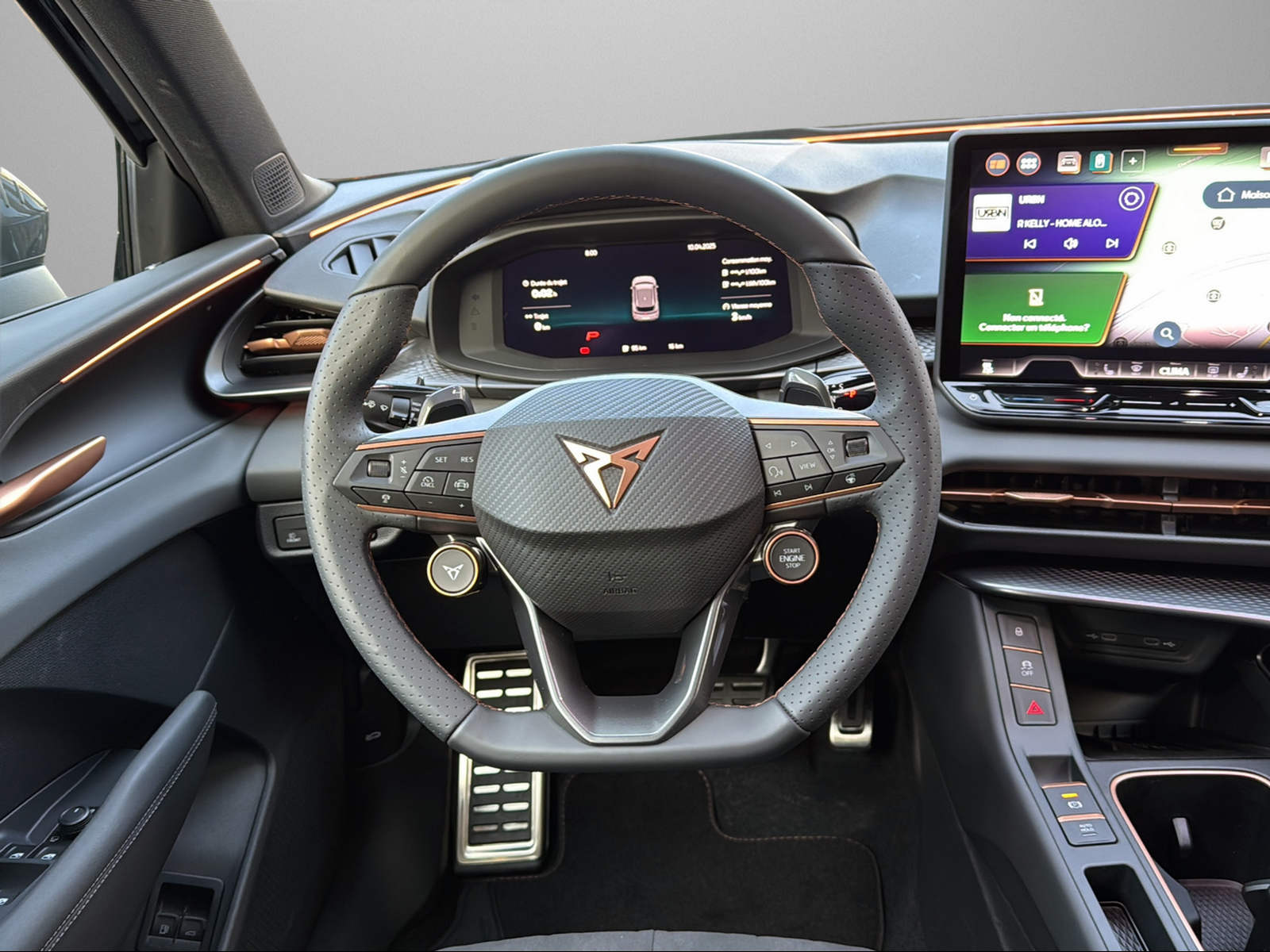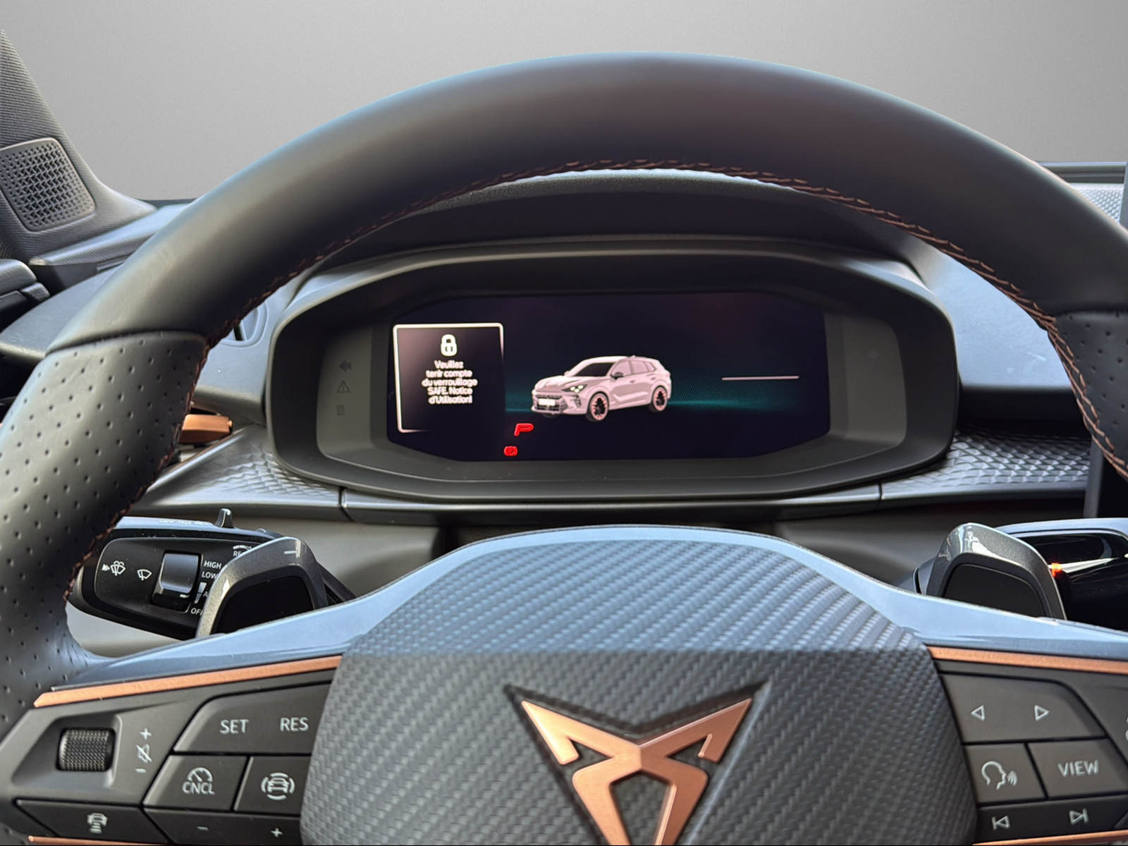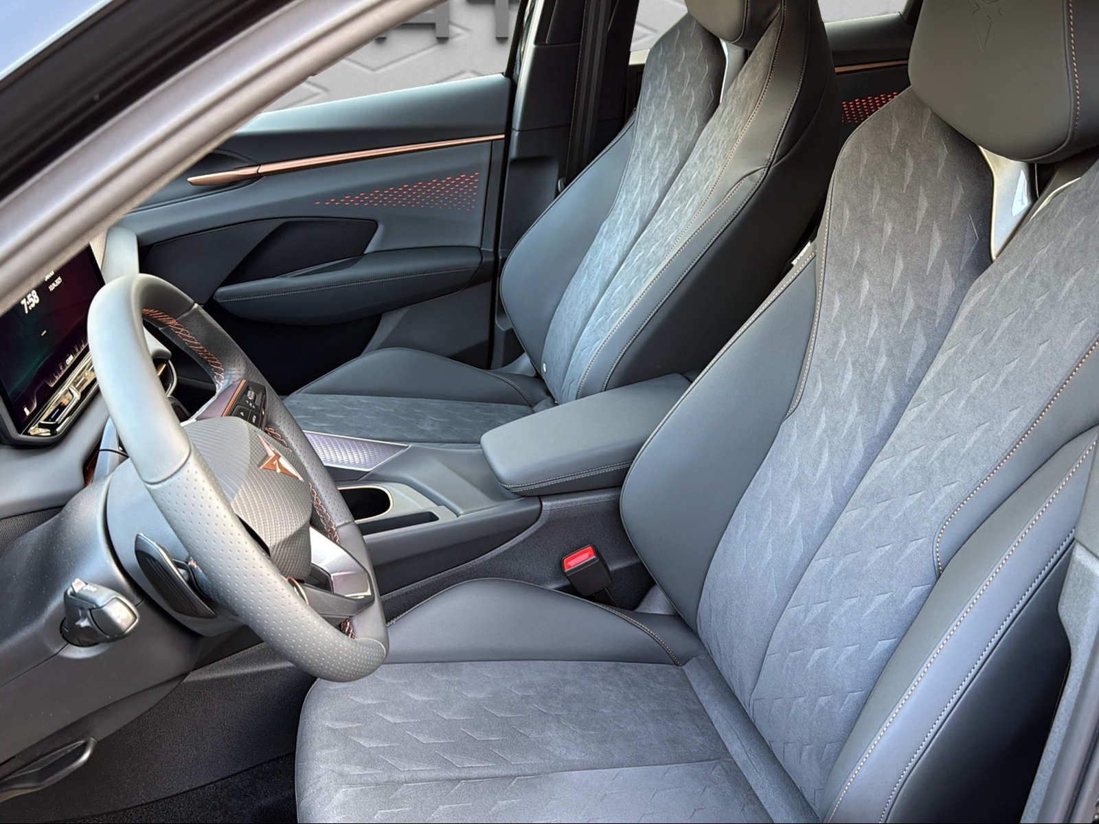 3-Punkt-Sicherheitsgurte auf allen Plätzen ABS, EBV elektronische Bremskraft-verteilung Abgedunkelte Scheiben ab B-Säule hinten Airbag: Airbag Beifahrer deaktivierbar Airbag: Airbag Fahrer und Beifahrer Airbag: Kopfairbags vorne und hinten Airbag: Seitenairbags für Fahrer und Beifahrer Alarme avec surveillance intérieure Ambiente Innenraumbeleuchtung mit beleuchteten Türpanelen Assist: Aufmerksamkeits- und Müdigkeitserkennung (ADA) Assist: Ausweichunterstützung / Abbiegeassistent Assist: Automatische Distanzregelung ACC Assist: City Notbremsfunktion Assist: Einparkhilfe vorne und hinten mit Rückfahrkamera Assist: Elektronische Parkbremse mit Auto Hold Funktion Assist: Lane assist (Spurhalteassistent) Assist: Multifunktionskamera Assist: Multikollisionsbremse Assist: Prädiktive Speedlimiter Assist: Traffic sign recognition (Verkehrszeichenerkennung) Assist: Umfeldüberwachungssystem "Front-Assist" Aussenspiegel elektrisch einstell-, beheiz- und einklappbar Aussenspiegel mit LED-Umfeldbeleuchtung Beleuchtete Sonnenblende links mit abdeckbarem Spiegel und Lasche, rechts mit abdeckbarem Spiegel Capteur de pluie et lumière Câble de charge pour prise domestique (mode 2) ESC mit EBA, DSR, XDS und Reifendruckkontrolle Einstiegsleisten beleuchtet Elektrische Fensterheber vorne und hinten mit Komfortschaltung und Einklemmschutz Fahrwerk: CUPRA Sportfahrwerk Fahrwerk: Progressivlenkung Garantie: CUPRA Prolongation de garantie constructeur pour les 3ème, 4ème et 5ème années / Garantie: Cupra 12 ans de garantie contre perforation de la carrosserie Garantie: Cupra 2 ans de garantie, kilométrage illimité Garantie: Cupra 3 ans de garantie pour la peinture Garantie: Garantie Cupra 2 ans Garantie: Garantie Cupra Garantie de la batterie 8 ans ou 160 000 KM sur Heckklappe elektrisch öffnend und schliessend "Virtual Pedal" Heckscheiben-Wisch-/Waschanlage mit Intervall Klima: 3-Zonen Climatronic mit Fondraumbedienung Lackierung: Uni-Lackierung Lenkrad: Leder Multifunktionslenkrad mit Schaltwippen, beheizbar Licht: Drittes Bremslicht Licht: Durchgehende Full LED-Heckleuchten Licht: LED Heckleuchten mit beleuchtetem 3D CUPRA Logo Licht: LED-Heckleuchten mit dynamischem Blinklicht Licht: LED-Nebelscheinwerfer mit Cornering-Funktion Licht: LED-Scheinwerfer für Abblend- und Fernlicht Licht: Leuchtweitenregulierung dynamisch Licht: Nebelschlussleuchte Media: 12,9" Infotainment (MIB3) Media: 2 USB C Anschlüsse hinten und vorne Media: CUPRA Connect Online Infotainment Media: DAB+ (Digital Audio Broadcasting) Media: Mobiltelefon Freisprechanlage Bluetooth Mittelarmlehne vorne und hinten Mèdias: CUPRA Connect Remote & Access / CUPRA Connect Safety & Services Mèdias: CUPRA Connectivity Box Pyrotechnische Gurtstraffer und Gurtkraftbegrenzer Roues: Aluminium 8,5J x 19", "COSMIC" usiné en Sport Black Matt & Silver Räder: Reifendruckkontrollsystem Rétroviseur intérieur anti-éblouissement Schlüsselloses Schliess- und Startsystem (KESSY Advance) Servolenkung mit geschwindigkeitsabhängiger Lenkkraftunterstützung Sitze: 3 verstellbare Kopfstützen hinten Sitze: CUPRA Sport Schalensitze in Textil, "DEEP OCEAN" "SEAQUAL" Sitze: Geteilt abklappbare Rücksitzlehne 1/3 - 2/3 Sitze: Geteilt abklappbare Rücksitzlehne mit Mittelarmlehne Sitze: Kindersitzverankerung ISOFIX hinten Sitze: Vordersitze höhenverstellbar mit Lendenwirbelstütze Stopp - Start- und Rekuperationssystem Suspension: Régulation adaptive du châssis DCC pro Tapis de sol avant et arrière Wegfahrsperre elektronisch Zentralverriegelung mit Funkfernbedienung, 2 Funkschlüssel Éclairage d'ambiance LED Smart Wraparound, avec affichage des fonctions