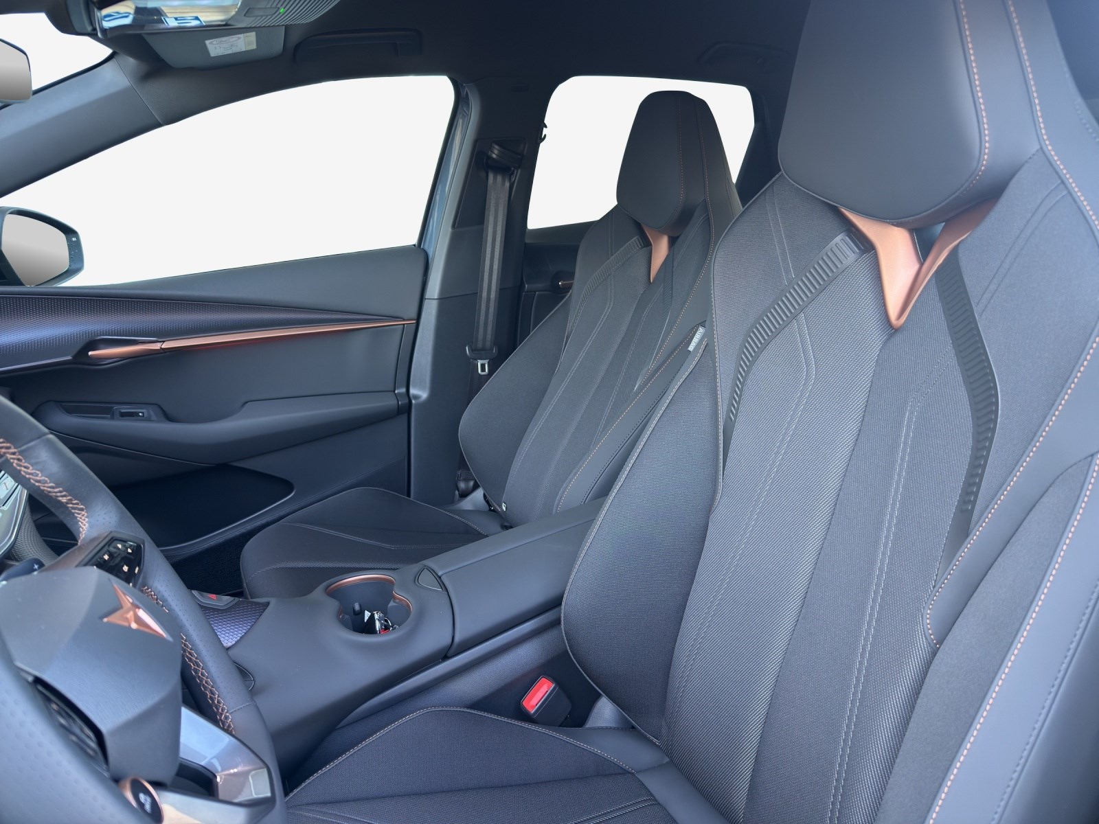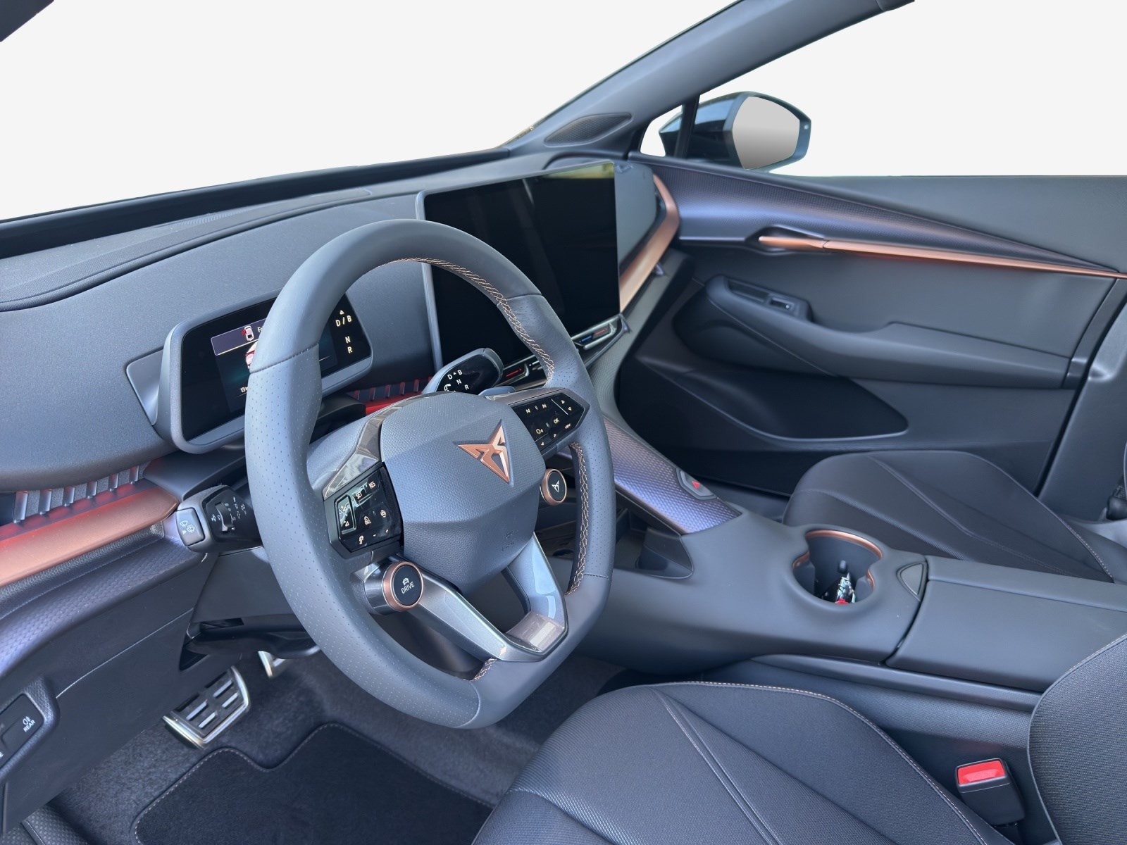 5.3" Full Digital Cockpit Abgedunkelte Scheiben ab B-Säule hinten Airbag: Airbag Beifahrer deaktivierbar Airbag: Airbag Fahrer und Beifahrer Airbag: Seitenairbags für Fahrer und Beifahrer Alarmanlage mit Innenraumüberwachung Assist: Aufmerksamkeits- und Müdigkeitserkennung (ADA) Assist: Ausweichunterstützung / Abbiegeassistent Assist: Exit Assist (Ausparkassistent) Assist: Exit Warning (Ausstiegswarner) Assist: Intelligenter Geschwindigkeitsassistent Assist: Parklenkassistent RPA (Remote Park Assist) Assist: PreCrash Sicherheitssystem Assist: Prädiktive automatische Distanzregelung ACC Assist: Regen-/Lichtsensor Assist: Side Assist (Spurwechselassistent) Assist: Traction Control (TCS) Assist: Traffic sign recognition (Verkehrszeichenerkennung) Assist: eCall Notruffunktion Aussenspiegel elektrisch einstell-, beheiz- und einklappbar Automatisch abblendender Innenrückspiegel Dreipunkt-Automatiksicherheitsgurte auf allen Plätzen Elektrische Fensterheber vorne und hinten mit Komfortschaltung und Einklemmschutz Elektronisches Stabilitäts-Programm (ESP) Fahrwerk: Adaptive Fahrwerksregelung DCC Garantie: Cupra 12 Jahre Gewährleistung gegen Karosserie-Durchrostung Garantie: Cupra 3 Jahre Lack-Gewährleistung Garantie: Cupra Garantie 2 Jahre ohne Kilometerbegrenzung Getriebe: 1-Gang Automatik Heckklappe elektrisch öffnend und schliessend "Virtual Pedal" Klima: 3-Zonen Climatronic mit Fondraumbedienung LED Ambientebeleuchtung "PURE" Lackierung: Uni-Lackierung Lenkrad: Supersportlenkrad mit Drive Profile-Knopfsystem,beheizbar Licht: Drittes Bremslicht Licht: LED Heckleuchten mit beleuchtetem 3D CUPRA Logo Licht: Matrix LED Fernlicht Licht: Matrix LED Scheinwerfer Licht: Nebelschlussleuchte Media: 15" Infotainment (MIB3) Media: 2 USB C Anschlüsse hinten und vorne Media: Bluetooth-Freisprecheinrichtung Media: CUPRA Connect Online Infotainment Media: CUPRA Connect Remote & Access Media: CUPRA Connect Safety & Services Media: CUPRA Navigationssystem Media: DAB+ (Digital Audio Broadcasting) Media: Wireless Charger zur induktiven Smartphone Ladung Polster: Sitzbezüge in Stoff "Soul Black" Räder: Alufelgen 8J x 20", "Heckla" Machined Sport in Black/Silver Räder: Reifendruckkontrollsystem Schlüsselloses Schliess- und Startsystem (KESSY Advance) Servolenkung geschwindigkeitsabhängig Sitze: Geteilt abklappbare Rücksitzlehne 1/3 - 2/3 Sitze: Kindersitzbefestigungssystem ISOFIX Sitze: Kopfstützen hinten höhenverstellbar Sitze: Kopfstützen vorne (integrierte) Sitze: Sitzheizung für Vordersitze, getrennt regelbar Sitze: Vordersitze höhenverstellbar Vorbereitung für Anhängevorrichtung Wegfahrsperre elektronisch Zentralverriegelung mit Fernbedienung