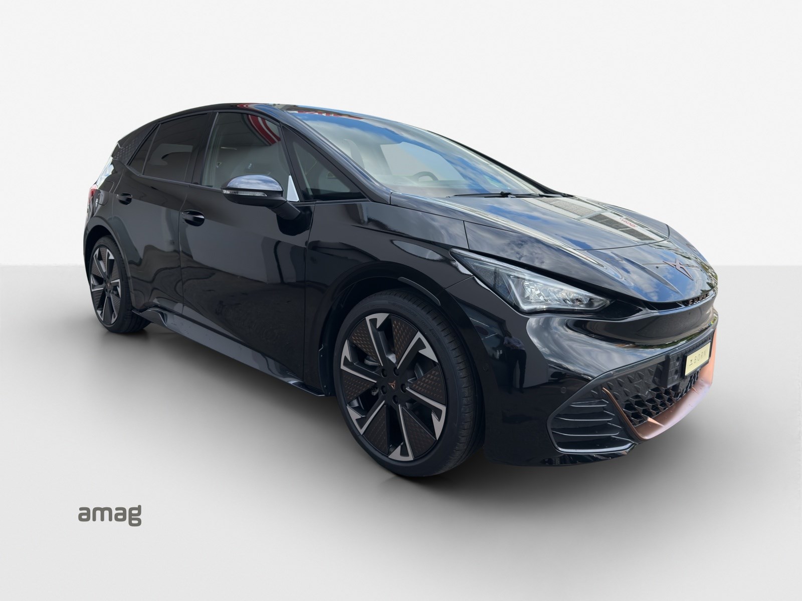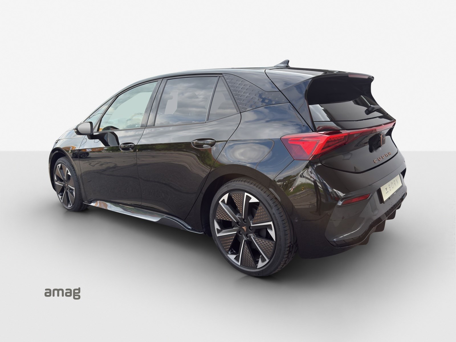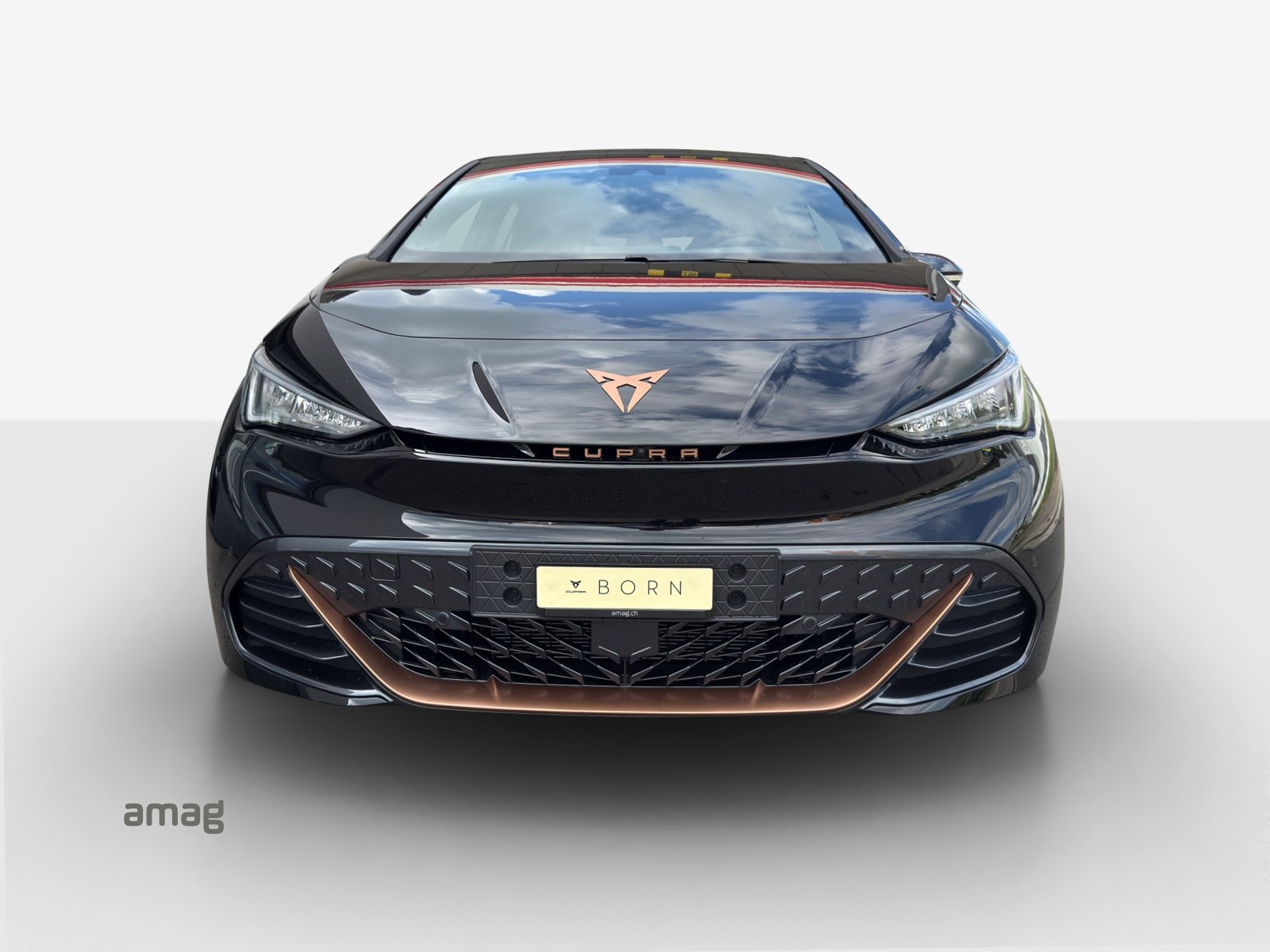 Alarmanlage mit Innenraumüberwachung Augmented Reality Head-up-Display Cargo (Ladekabel Mode 2 und variabler Ladeboden) Garantie: Cupra Hersteller-Garantieverlängerung für das 3., 4. und 5. Jahr / max.100’000 km LED-Innenraumbeleuchtung mit Ambientebeleuchtung Smart Wraparound "Multicolor" Lackierung: Metallic-Lackierung Media: SENNHEISER Sound System mit 12 High-End-Lautsprecher inkl. 300 Watt Subwoofer Paket: CUPRA BORN ADVANCED PACK Paket: CUPRA Sportschalensitze in Dinamica "Granite Grey" Räder: Alufelgen 8J x 20", "THUNDERSTORM" Machined in Glossy Black with Copper Details