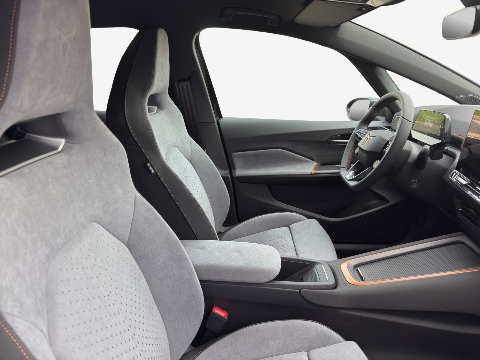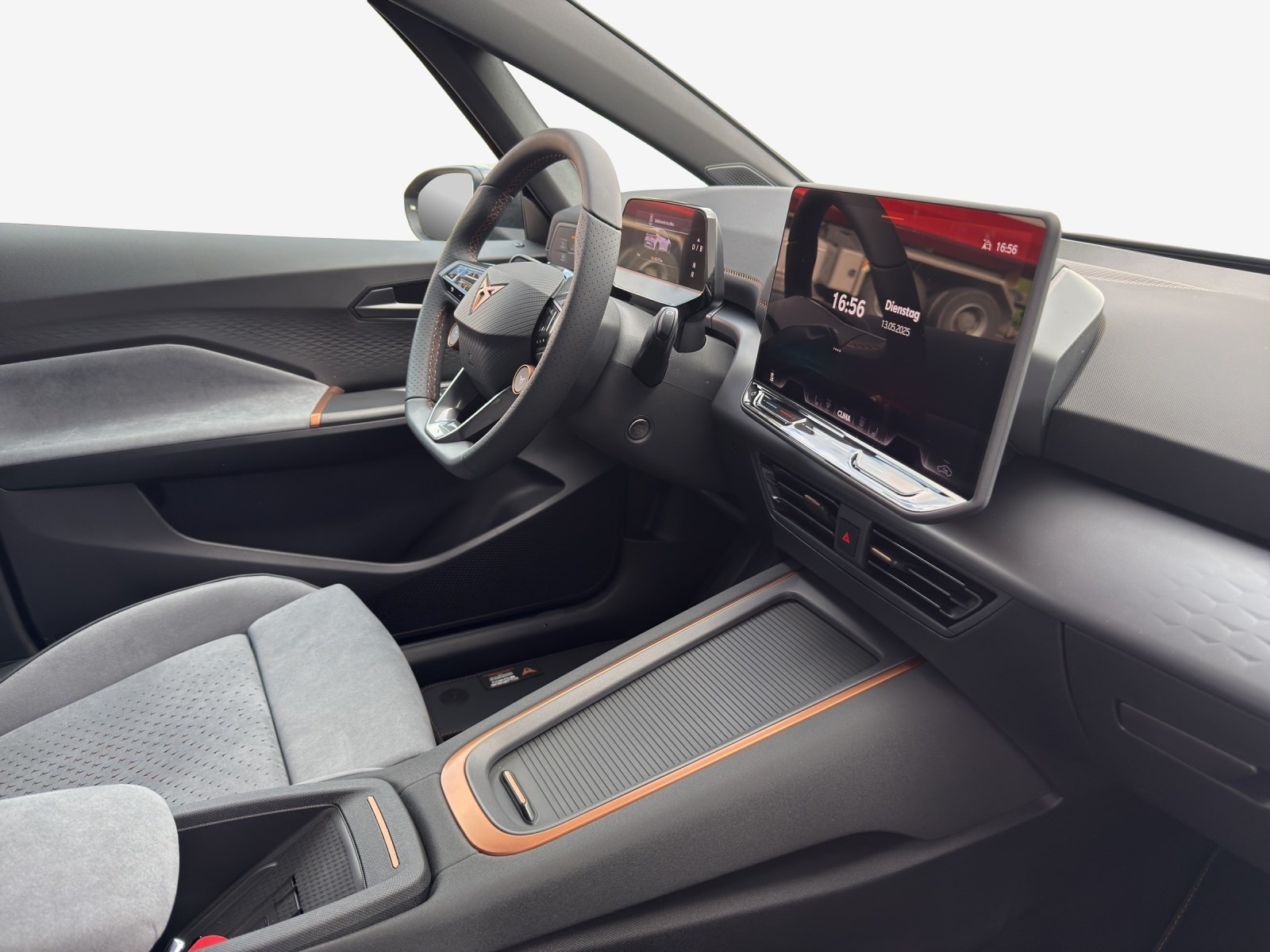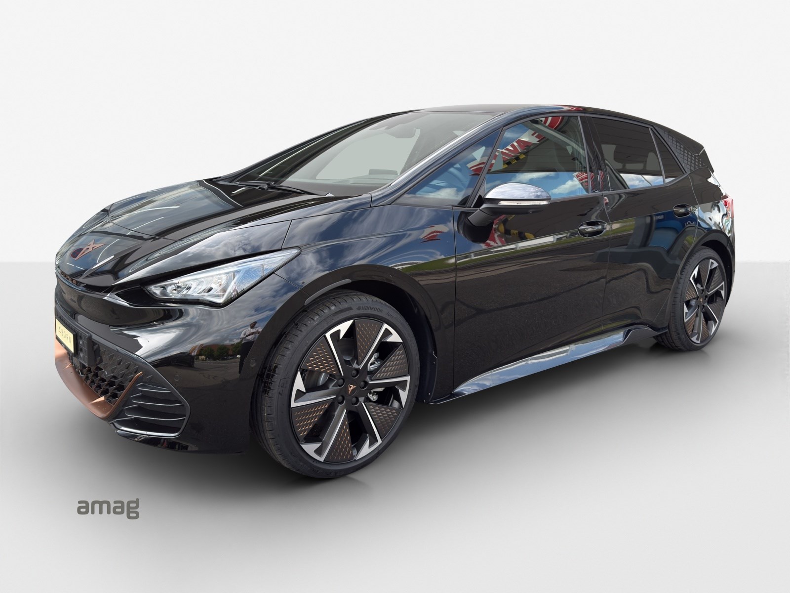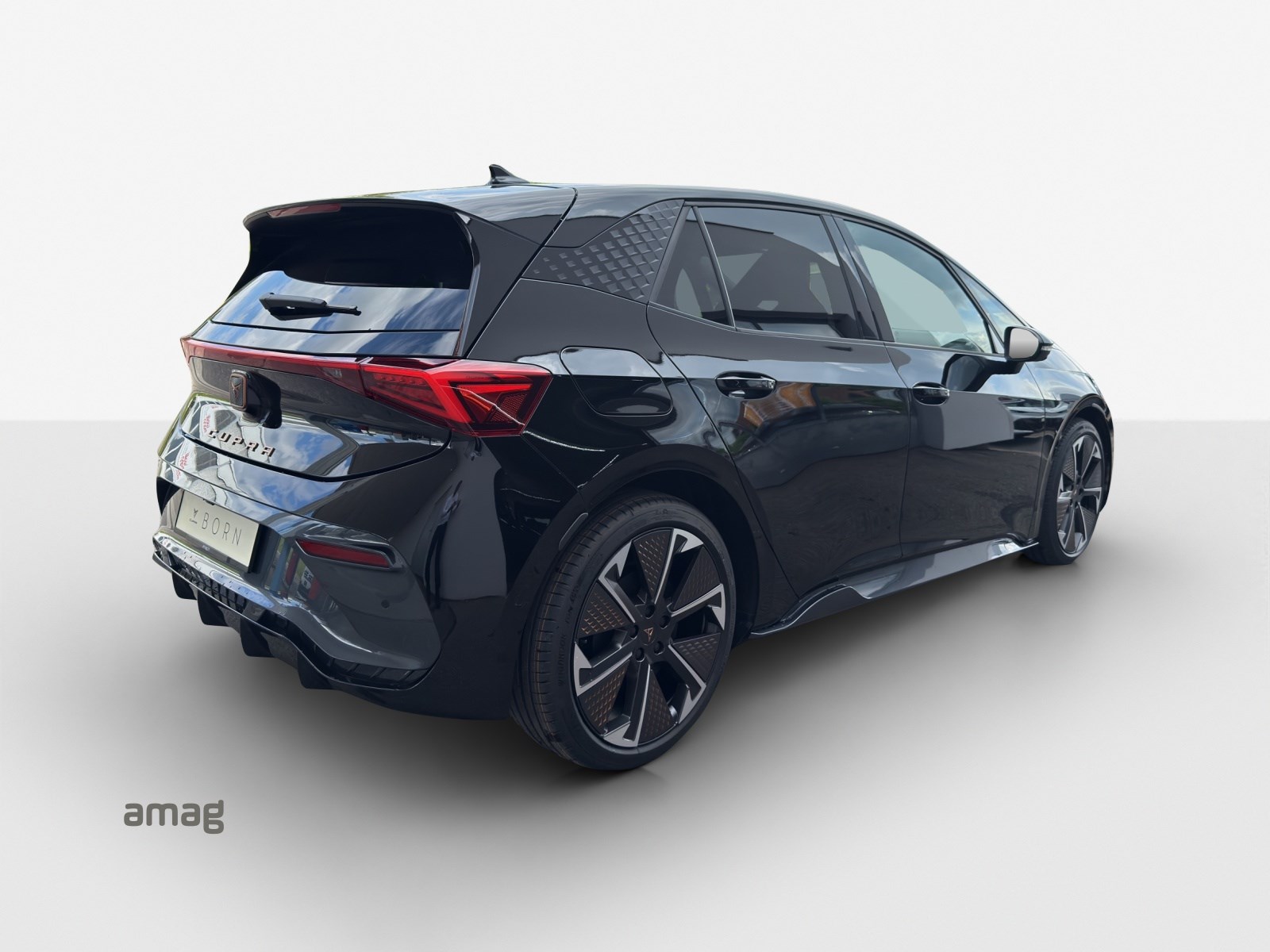 Alarmanlage mit Innenraumüberwachung Augmented Reality Head-up-Display Cargo (Ladekabel Mode 2 und variabler Ladeboden) Garantie: Cupra Hersteller-Garantieverlängerung für das 3., 4. und 5. Jahr / max.100’000 km LED-Innenraumbeleuchtung mit Ambientebeleuchtung Smart Wraparound "Multicolor" Lackierung: Metallic-Lackierung Media: SENNHEISER Sound System mit 12 High-End-Lautsprecher inkl. 300 Watt Subwoofer Paket: CUPRA BORN ADVANCED PACK Paket: CUPRA Sportschalensitze in Dinamica "Granite Grey" Räder: Alufelgen 8J x 20", "THUNDERSTORM" Machined in Glossy Black with Copper Details