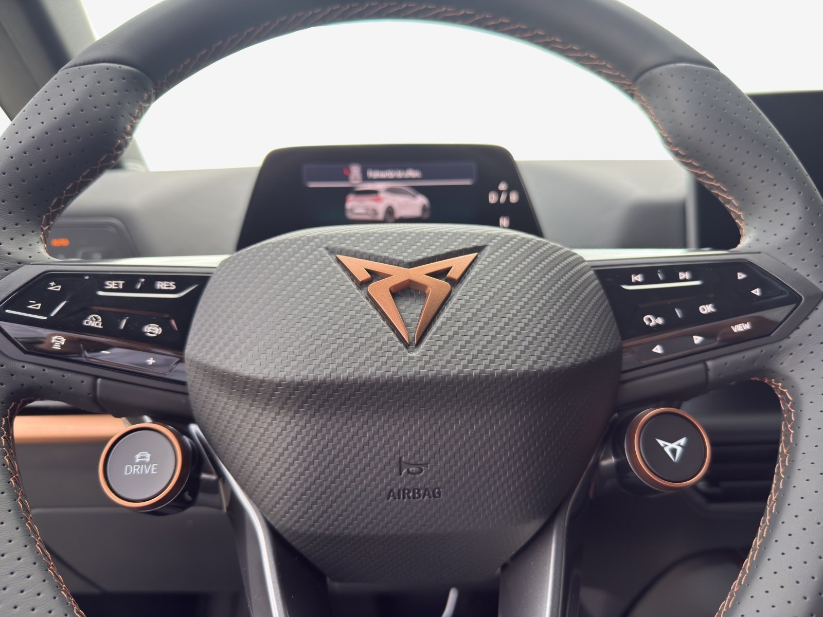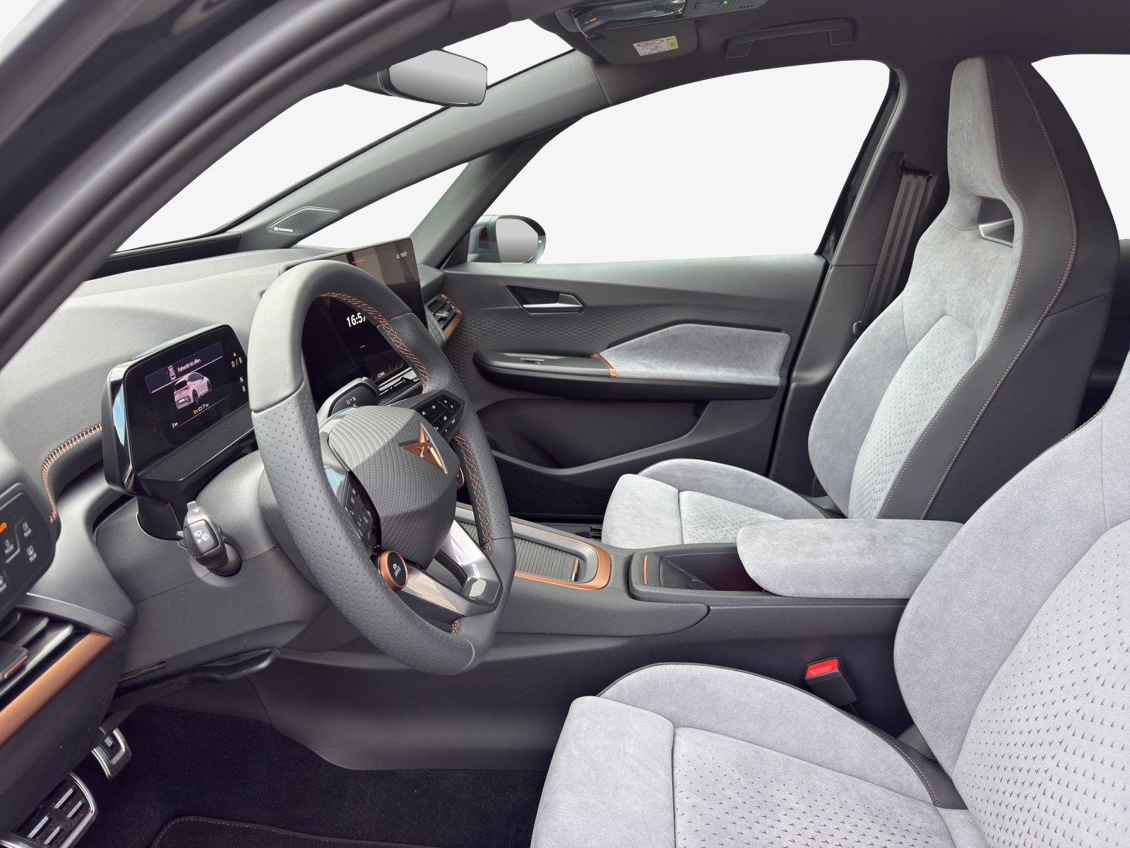 5.3" Full Digital Cockpit ABS, EBV elektronische Bremskraft-verteilung Airbag: Airbag Beifahrer deaktivierbar Airbag: Airbag Fahrer und Beifahrer Airbag: Kopfairbags vorne und hinten Airbag: Seitenairbags für Fahrer und Beifahrer Ambiente Innenraumbeleuchtung "Multicolor" mit 6 Farben Assist: Aufmerksamkeits- und Müdigkeitserkennung (ADA) Assist: Ausweichunterstützung / Abbiegeassistent Assist: Einparkhilfe vorne und hinten mit optischer Anzeige Assist: Lane assist (Spurhalteassistent) Assist: Regen-/Lichtsensor Assist: Traction Control (TCS) Assist: Verkehrszeichenerkennung Aussenspiegel elektrisch einstell-, beheiz- und einklappbar mit Beifahrerabsenkfunktion Aussenspiegel in Cosmo Grey, Türgriffe in Wagenfarbe CUPRA Drive Profile mit "driving experience button" Range, Comfort, Performance, CUPRA, Individual Dreipunkt-Automatiksicherheitsgurte auf allen Plätzen Elektrische Fensterheber vorne und hinten mit Komfortschaltung und Einklemmschutz Elektronisches Stabilitäts-Programm Garantie: Cupra 12 Jahre Gewährleistung gegen Karosserie-Durchrostung Garantie: Cupra 3 Jahre Lack-Gewährleistung Garantie: Cupra Garantie 2 Jahre ohne Kilometerbegrenzung Garantie: Cupra Garantie Batterie- Gewährleistung 8 Jahre oder 160’000 KM auf 70% Batterieleistung. Getriebe: 1-Gang Automatik Heckscheiben-Wisch-/Waschanlage mit Intervall Innenspiegel automatisch abblendbar Klima: 2-Zonen Climatronic Klima: Elektrische Luftzusatzheizung Lackierung: Uni-Lackierung Lenkrad: Beheizbares Ledermultifunktionslenkrad Licht: Drittes Bremslicht Licht: Durchgehende Full LED-Heckleuchten Licht: Full LED-Scheinwerfer für Abblend-und Fernlicht und Coming Home Funktion Licht: LED-Nebelscheinwerfer Media: 12,9" Infotainment (MIB3) Media: 2 USB C Anschlüsse hinten und vorne Media: Bluetooth-Freisprecheinrichtung Media: CUPRA Connect Online Infotainment für Navigationssystem Media: CUPRA Connect Safety & Services für Navigationssystem Media: DAB+ (Digital Audio Broadcasting) Pollenfilter (Staubfilter) Räder: Alufelgen 7.5J x 20", "HURRICANE" 31/3 in Sport Black "e-racer" Räder: Reifendruckkontrollsystem Servolenkung geschwindigkeitsabhängig Sitze: CUPRA Sport Schalensitze in Textil, schwarz "SEAQUAL" Sitze: Fahrersitz höhenverstellbar Sitze: Geteilt abklappbare Rücksitzlehne 1/3 - 2/3 Sitze: Kindersitzbefestigungssystem ISOFIX Sitze: Mittelarmlehne vorne Sonnenblende Fahrer und Beifahrerseite Wegfahrsperre elektronisch Zentralverriegelung "Keyless-Go"