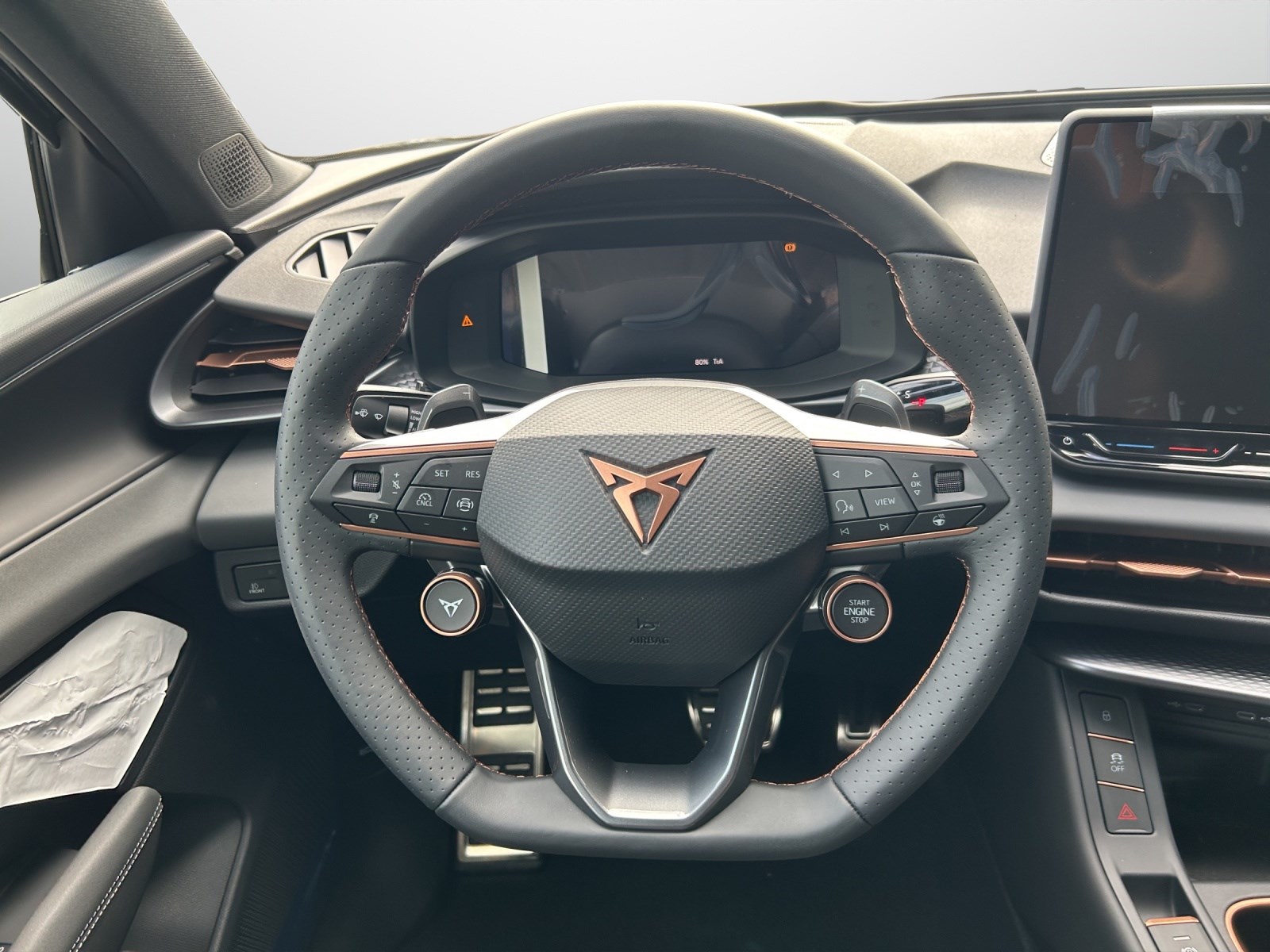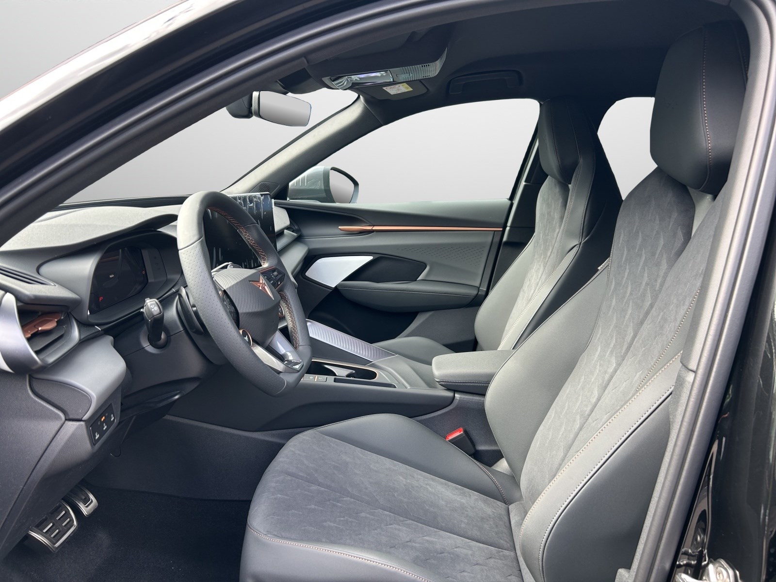 3-Punkt-Sicherheitsgurte auf allen Plätzen ABS, EBV elektronische Bremskraft-verteilung Airbag: Airbag Beifahrer deaktivierbar Airbag: Airbag Fahrer und Beifahrer Airbag: Kopfairbags vorne und hinten Airbag: Seitenairbags für Fahrer und Beifahrer Ambiente Innenraumbeleuchtung mit beleuchteten Türpanelen Assist: Aufmerksamkeits- und Müdigkeitserkennung (ADA) Assist: Ausweichunterstützung / Abbiegeassistent Assist: Automatische Distanzregelung ACC Assist: City Notbremsfunktion Assist: Elektronische Parkbremse mit Auto Hold Funktion Assist: Lane assist (Spurhalteassistent) Assist: Multifunktionskamera Assist: Multikollisionsbremse Assist: Prädiktive Speedlimiter Assist: Traffic sign recognition (Verkehrszeichenerkennung) Assist: Umfeldüberwachungssystem "Front-Assist" Aussenspiegel elektrisch einstell-, beheizbar Aussenspiegel mit LED-Umfeldbeleuchtung Beleuchtete Sonnenblende links mit abdeckbarem Spiegel und Lasche, rechts mit abdeckbarem Spiegel ESC mit EBA, DSR, XDS und Reifendruckkontrolle Elektrische Fensterheber vorne und hinten mit Komfortschaltung und Einklemmschutz Fahrwerk: CUPRA Sportfahrwerk Fahrwerk: Progressivlenkung Fussmatten vorne und hinten Garantie: Cupra 12 Jahre Gewährleistung gegen Karosserie-Durchrostung Garantie: Cupra 3 Jahre Lack-Gewährleistung Garantie: Cupra Garantie 2 Jahre ohne Kilometerbegrenzung Heckscheiben-Wisch-/Waschanlage mit Intervall Innenspiegel automatisch abblendbar Lackierung: Uni-Lackierung Lenkrad: Leder Multifunktionslenkrad mit Schaltwippen Licht: Drittes Bremslicht Licht: Durchgehende Full LED-Heckleuchten Licht: LED Heckleuchten mit beleuchtetem 3D CUPRA Logo Licht: LED-Heckleuchten mit dynamischem Blinklicht Licht: LED-Nebelscheinwerfer mit Cornering-Funktion Licht: LED-Scheinwerfer für Abblend- und Fernlicht Licht: Leuchtweitenregulierung dynamisch Licht: Nebelschlussleuchte Media: 12,9" Infotainment (MIB3) Media: 2 USB C Anschlüsse hinten und vorne Media: CUPRA Connect Remote & Access / CUPRA Connect Safety & Services Media: CUPRA Connectivity Box Media: DAB+ (Digital Audio Broadcasting) Media: Mobiltelefon Freisprechanlage Bluetooth Mittelarmlehne vorne und hinten Pyrotechnische Gurtstraffer und Gurtkraftbegrenzer Räder: Alufelgen 8J x 18", "ATOMIC" Machined in Sport Black Matt Räder: Reifendruckkontrollsystem Servolenkung mit geschwindigkeitsabhängiger Lenkkraftunterstützung Sitze: 3 verstellbare Kopfstützen hinten Sitze: CUPRA Sport Schalensitze in Textil, "DEEP OCEAN" "SEAQUAL" Sitze: Geteilt abklappbare Rücksitzlehne 1/3 - 2/3 Sitze: Kindersitzverankerung ISOFIX hinten Sitze: Vordersitze höhenverstellbar mit Lendenwirbelstütze Stopp - Start- und Rekuperationssystem Wegfahrsperre elektronisch Zentralverriegelung "Keyless-Go" Zentralverriegelung mit Funkfernbedienung, 2 Funkschlüssel