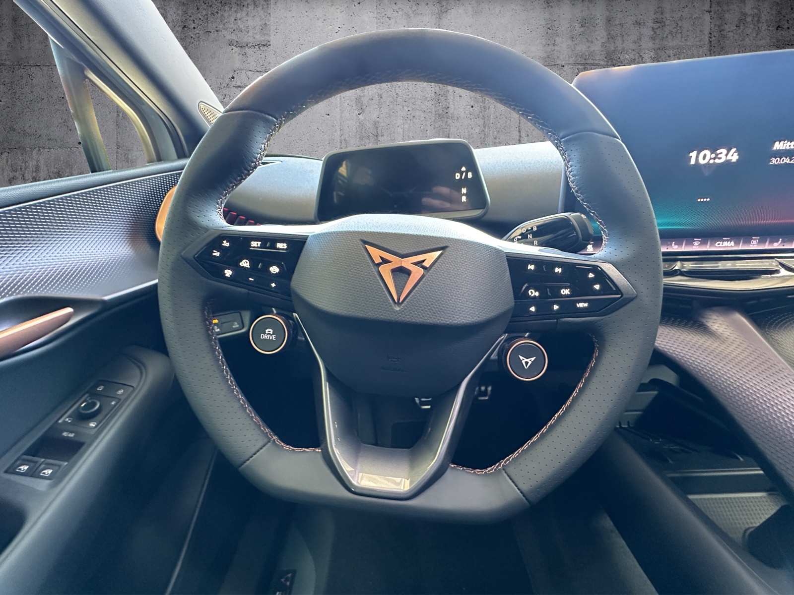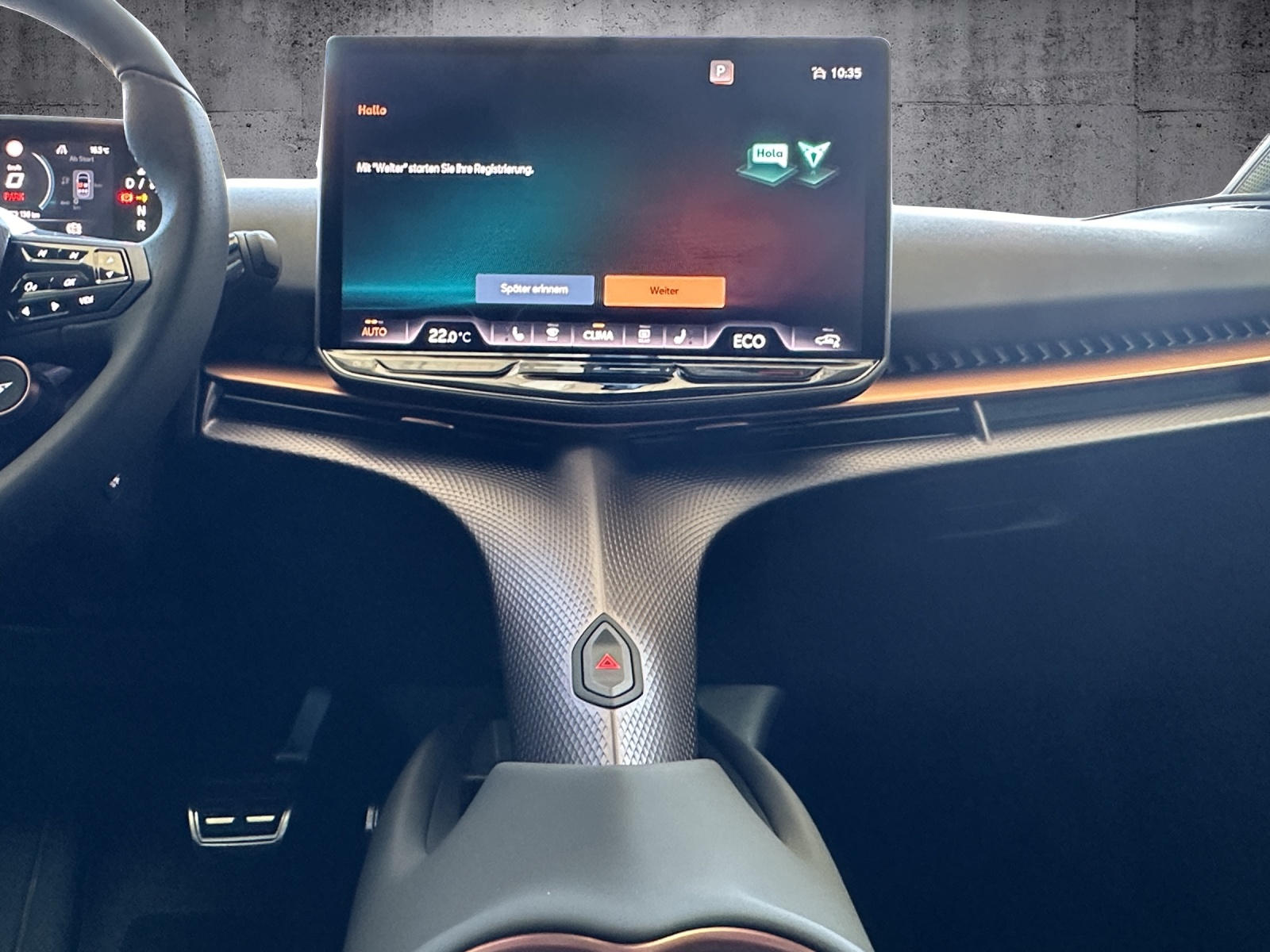 5.3" Full Digital Cockpit Abgedunkelte Scheiben ab B-Säule hinten Airbag: Airbag Beifahrer deaktivierbar Airbag: Airbag Fahrer und Beifahrer Airbag: Seitenairbags für Fahrer und Beifahrer Alarmanlage mit Innenraumüberwachung Assist: Aufmerksamkeits- und Müdigkeitserkennung (ADA) Assist: Ausweichunterstützung / Abbiegeassistent Assist: Exit Assist (Ausparkassistent) Assist: Exit Warning (Ausstiegswarner) Assist: Intelligenter Geschwindigkeitsassistent Assist: Parklenkassistent RPA (Remote Park Assist) Assist: PreCrash Sicherheitssystem Assist: Prädiktive automatische Distanzregelung ACC Assist: Regen-/Lichtsensor Assist: Side Assist (Spurwechselassistent) Assist: Traction Control (TCS) Assist: Traffic sign recognition (Verkehrszeichenerkennung) Assist: eCall Notruffunktion Aussenspiegel elektrisch einstell-, beheiz- und einklappbar Automatisch abblendender Innenrückspiegel Dreipunkt-Automatiksicherheitsgurte auf allen Plätzen Elektrische Fensterheber vorne und hinten mit Komfortschaltung und Einklemmschutz Elektronisches Stabilitäts-Programm (ESP) Fahrwerk: Adaptive Fahrwerksregelung DCC Garantie: Cupra 12 Jahre Gewährleistung gegen Karosserie-Durchrostung Garantie: Cupra 3 Jahre Lack-Gewährleistung Garantie: Cupra Garantie 2 Jahre ohne Kilometerbegrenzung Getriebe: 1-Gang Automatik Heckklappe elektrisch öffnend und schliessend "Virtual Pedal" Klima: 3-Zonen Climatronic mit Fondraumbedienung LED Ambientebeleuchtung "PURE" Lackierung: Uni-Lackierung Lenkrad: Supersportlenkrad mit Drive Profile-Knopfsystem,beheizbar Licht: Drittes Bremslicht Licht: LED Heckleuchten mit beleuchtetem 3D CUPRA Logo Licht: Matrix LED Fernlicht Licht: Matrix LED Scheinwerfer Licht: Nebelschlussleuchte Media: 15" Infotainment (MIB3) Media: 2 USB C Anschlüsse hinten und vorne Media: Bluetooth-Freisprecheinrichtung Media: CUPRA Connect Online Infotainment Media: CUPRA Connect Remote & Access Media: CUPRA Connect Safety & Services Media: CUPRA Navigationssystem Media: DAB+ (Digital Audio Broadcasting) Media: Wireless Charger zur induktiven Smartphone Ladung Polster: Sitzbezüge in Stoff "Soul Black" Räder: Alufelgen 8J x 20", "Heckla" Machined Sport in Black/Silver Räder: Reifendruckkontrollsystem Schlüsselloses Schliess- und Startsystem (KESSY Advance) Servolenkung geschwindigkeitsabhängig Sitze: Geteilt abklappbare Rücksitzlehne 1/3 - 2/3 Sitze: Kindersitzbefestigungssystem ISOFIX Sitze: Kopfstützen hinten höhenverstellbar Sitze: Kopfstützen vorne (integrierte) Sitze: Sitzheizung für Vordersitze, getrennt regelbar Sitze: Vordersitze höhenverstellbar Vorbereitung für Anhängevorrichtung Wegfahrsperre elektronisch Zentralverriegelung mit Fernbedienung