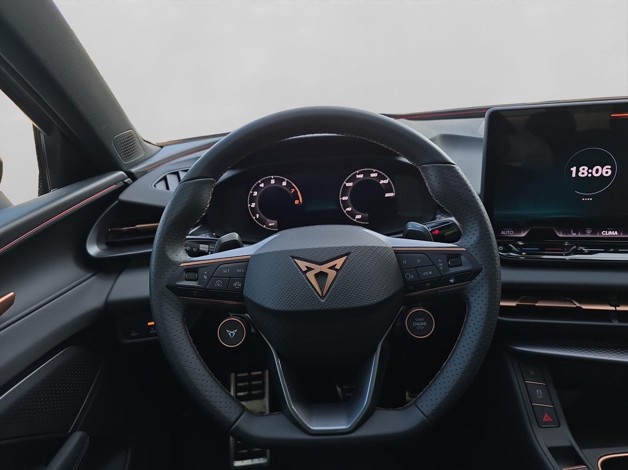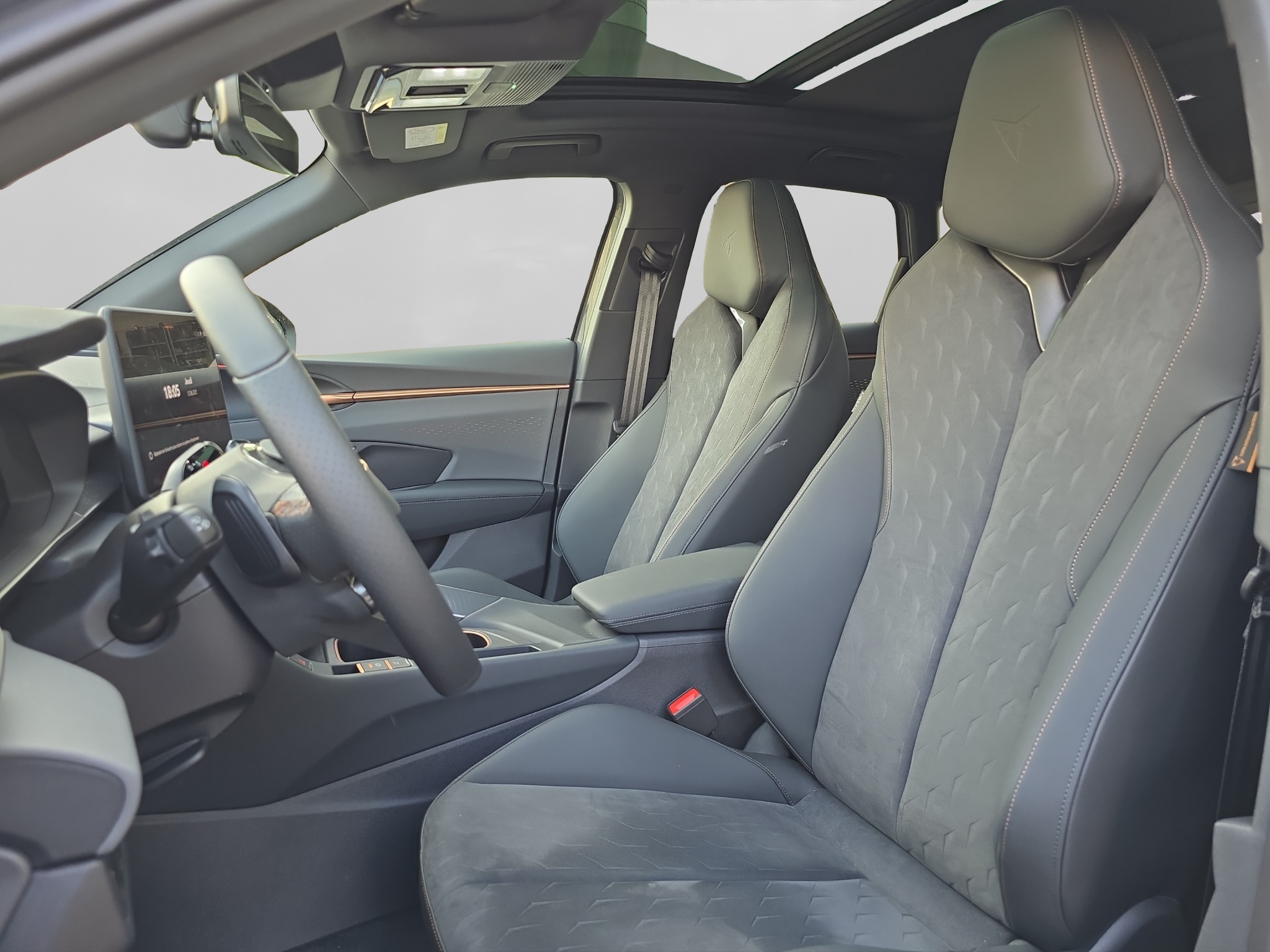 3-Punkt-Sicherheitsgurte auf allen Plätzen ABS, EBV elektronische Bremskraft-verteilung Abgedunkelte Scheiben ab B-Säule hinten Airbag: Airbag Beifahrer deaktivierbar Airbag: Airbag Fahrer und Beifahrer Airbag: Kopfairbags vorne und hinten Airbag: Seitenairbags für Fahrer und Beifahrer Alarme avec surveillance intérieure Ambiente Innenraumbeleuchtung mit beleuchteten Türpanelen Assist: Aufmerksamkeits- und Müdigkeitserkennung (ADA) Assist: Ausweichunterstützung / Abbiegeassistent Assist: Automatische Distanzregelung ACC Assist: City Notbremsfunktion Assist: Einparkhilfe vorne und hinten mit Rückfahrkamera Assist: Elektronische Parkbremse mit Auto Hold Funktion Assist: Lane assist (Spurhalteassistent) Assist: Multifunktionskamera Assist: Multikollisionsbremse Assist: Prädiktive Speedlimiter Assist: Traffic sign recognition (Verkehrszeichenerkennung) Assist: Umfeldüberwachungssystem "Front-Assist" Aussenspiegel elektrisch einstell-, beheiz- und einklappbar Aussenspiegel mit LED-Umfeldbeleuchtung Beleuchtete Sonnenblende links mit abdeckbarem Spiegel und Lasche, rechts mit abdeckbarem Spiegel Capteur de pluie et lumière ESC mit EBA, DSR, XDS und Reifendruckkontrolle Elektrische Fensterheber vorne und hinten mit Komfortschaltung und Einklemmschutz Enjoliveurs de seuil éclairés Fahrwerk: Adaptive Fahrwerksregelung DCC Fahrwerk: CUPRA Sportfahrwerk Fahrwerk: Progressivlenkung Garantie: Cupra 12 ans de garantie contre perforation de la carrosserie Garantie: Cupra 2 ans de garantie, kilométrage illimité Garantie: Cupra 3 ans de garantie pour la peinture Heckklappe elektrisch öffnend und schliessend "Virtual Pedal" Heckscheiben-Wisch-/Waschanlage mit Intervall Klima: 3-Zonen Climatronic mit Fondraumbedienung Lackierung: Uni-Lackierung Lenkrad: Leder Multifunktionslenkrad mit Schaltwippen, beheizbar Licht: Drittes Bremslicht Licht: Durchgehende Full LED-Heckleuchten Licht: LED Heckleuchten mit beleuchtetem 3D CUPRA Logo Licht: LED-Heckleuchten mit dynamischem Blinklicht Licht: LED-Nebelscheinwerfer mit Cornering-Funktion Licht: LED-Scheinwerfer für Abblend- und Fernlicht Licht: Leuchtweitenregulierung dynamisch Licht: Nebelschlussleuchte Media: 12,9" Infotainment (MIB3) Media: 2 USB C Anschlüsse hinten und vorne Media: DAB+ (Digital Audio Broadcasting) Media: Mobiltelefon Freisprechanlage Bluetooth Mittelarmlehne vorne und hinten Mèdias: CUPRA Connect Remote & Access / CUPRA Connect Safety & Services Mèdias: CUPRA Connectivity Box Poignées couleur carrosserie Pyrotechnische Gurtstraffer und Gurtkraftbegrenzer Roues: Aluminium 8,5J x 19", "COSMIC" usiné en Sport Black Matt & Silver Räder: Performance Reifen Räder: Reifendruckkontrollsystem Rétroviseur intérieur photochromatique automatique Schlüsselloses Schliess- und Startsystem (KESSY Advance) Servolenkung mit geschwindigkeitsabhängiger Lenkkraftunterstützung Sitze: 3 verstellbare Kopfstützen hinten Sitze: CUPRA Sport Schalensitze in Textil, "DEEP OCEAN" "SEAQUAL" Sitze: Geteilt abklappbare Rücksitzlehne 1/3 - 2/3 Sitze: Geteilt abklappbare Rücksitzlehne mit Mittelarmlehne Sitze: Kindersitzverankerung ISOFIX hinten Sitze: Vordersitze höhenverstellbar mit Lendenwirbelstütze Stopp - Start- und Rekuperationssystem Tapis de sol avant et arrière Wegfahrsperre elektronisch Zentralverriegelung mit Funkfernbedienung, 2 Funkschlüssel