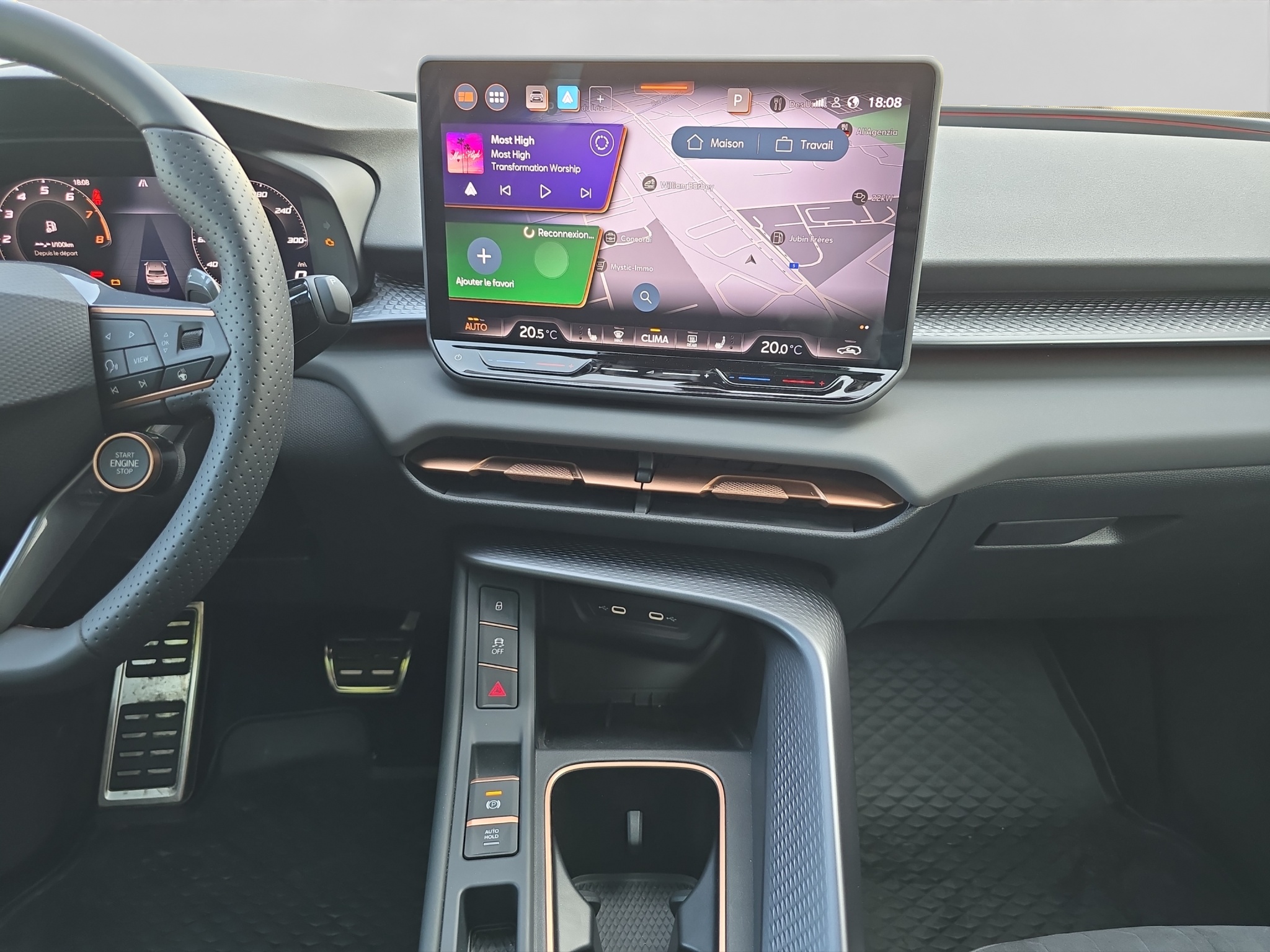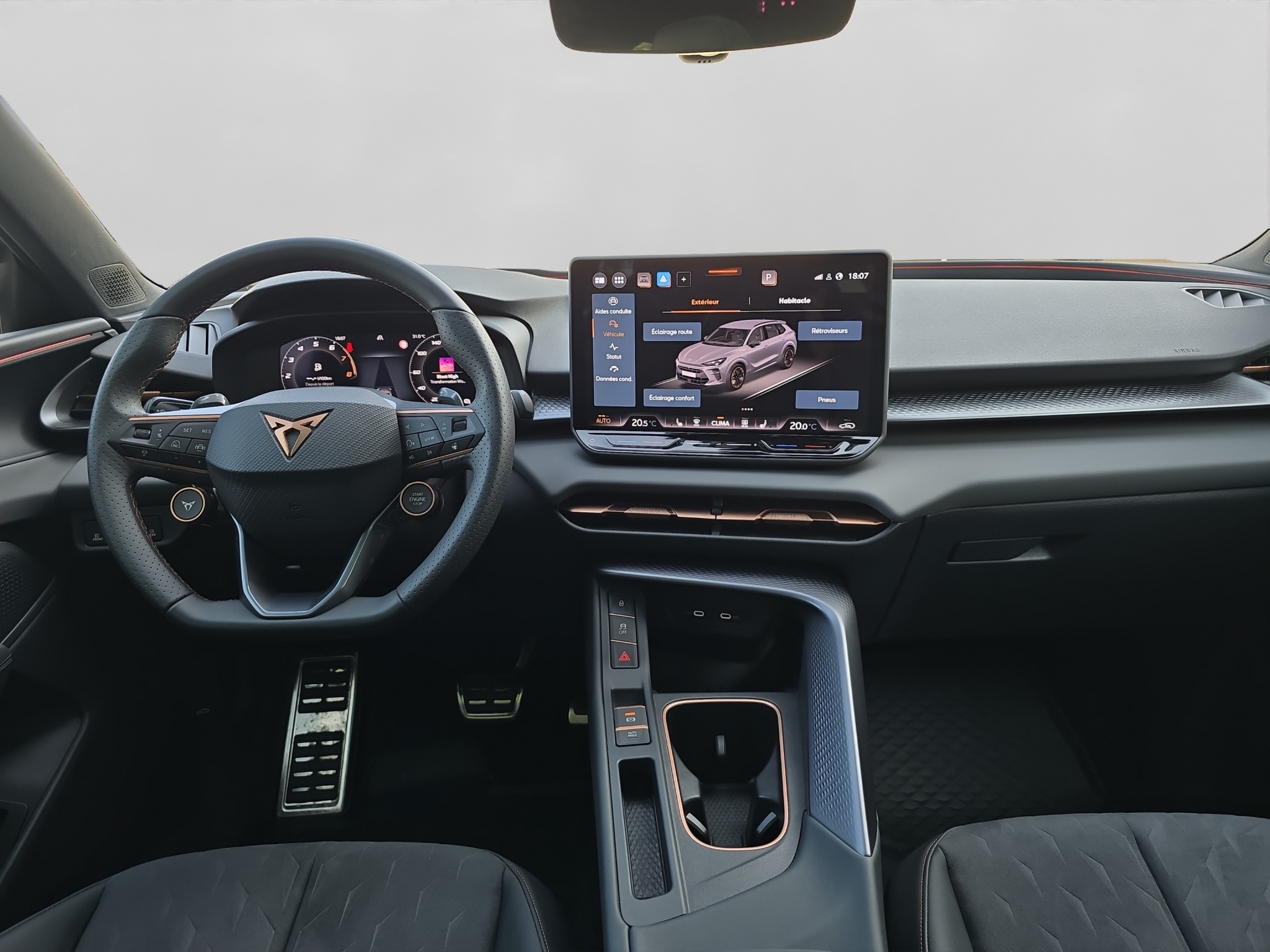Dispositif d'attelage pour remorque (escamotable) avec assistant de manouvre de remorque Garantie: CUPRA Prolongation de garantie constructeur pour les 3ème, 4ème et 5ème années / Lackierung: Spezial- Lackierungen Media: CUPRA Connect Online Infotainment Media: IMMERSIVE by SENNHEISER Pack: CUPRA Terramar VZ Pack Pack: Pack de plug-in facile Roues: Jantes aluminium 8,5J x 20", "VORTEX" Usinées en Sport Noir Mat & Cuivre Suspension: Étriers de frein AKEBONO Performance avant et arriere
