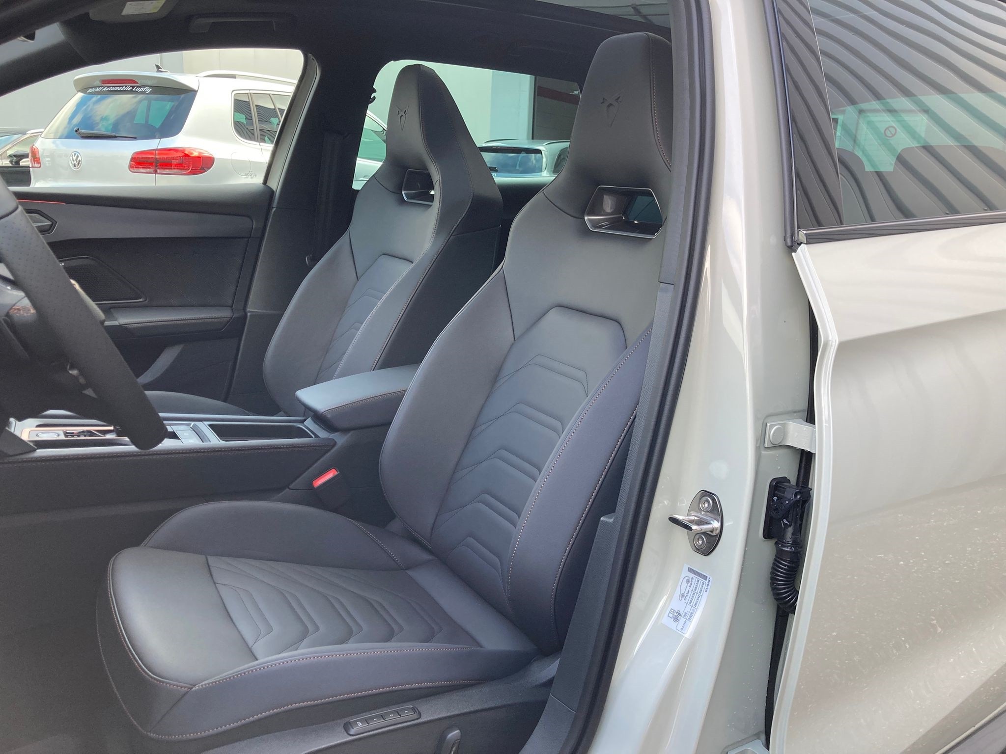 ABS, EBV elektronische Bremskraft-verteilung Abgedunkelte Scheiben ab B-Säule hinten Airbag: Airbag Beifahrer deaktivierbar Airbag: Airbag Fahrer und Beifahrer Airbag: Seitenairbags vorne mit Kopfairbag und Interaktionsairbag vorne Assist: Aufmerksamkeits- und Müdigkeitserkennung (ADA) Assist: Ausweichunterstützung / Abbiegeassistent Assist: Automatische Distanzregelung ACC Assist: Einparkhilfe vorne und hinten Assist: Elektronische Parkbremse mit Auto Hold Funktion Assist: Lane assist (Spurhalteassistent) Assist: Multifunktionskamera Assist: Multikollisionsbremse Assist: Prädiktive Speedlimiter Assist: Regen-/Lichtsensor Assist: Traction Control (TCS) Assist: Traffic sign recognition (Verkehrszeichenerkennung) CUPRA Drive Profile mit "driving experience button" Comfort, Performance, Drift, Individual Dekor: Dekorblenden in Copper Dreipunkt-Automatiksicherheitsgurte auf allen Plätzen ESC mit EBA, DSR und Reifendruckkontrolle Elektrische Fensterheber vorne und hinten mit Komfortschaltung und Einklemmschutz Fahrwerk: Adaptive Fahrwerksregelung DCC Fussmatten vorne und hinten Garantie: Cupra 12 Jahre Gewährleistung gegen Karosserie-Durchrostung Garantie: Cupra 3 Jahre Lack-Gewährleistung Garantie: Cupra Hersteller-Garantieverlängerung für das 3., 4. und 5. Jahr / max.100000 km Heckscheiben-Wisch-/Waschanlage mit Intervall Innenspiegel automatisch abblendbar Klima: 3-Zonen Climatronic mit Fondraumbedienung Lackierung: Uni-Lackierung Lenkrad: Supersportlenkrad mit Start-/ Drive Profile-Knopfsystem und Schaltwippen, beheizbar Licht: Coming Leaving Home Funktion Licht: Drittes Bremslicht Licht: Durchgehende Full LED-Heckleuchten Licht: Dynamische LED-Blinker Licht: Fernlicht-Assistent Licht: LED Heckleuchten mit beleuchtetem 3D CUPRA Logo Licht: LED-Nebelscheinwerfer mit Cornering-Funktion Licht: LED-Scheinwerfer für Abblend- und Fernlicht Licht: Leuchtweitenregulierung Licht: Nebelschlussleuchte Media: 12,9" Infotainment (MIB3) Media: 2 USB C Anschlüsse hinten und vorne Media: CUPRA Connect Remote & Access Media: CUPRA Connect Safety & Services Media: CUPRA Connectivity Box Media: DAB+ (Digital Audio Broadcasting) Media: Mobiltelefon Freisprechanlage Bluetooth Pyrotechnische Gurtstraffer und Gurtkraftbegrenzer vorne Räder: Alufelgen 8J x 19", "POLAR" Machined in Sport Black Silver Räder: Reifenreparatur-Set (Tire Fit) Servolenkung mit geschwindigkeitsabhängiger Lenkkraftunterstützung Sicherheitsgurtkontrolle für alle Sitze Sitze: 2 verstellbare Kopfstützen vorne und 3 hinten Sitze: Fahrer- und Beifahrersitz mit Lendenwirbelstütze Sitze: Geteilt abklappbare Rücksitzlehne 1/3 - 2/3 Sitze: Kindersitzverankerung ISOFIX hinten Sitze: Kopfstützen vorne (integrierte) Sitze: Lendenwirbelstütze in den Vordersitzlehnen Sitze: Mittelarmlehne hinten Sitze: Mittelarmlehne vorne Sitze: Sitzheizung für Vordersitze, getrennt regelbar Sonnenblende Fahrer und Beifahrerseite Stopp - Start- und Rekuperationssystem Wegfahrsperre elektronisch Zentralverriegelung mit Funkfernbedienung, 2 Funkschlüssel