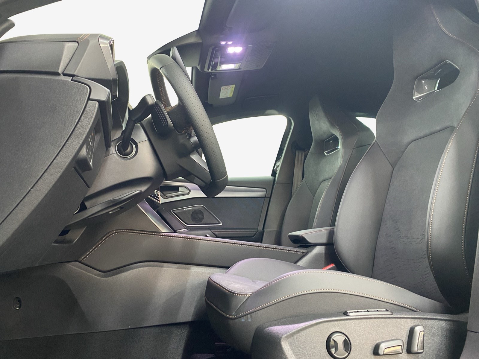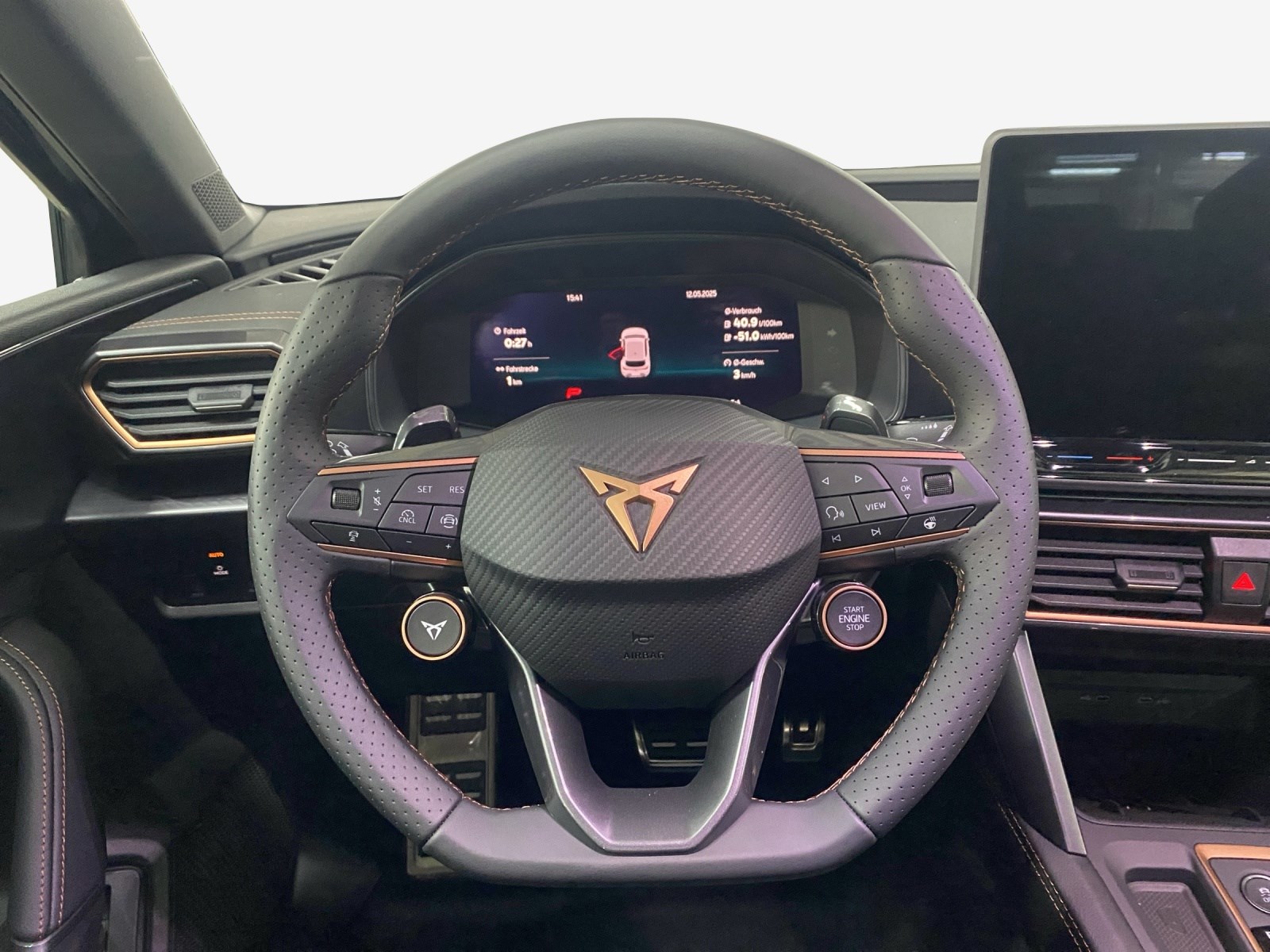 ABS, EBV elektronische Bremskraft-verteilung Abgedunkelte Scheiben ab B-Säule hinten Airbag: Airbag Beifahrer deaktivierbar Airbag: Airbag Fahrer und Beifahrer Airbag: Seitenairbags vorne mit Kopfairbag und Interaktionsairbag vorne Assist: Aufmerksamkeits- und Müdigkeitserkennung (ADA) Assist: Ausweichunterstützung / Abbiegeassistent Assist: Automatische Distanzregelung ACC Assist: Einparkhilfe vorne und hinten Assist: Elektronische Parkbremse mit Auto Hold Funktion Assist: Lane assist (Spurhalteassistent) Assist: Multifunktionskamera Assist: Multikollisionsbremse Assist: Prädiktive Speedlimiter Assist: Regen-/Lichtsensor Assist: Traction Control (TCS) Assist: Traffic sign recognition (Verkehrszeichenerkennung) CUPRA Drive Profile mit "driving experience button" Comfort, Performance, Drift, Individual Dekor: Dekorblenden in Copper Dreipunkt-Automatiksicherheitsgurte auf allen Plätzen ESC mit EBA, DSR und Reifendruckkontrolle Elektrische Fensterheber vorne und hinten mit Komfortschaltung und Einklemmschutz Fahrwerk: Adaptive Fahrwerksregelung DCC Fussmatten vorne und hinten Garantie: Cupra 12 Jahre Gewährleistung gegen Karosserie-Durchrostung Garantie: Cupra 3 Jahre Lack-Gewährleistung Garantie: Cupra Garantie 2 Jahre ohne Kilometerbegrenzung Heckscheiben-Wisch-/Waschanlage mit Intervall Innenspiegel automatisch abblendbar Klima: 3-Zonen Climatronic mit Fondraumbedienung Lackierung: Uni-Lackierung Ladekabel für Haushaltssteckdose (Mode 2) Lenkrad: Supersportlenkrad mit Start-/ Drive Profile-Knopfsystem und Schaltwippen, beheizbar Licht: Coming Leaving Home Funktion Licht: Drittes Bremslicht Licht: Durchgehende Full LED-Heckleuchten Licht: Dynamische LED-Blinker Licht: Fernlicht-Assistent Licht: LED Heckleuchten mit beleuchtetem 3D CUPRA Logo Licht: LED-Nebelscheinwerfer mit Cornering-Funktion Licht: LED-Scheinwerfer für Abblend- und Fernlicht Licht: Leuchtweitenregulierung Licht: Nebelschlussleuchte Media: 12,9" Infotainment (MIB3) Media: 2 USB C Anschlüsse hinten und vorne Media: CUPRA Connect Remote & Access Media: CUPRA Connect Safety & Services Media: CUPRA Connectivity Box Media: DAB+ (Digital Audio Broadcasting) Media: Mobiltelefon Freisprechanlage Bluetooth Pyrotechnische Gurtstraffer und Gurtkraftbegrenzer vorne Räder: Alufelgen 8J x 19", "POLAR" Machined in Sport Black Silver Räder: Reifenreparatur-Set (Tire Fit) Servolenkung mit geschwindigkeitsabhängiger Lenkkraftunterstützung Sicherheitsgurtkontrolle für alle Sitze Sitze: 2 verstellbare Kopfstützen vorne und 3 hinten Sitze: Fahrer- und Beifahrersitz mit Lendenwirbelstütze Sitze: Geteilt abklappbare Rücksitzlehne 1/3 - 2/3 Sitze: Kindersitzverankerung ISOFIX hinten Sitze: Kopfstützen vorne (integrierte) Sitze: Lendenwirbelstütze in den Vordersitzlehnen Sitze: Mittelarmlehne hinten Sitze: Mittelarmlehne vorne Sitze: Sitzheizung für Vordersitze, getrennt regelbar Sonnenblende Fahrer und Beifahrerseite Stopp - Start- und Rekuperationssystem Wegfahrsperre elektronisch Zentralverriegelung mit Funkfernbedienung, 2 Funkschlüssel
