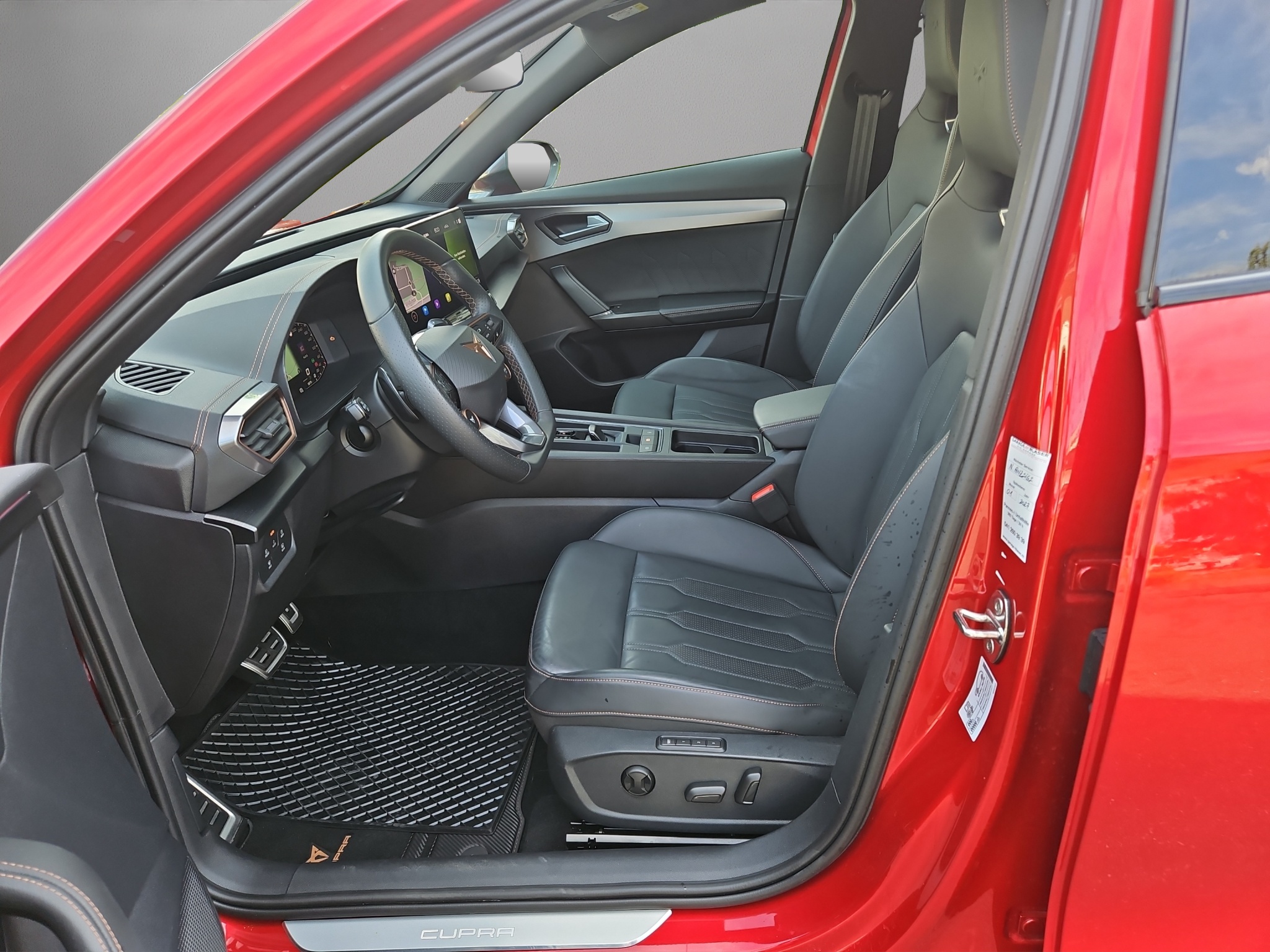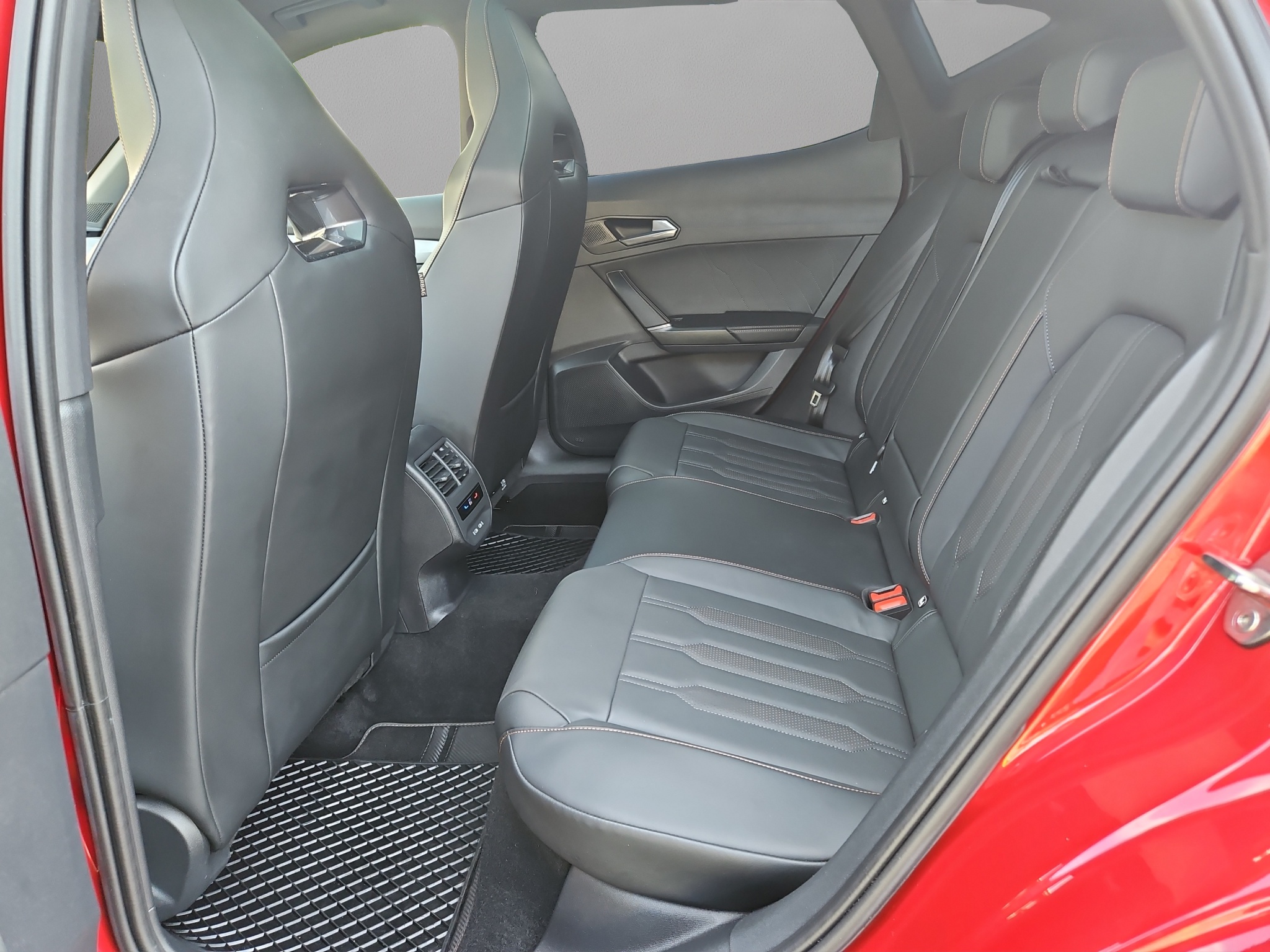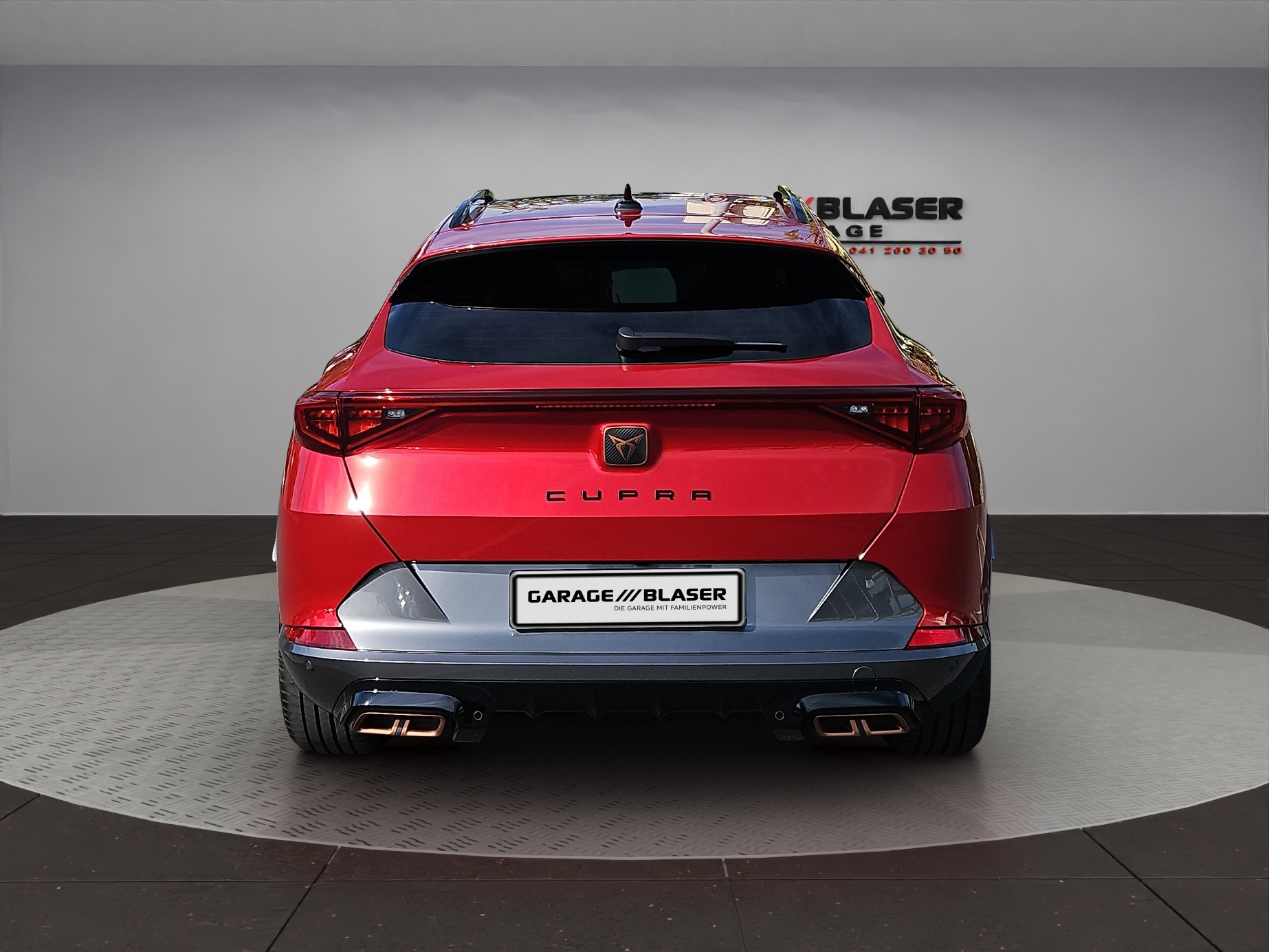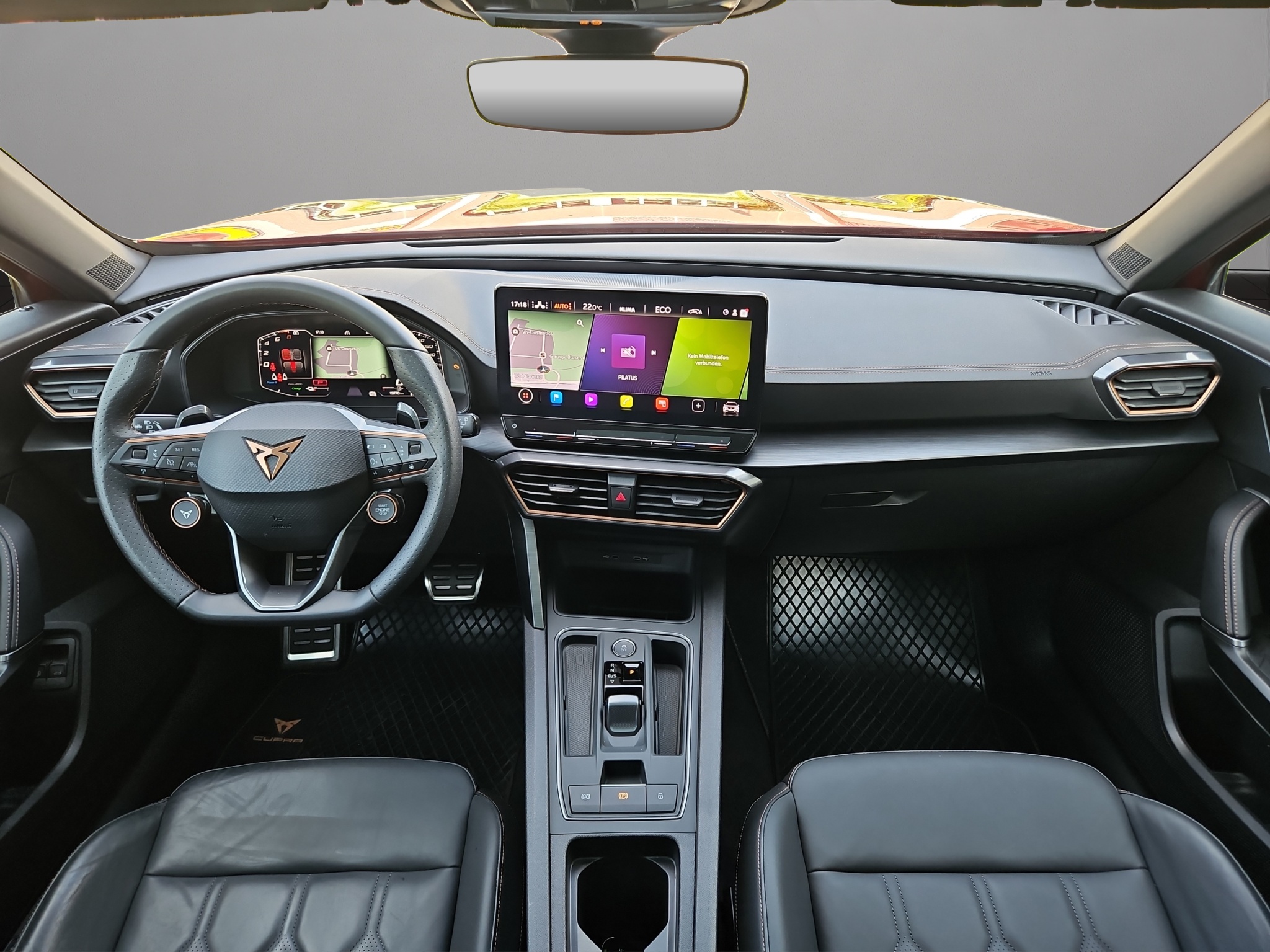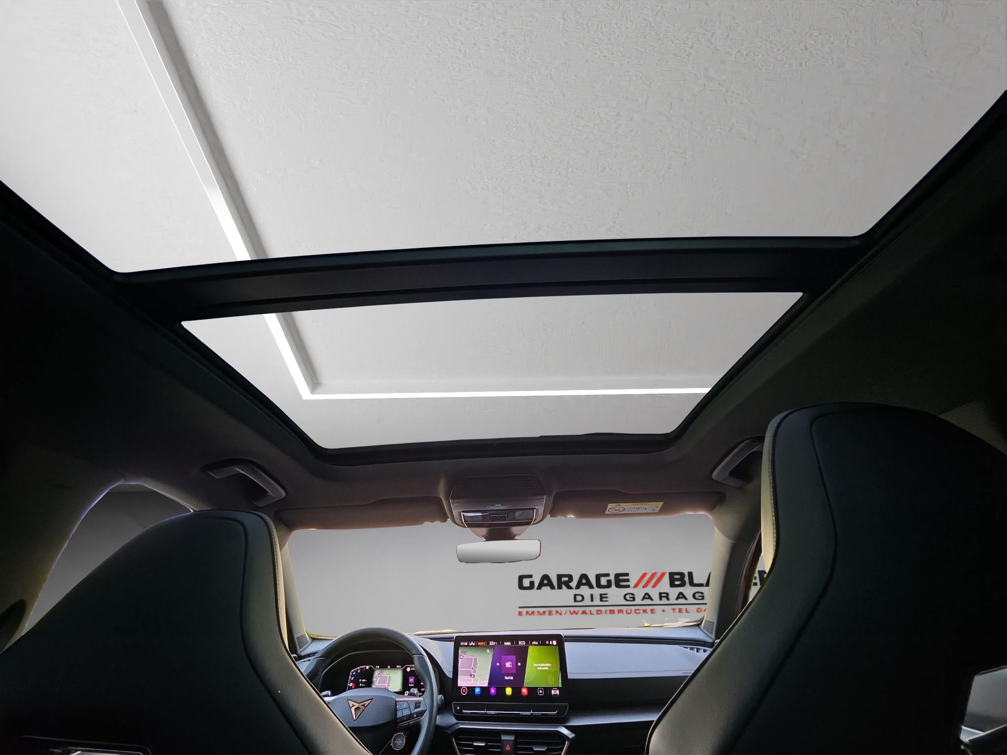 230-Volt Steckdose im Kofferraum und 12-Volt Steckdose in der Mittelkonsole ABS, EBV elektronische Bremskraft-verteilung Abgedunkelte Scheiben ab B-Säule hinten Airbag: Airbag Beifahrer deaktivierbar Airbag: Airbag Fahrer und Beifahrer Airbag: Kopfairbags vorne und hinten Airbag: Seitenairbags für Fahrer und Beifahrer Assist: City Notbremsfunktion Assist: Elektronische Parkbremse mit Auto Hold Funktion Assist: Multifunktionskamera Assist: Multikollisionsbremse Assist: Parklenkassistent Assist: PreCrash Sicherheitssystem Assist: Regen-/Lichtsensor Assist: Tiredness detection (Müdigkeitserkennung) Assist: Umfeldbeobachtung Front-Assist Aussenspiegel elektrisch einstell-, beheiz- und einklappbar Aussenspiegel mit Beifahrerspiegelabsenkung Aussenspiegel mit LED-Umfeldbeleuchtung Automatisch abblendender Innenrückspiegel Beleuchtete Sonnenblende links mit abdeckbarem Spiegel und Lasche, rechts mit abdeckbarem Spiegel CUPRA Drive Profile mit "driving experience button" Comfort, Sport, CUPRA, Individual, Snow, Offroad Dreipunkt-Automatiksicherheitsgurte auf allen Plätzen ESC mit EBA, DSR, XDS und Reifendruckkontrolle Elektrische Fensterheber vorne und hinten mit Komfortschaltung und Einklemmschutz Fahrwerk: Adaptive Fahrwerksregelung DCC Fahrwerk: Progressivlenkung Fussmatten vorne und hinten Garantie: Cupra 12 Jahre Gewährleistung gegen Karosserie-Durchrostung Garantie: Cupra 3 Jahre Lack-Gewährleistung Garantie: Cupra Garantie 2 Jahre ohne Kilometerbegrenzung Heckscheiben-Wisch-/Waschanlage mit Intervall Kindersitzverankerung ISOFIX (äussere Plätze hinten) Klima: 3-Zonen Climatronic mit Fondraumbedienung LED-Innenraumbeleuchtung mit Ambientebeleuchtung Wraparound Lackierung: Uni-Lackierung Ladekabel für Haushaltssteckdose (Mode 2) Lenkrad: Beheizbares Ledermultifunktionslenkrad mit Schaltwippen Licht: Coming-home-Funktion Licht: Durchgehende Full LED-Heckleuchten Licht: LED-Heckleuchten mit dynamischem Blinklicht Licht: LED-Nebelscheinwerfer mit Cornering-Funktion Licht: LED-Scheinwerfer für Abblend- und Fernlicht Licht: Leuchtweitenregulierung dynamisch Media: 12" Infotainment (MIB3) Media: 2 USB C Anschlüsse hinten und vorne Media: CUPRA Connect Online Infotainment für Navigationssystem Media: CUPRA Connect Remote & Access für Navigationssystem Media: CUPRA Navigationssystem Media: DAB+ (Digital Audio Broadcasting) Media: Kartenmaterial ''Europa'' Media: Mobiltelefon Freisprechanlage Bluetooth Mittelarmlehne vorne und hinten Paket: Fahrerassistenzpaket XL für Navigationssystem Pyrotechnische Gurtstraffer und Gurtkraftbegrenzer Räder: Alufelgen 8J x 19", "EXCLUSIVE" 38/3 Machined Black Matt / Silver Räder: Reifendruck-Kontrollanzeige Räder: Reifenreparatur-Set (Tire Fit) Schlüsselloses Schliess- und Startsystem (KESSY) Servolenkung mit geschwindigkeitsabhängiger Lenkkraftunterstützung Sitze: 2 verstellbare Kopfstützen vorne und 3 hinten Sitze: CUPRA Sport Schalensitze in "Sharp Textil schwarz" Sitze: Easy Backseat Release (Rücksitzentriegelung im Kofferraum) Sitze: Geteilt abklappbare Rücksitzlehne 1/3 - 2/3 Sitze: Vordersitze höhenverstellbar mit Lendenwirbelstütze Stopp - Start- und Rekuperationssystem Wegfahrsperre elektronisch Zentralverriegelung mit Funkfernbedienung, 2 Funkschlüssel Zwei Abgasblenden in Kupfer