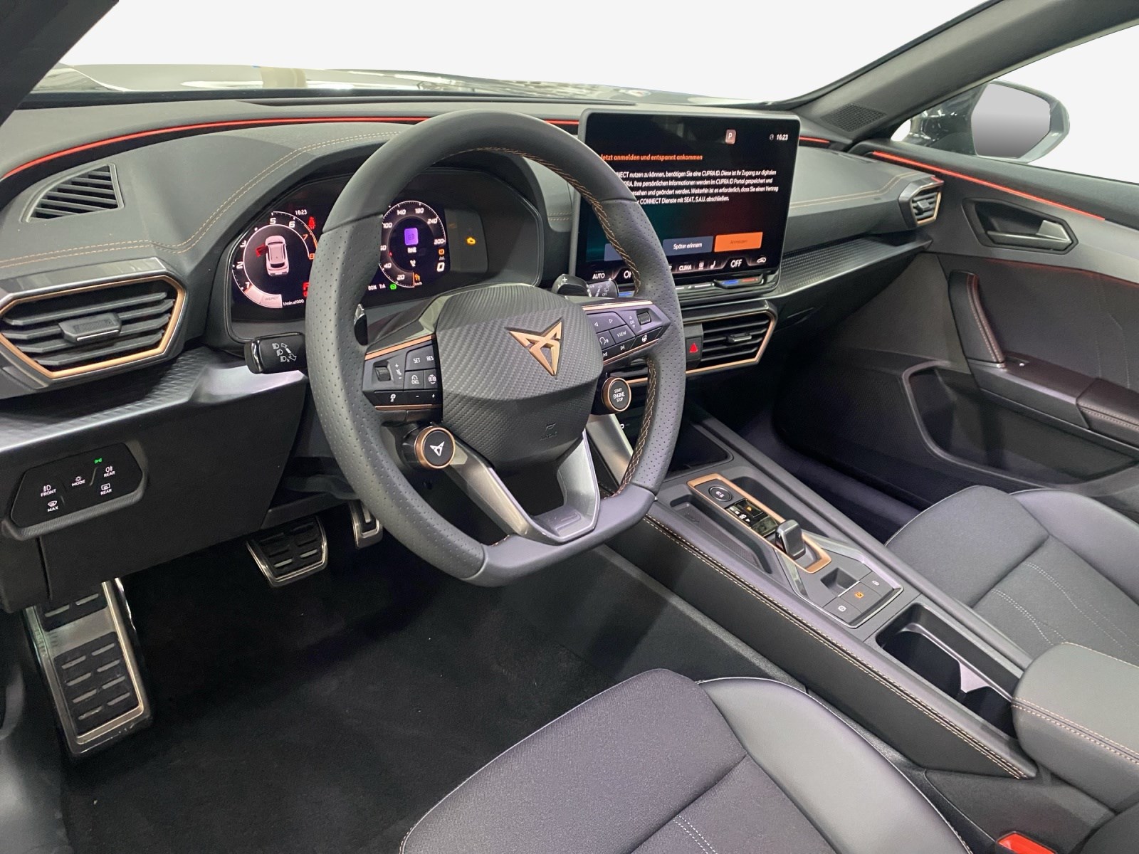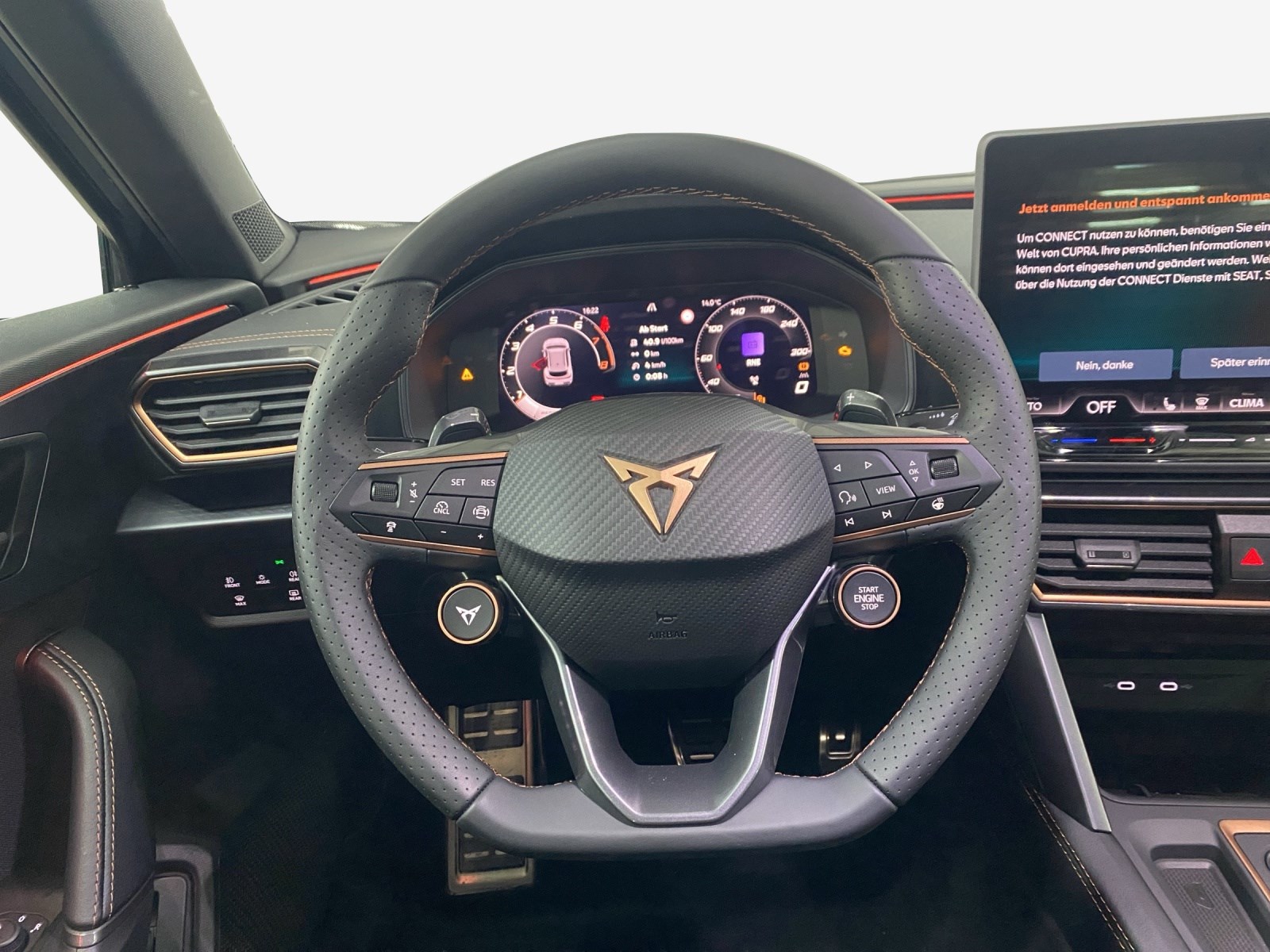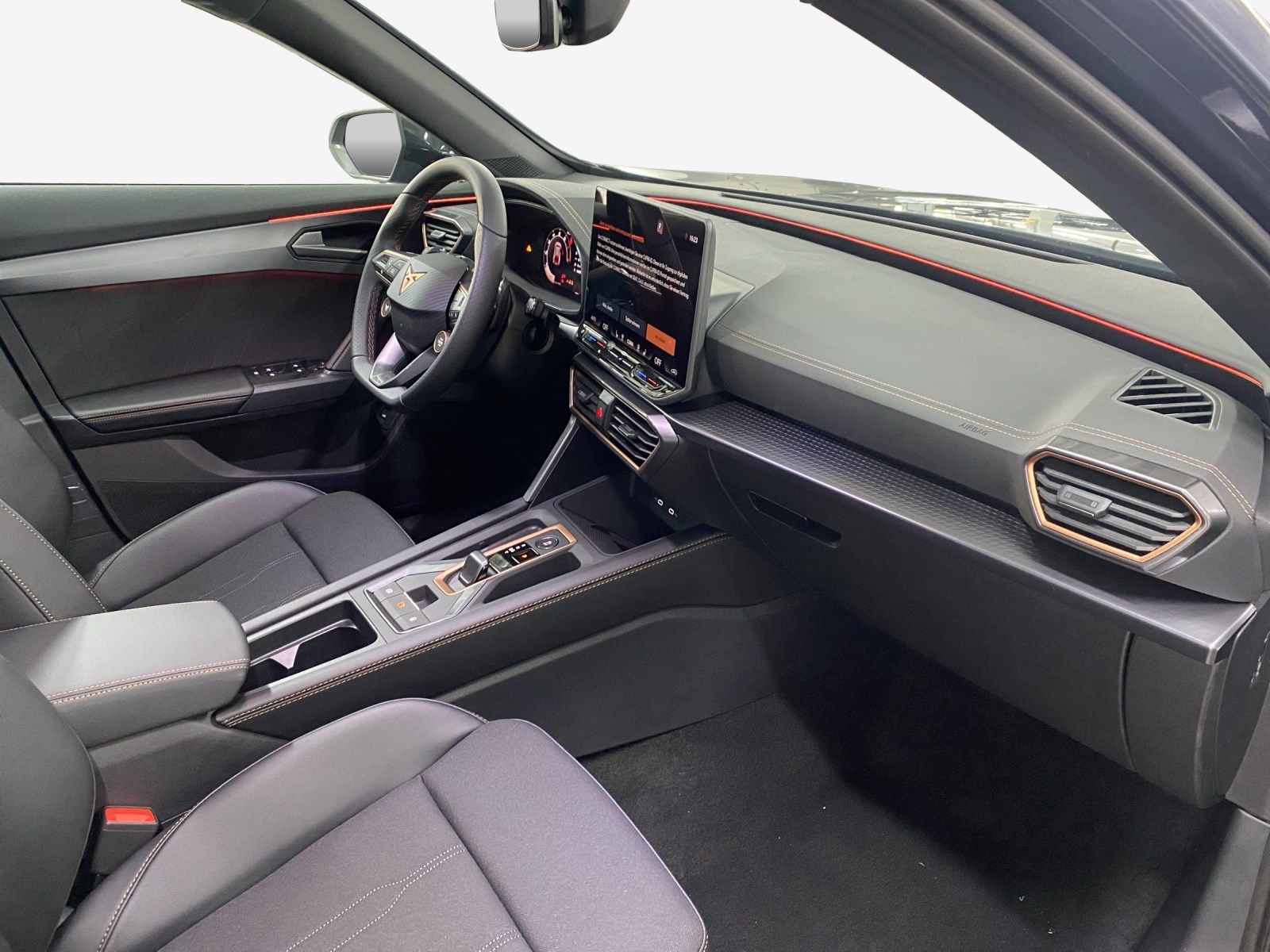 3-Punkt-Sicherheitsgurte auf allen Plätzen ABS, EBV elektronische Bremskraft-verteilung Abgedunkelte Scheiben ab B-Säule hinten Airbag: Airbag Beifahrer deaktivierbar Airbag: Airbag Fahrer und Beifahrer Airbag: Kopfairbags vorne und hinten Airbag: Seitenairbags für Fahrer und Beifahrer Alarmanlage mit Innenraumüberwachung Assist: Aufmerksamkeits- und Müdigkeitserkennung (ADA) Assist: Ausweichunterstützung / Abbiegeassistent Assist: Automatische Distanzregelung ACC Assist: City Notbremsfunktion Assist: Einparkhilfe vorne und hinten Assist: Elektronische Parkbremse mit Auto Hold Funktion Assist: Lane assist (Spurhalteassistent) Assist: Multifunktionskamera Assist: Multikollisionsbremse Assist: Prädiktive Speedlimiter Assist: Regen-/Lichtsensor Assist: Traction Control (TCS) Assist: Traffic sign recognition (Verkehrszeichenerkennung) Assist: Umfeldbeobachtung Front-Assist Aussenspiegel elektrisch einstell-, beheiz- und einklappbar Aussenspiegel mit Beifahrerspiegelabsenkung Aussenspiegel mit LED-Umfeldbeleuchtung Automatisch abblendender Innenrückspiegel Beleuchtete Sonnenblende links mit abdeckbarem Spiegel und Lasche, rechts mit abdeckbarem Spiegel ESC mit EBA, DSR, XDS und Reifendruckkontrolle Elektrische Fensterheber vorne und hinten mit Komfortschaltung und Einklemmschutz Fahrwerk: Progressivlenkung Fussmatten vorne und hinten Garantie: Cupra 12 Jahre Gewährleistung gegen Karosserie-Durchrostung Garantie: Cupra 3 Jahre Lack-Gewährleistung Garantie: Cupra Garantie 2 Jahre ohne Kilometerbegrenzung Heckscheiben-Wisch-/Waschanlage mit Intervall Kindersitzverankerung ISOFIX (äussere Plätze hinten) Klima: 3-Zonen Climatronic mit Fondraumbedienung LED-Innenraumbeleuchtung mit Ambientebeleuchtung"Monochrom" Lackierung: Uni-Lackierung Lenkrad: Supersportlenkrad mit Start-/ Drive Profile-Knopfsystem und Schaltwippen, beheizbar Licht: Coming-home-Funktion Licht: Drittes Bremslicht Licht: Durchgehende Full LED-Heckleuchten Licht: Fernlicht-Assistent Licht: LED Heckleuchten mit beleuchtetem 3D CUPRA Logo Licht: LED-Heckleuchten mit dynamischem Blinklicht Licht: LED-Nebelscheinwerfer mit Cornering-Funktion Licht: LED-Scheinwerfer für Abblend- und Fernlicht Licht: Leuchtweitenregulierung dynamisch Licht: Nebelschlussleuchte Media: 12,9" Infotainment (MIB3) Media: 2 USB C Anschlüsse hinten und vorne Media: CUPRA Connect Remote & Access Media: CUPRA Connect Safety & Services Media: CUPRA Connectivity Box Media: DAB+ (Digital Audio Broadcasting) Media: Mobiltelefon Freisprechanlage Bluetooth Pyrotechnische Gurtstraffer und Gurtkraftbegrenzer Räder: Alufelgen 8J x 18", "TEMPEST" Machined in Silver Räder: Reifendruckkontrollsystem Räder: Reifenreparatur-Set (Tire Fit) Servolenkung mit geschwindigkeitsabhängiger Lenkkraftunterstützung Sitze: 3 verstellbare Kopfstützen hinten Sitze: CUPRA Sportsitze in "Sharp Textil schwarz" Sitze: Geteilt abklappbare Rücksitzlehne 1/3 - 2/3 Sitze: Kopfstützen vorne (integrierte) Sitze: Mittelarmlehne hinten Sitze: Mittelarmlehne vorne Sitze: Schublade unter dem rechten Vordersitz Sitze: Sitzheizung für Vordersitze, getrennt regelbar Sitze: Vordersitze höhenverstellbar mit Lendenwirbelstütze Stopp - Start- und Rekuperationssystem Wegfahrsperre elektronisch Zentralverriegelung "Keyless-Go" Zentralverriegelung mit Funkfernbedienung, 2 Funkschlüssel