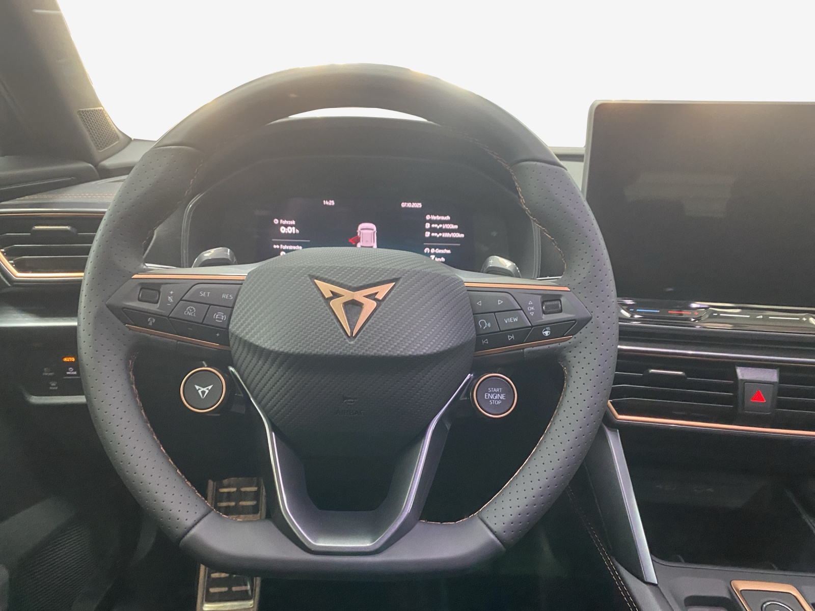 Anhängevorrichtung (Einklappbar) mit Anhängerrangierassistent Lackierung: Metallic-Lackierung Media: CUPRA Connect Online Infotainment Media: IMMERSIVE by SENNHEISER Räder: Alufelgen 8J x 19", "SANDSTORM COPPER" Machined in Copper
