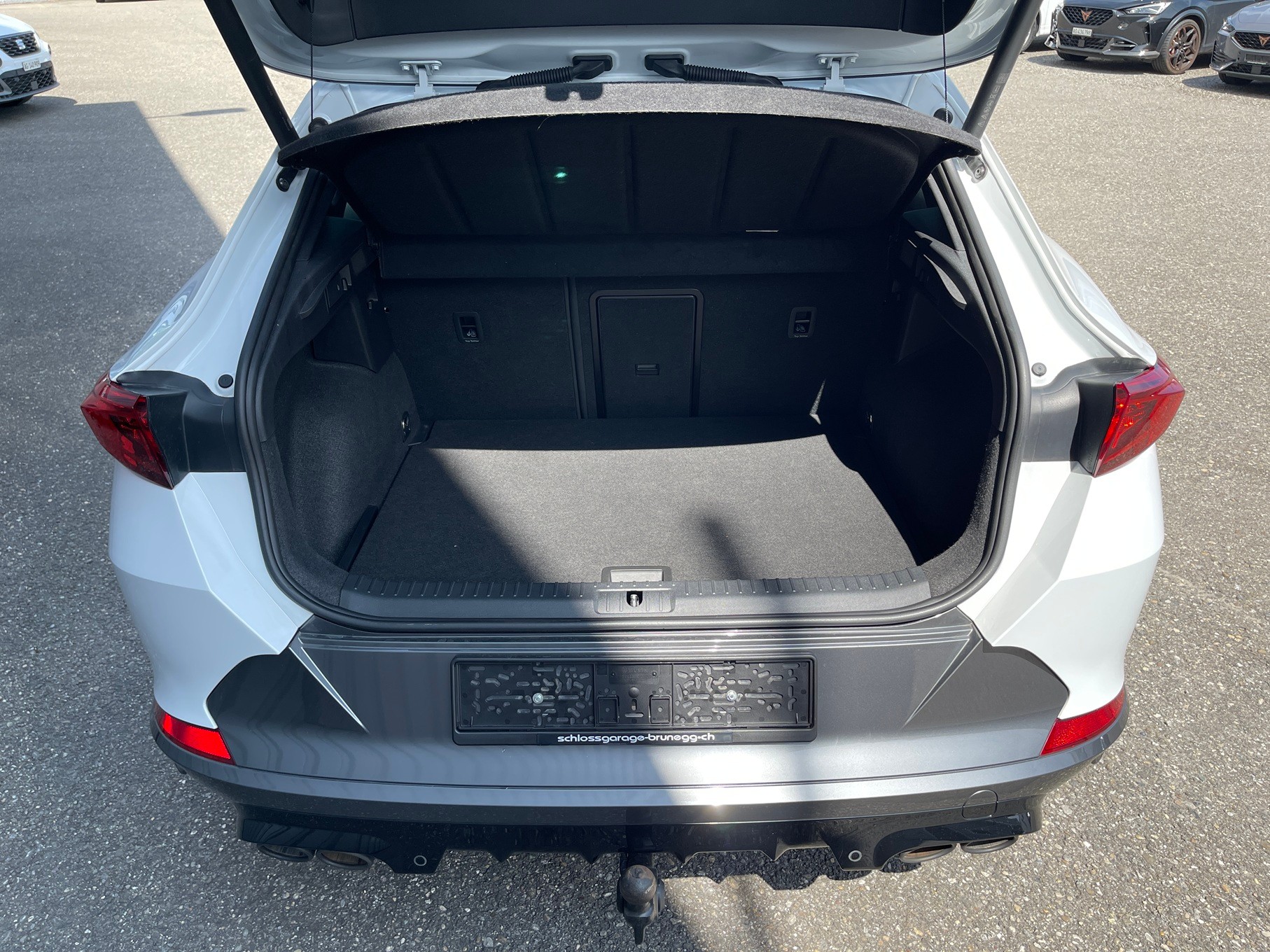 230-Volt Steckdose im Kofferraum und 12-Volt Steckdose in der Mittelkonsole ABS, EBV elektronische Bremskraft-verteilung Abgedunkelte Scheiben ab B-Säule hinten Airbag: Airbag Beifahrer deaktivierbar Airbag: Airbag Fahrer und Beifahrer Airbag: Kopfairbags vorne und hinten Airbag: Seitenairbags für Fahrer und Beifahrer Assist: City Notbremsfunktion Assist: Elektronische Parkbremse mit Auto Hold Funktion Assist: Multifunktionskamera Assist: Multikollisionsbremse Assist: Parklenkassistent Assist: PreCrash Sicherheitssystem Assist: Regen-/Lichtsensor Assist: Tiredness detection (Müdigkeitserkennung) Assist: Umfeldbeobachtung Front-Assist Aussenspiegel elektrisch einstell-, beheiz- und einklappbar Aussenspiegel mit Beifahrerspiegelabsenkung Aussenspiegel mit LED-Umfeldbeleuchtung Automatisch abblendender Innenrückspiegel Beleuchtete Sonnenblende links mit abdeckbarem Spiegel und Lasche, rechts mit abdeckbarem Spiegel CUPRA Drive Profile mit "driving experience button" Comfort, Sport, CUPRA, Individual, Snow, Offroad Dreipunkt-Automatiksicherheitsgurte auf allen Plätzen ESC mit EBA, DSR, XDS und Reifendruckkontrolle Elektrische Fensterheber vorne und hinten mit Komfortschaltung und Einklemmschutz Fahrwerk: Adaptive Fahrwerksregelung DCC Fahrwerk: Progressivlenkung Fussmatten vorne und hinten Garantie: Cupra 12 Jahre Gewährleistung gegen Karosserie-Durchrostung Garantie: Cupra 3 Jahre Lack-Gewährleistung Garantie: Cupra Garantie 2 Jahre ohne Kilometerbegrenzung Heckscheiben-Wisch-/Waschanlage mit Intervall Kindersitzverankerung ISOFIX (äussere Plätze hinten) Klima: 3-Zonen Climatronic mit Fondraumbedienung LED-Innenraumbeleuchtung mit Ambientebeleuchtung Wraparound Lackierung: Uni-Lackierung Lenkrad: Supersportlenkrad mit Start-/ Drive Profile-Knopfsystem und Schaltwippen, beheizbar Licht: Coming-home-Funktion Licht: Durchgehende Full LED-Heckleuchten Licht: LED-Heckleuchten mit dynamischem Blinklicht Licht: LED-Nebelscheinwerfer mit Cornering-Funktion Licht: LED-Scheinwerfer für Abblend- und Fernlicht Licht: Leuchtweitenregulierung dynamisch Media: 12" 3D Infotainment (MIB3) Media: 2 USB C Anschlüsse hinten und vorne Media: CUPRA Connect Online Infotainment für Navigationssystem Media: CUPRA Connect Remote & Access für Navigationssystem Media: CUPRA Navigationssystem Media: DAB+ (Digital Audio Broadcasting) Media: Kartenmaterial ''Europa'' Media: Mobiltelefon Freisprechanlage Bluetooth Mittelarmlehne vorne und hinten Paket: Fahrerassistenzpaket XL für Navigationssystem Pyrotechnische Gurtstraffer und Gurtkraftbegrenzer Räder: Alufelgen 8J x 19", "EXCLUSIVE" 38/3 Machined Black Matt / Silver Räder: Ersatzrad platzsparend Räder: Reifendruck-Kontrollanzeige Schlüsselloses Schliess- und Startsystem (KESSY) Servolenkung mit geschwindigkeitsabhängiger Lenkkraftunterstützung Sitze: 2 verstellbare Kopfstützen vorne und 3 hinten Sitze: CUPRA Sport Schalensitze in "Sharp Textil schwarz" Sitze: Easy Backseat Release (Rücksitzentriegelung im Kofferraum) Sitze: Geteilt abklappbare Rücksitzlehne 1/3 - 2/3 Sitze: Vordersitze höhenverstellbar mit Lendenwirbelstütze Sportauspuffanlage mit 4-fach Endrohr Stopp - Start- und Rekuperationssystem Wegfahrsperre elektronisch Zentralverriegelung mit Funkfernbedienung, 2 Funkschlüssel