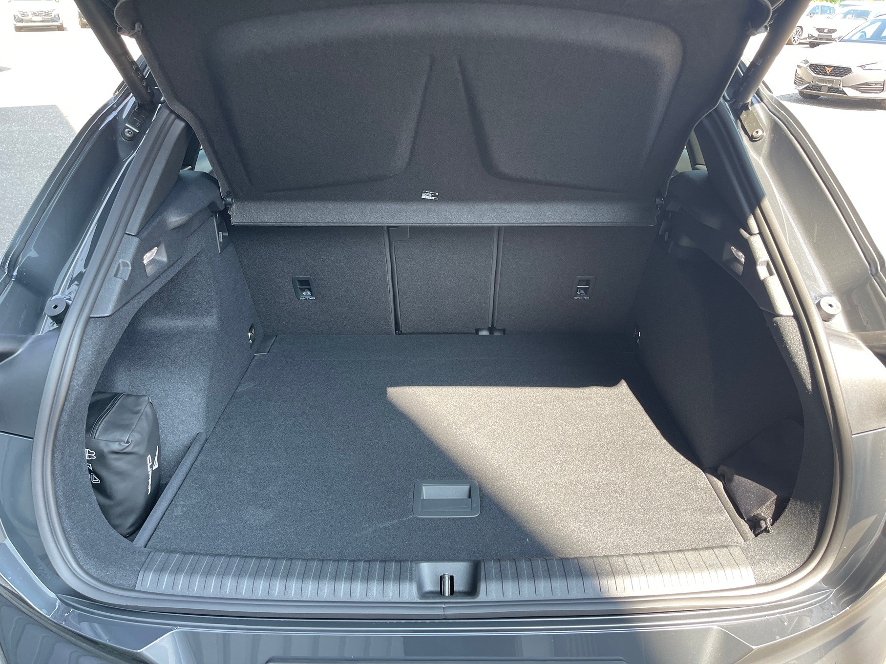 3-Punkt-Sicherheitsgurte auf allen Plätzen ABS, EBV elektronische Bremskraft-verteilung Airbag: Airbag Beifahrer deaktivierbar Airbag: Airbag Fahrer und Beifahrer Airbag: Kopfairbags vorne und hinten Airbag: Seitenairbags für Fahrer und Beifahrer Assist: Aufmerksamkeits- und Müdigkeitserkennung (ADA) Assist: Ausweichunterstützung / Abbiegeassistent Assist: Automatische Distanzregelung ACC Assist: City Notbremsfunktion Assist: Einparkhilfe vorne und hinten Assist: Elektronische Parkbremse mit Auto Hold Funktion Assist: Lane assist (Spurhalteassistent) Assist: Multifunktionskamera Assist: Multikollisionsbremse Assist: Prädiktive Speedlimiter Assist: Traffic sign recognition (Verkehrszeichenerkennung) Assist: Umfeldüberwachungssystem "Front-Assist" Aussenspiegel elektrisch einstell-, beheizbar Aussenspiegel mit LED-Umfeldbeleuchtung Beleuchtete Sonnenblende links mit abdeckbarem Spiegel und Lasche, rechts mit abdeckbarem Spiegel ESC mit EBA, DSR, XDS und Reifendruckkontrolle Elektrische Fensterheber vorne und hinten mit Komfortschaltung und Einklemmschutz Fahrwerk: CUPRA Sportfahrwerk Fahrwerk: Progressivlenkung Full Digital Cockpit 10.25" Fussmatten vorne und hinten Garantie: Cupra 12 Jahre Gewährleistung gegen Karosserie-Durchrostung Garantie: Cupra 3 Jahre Lack-Gewährleistung Garantie: Cupra Hersteller-Garantieverlängerung für das 3., 4. und 5. Jahr / max.100000 km Heckscheiben-Wisch-/Waschanlage mit Intervall Innenspiegel automatisch abblendbar Lackierung: Uni-Lackierung Lenkrad: Leder Multifunktionslenkrad mit Schaltwippen Licht: Drittes Bremslicht Licht: Durchgehende Full LED-Heckleuchten Licht: LED Heckleuchten mit beleuchtetem 3D CUPRA Logo Licht: LED-Heckleuchten mit dynamischem Blinklicht Licht: LED-Nebelscheinwerfer mit Cornering-Funktion Licht: LED-Scheinwerfer für Abblend- und Fernlicht Licht: Leuchtweitenregulierung dynamisch Licht: Nebelschlussleuchte Media: 12,9" Infotainment (MIB3) Media: 2 USB C Anschlüsse hinten und vorne Media: CUPRA Connect Remote & Access / CUPRA Connect Safety & Services Media: CUPRA Connectivity Box Media: DAB+ (Digital Audio Broadcasting) Media: Mobiltelefon Freisprechanlage Bluetooth Mittelarmlehne vorne und hinten Pyrotechnische Gurtstraffer und Gurtkraftbegrenzer Räder: Alufelgen 8J x 18", "ATOMIC DARK" Machined in Dark Shadow Räder: Reifendruckkontrollsystem Servolenkung mit geschwindigkeitsabhängiger Lenkkraftunterstützung Sitze: 3 verstellbare Kopfstützen hinten Sitze: CUPRA Sport Schalensitze in Textil, "DEEP OCEAN" "SEAQUAL" Sitze: Geteilt abklappbare Rücksitzlehne 1/3 - 2/3 Sitze: Kindersitzverankerung ISOFIX hinten Sitze: Vordersitze höhenverstellbar mit Lendenwirbelstütze Stopp - Start- und Rekuperationssystem Wegfahrsperre elektronisch Zentralverriegelung "Keyless-Go" Zentralverriegelung mit Funkfernbedienung, 2 Funkschlüssel