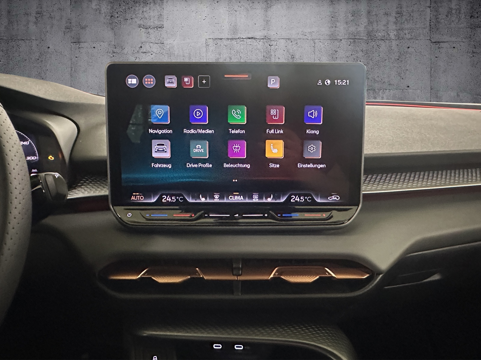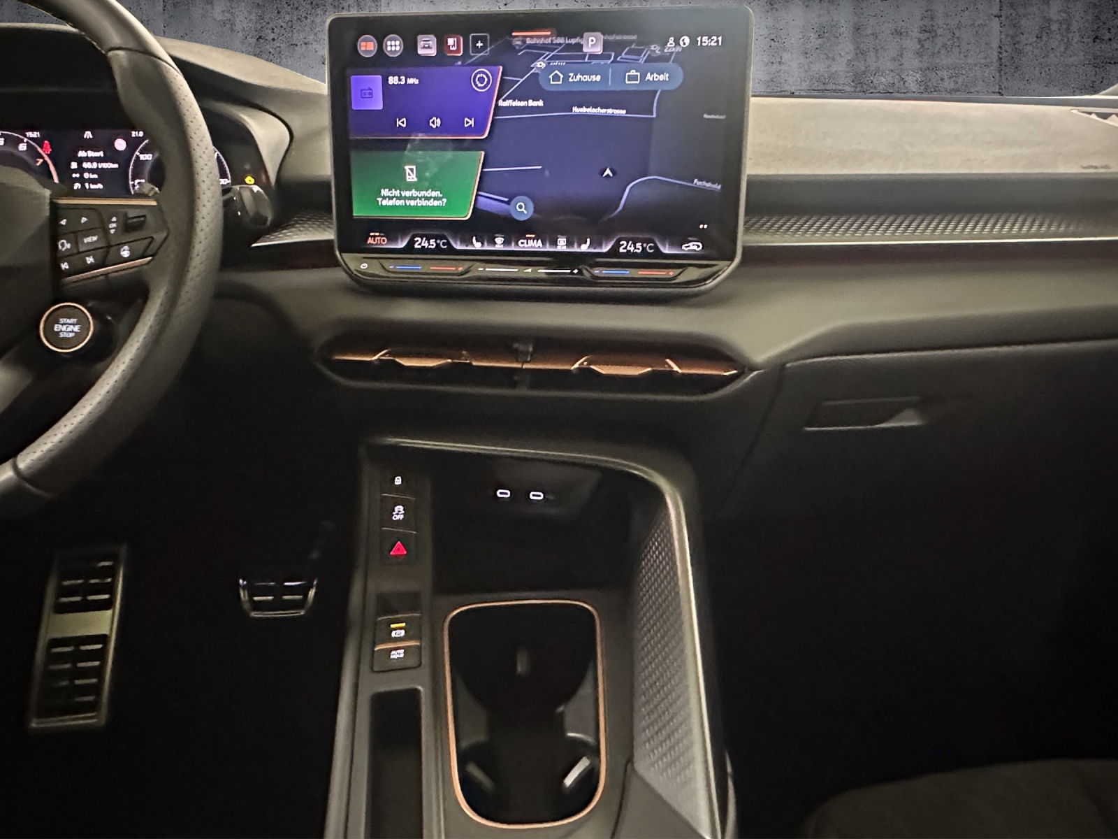 3-Punkt-Sicherheitsgurte auf allen Plätzen ABS, EBV elektronische Bremskraft-verteilung Airbag: Airbag Beifahrer deaktivierbar Airbag: Airbag Fahrer und Beifahrer Airbag: Kopfairbags vorne und hinten Airbag: Seitenairbags für Fahrer und Beifahrer Ambiente Innenraumbeleuchtung mit beleuchteten Türpanelen Assist: Aufmerksamkeits- und Müdigkeitserkennung (ADA) Assist: Ausweichunterstützung / Abbiegeassistent Assist: Automatische Distanzregelung ACC Assist: City Notbremsfunktion Assist: Einparkhilfe vorne und hinten Assist: Elektronische Parkbremse mit Auto Hold Funktion Assist: Lane assist (Spurhalteassistent) Assist: Multifunktionskamera Assist: Multikollisionsbremse Assist: Prädiktive Speedlimiter Assist: Traffic sign recognition (Verkehrszeichenerkennung) Assist: Umfeldüberwachungssystem "Front-Assist" Aussenspiegel elektrisch einstell-, beheizbar Aussenspiegel mit LED-Umfeldbeleuchtung Beleuchtete Sonnenblende links mit abdeckbarem Spiegel und Lasche, rechts mit abdeckbarem Spiegel ESC mit EBA, DSR, XDS und Reifendruckkontrolle Elektrische Fensterheber vorne und hinten mit Komfortschaltung und Einklemmschutz Fahrwerk: CUPRA Sportfahrwerk Fahrwerk: Progressivlenkung Fussmatten vorne und hinten Garantie: Cupra 12 Jahre Gewährleistung gegen Karosserie-Durchrostung Garantie: Cupra 3 Jahre Lack-Gewährleistung Garantie: Cupra Garantie 2 Jahre ohne Kilometerbegrenzung Garantie: Cupra Hersteller-Garantieverlängerung für das 3., 4. und 5. Jahr / max.100’000 km Heckscheiben-Wisch-/Waschanlage mit Intervall Innenspiegel automatisch abblendbar Lackierung: Uni-Lackierung Lenkrad: Leder Multifunktionslenkrad mit Schaltwippen Licht: Drittes Bremslicht Licht: Durchgehende Full LED-Heckleuchten Licht: LED Heckleuchten mit beleuchtetem 3D CUPRA Logo Licht: LED-Heckleuchten mit dynamischem Blinklicht Licht: LED-Nebelscheinwerfer mit Cornering-Funktion Licht: LED-Scheinwerfer für Abblend- und Fernlicht Licht: Leuchtweitenregulierung dynamisch Licht: Nebelschlussleuchte Media: 12,9" Infotainment (MIB3) Media: 2 USB C Anschlüsse hinten und vorne Media: CUPRA Connect Remote & Access / CUPRA Connect Safety & Services Media: CUPRA Connectivity Box Media: DAB+ (Digital Audio Broadcasting) Media: Mobiltelefon Freisprechanlage Bluetooth Mittelarmlehne vorne und hinten Pyrotechnische Gurtstraffer und Gurtkraftbegrenzer Räder: Alufelgen 8J x 18", "ATOMIC" Machined in Sport Black Matt Räder: Reifendruckkontrollsystem Servolenkung mit geschwindigkeitsabhängiger Lenkkraftunterstützung Sitze: 3 verstellbare Kopfstützen hinten Sitze: CUPRA Sport Schalensitze in Textil, "DEEP OCEAN" "SEAQUAL" Sitze: Geteilt abklappbare Rücksitzlehne 1/3 - 2/3 Sitze: Kindersitzverankerung ISOFIX hinten Sitze: Vordersitze höhenverstellbar mit Lendenwirbelstütze Stopp - Start- und Rekuperationssystem Wegfahrsperre elektronisch Zentralverriegelung "Keyless-Go" Zentralverriegelung mit Funkfernbedienung, 2 Funkschlüssel