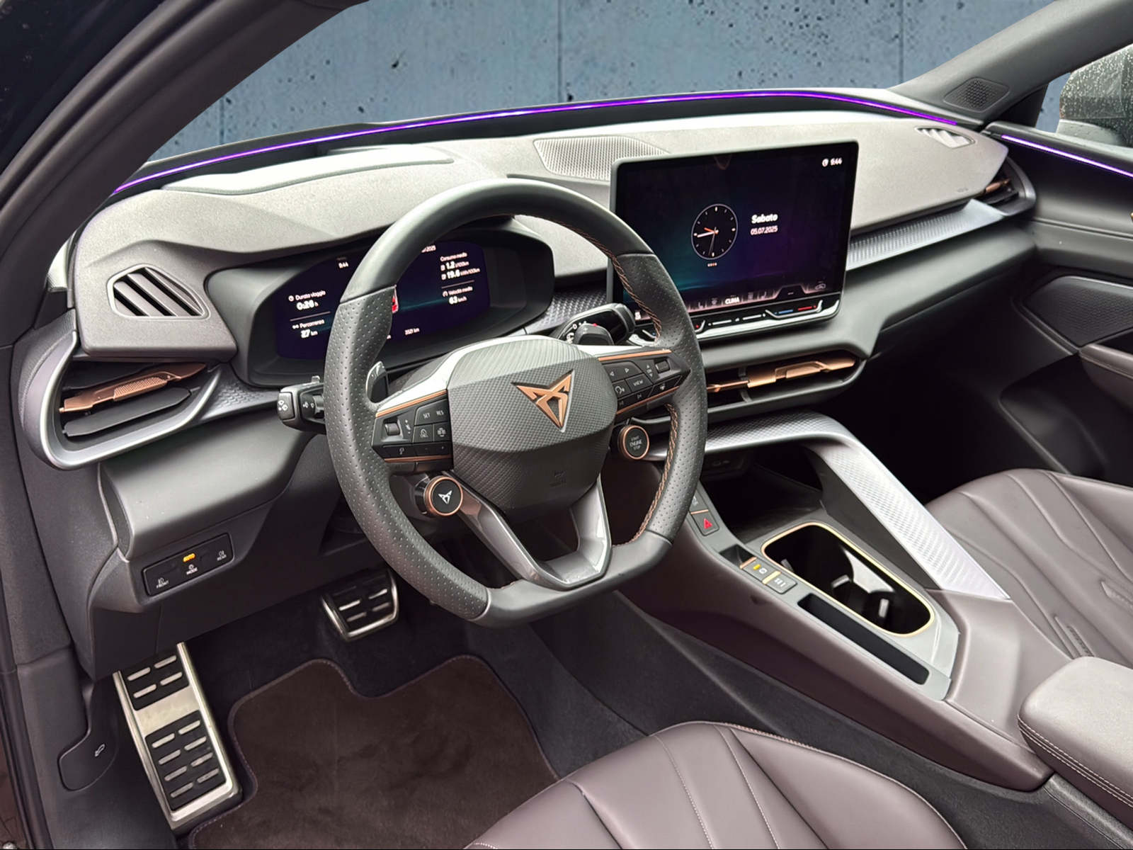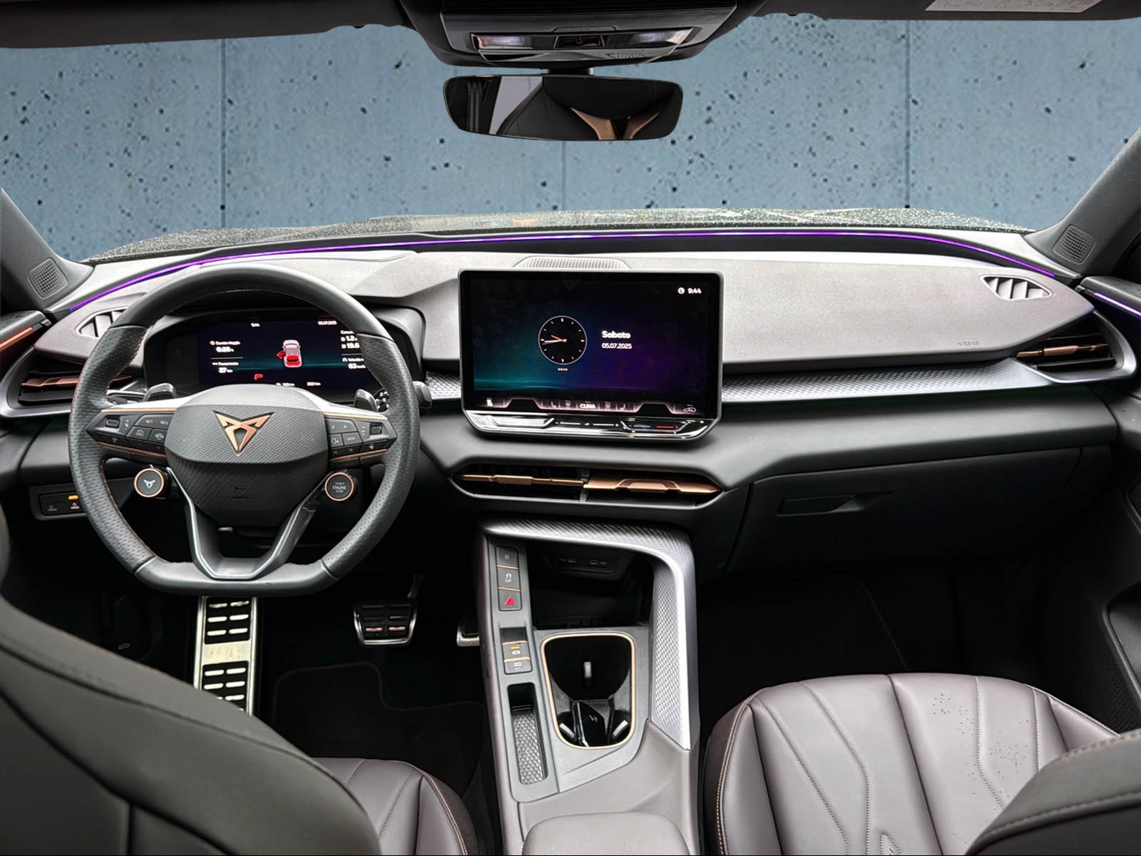 Gancio di traino (ripiegabile) con assistente di manovra del rimorchio Garanzia: CUPRA Estensione di garanzia di fabbrica per il 3, 4 e 5 anno / max. 100000 km Media: CUPRA Connect Online Infotainment Media: IMMERSIVE by SENNHEISER Pacchetto: INTELLIGENT DRIVE Ruote: Cerchi in alluminio 8.5J x 20", "HADRON COPPER" lavorati in Sport Black Matt & Copper