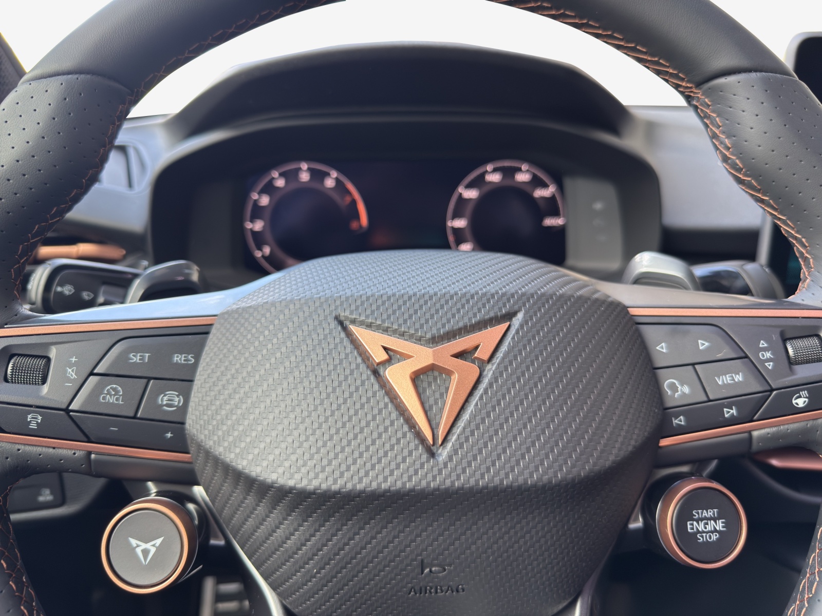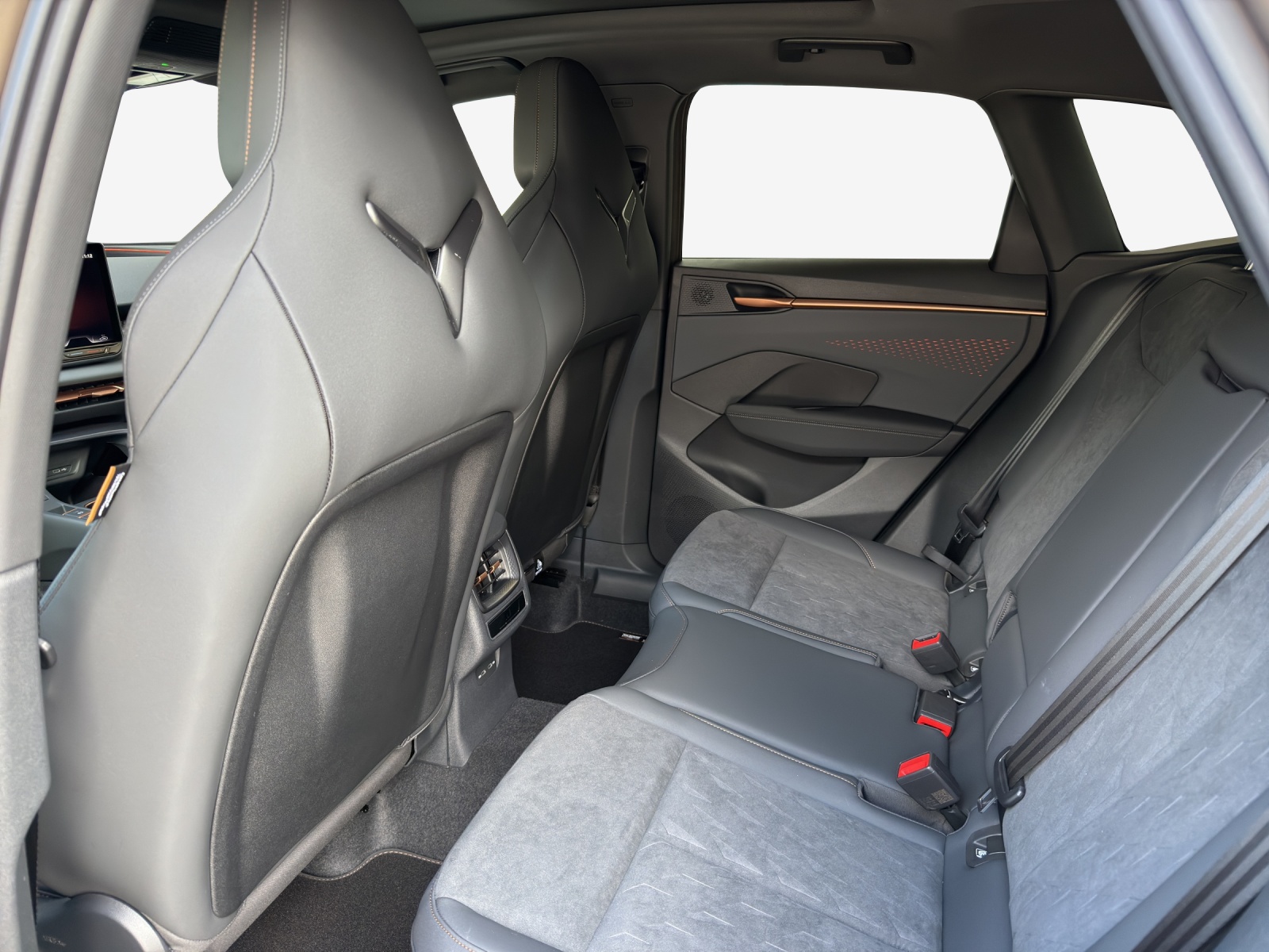 3-Punkt-Sicherheitsgurte auf allen Plätzen ABS, EBV elektronische Bremskraft-verteilung Abgedunkelte Scheiben ab B-Säule hinten Airbag: Airbag Beifahrer deaktivierbar Airbag: Airbag Fahrer und Beifahrer Airbag: Kopfairbags vorne und hinten Airbag: Seitenairbags für Fahrer und Beifahrer Alarmanlage mit Innenraumüberwachung Ambiente Innenraumbeleuchtung mit beleuchteten Türpanelen Assist: Aufmerksamkeits- und Müdigkeitserkennung (ADA) Assist: Ausweichunterstützung / Abbiegeassistent Assist: Automatische Distanzregelung ACC Assist: City Notbremsfunktion Assist: Einparkhilfe vorne und hinten mit Rückfahrkamera Assist: Elektronische Parkbremse mit Auto Hold Funktion Assist: Lane assist (Spurhalteassistent) Assist: Multifunktionskamera Assist: Multikollisionsbremse Assist: Prädiktive Speedlimiter Assist: Traffic sign recognition (Verkehrszeichenerkennung) Assist: Umfeldüberwachungssystem "Front-Assist" Aussenspiegel elektrisch einstell-, beheiz- und einklappbar Aussenspiegel mit LED-Umfeldbeleuchtung Beleuchtete Sonnenblende links mit abdeckbarem Spiegel und Lasche, rechts mit abdeckbarem Spiegel ESC mit EBA, DSR, XDS und Reifendruckkontrolle Einstiegsleisten beleuchtet Elektrische Fensterheber vorne und hinten mit Komfortschaltung und Einklemmschutz Fahrwerk: Adaptive Fahrwerksregelung DCC pro Fahrwerk: CUPRA Sportfahrwerk Fahrwerk: Progressivlenkung Fussmatten vorne und hinten Garantie: Cupra 12 Jahre Gewährleistung gegen Karosserie-Durchrostung Garantie: Cupra 3 Jahre Lack-Gewährleistung Garantie: Cupra Garantie 2 Jahre ohne Kilometerbegrenzung Garantie: Cupra Hersteller-Garantieverlängerung für das 3., 4. und 5. Jahr / max.100’000 km Heckklappe elektrisch öffnend und schliessend "Virtual Pedal" Heckscheiben-Wisch-/Waschanlage mit Intervall Innenspiegel automatisch abblendbar Klima: 3-Zonen Climatronic mit Fondraumbedienung LED-Ambientebeleuchtung Smart Wraparound, inkl. Funktionsanzeige Lackierung: Uni-Lackierung Lenkrad: Leder Multifunktionslenkrad mit Schaltwippen, beheizbar Licht: Drittes Bremslicht Licht: Durchgehende Full LED-Heckleuchten Licht: LED Heckleuchten mit beleuchtetem 3D CUPRA Logo Licht: LED-Heckleuchten mit dynamischem Blinklicht Licht: LED-Nebelscheinwerfer mit Cornering-Funktion Licht: LED-Scheinwerfer für Abblend- und Fernlicht Licht: Leuchtweitenregulierung dynamisch Licht: Nebelschlussleuchte Media: 12,9" Infotainment (MIB3) Media: 2 USB C Anschlüsse hinten und vorne Media: CUPRA Connect Remote & Access / CUPRA Connect Safety & Services Media: CUPRA Connectivity Box Media: DAB+ (Digital Audio Broadcasting) Media: Mobiltelefon Freisprechanlage Bluetooth Mittelarmlehne vorne und hinten Pyrotechnische Gurtstraffer und Gurtkraftbegrenzer Räder: Alufelgen 8.5J x 19", "COSMIC" Machined in Sport Black Matt & Silver Räder: Performance Reifen Räder: Reifendruckkontrollsystem Schlüsselloses Schliess- und Startsystem (KESSY Advance) Servolenkung mit geschwindigkeitsabhängiger Lenkkraftunterstützung Sitze: 3 verstellbare Kopfstützen hinten Sitze: CUPRA Sport Schalensitze in Textil, "DEEP OCEAN" "SEAQUAL" Sitze: Geteilt abklappbare Rücksitzlehne 1/3 - 2/3 Sitze: Geteilt abklappbare Rücksitzlehne mit Mittelarmlehne Sitze: Kindersitzverankerung ISOFIX hinten Sitze: Vordersitze höhenverstellbar mit Lendenwirbelstütze Stopp - Start- und Rekuperationssystem Wegfahrsperre elektronisch Zentralverriegelung mit Funkfernbedienung, 2 Funkschlüssel