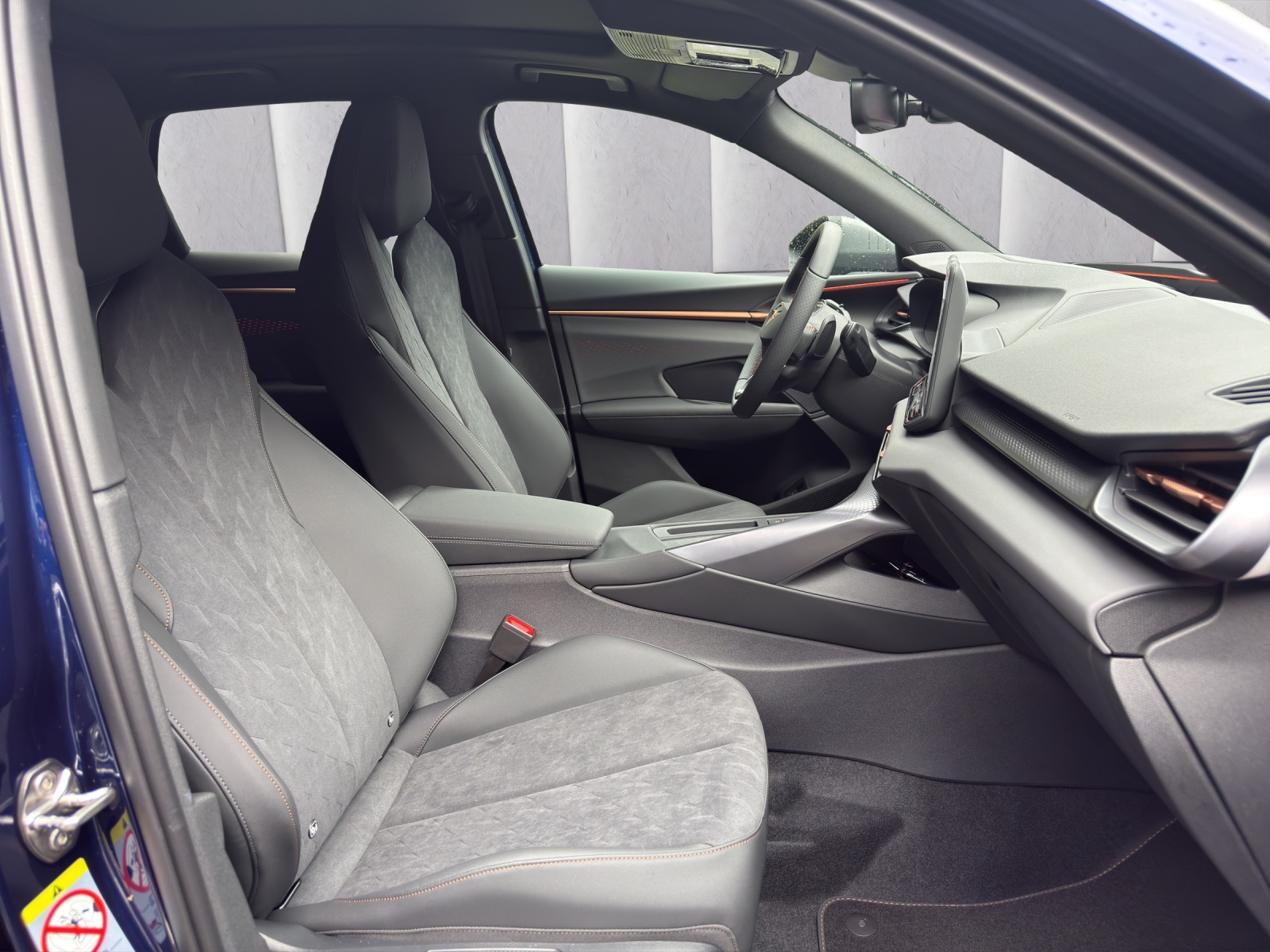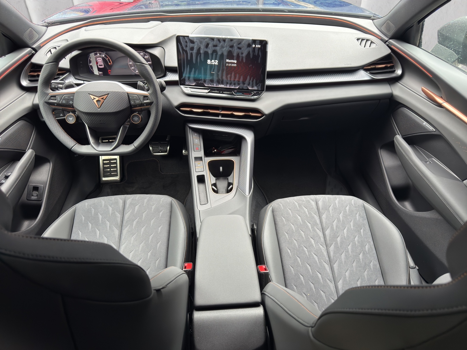 3-Punkt-Sicherheitsgurte auf allen Plätzen ABS, EBV elektronische Bremskraft-verteilung Abgedunkelte Scheiben ab B-Säule hinten Airbag: Airbag Beifahrer deaktivierbar Airbag: Airbag Fahrer und Beifahrer Airbag: Kopfairbags vorne und hinten Airbag: Seitenairbags für Fahrer und Beifahrer Alarmanlage mit Innenraumüberwachung Ambiente Innenraumbeleuchtung mit beleuchteten Türpanelen Assist: Aufmerksamkeits- und Müdigkeitserkennung (ADA) Assist: Ausweichunterstützung / Abbiegeassistent Assist: Automatische Distanzregelung ACC Assist: City Notbremsfunktion Assist: Einparkhilfe vorne und hinten mit Rückfahrkamera Assist: Elektronische Parkbremse mit Auto Hold Funktion Assist: Lane assist (Spurhalteassistent) Assist: Multifunktionskamera Assist: Multikollisionsbremse Assist: Prädiktive Speedlimiter Assist: Traffic sign recognition (Verkehrszeichenerkennung) Assist: Umfeldüberwachungssystem "Front-Assist" Aussenspiegel elektrisch einstell-, beheiz- und einklappbar Aussenspiegel mit LED-Umfeldbeleuchtung Beleuchtete Sonnenblende links mit abdeckbarem Spiegel und Lasche, rechts mit abdeckbarem Spiegel ESC mit EBA, DSR, XDS und Reifendruckkontrolle Einstiegsleisten beleuchtet Elektrische Fensterheber vorne und hinten mit Komfortschaltung und Einklemmschutz Fahrwerk: Adaptive Fahrwerksregelung DCC pro Fahrwerk: CUPRA Sportfahrwerk Fahrwerk: Progressivlenkung Fussmatten vorne und hinten Garantie: Cupra 12 Jahre Gewährleistung gegen Karosserie-Durchrostung Garantie: Cupra 3 Jahre Lack-Gewährleistung Garantie: Cupra Garantie 2 Jahre ohne Kilometerbegrenzung Heckklappe elektrisch öffnend und schliessend "Virtual Pedal" Heckscheiben-Wisch-/Waschanlage mit Intervall Innenspiegel automatisch abblendbar Klima: 3-Zonen Climatronic mit Fondraumbedienung LED-Ambientebeleuchtung Smart Wraparound, inkl. Funktionsanzeige Lackierung: Uni-Lackierung Lenkrad: Leder Multifunktionslenkrad mit Schaltwippen, beheizbar Licht: Drittes Bremslicht Licht: Durchgehende Full LED-Heckleuchten Licht: LED Heckleuchten mit beleuchtetem 3D CUPRA Logo Licht: LED-Heckleuchten mit dynamischem Blinklicht Licht: LED-Nebelscheinwerfer mit Cornering-Funktion Licht: LED-Scheinwerfer für Abblend- und Fernlicht Licht: Leuchtweitenregulierung dynamisch Licht: Nebelschlussleuchte Media: 12,9" Infotainment (MIB3) Media: 2 USB C Anschlüsse hinten und vorne Media: CUPRA Connect Remote & Access / CUPRA Connect Safety & Services Media: CUPRA Connectivity Box Media: DAB+ (Digital Audio Broadcasting) Media: Mobiltelefon Freisprechanlage Bluetooth Mittelarmlehne vorne und hinten Pyrotechnische Gurtstraffer und Gurtkraftbegrenzer Räder: Alufelgen 8.5J x 19", "COSMIC" Machined in Sport Black Matt & Silver Räder: Performance Reifen Räder: Reifendruckkontrollsystem Schlüsselloses Schliess- und Startsystem (KESSY Advance) Servolenkung mit geschwindigkeitsabhängiger Lenkkraftunterstützung Sitze: 3 verstellbare Kopfstützen hinten Sitze: CUPRA Sport Schalensitze in Textil, "DEEP OCEAN" "SEAQUAL" Sitze: Geteilt abklappbare Rücksitzlehne 1/3 - 2/3 Sitze: Geteilt abklappbare Rücksitzlehne mit Mittelarmlehne Sitze: Kindersitzverankerung ISOFIX hinten Sitze: Vordersitze höhenverstellbar mit Lendenwirbelstütze Stopp - Start- und Rekuperationssystem Wegfahrsperre elektronisch Zentralverriegelung mit Funkfernbedienung, 2 Funkschlüssel