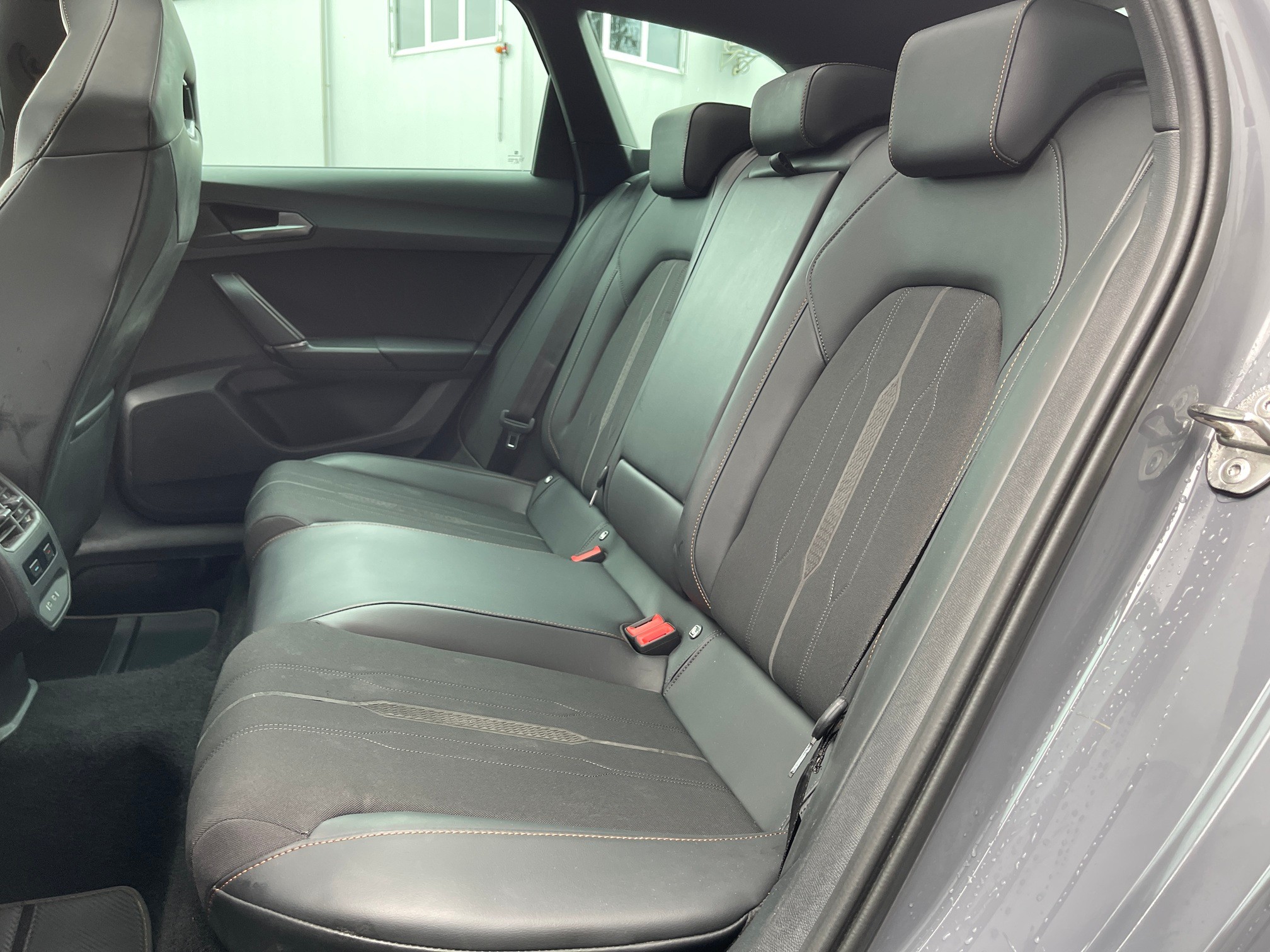 12V Anschluss im Kofferraum ABS, EBV elektronische Bremskraft-verteilung Abgedunkelte Scheiben ab B-Säule hinten Airbag: Airbag Beifahrer deaktivierbar Airbag: Airbag Fahrer und Beifahrer Airbag: Kopfairbags vorne und hinten Airbag: Seitenairbags für Fahrer und Beifahrer Assist: Einparkhilfe hinten Assist: Elektronische Parkbremse mit Auto Hold Funktion Assist: Multifunktionskamera Assist: Multikollisionsbremse Assist: PreCrash Sicherheitssystem Assist: Tiredness detection (Müdigkeitserkennung) Assist: Traction Control (TCS), deaktivierbar Aussenspiegel elektrisch einstell-, beheiz- und einklappbar mit Beifahrerabsenkfunktion Aussenspiegel in Cosmo Grey, Türgriffe in Wagenfarbe Aussenspiegel mit LED-Blinker Bremszangen vorne und hinten in Schwarz CUPRA Drive Profile mit "driving experience button" Comfort, Sport, CUPRA, Individual Dekor: Dekorblenden in Copper Dekor: Schalthebelknopf in Leder Dokumentenablage unter dem linken Vordersitz Dreipunkt-Automatiksicherheitsgurte auf allen Plätzen ESC mit EBA, DSR und Reifendruckkontrolle Elektrische Fensterheber vorne und hinten mit Komfortschaltung und Einklemmschutz Fahrwerk: Adaptive Fahrwerksregelung DCC Fahrwerk: Progressivlenkung Fahrwerk: Vorderachs-Differenzialsperre Fussmatten vorne und hinten Garantie: 2 Jahre ohne Kilometerbegrenzung (ab 1. Inv.) Getriebe: Sequentielles 6-Gang-Getriebe mit Automatikfunktion Heckscheiben-Wisch-/Waschanlage mit Intervall Innenspiegel automatisch abblendbar Kindersitzverankerung ISOFIX (äussere Plätze hinten) Klima: 3-Zonen Climatronic LED-Innenraumbeleuchtung mit Ambientebeleuchtung Wraparound Lackierung: Uni-Lackierung Ladekabel für Haushaltssteckdose (Mode 2) Lenkrad: Beheizbares Ledermultifunktionslenkrad mit Schaltwippen Licht: Coming Leaving Home Funktion Licht: Drittes Bremslicht Licht: Durchgehende Full LED-Heckleuchten Licht: LED-Heckleuchten mit dynamischem Blinklicht Licht: LED-Nebelscheinwerfer mit Cornering-Funktion Licht: LED-Scheinwerfer für Abblend- und Fernlicht Licht: Leuchtweitenregulierung Media: 10'' Infotainment (MIB3) Media: 2 USB C Anschlüsse hinten und vorne Media: CUPRA Connect Online Infotainment für Navigationssystem Media: CUPRA Connect Remote & Access für Navigationssystem Media: CUPRA Navigationssystem Media: DAB+ (Digital Audio Broadcasting) Media: Kartenmaterial ''Europa'' Media: Mobiltelefon Freisprechanlage Bluetooth Mittelarmlehne vorne und hinten Pollenfilter (Staubfilter) Pyrotechnische Gurtstraffer und Gurtkraftbegrenzer Räder: Alufelgen 8J x 19", "CUPRA" 30/1 (235/35 R19) Räder: Reifendruck-Kontrollanzeige Räder: Reifenreparatur-Set (Tire Fit) Schlüsselloses Schliess- und Startsystem (KESSY) Servolenkung mit geschwindigkeitsabhängiger Lenkkraftunterstützung Sicherheitsgurtkontrolle für alle Sitze Sitze: 2 verstellbare Kopfstützen vorne und 3 hinten Sitze: CUPRA Sport Schalensitze in "Sharp Textil schwarz" Sitze: Dokumentenablage unter dem linken Vordersitz Sitze: Geteilt abklappbare Rücksitzlehne 1/3 - 2/3 Sitze: Kindersitzverankerung ISOFIX hinten Sitze: Sitzheizung für Vordersitze, getrennt regelbar Sitze: Vordersitze höhenverstellbar Sonnenblende Fahrer und Beifahrerseite Stopp - Start- und Rekuperationssystem Stossfänger in Sport-Optik mit Heckdiffusor in Wagenfarbe Wegfahrsperre elektronisch Zentralverriegelung mit Funkfernbedienung, 2 Funkschlüssel Zierleisten Seitenfenster in Schwarz Glanz Zwei Abgasblenden in Kupfer