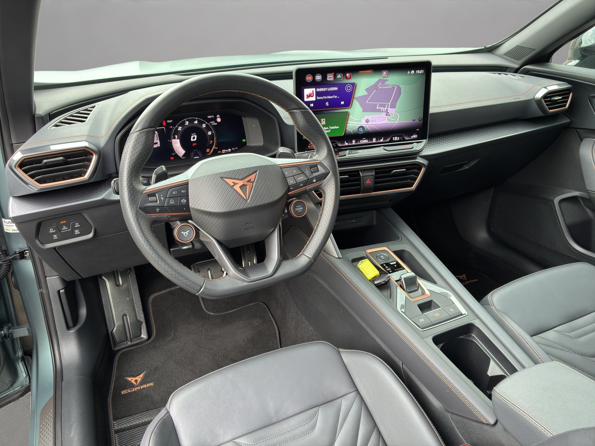 3-Punkt-Sicherheitsgurte auf allen Plätzen ABS, EBV elektronische Bremskraft-verteilung Abgedunkelte Scheiben ab B-Säule hinten Airbag: Airbag Beifahrer deaktivierbar Airbag: Airbag Fahrer und Beifahrer Airbag: Kopfairbags vorne und hinten Airbag: Seitenairbags für Fahrer und Beifahrer Assist: Aufmerksamkeits- und Müdigkeitserkennung (ADA) Assist: Ausweichunterstützung / Abbiegeassistent Assist: Automatische Distanzregelung ACC Assist: City Notbremsfunktion Assist: Einparkhilfe vorne und hinten mit Rückfahrkamera Assist: Elektronische Parkbremse mit Auto Hold Funktion Assist: Lane assist (Spurhalteassistent) Assist: Multifunktionskamera Assist: Multikollisionsbremse Assist: Prädiktive Speedlimiter Assist: Regen-/Lichtsensor Assist: Traffic sign recognition (Verkehrszeichenerkennung) Assist: Umfeldbeobachtung Front-Assist Aussenspiegel mit Beifahrerspiegelabsenkung Aussenspiegel mit LED-Umfeldbeleuchtung Automatisch abblendender Innenrückspiegel Beleuchtete Sonnenblende links mit abdeckbarem Spiegel und Lasche, rechts mit abdeckbarem Spiegel ESC mit EBA, DSR, XDS und Reifendruckkontrolle Elektrische Fensterheber vorne und hinten mit Komfortschaltung und Einklemmschutz Fahrwerk: Adaptive Fahrwerksregelung DCC Fahrwerk: Progressivlenkung Fussmatten vorne und hinten Garantie: Cupra 12 Jahre Gewährleistung gegen Karosserie-Durchrostung Garantie: Cupra 3 Jahre Lack-Gewährleistung Garantie: Cupra Garantie 2 Jahre ohne Kilometerbegrenzung Heckscheiben-Wisch-/Waschanlage mit Intervall Kindersitzverankerung ISOFIX (äussere Plätze hinten) Klima: 3-Zonen Climatronic mit Fondraumbedienung Lackierung: Uni-Lackierung Lenkrad: Supersportlenkrad mit Start-/ Drive Profile-Knopfsystem und Schaltwippen, beheizbar Licht: Coming-home-Funktion Licht: Drittes Bremslicht Licht: Durchgehende Full LED-Heckleuchten Licht: Fernlicht-Assistent Licht: LED Heckleuchten mit beleuchtetem 3D CUPRA Logo Licht: LED-Heckleuchten mit dynamischem Blinklicht Licht: LED-Nebelscheinwerfer mit Cornering-Funktion Licht: LED-Scheinwerfer für Abblend- und Fernlicht Licht: Leuchtweitenregulierung dynamisch Licht: Nebelschlussleuchte Media: 12,9" Infotainment (MIB3) Media: 2 USB C Anschlüsse hinten und vorne Media: CUPRA Connect Online Infotainment Media: CUPRA Connect Remote & Access Media: CUPRA Connect Safety & Services Media: CUPRA Connectivity Box Media: DAB+ (Digital Audio Broadcasting) Media: Mobiltelefon Freisprechanlage Bluetooth Pyrotechnische Gurtstraffer und Gurtkraftbegrenzer Räder: Alufelgen 8J x 19", "SANDSTORM" Machined in Silver Räder: Reifendruckkontrollsystem Räder: Reifenreparatur-Set (Tire Fit) Servolenkung mit geschwindigkeitsabhängiger Lenkkraftunterstützung Sitze: 3 verstellbare Kopfstützen hinten Sitze: Geteilt abklappbare Rücksitzlehne 1/3 - 2/3 Sitze: Kopfstützen vorne (integrierte) Sitze: Mittelarmlehne hinten Sitze: Mittelarmlehne vorne Sitze: Schublade unter dem rechten Vordersitz Sitze: Sitzheizung für Vordersitze, getrennt regelbar Sitze: Vordersitze höhenverstellbar mit Lendenwirbelstütze Stopp - Start- und Rekuperationssystem Wegfahrsperre elektronisch Zentralverriegelung mit Funkfernbedienung, 2 Funkschlüssel