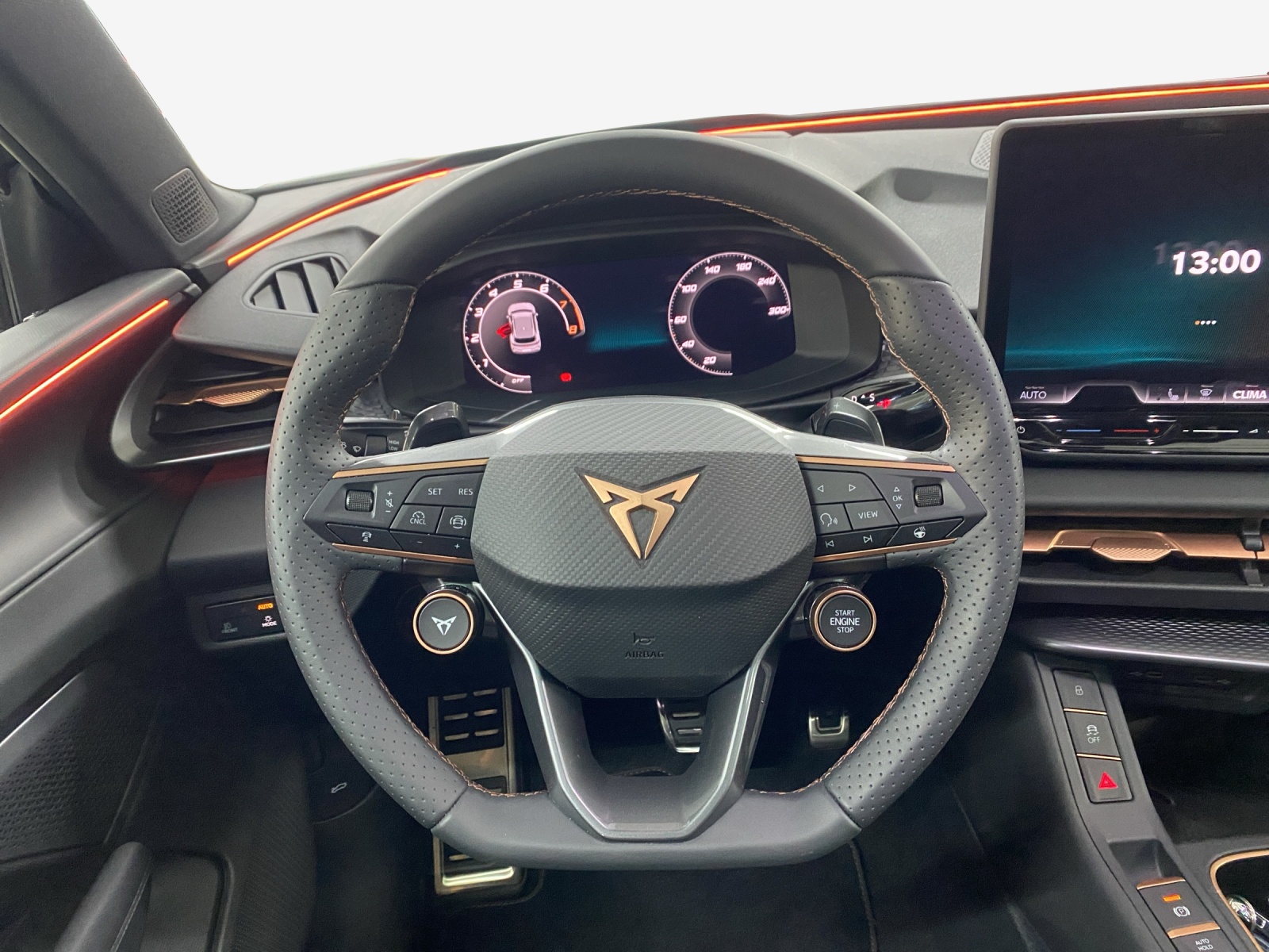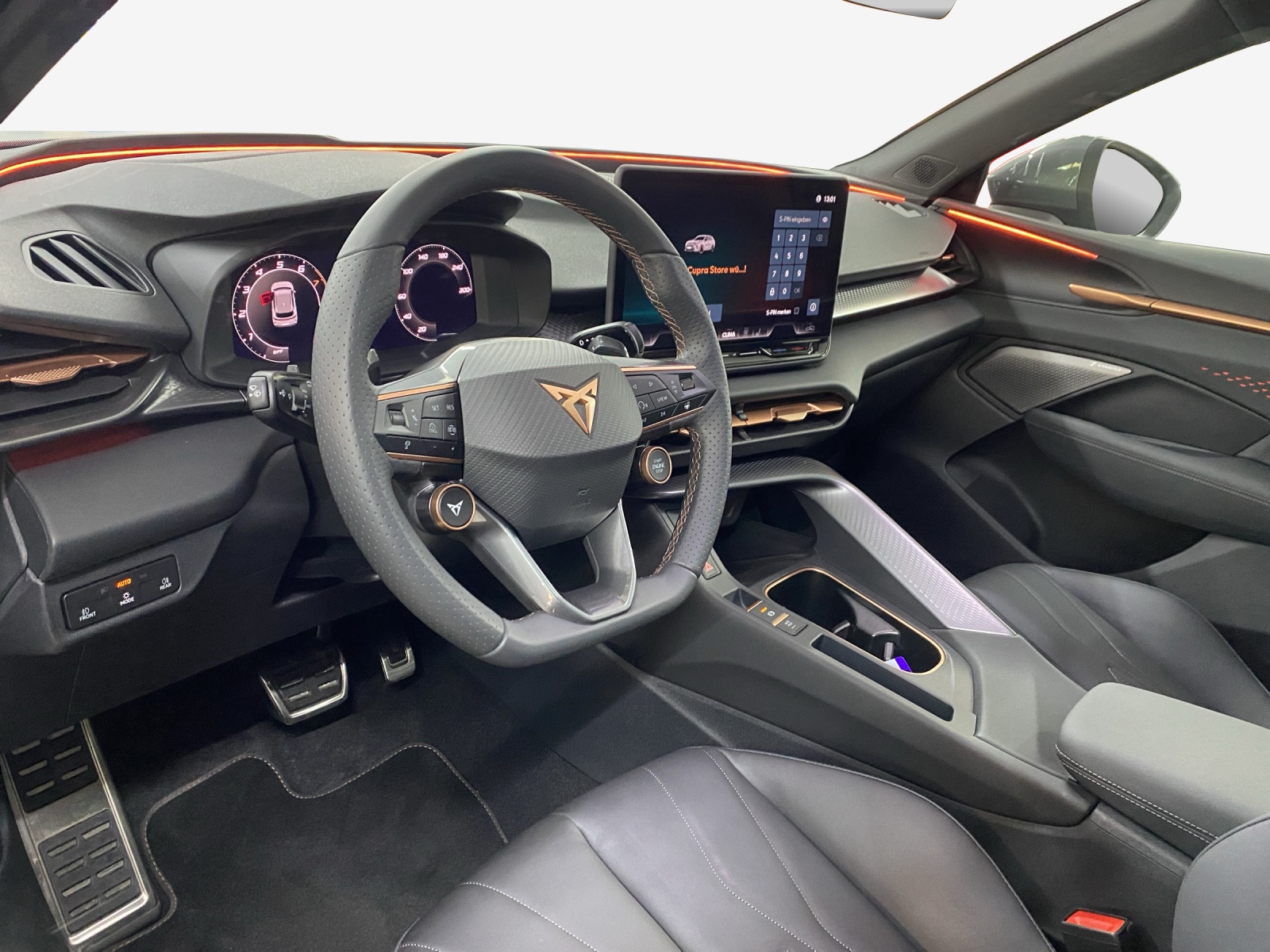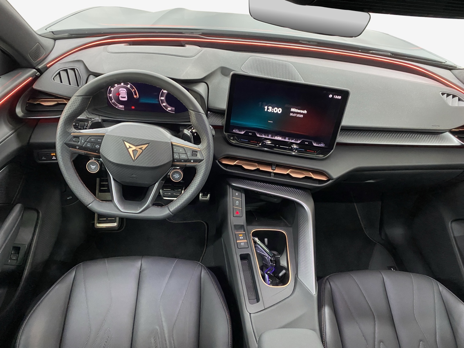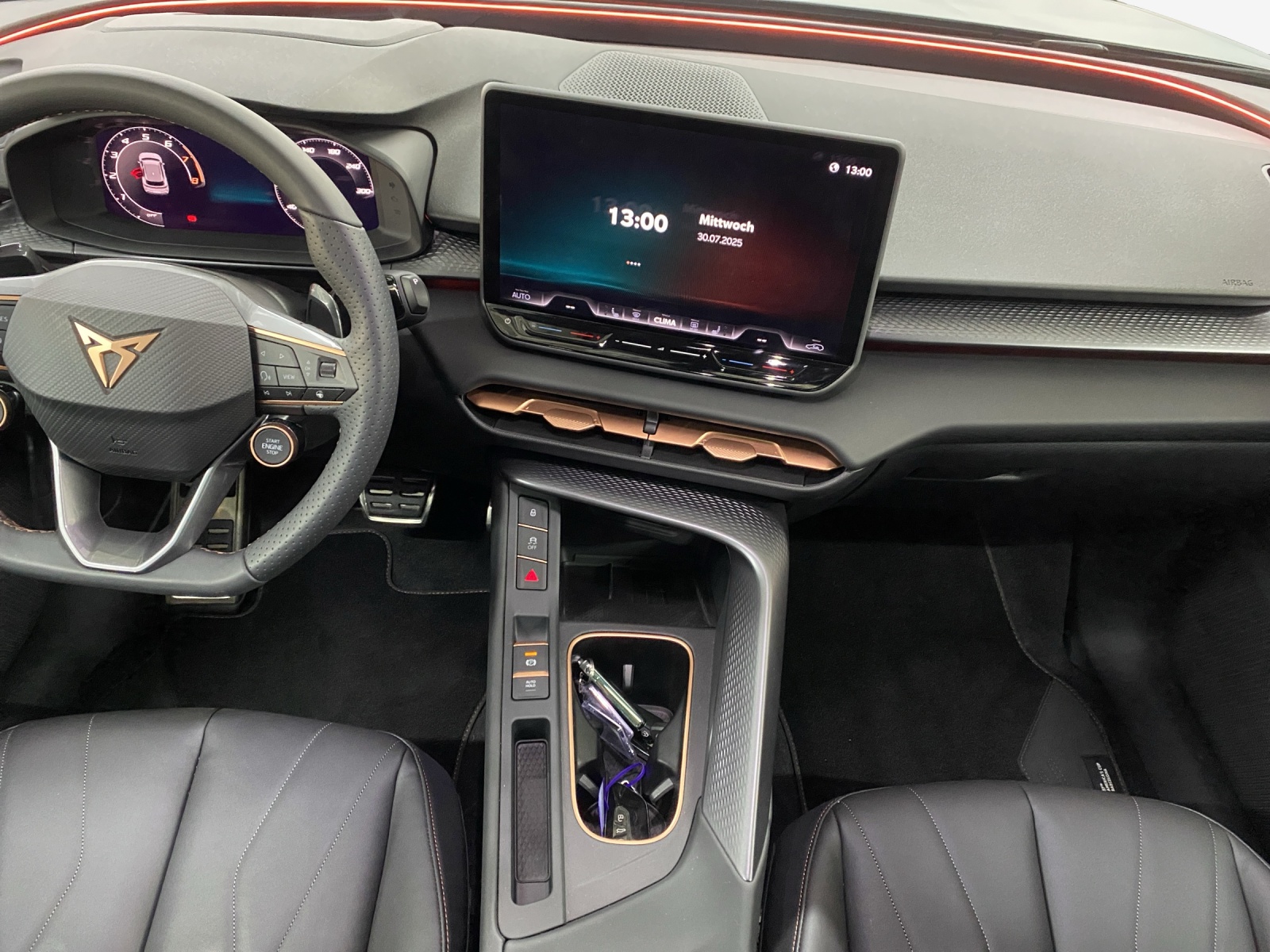2 Leseleuchten vorn, 2 hinten 3-Punkt-Sicherheitsgurte auf allen Plätzen ABS, EBV elektronische Bremskraft-verteilung Abgedunkelte Scheiben ab B-Säule hinten Airbag: Airbag Beifahrer deaktivierbar Airbag: Airbag Fahrer und Beifahrer Airbag: Kopfairbags vorne und hinten Airbag: Seitenairbags für Fahrer und Beifahrer Alarmanlage mit Innenraumüberwachung Ambiente Innenraumbeleuchtung mit beleuchteten Türpanelen Assist: Aufmerksamkeits- und Müdigkeitserkennung (ADA) Assist: Ausweichunterstützung / Abbiegeassistent Assist: Automatische Distanzregelung ACC Assist: City Notbremsfunktion Assist: Einparkhilfe vorne und hinten mit Rückfahrkamera Assist: Elektronische Parkbremse mit Auto Hold Funktion Assist: Fussgänger Notbremsfunktion Assist: Kreuzungsassistent Assist: Lane assist (Spurhalteassistent) Assist: Multifunktionskamera Assist: Multikollisionsbremse Assist: Prädiktive Speedlimiter Assist: Traffic sign recognition (Verkehrszeichenerkennung) Assist: Umfeldüberwachungssystem "Front-Assist" Assist: eCall Notruffunktion Aussenspiegel elektrisch einstell-, beheiz- und einklappbar mit Memory -Funktion Aussenspiegel mit LED-Umfeldbeleuchtung Beleuchtete Sonnenblende links mit abdeckbarem Spiegel und Lasche, rechts mit abdeckbarem Spiegel CUPRA Stossfänger sowie Türgriffe in Wagenfarbe ESC mit EBA, DSR, XDS und Reifendruckkontrolle Einstiegsleisten beleuchtet Elektrische Fensterheber vorne und hinten mit Komfortschaltung und Einklemmschutz Fahrwerk: Adaptive Fahrwerksregelung DCC pro Fahrwerk: CUPRA Sportfahrwerk Fahrwerk: Progressivlenkung Frontscheibe Wärmeschutzverglasung Fussmatten vorne und hinten Garantie: Cupra 12 Jahre Gewährleistung gegen Karosserie-Durchrostung Garantie: Cupra 3 Jahre Lack-Gewährleistung Garantie: Cupra Garantie 2 Jahre ohne Kilometerbegrenzung Heckklappe elektrisch öffnend und schliessend "Virtual Pedal" Heckscheiben-Wisch-/Waschanlage mit Intervall Innenspiegel automatisch abblendbar Klima: 3-Zonen Climatronic mit Fondraumbedienung LED-Innenraumbeleuchtung mit Ambientebeleuchtung"Monochrom" Lackierung: Matt-Lackierungen Lenkrad: Leder Multifunktionslenkrad mit Schaltwippen, beheizbar Licht: Drittes Bremslicht Licht: Durchgehende Full LED-Heckleuchten Licht: LED Heckleuchten mit beleuchtetem 3D CUPRA Logo Licht: LED-Heckleuchten mit dynamischem Blinklicht Licht: LED-Nebelscheinwerfer mit Cornering-Funktion Licht: LED-SBBR-Leuchte, Lichtfunktionen animiert Licht: Nebelschlussleuchte Licht: Tagesfahrlicht mit Assistenzfahrlicht u.Coming- und. Leaving-home Funktion automatisch Media: 12,9" Infotainment (MIB3) Media: 2 USB C Anschlüsse hinten und vorne Media: CUPRA Connect Online Infotainment Media: CUPRA Connect Remote & Access / CUPRA Connect Safety & Services Media: CUPRA Connectivity Box Media: DAB+ (Digital Audio Broadcasting) Media: Extern, USB Typ-C Datenbuchse(n) und Ladebuchse(n) mit erhöhter Ladeleistung Media: IMMERSIVE by SENNHEISER Media: Mobiltelefon Freisprechanlage Bluetooth Mittelarmlehne vorne und hinten Ohne Scheinwerferreinigungsanlage mit Waschwasser-Standanzeige Pyrotechnische Gurtstraffer und Gurtkraftbegrenzer Räder: Alufelgen 8.5J x 20", "America’s CUP " Machined in Sport Black Matt Räder: Performance Reifen Räder: Reifendruckkontrollsystem Schlüsselloses Schliess- und Startsystem (KESSY Advance) Servolenkung mit geschwindigkeitsabhängiger Lenkkraftunterstützung Sitze: 3 verstellbare Kopfstützen hinten Sitze: CUPRA Sport Schalensitze in Leder Sitze: Elektrische Sitzverstellung für Fahrer- und Beifahrerseite, Sitze: Geteilt abklappbare Rücksitzlehne 1/3 - 2/3 Sitze: Geteilt abklappbare Rücksitzlehne mit Mittelarmlehne Sitze: Kindersitzverankerung ISOFIX hinten Sitze: Lendenwirbelstütze Fahrer- und Beifahrerseite elektrisch einstellbar Sitze: Sitzheizung für Vordersitze, getrennt regelbar Stopp - Start- und Rekuperationssystem Wegfahrsperre elektronisch Zentralverriegelung mit Funkfernbedienung, 2 Funkschlüssel