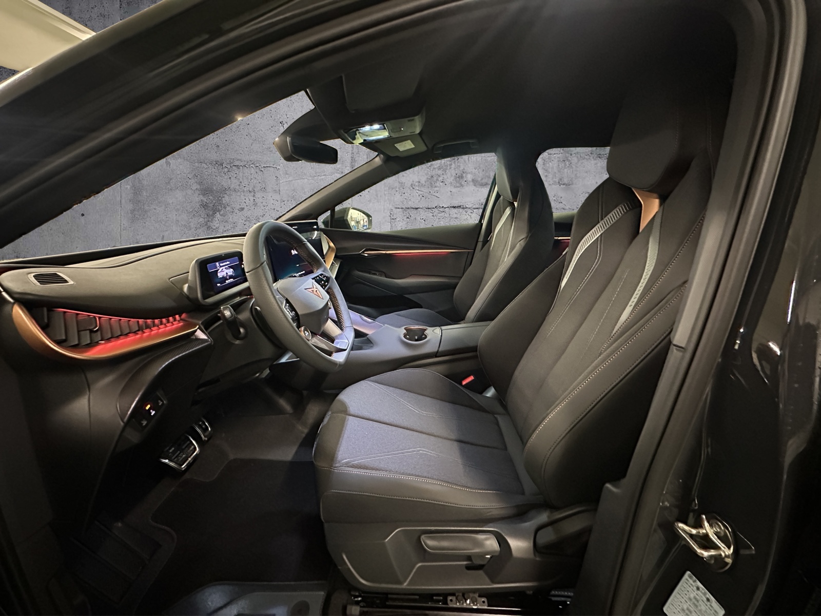 5.3" Full Digital Cockpit Abgedunkelte Scheiben ab B-Säule hinten Airbag: Airbag conducteur et passager Airbag: Airbag passager désactivable Airbag: Seitenairbags für Fahrer und Beifahrer Alarme avec surveillance intérieure Assist: Assistance au stationnement RPA (Remote Park Assist) Assist: Assistant de vitesse intelligent Assist: Aufmerksamkeits- und Müdigkeitserkennung (ADA) Assist: Ausweichunterstützung / Abbiegeassistent Assist: Automatische Distanzregelung ACC Assist: Exit Assist (Ausparkassistent) Assist: Exit Warning (Ausstiegswarner) Assist: PreCrash Sicherheitssystem Assist: Regen-/Lichtsensor Assist: Side Assist (Spurwechselassistent) Assist: Traffic sign recognition (Verkehrszeichenerkennung) Assist: eCall Notruffunktion Aussenspiegel elektrisch einstell-, beheiz- und einklappbar Automatisch abblendender Innenrückspiegel Direction assistée asservie à la vitesse Dreipunkt-Automatiksicherheitsgurte auf allen Plätzen Garantie: Cupra 12 ans de garantie contre perforation de la carrosserie Garantie: Cupra 2 ans de garantie, kilométrage illimité Garantie: Cupra 3 ans de garantie pour la peinture Getriebe: 1-Gang Automatik Heckklappe elektrisch öffnend und schliessend "Virtual Pedal" Klima: 3-Zonen Climatronic mit Fondraumbedienung LED Ambientebeleuchtung "PURE" Licht: LED Heckleuchten mit beleuchtetem 3D CUPRA Logo Lumière: 3ème feu de stop Lumière: Feu antibrouillard arriere Lumière: Feu de route matriciel a LED Lumière: L'éclairage diurne à LED Lumière: Phares Matrix LED Media: 15" Infotainment (MIB3) Media: 2 USB C Anschlüsse hinten und vorne Media: Bluetooth-Freisprecheinrichtung Media: CUPRA Connect Online Infotainment Media: CUPRA Connect Remote & Access Media: CUPRA Navigationssystem Media: Wireless Charger zur induktiven Smartphone Ladung Mèdias: CUPRA Connect Safety & Services Mèdias: DAB+ (Digital Audio Broadcasting) Polster: Sitzbezüge in Stoff "Soul Black" Programme électronique de la stabilité Préparation pour dispositif d'attelage Roues: Jantes en aluminium 8J x 19", "Vulcano" Machined Sport en noir/argent Räder: Reifendruckkontrollsystem Schlüsselloses Schliess- und Startsystem (KESSY Advance) Sitze: Geteilt abklappbare Rücksitzlehne 1/3 - 2/3 Sitze: Kindersitzbefestigungssystem ISOFIX Sitze: Kopfstützen hinten höhenverstellbar Sitze: Kopfstützen vorne (integrierte) Sitze: Sitzheizung für Vordersitze, getrennt regelbar Sitze: Vordersitze höhenverstellbar Volant: Volant Supersport avec systeme de boutons Drive Profile, chauffant