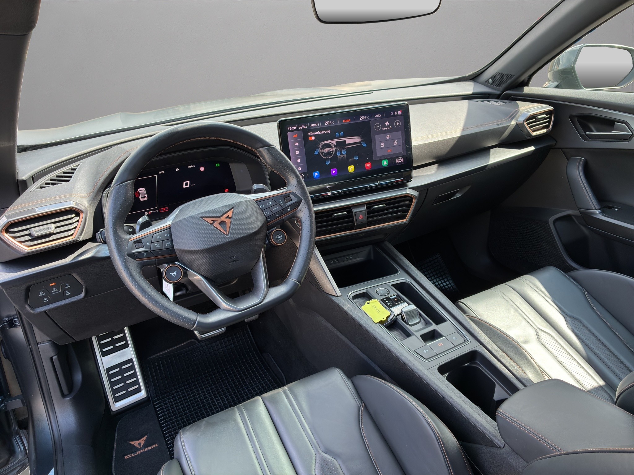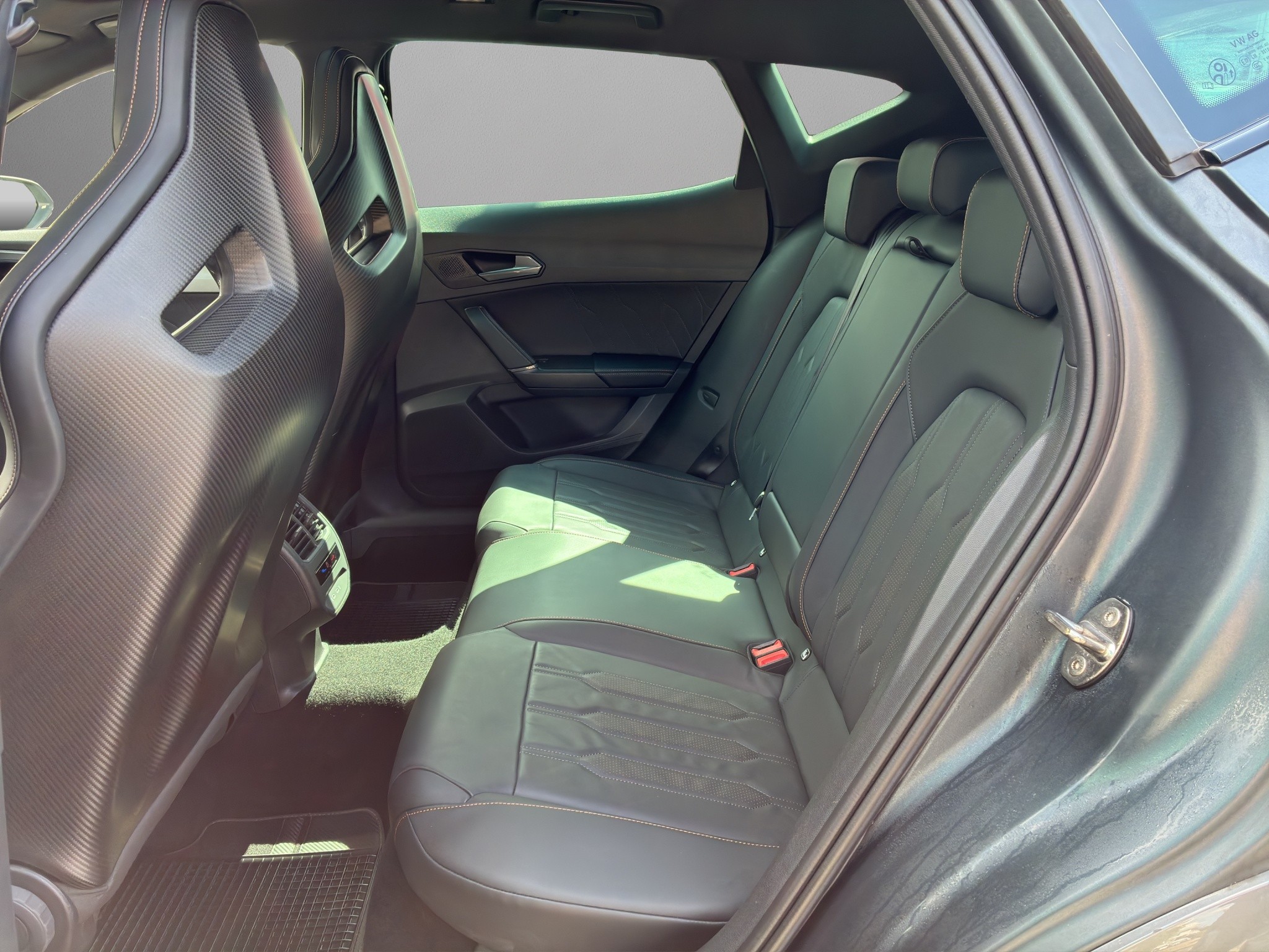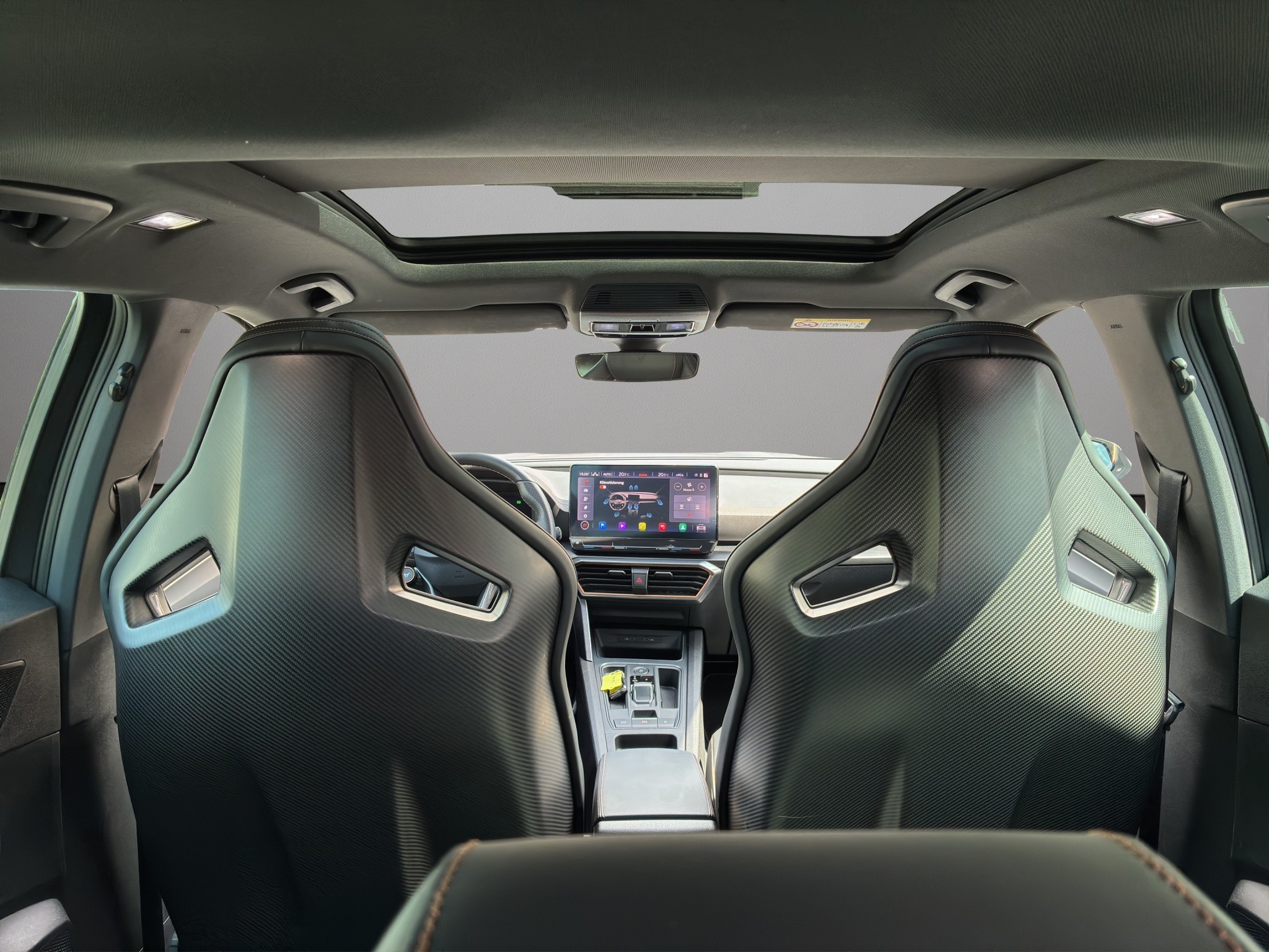 230-Volt Steckdose im Kofferraum und 12-Volt Steckdose in der Mittelkonsole ABS, EBV elektronische Bremskraft-verteilung Abgedunkelte Scheiben ab B-Säule hinten Airbag: Airbag Beifahrer deaktivierbar Airbag: Airbag Fahrer und Beifahrer Airbag: Kopfairbags vorne und hinten Airbag: Seitenairbags für Fahrer und Beifahrer Assist: City Notbremsfunktion Assist: Elektronische Parkbremse mit Auto Hold Funktion Assist: Multifunktionskamera Assist: Multikollisionsbremse Assist: Parklenkassistent Assist: PreCrash Sicherheitssystem Assist: Regen-/Lichtsensor Assist: Tiredness detection (Müdigkeitserkennung) Assist: Umfeldbeobachtung Front-Assist Aussenspiegel elektrisch einstell-, beheiz- und einklappbar Aussenspiegel mit Beifahrerspiegelabsenkung Aussenspiegel mit LED-Umfeldbeleuchtung Automatisch abblendender Innenrückspiegel Beleuchtete Sonnenblende links mit abdeckbarem Spiegel und Lasche, rechts mit abdeckbarem Spiegel CUPRA Drive Profile mit "driving experience button" Comfort, Sport, CUPRA, Individual, Snow, Offroad Dreipunkt-Automatiksicherheitsgurte auf allen Plätzen ESC mit EBA, DSR, XDS und Reifendruckkontrolle Elektrische Fensterheber vorne und hinten mit Komfortschaltung und Einklemmschutz Fahrwerk: Adaptive Fahrwerksregelung DCC Fahrwerk: Progressivlenkung Fussmatten vorne und hinten Garantie: Cupra 12 Jahre Gewährleistung gegen Karosserie-Durchrostung Garantie: Cupra 3 Jahre Lack-Gewährleistung Garantie: Cupra Garantie 2 Jahre ohne Kilometerbegrenzung Heckscheiben-Wisch-/Waschanlage mit Intervall Kindersitzverankerung ISOFIX (äussere Plätze hinten) Klima: 3-Zonen Climatronic mit Fondraumbedienung LED-Innenraumbeleuchtung mit Ambientebeleuchtung Wraparound Lackierung: Uni-Lackierung Lenkrad: Supersportlenkrad mit Start-/ Drive Profile-Knopfsystem und Schaltwippen, beheizbar Licht: Coming-home-Funktion Licht: Durchgehende Full LED-Heckleuchten Licht: LED-Heckleuchten mit dynamischem Blinklicht Licht: LED-Nebelscheinwerfer mit Cornering-Funktion Licht: LED-Scheinwerfer für Abblend- und Fernlicht Licht: Leuchtweitenregulierung dynamisch Media: 12" Infotainment (MIB3) Media: 2 USB C Anschlüsse hinten und vorne Media: CUPRA Connect Online Infotainment für Navigationssystem Media: CUPRA Connect Remote & Access für Navigationssystem Media: CUPRA Navigationssystem Media: DAB+ (Digital Audio Broadcasting) Media: Kartenmaterial ''Europa'' Media: Mobiltelefon Freisprechanlage Bluetooth Mittelarmlehne vorne und hinten Paket: Fahrerassistenzpaket XL für Navigationssystem Pyrotechnische Gurtstraffer und Gurtkraftbegrenzer Räder: Alufelgen 8J x 19", "EXCLUSIVE" 38/3 Machined Black Matt / Silver Räder: Ersatzrad platzsparend Räder: Reifendruck-Kontrollanzeige Schlüsselloses Schliess- und Startsystem (KESSY) Servolenkung mit geschwindigkeitsabhängiger Lenkkraftunterstützung Sitze: 2 verstellbare Kopfstützen vorne und 3 hinten Sitze: CUPRA Sport Schalensitze in "Sharp Textil schwarz" Sitze: Easy Backseat Release (Rücksitzentriegelung im Kofferraum) Sitze: Geteilt abklappbare Rücksitzlehne 1/3 - 2/3 Sitze: Vordersitze höhenverstellbar mit Lendenwirbelstütze Sportauspuffanlage mit 4-fach Endrohr Stopp - Start- und Rekuperationssystem Wegfahrsperre elektronisch Zentralverriegelung mit Funkfernbedienung, 2 Funkschlüssel