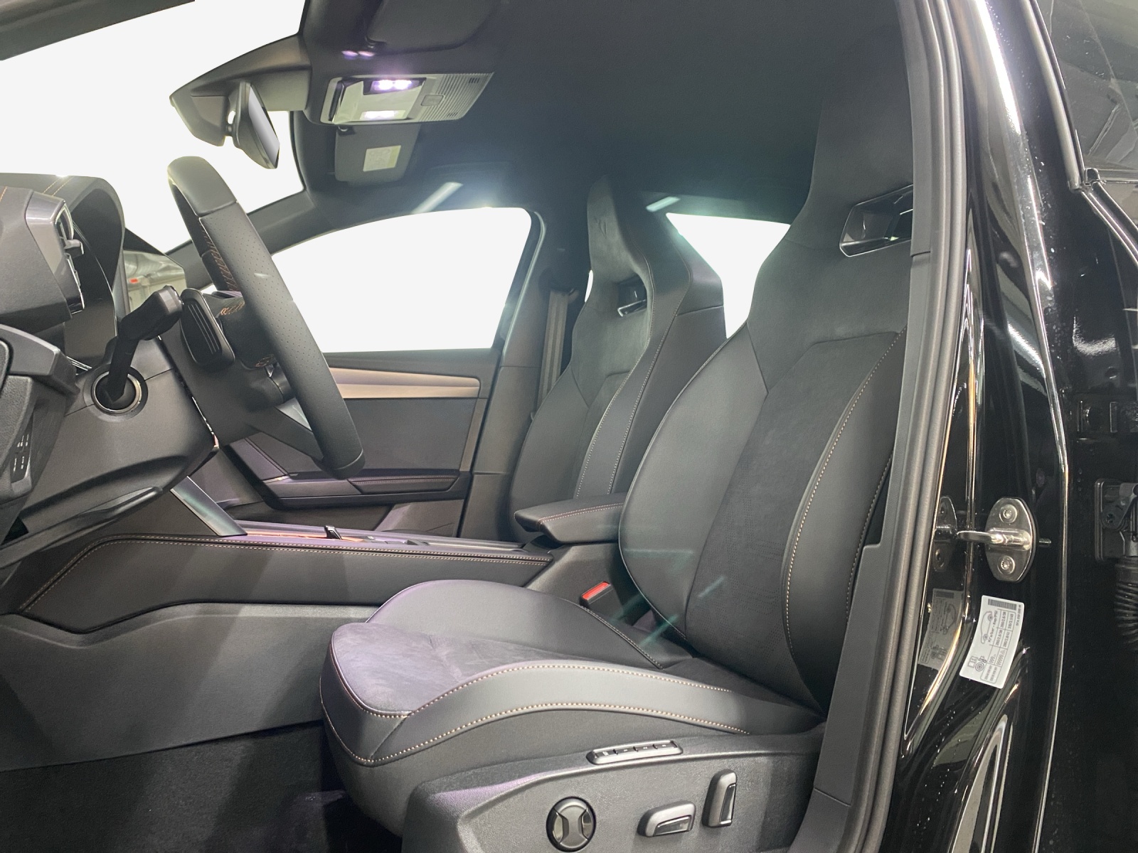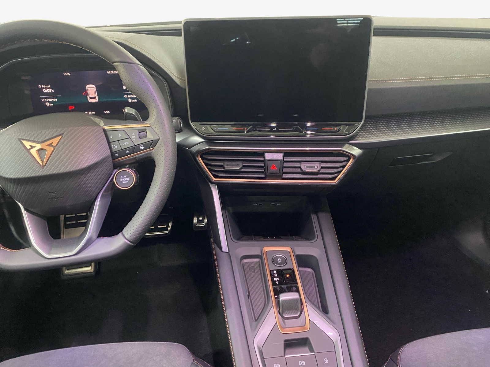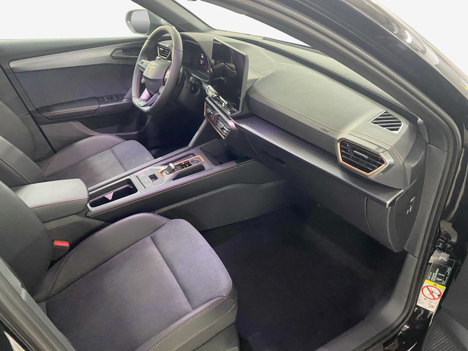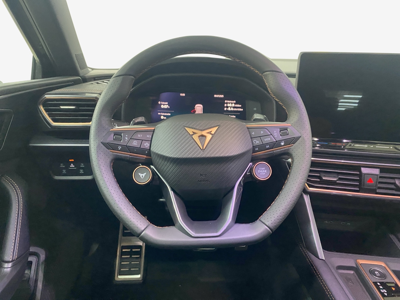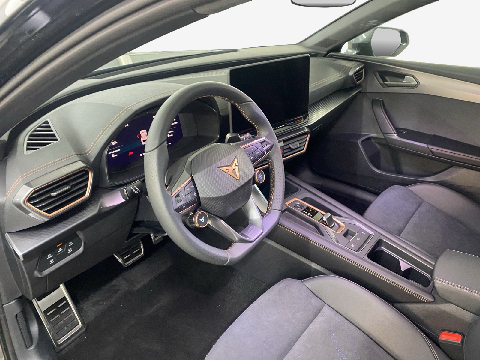 ABS, EBV elektronische Bremskraft-verteilung Abgedunkelte Scheiben ab B-Säule hinten Airbag: Airbag Beifahrer deaktivierbar Airbag: Airbag Fahrer und Beifahrer Airbag: Seitenairbags vorne mit Kopfairbag und Interaktionsairbag vorne Assist: Aufmerksamkeits- und Müdigkeitserkennung (ADA) Assist: Ausweichunterstützung / Abbiegeassistent Assist: Automatische Distanzregelung ACC Assist: Einparkhilfe vorne und hinten Assist: Elektronische Parkbremse mit Auto Hold Funktion Assist: Lane assist (Spurhalteassistent) Assist: Multifunktionskamera Assist: Multikollisionsbremse Assist: Prädiktive Speedlimiter Assist: Regen-/Lichtsensor Assist: Traction Control (TCS) Assist: Traffic sign recognition (Verkehrszeichenerkennung) Aussenspiegel elektrisch einstell-, beheiz- und einklappbar mit Beifahrerabsenkfunktion CUPRA Drive Profile mit "driving experience button" Comfort, Performance, Drift, Individual Dekor: Dekorblenden in Copper Dreipunkt-Automatiksicherheitsgurte auf allen Plätzen ESC mit EBA, DSR und Reifendruckkontrolle Elektrische Fensterheber vorne und hinten mit Komfortschaltung und Einklemmschutz Fussmatten vorne und hinten Garantie: Cupra 12 Jahre Gewährleistung gegen Karosserie-Durchrostung Garantie: Cupra 3 Jahre Lack-Gewährleistung Garantie: Cupra Garantie 2 Jahre ohne Kilometerbegrenzung Garantie: Cupra Hersteller-Garantieverlängerung für das 3., 4. und 5. Jahr / max.100’000 km Heckscheiben-Wisch-/Waschanlage mit Intervall Innenspiegel automatisch abblendbar Klima: 3-Zonen Climatronic mit Fondraumbedienung LED-Innenraumbeleuchtung mit Ambientebeleuchtung"Monochrom" Lackierung: Uni-Lackierung Lenkrad: Supersportlenkrad mit Start-/ Drive Profile-Knopfsystem und Schaltwippen, beheizbar Licht: Coming Leaving Home Funktion Licht: Drittes Bremslicht Licht: Durchgehende Full LED-Heckleuchten Licht: Dynamische LED-Blinker Licht: Fernlicht-Assistent Licht: LED Heckleuchten mit beleuchtetem 3D CUPRA Logo Licht: LED-Nebelscheinwerfer mit Cornering-Funktion Licht: LED-Scheinwerfer für Abblend- und Fernlicht Licht: Leuchtweitenregulierung Licht: Nebelschlussleuchte Media: 12,9" Infotainment (MIB3) Media: 2 USB C Anschlüsse hinten und vorne Media: CUPRA Connect Remote & Access Media: CUPRA Connect Safety & Services Media: CUPRA Connectivity Box Media: DAB+ (Digital Audio Broadcasting) Media: Mobiltelefon Freisprechanlage Bluetooth Pyrotechnische Gurtstraffer und Gurtkraftbegrenzer vorne Räder: Alufelgen 7,5J x 18", "GARBI" Machined in Sport Black Silver Räder: Reifenreparatur-Set (Tire Fit) Schlüsselloses Schliess- und Startsystem (KESSY) Servolenkung mit geschwindigkeitsabhängiger Lenkkraftunterstützung Sicherheitsgurtkontrolle für alle Sitze Sitze: 2 verstellbare Kopfstützen vorne und 3 hinten Sitze: CUPRA Sport Schalensitze in "Sharp Textil schwarz" Sitze: Fahrer- und Beifahrersitz mit Lendenwirbelstütze Sitze: Geteilt abklappbare Rücksitzlehne 1/3 - 2/3 Sitze: Kindersitzverankerung ISOFIX hinten Sitze: Kopfstützen vorne (integrierte) Sitze: Lendenwirbelstütze in den Vordersitzlehnen Sitze: Mittelarmlehne hinten Sitze: Mittelarmlehne vorne Sitze: Sitzheizung für Vordersitze, getrennt regelbar Sitze: Vordersitze höhenverstellbar Sonnenblende Fahrer und Beifahrerseite Stopp - Start- und Rekuperationssystem Wegfahrsperre elektronisch Zentralverriegelung mit Funkfernbedienung, 2 Funkschlüssel