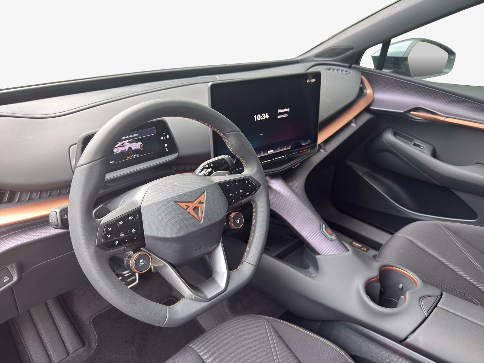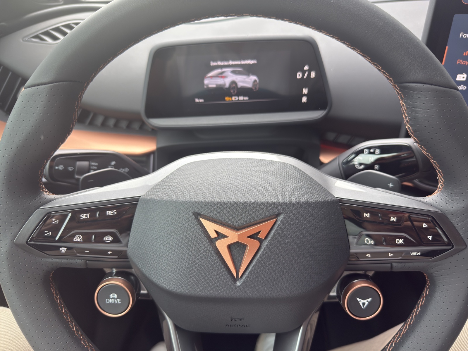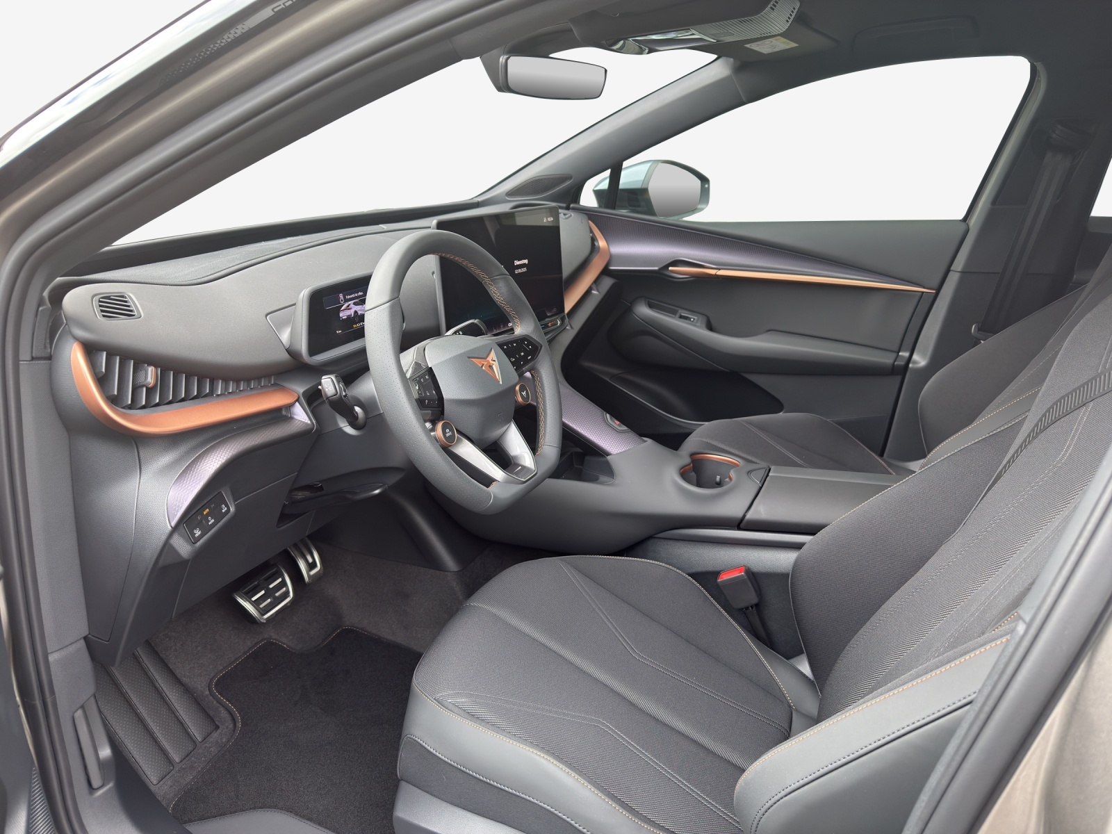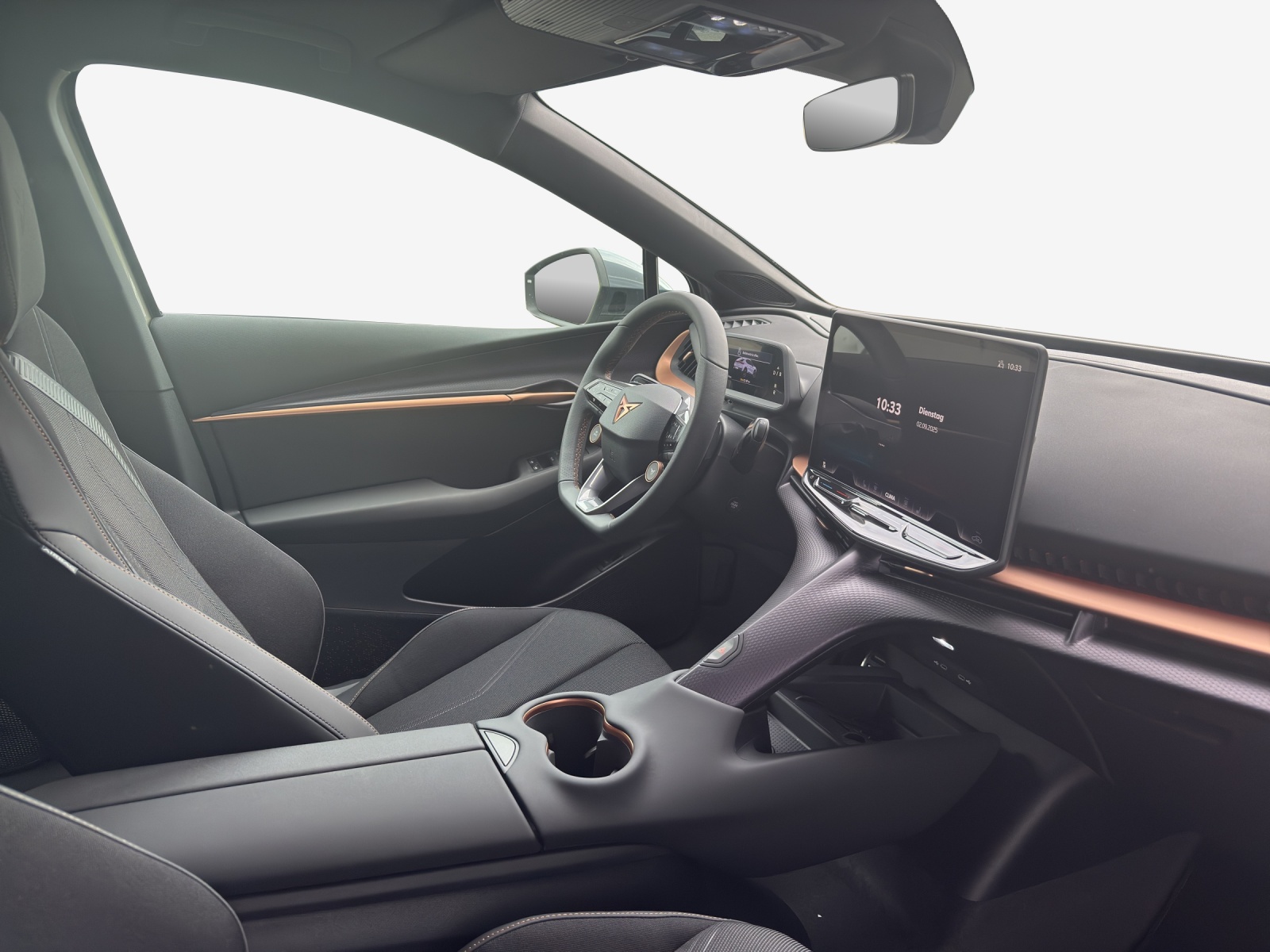 5.3" Full Digital Cockpit Abgedunkelte Scheiben ab B-Säule hinten Airbag: Airbag Beifahrer deaktivierbar Airbag: Airbag Fahrer und Beifahrer Airbag: Seitenairbags für Fahrer und Beifahrer Alarmanlage mit Innenraumüberwachung Assist: Aufmerksamkeits- und Müdigkeitserkennung (ADA) Assist: Ausweichunterstützung / Abbiegeassistent Assist: Exit Assist (Ausparkassistent) Assist: Exit Warning (Ausstiegswarner) Assist: Intelligenter Geschwindigkeitsassistent Assist: Parklenkassistent RPA (Remote Park Assist) Assist: PreCrash Sicherheitssystem Assist: Prädiktive automatische Distanzregelung ACC Assist: Regen-/Lichtsensor Assist: Side Assist (Spurwechselassistent) Assist: Traction Control (TCS) Assist: Traffic sign recognition (Verkehrszeichenerkennung) Assist: eCall Notruffunktion Aussenspiegel elektrisch einstell-, beheiz- und einklappbar Automatisch abblendender Innenrückspiegel Dreipunkt-Automatiksicherheitsgurte auf allen Plätzen Elektrische Fensterheber vorne und hinten mit Komfortschaltung und Einklemmschutz Elektronisches Stabilitäts-Programm (ESP) Fahrwerk: Adaptive Fahrwerksregelung DCC Garantie: Cupra 12 Jahre Gewährleistung gegen Karosserie-Durchrostung Garantie: Cupra 3 Jahre Lack-Gewährleistung Garantie: Cupra Garantie 2 Jahre ohne Kilometerbegrenzung Getriebe: 1-Gang Automatik Heckklappe elektrisch öffnend und schliessend "Virtual Pedal" Klima: 3-Zonen Climatronic mit Fondraumbedienung LED Ambientebeleuchtung "PURE" Lackierung: Uni-Lackierung Lenkrad: Supersportlenkrad mit Drive Profile-Knopfsystem,beheizbar Licht: Drittes Bremslicht Licht: LED Heckleuchten mit beleuchtetem 3D CUPRA Logo Licht: Matrix LED Fernlicht Licht: Matrix LED Scheinwerfer Licht: Nebelschlussleuchte Media: 15" Infotainment (MIB3) Media: 2 USB C Anschlüsse hinten und vorne Media: Bluetooth-Freisprecheinrichtung Media: CUPRA Connect Online Infotainment Media: CUPRA Connect Remote & Access Media: CUPRA Connect Safety & Services Media: CUPRA Navigationssystem Media: DAB+ (Digital Audio Broadcasting) Media: Wireless Charger zur induktiven Smartphone Ladung Polster: Sitzbezüge in Stoff "Soul Black" Räder: Alufelgen 8J x 20", "Heckla" Machined Sport in Black/Silver Räder: Reifendruckkontrollsystem Schlüsselloses Schliess- und Startsystem (KESSY Advance) Servolenkung geschwindigkeitsabhängig Sitze: Geteilt abklappbare Rücksitzlehne 1/3 - 2/3 Sitze: Kindersitzbefestigungssystem ISOFIX Sitze: Kopfstützen hinten höhenverstellbar Sitze: Kopfstützen vorne (integrierte) Sitze: Sitzheizung für Vordersitze, getrennt regelbar Sitze: Vordersitze höhenverstellbar Vorbereitung für Anhängevorrichtung Wegfahrsperre elektronisch Zentralverriegelung mit Fernbedienung