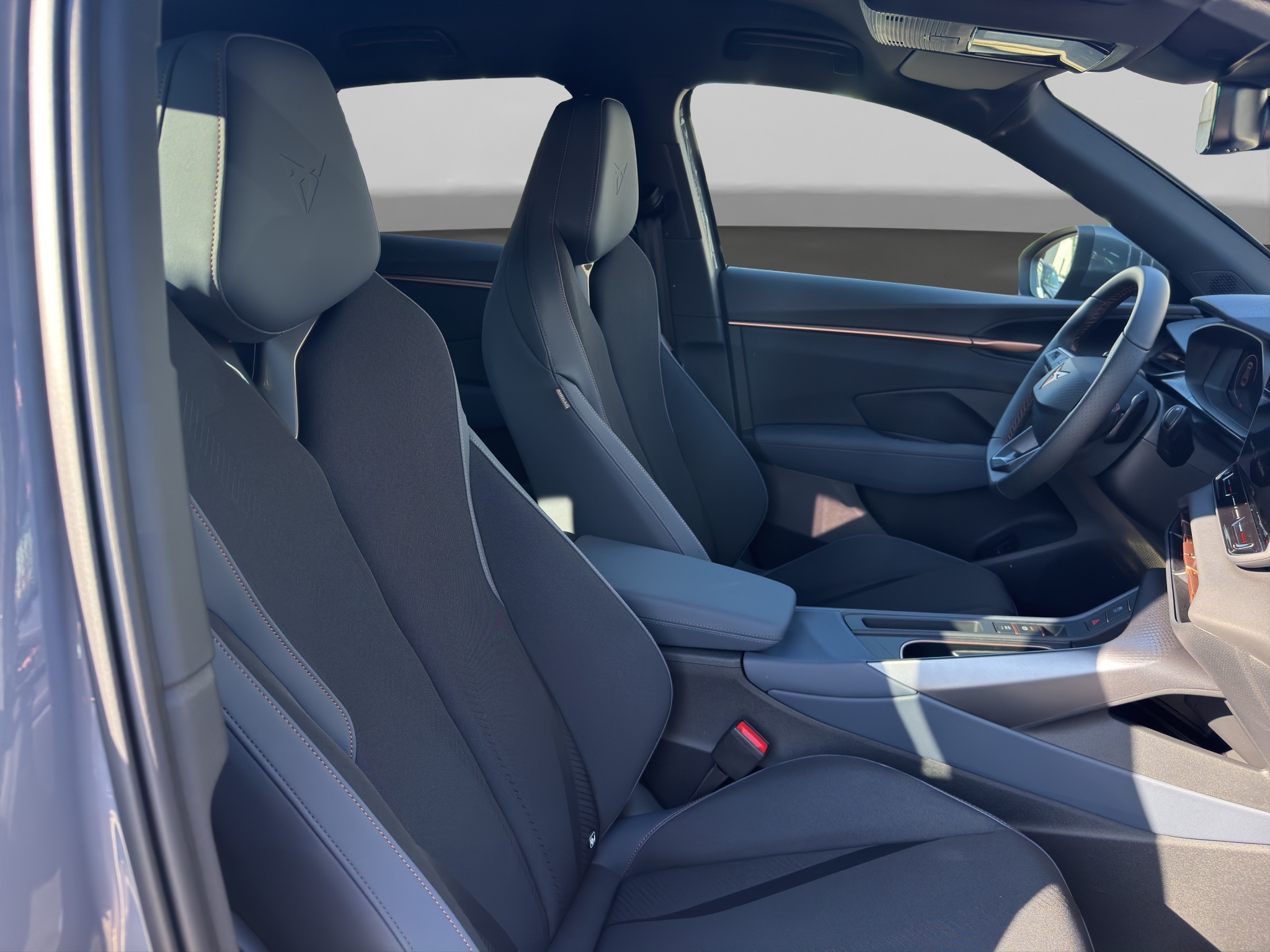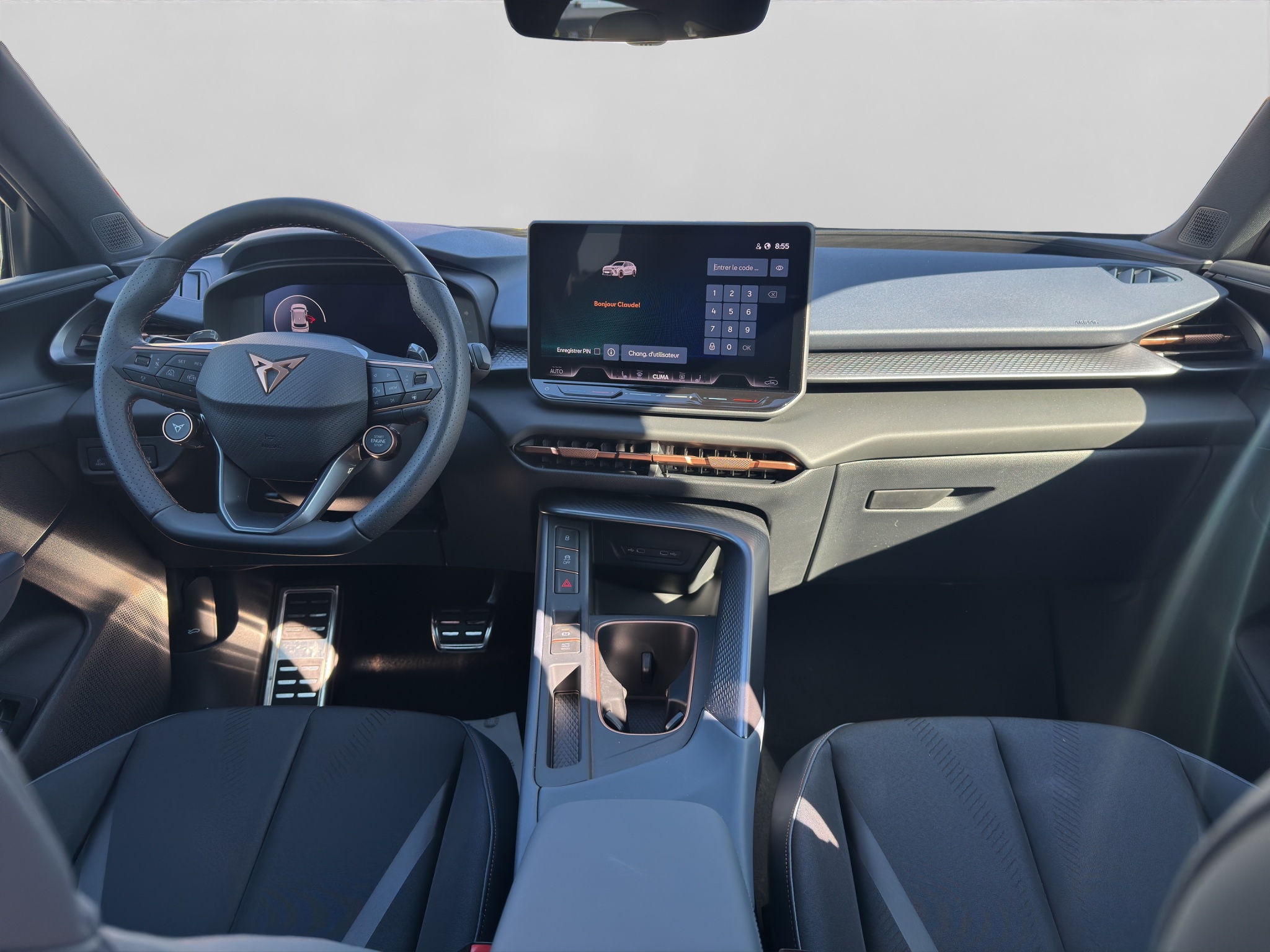 ABS, EBV répartiteur électronique de la force de freinage Accoudoir central à l'avant et à l'arrière Airbag: Airbag Fahrer und Beifahrer Airbag: Airbag passager désactivable Airbag: Airbags latéraux pour conducteur et passager avant Airbag: Airbags rideaux à l'avant et à l'arrière Assist: Caméra multifonction Assist: Fonction de freinage d'urgence en ville Assist: Frein Multicollision Assist: Frein de stationnement électronique avec fonction auto hold Assist: Lane assist (assistant au maintien de la trajectoire) Assist: Limiteurs de vitesse prédictifs Assist: Rilevamento dell'attenzione e della sonnolenza (ADA) Assist: Régulation automatique de la distance de sécurité ACC Assist: Support aux manoeuvres d’évitement / assistant de bifurcation Assist: Systeme de surveillance environnementale "Front Assist" Assist: Traffic sign recognition (identification des panneaux de signalisation) Carrosserie entièrement galvanisée Ceintures de sécurité avec prétensionneurs pyrotechniques et limiteurs de tension Ceintures de sécurité à 3 points Direction assistée asservie à la vitesse Détecteur de luminosité et de pluie ESC avec EBA, DSR, XDS et système de contrôle de pression des pneus Essuie-glace AR intermittent avec lave-glace Garantie: Cupra 12 ans de garantie contre perforation de la carrosserie Garantie: Cupra 2 ans de garantie, kilométrage illimité Garantie: Cupra 3 ans de garantie pour la peinture LLumière: Phares LED pour feux de croisement et feux de route Lumière: Combinaison complète de feux arrière à LED dans tout le pays Lumière: Feux arriere a LED avec logo CUPRA 3D éclairé Lumière: Feux arrière LED avec clignotant dynamique Lumière: Feux de jour LED Lumière: Phares LED antibrouillard avec fonction cornering Lumière: Réglage dynamique de la portée des phares Lumière: Troisième feu stop Lève-vitres électriques à l'avant et à l'arrière, à commande confort et sécurité antipincements Media: 12,9" Infotainment (MIB3) Mèdias: 2 ports USB C arrière et front Mèdias: 8+1 Haut-parleurs Mèdias: CUPRA Connect Remote & Access / CUPRA Connect Safety & Services Mèdias: CUPRA Connectivity Box Mèdias: DAB+ (Digital Audio Broadcasting) Mèdias: Dispositif mains libres Bluetooth pour téléphone mobile Pare-soleil éclairé à gauche avec miroir dissimulé et languette, à droite avec miroir dissimulé Plancher de chargement variable Poignées de porte couleur carrosserie Roues: Alufelgen 8J x 18", "ATOMIC" usiné en Sport Black Matt Räder: Reifendruckkontrollsystem Rétroviseur intérieur avec système anti-éblouissement automatique Rétroviseurs extérieurs avec éclairage périphérique LED Rétroviseurs extérieurs réglables et chauffants électriquement Sieges: 3 appuis-tete arriere réglables Sièges: Ancrage ISOFIX pour siège enfant à l'arrière Sièges: Dossier de banquette rabattable séparément 1/3 - 2/3 Sièges: Sieges baquets sport CUPRA en textile, "DEEP OCEAN" "SEAQUAL" Sièges: Sièges avant réglables en hauteur avec soutien lombaire Stop / Start et système de récupération Suspension: Direction progressive Suspension: Suspension sport CUPRA Tapis à l'avant et à l'arrière Verrouillage centralisé "Keyless-Go" Verrouillage centralisé à radiocommande, 2 clés à fréquence radio Volant: Volant multifonction en cuir avec palettes de changement de vitesse Éclairage intérieur d’ambiance avec panneaux de porte éclairés