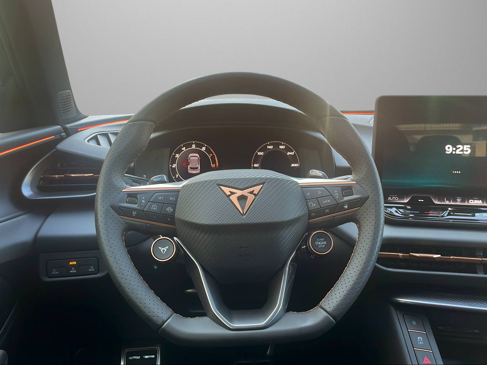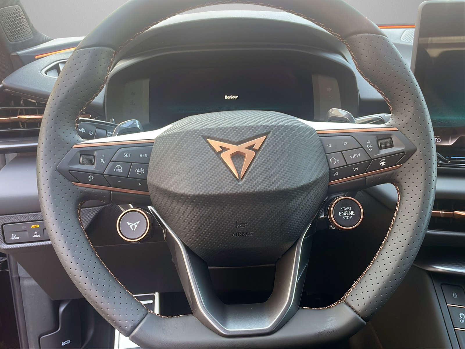 Dispositif d'attelage pour remorque (escamotable) avec assistant de manouvre de remorque Media: CUPRA Connect Online Infotainment Media: IMMERSIVE by SENNHEISER Peinture: Peinture métallique Roues: Aluminium 8,5J x 19", "COSMIC COPPER" usiné en Sport Black Matt & Copper